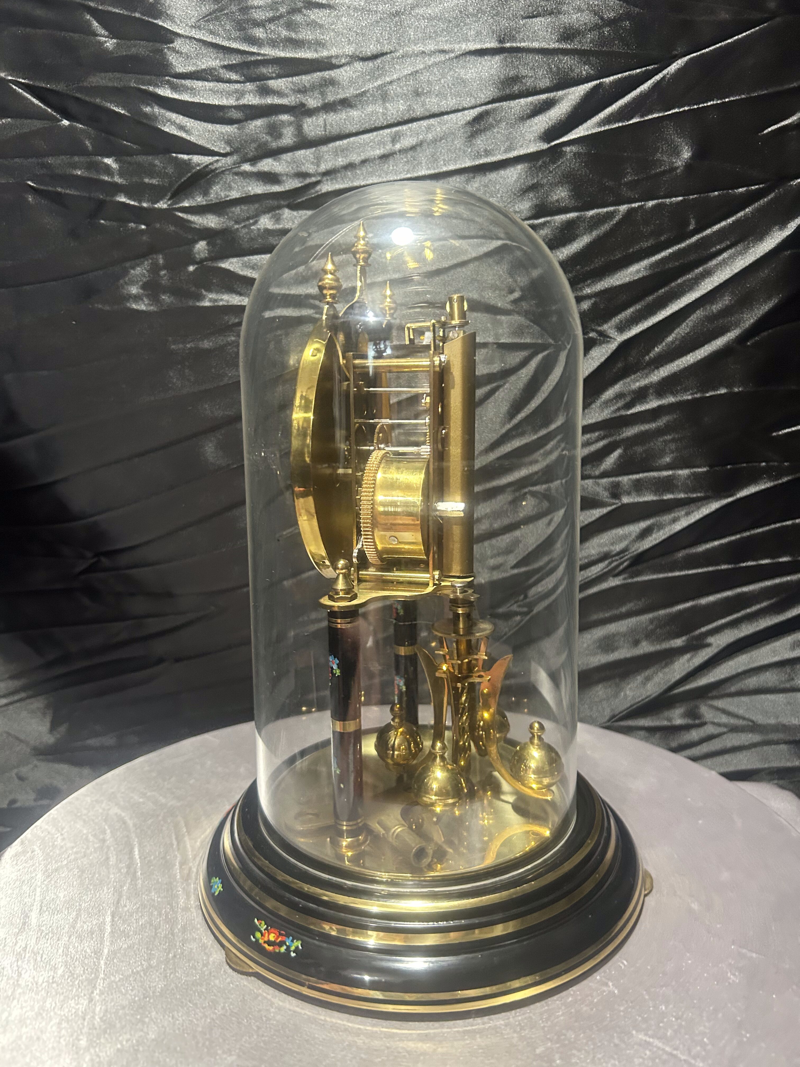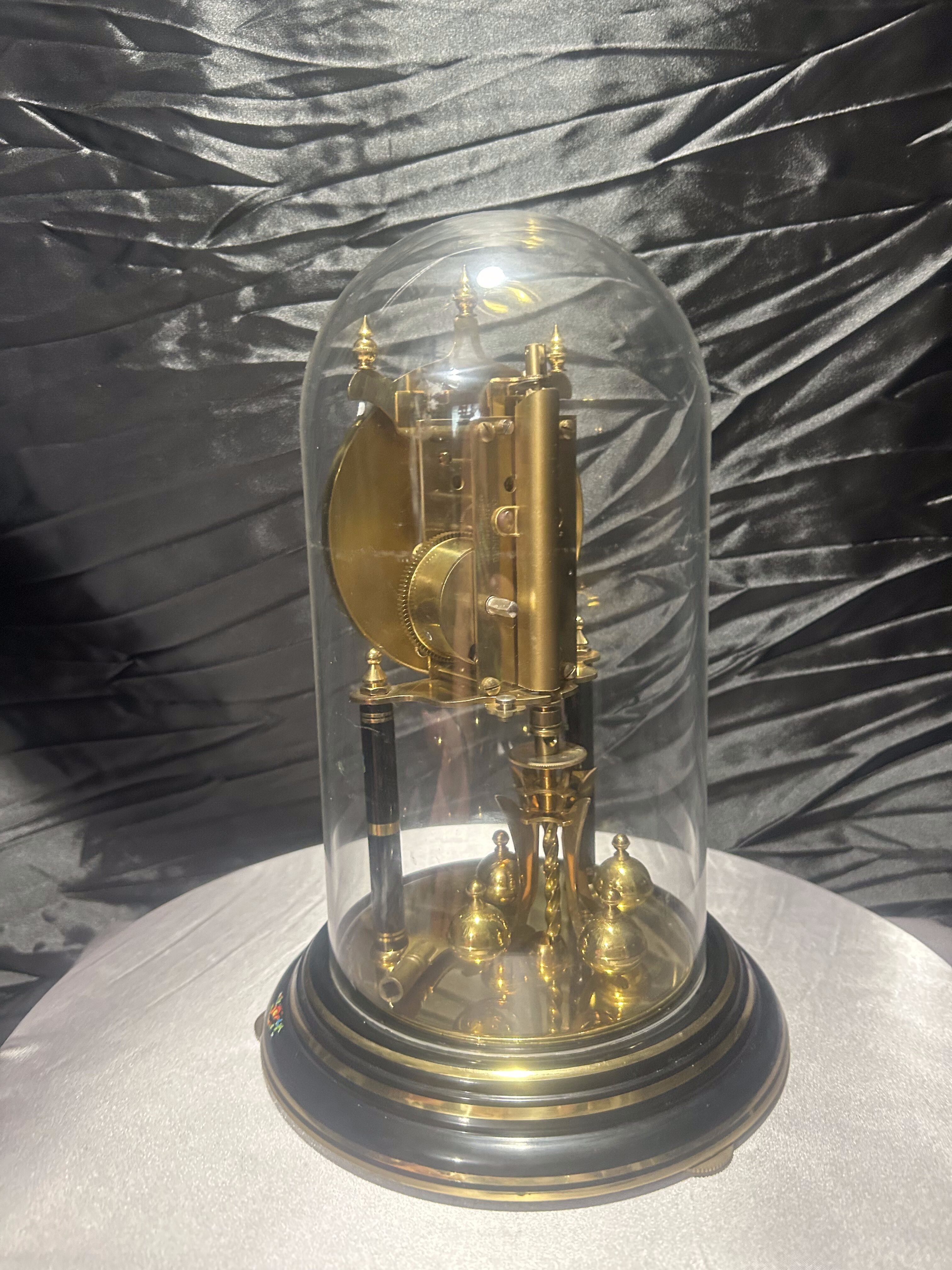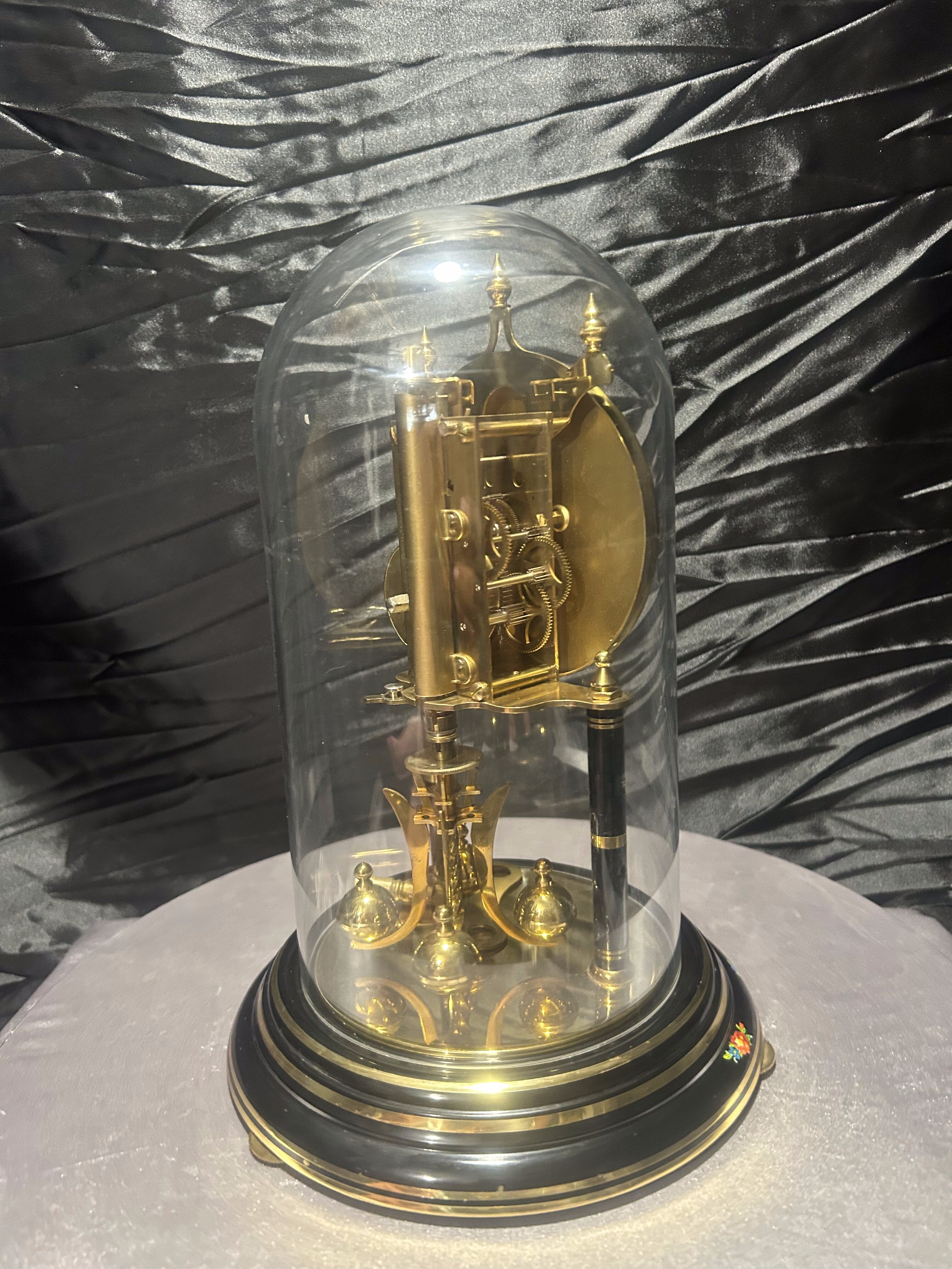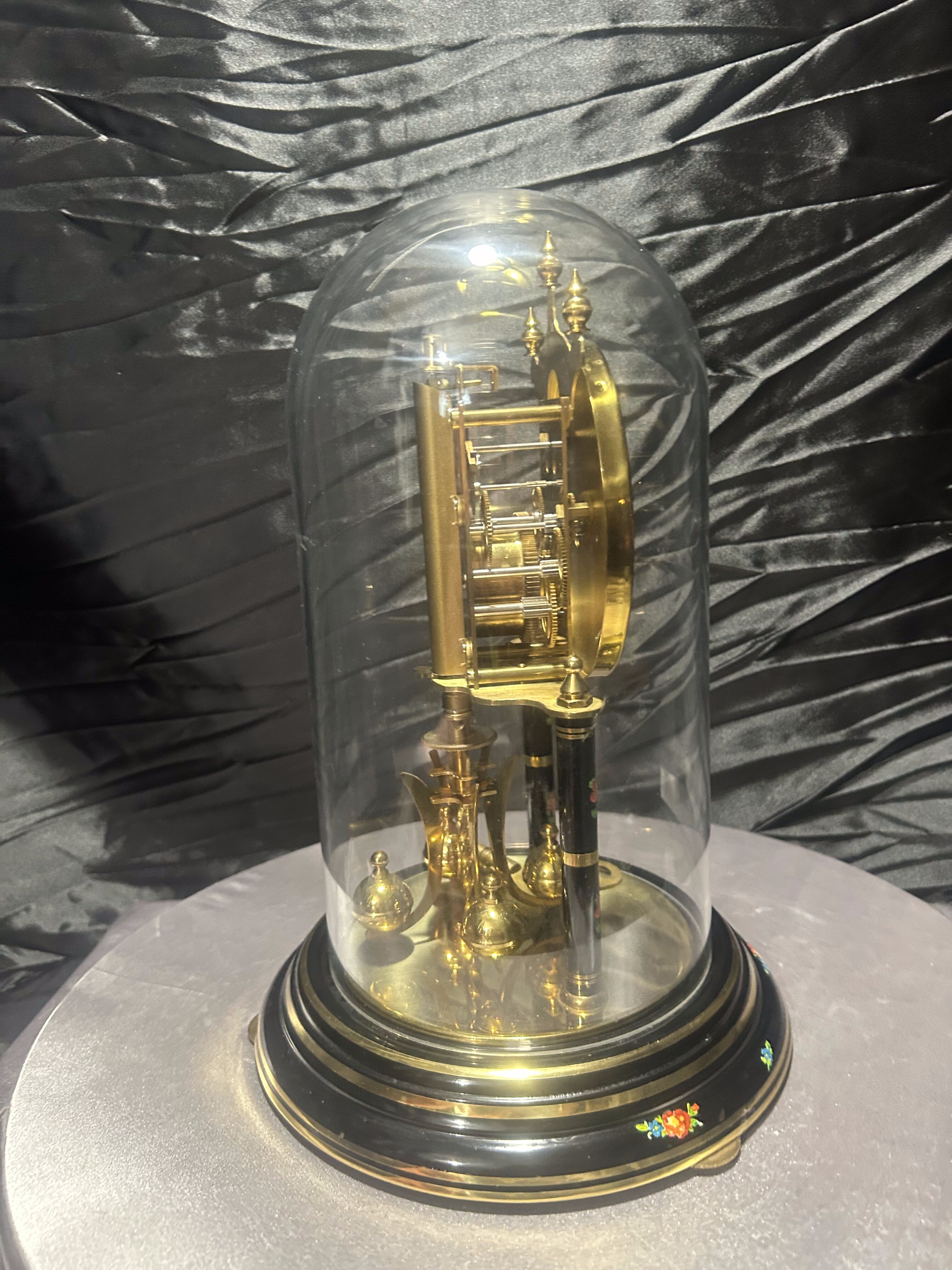 Zegar roczniak w kopule – Kundo – czarna tarcza z motywem kwiatowym