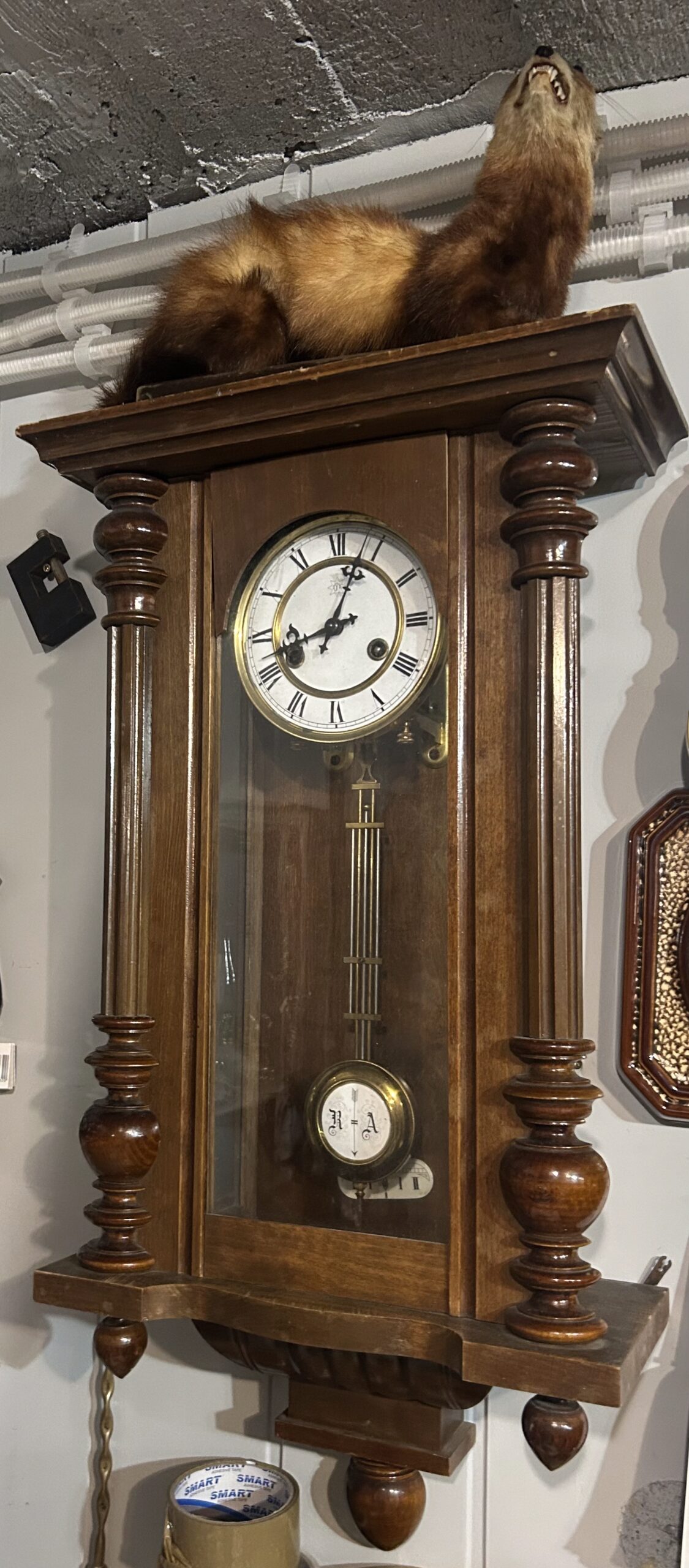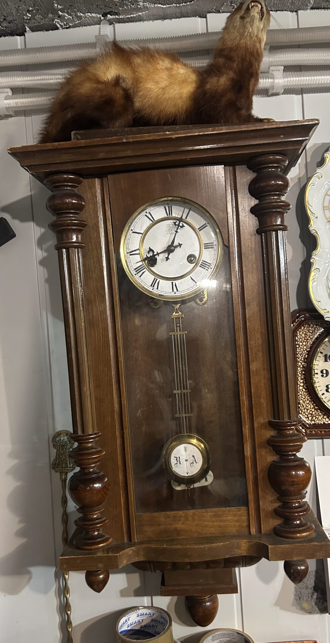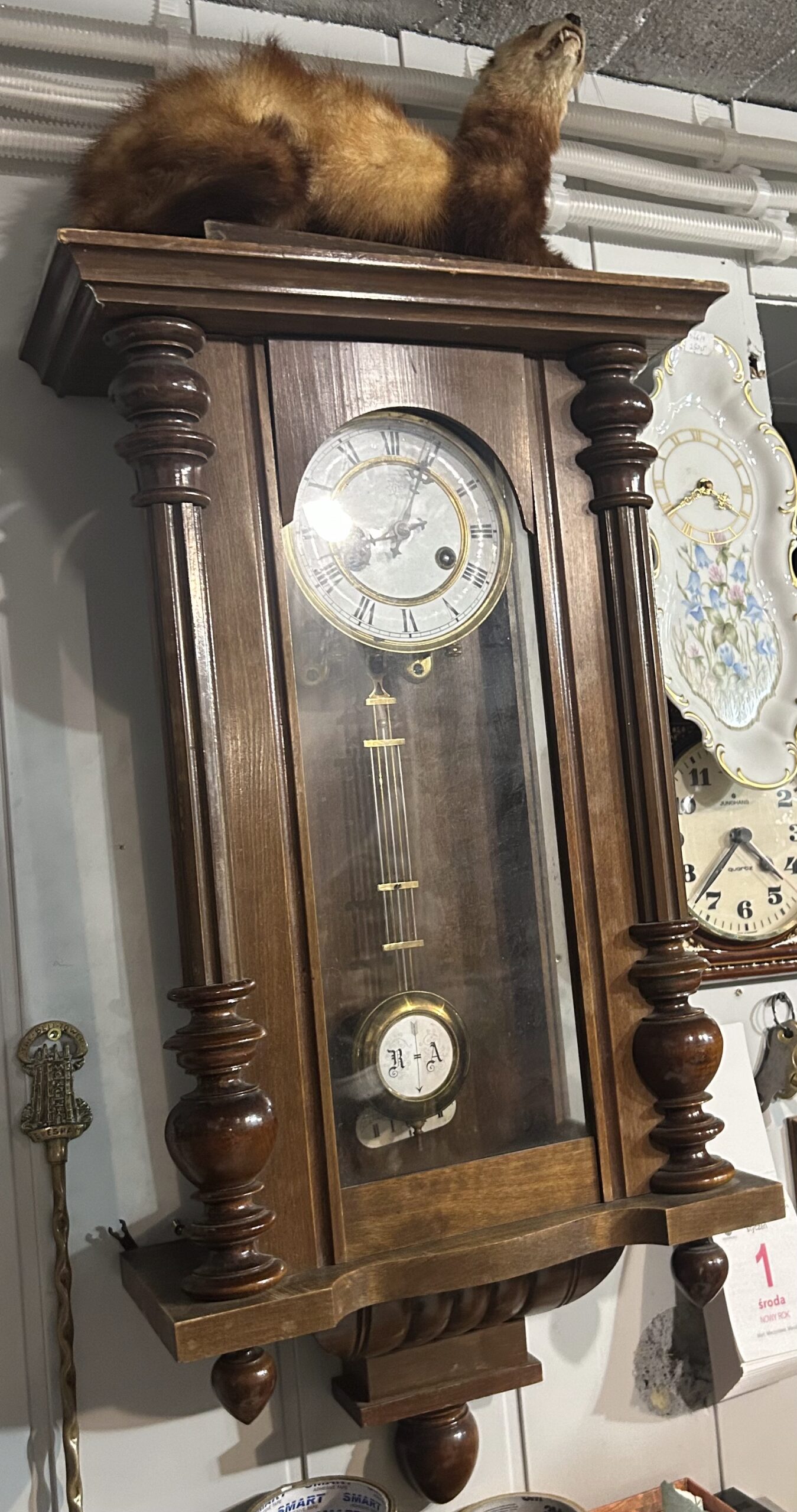 Piękny, rzeźbiony zegar ścienny renomowanej marki Junghans, osadzony w solidnej drewnianej skrzyni. Jego klasyczny design i precyzyjnie wykonane detale czynią go wyjątkowym elementem dekoracyjnym. Idealny do wnętrz utrzymanych w eleganckim stylu.