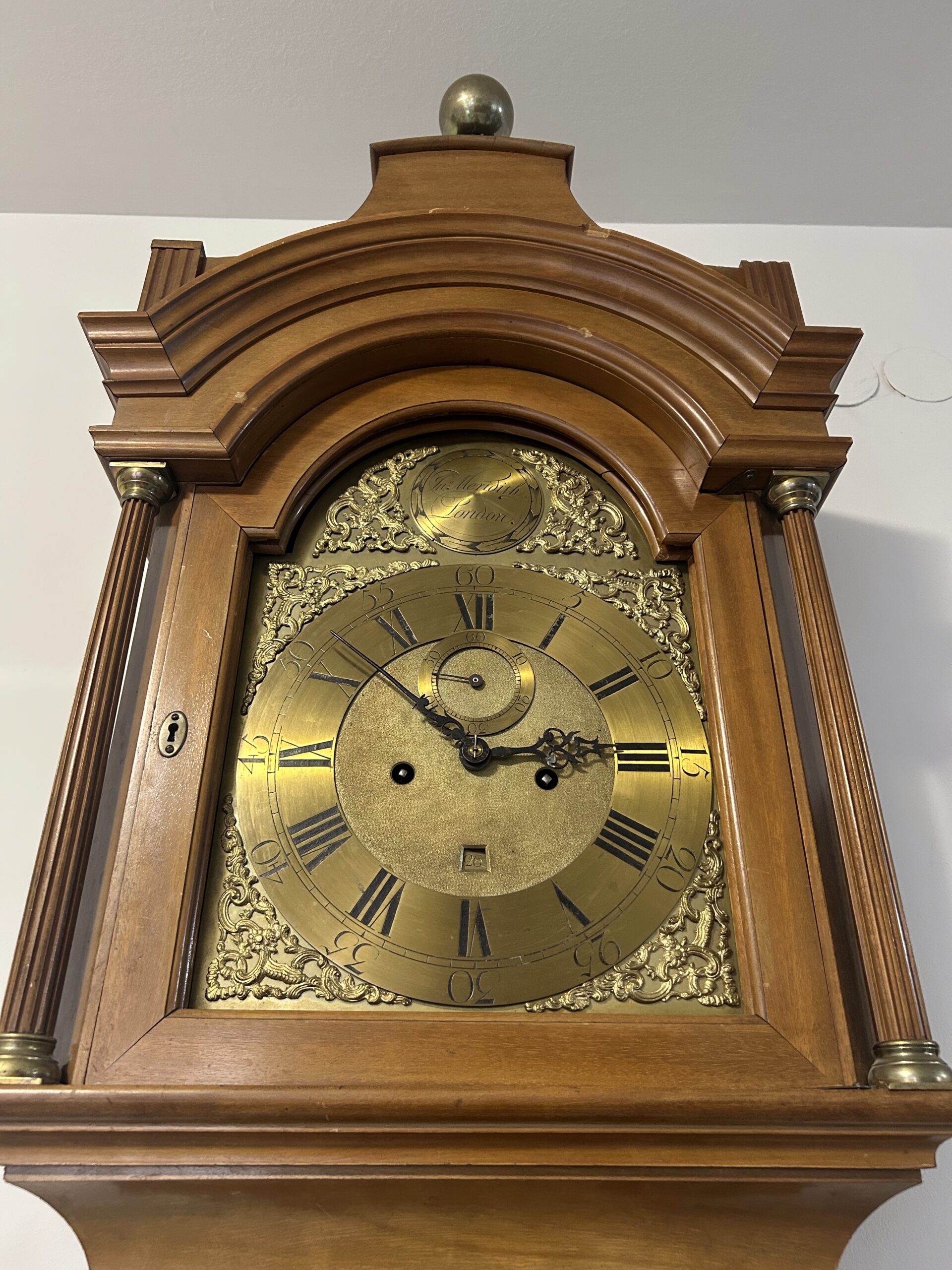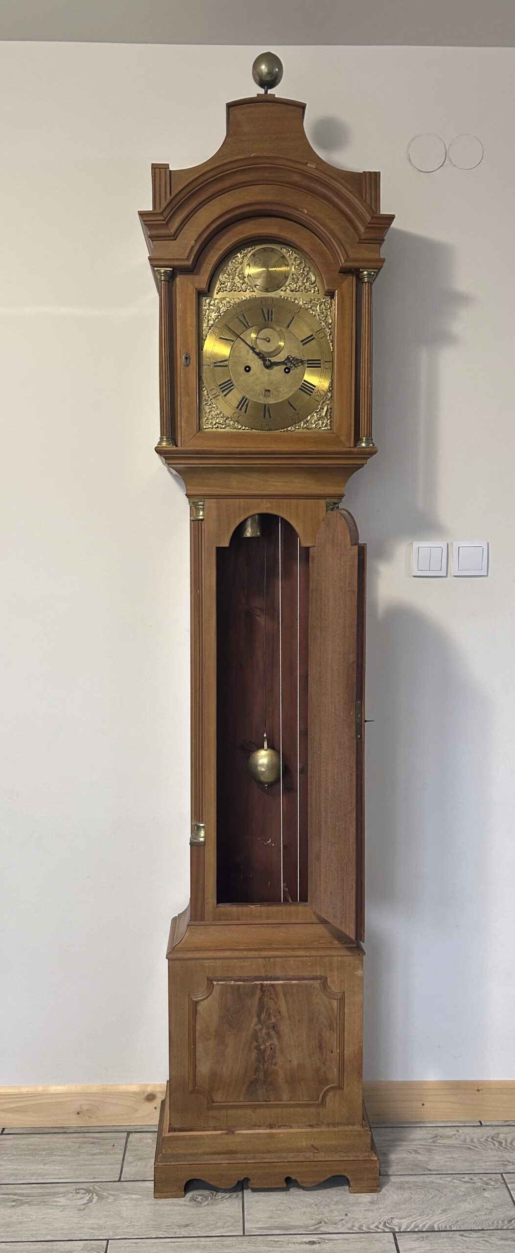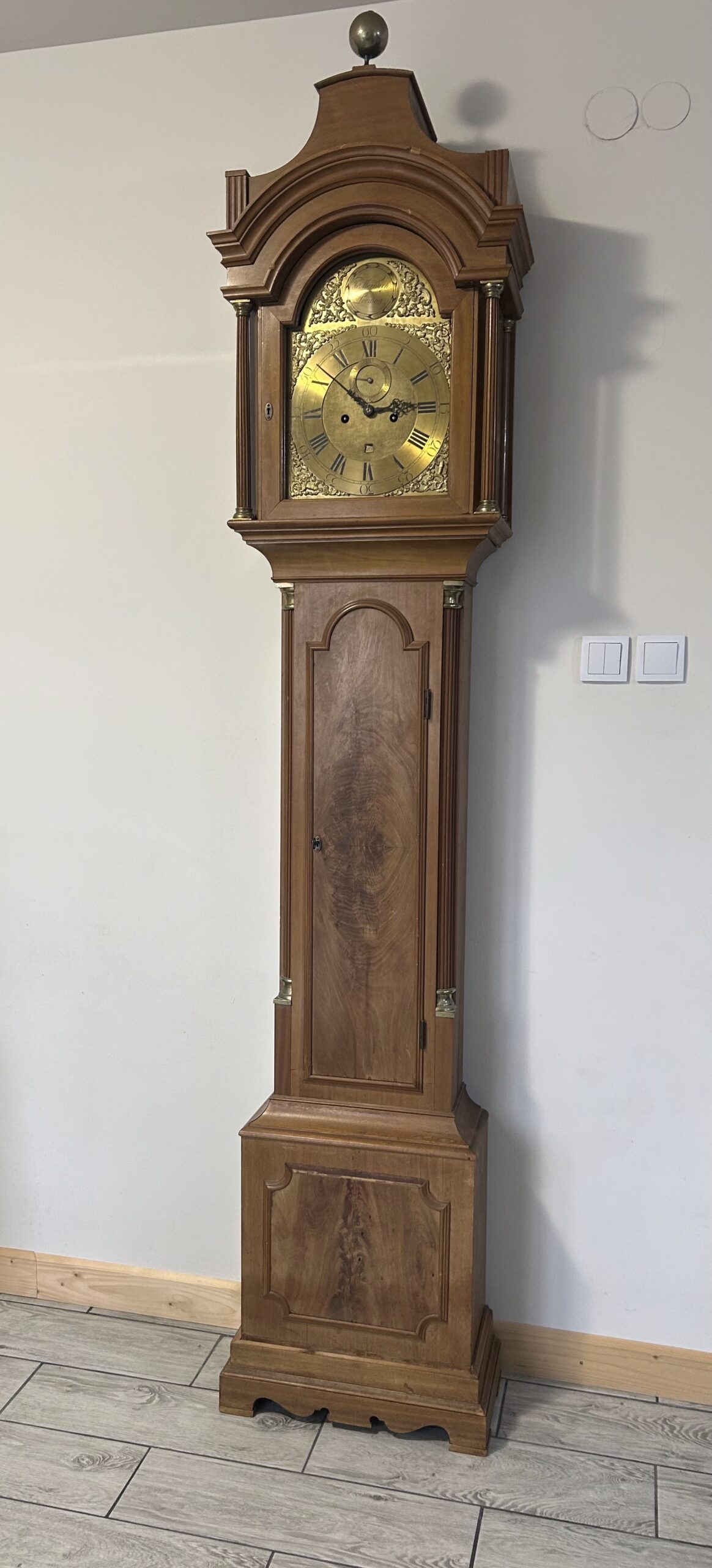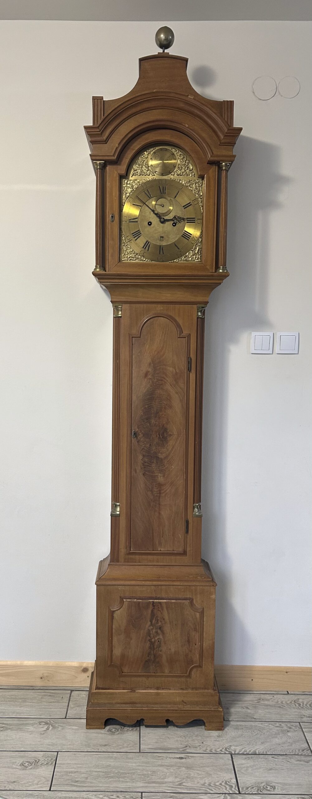Wyjątkowy zegar szafowy o imponującej wysokości 248 cm, będący prawdziwym świadectwem kunsztu zegarmistrzowskiego z okresu Jerzego I. Jego majestatyczna forma oraz niezwykła dbałość o detale czynią go niezwykle rzadkim i cennym eksponatem.