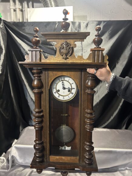 Pochodzący z początku XVIII wieku, zegar jest przykładem mistrzowskiego rzemiosła tamtych czasów. Idealny dla koneserów antyków, pasjonatów historii i osób poszukujących unikalnych elementów wystroju wnętrz.