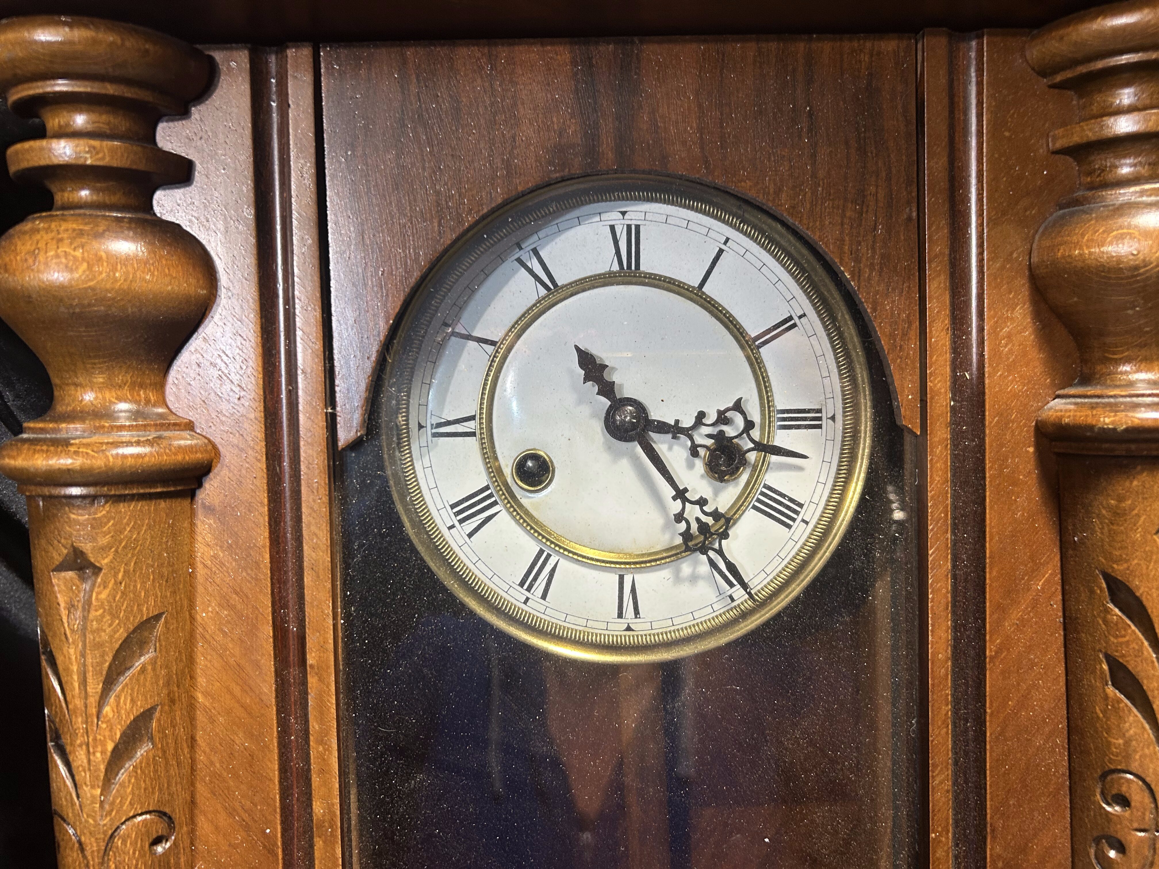 Zegar wiszący – drewniana rzeźbiona obudowa – klasyczna elegancja