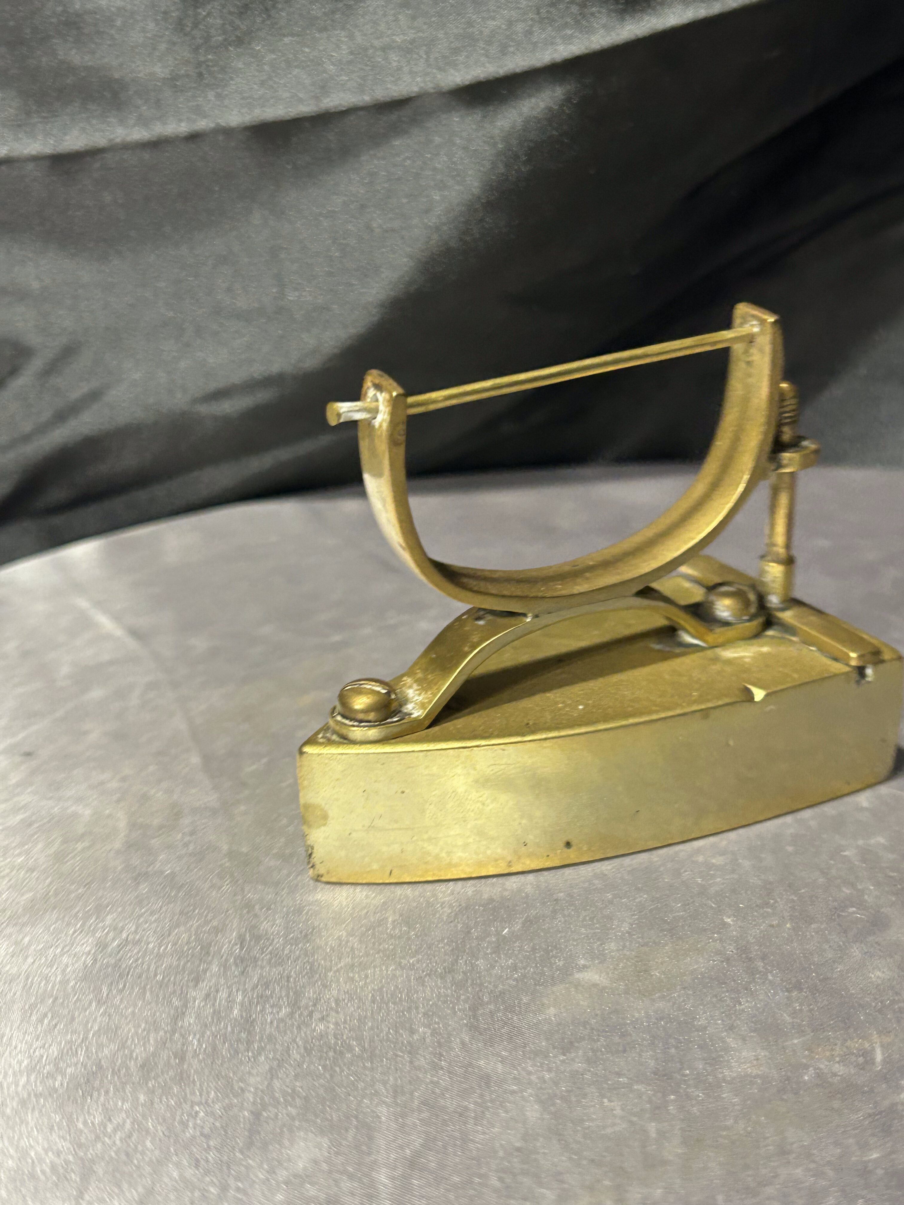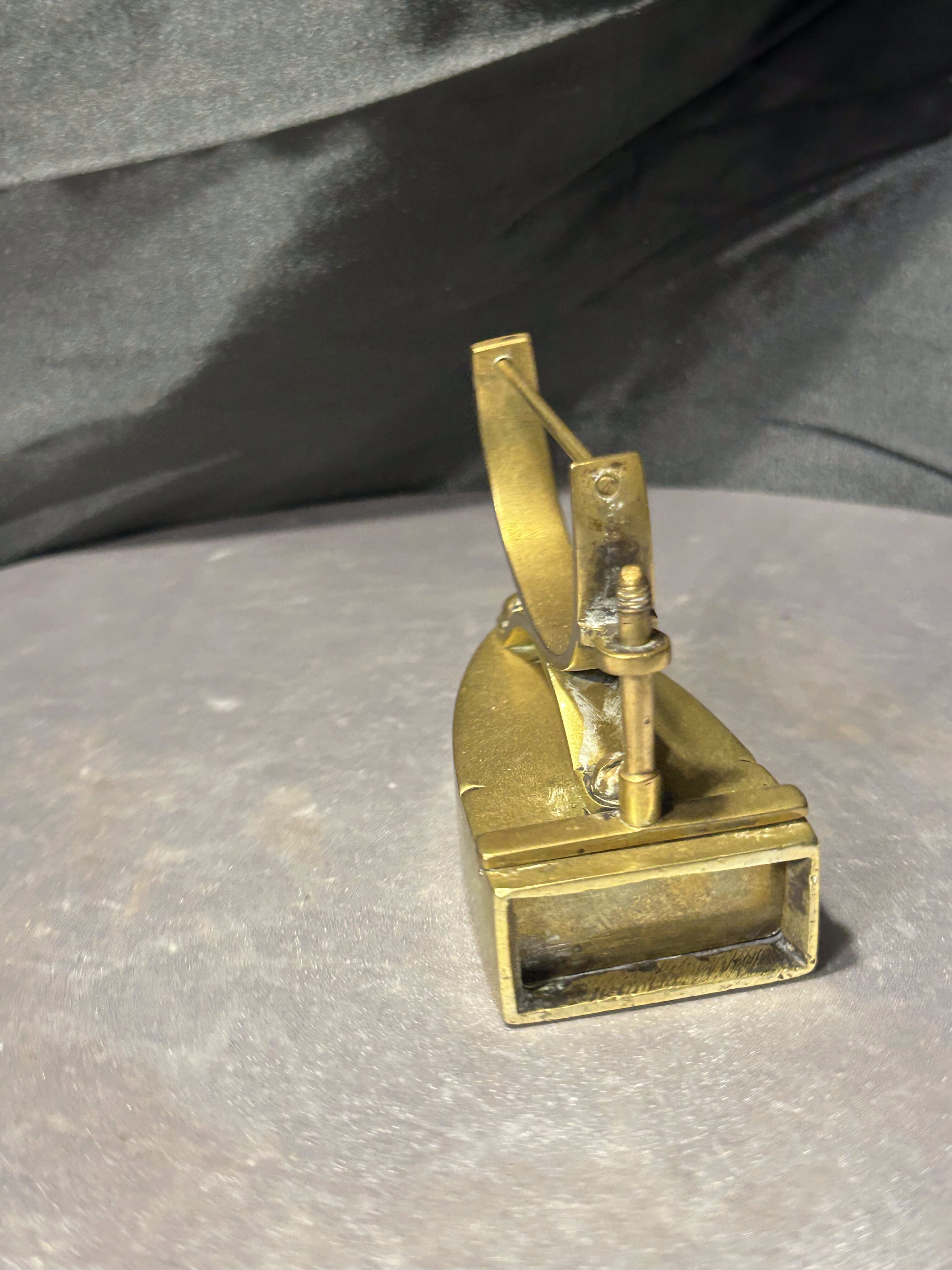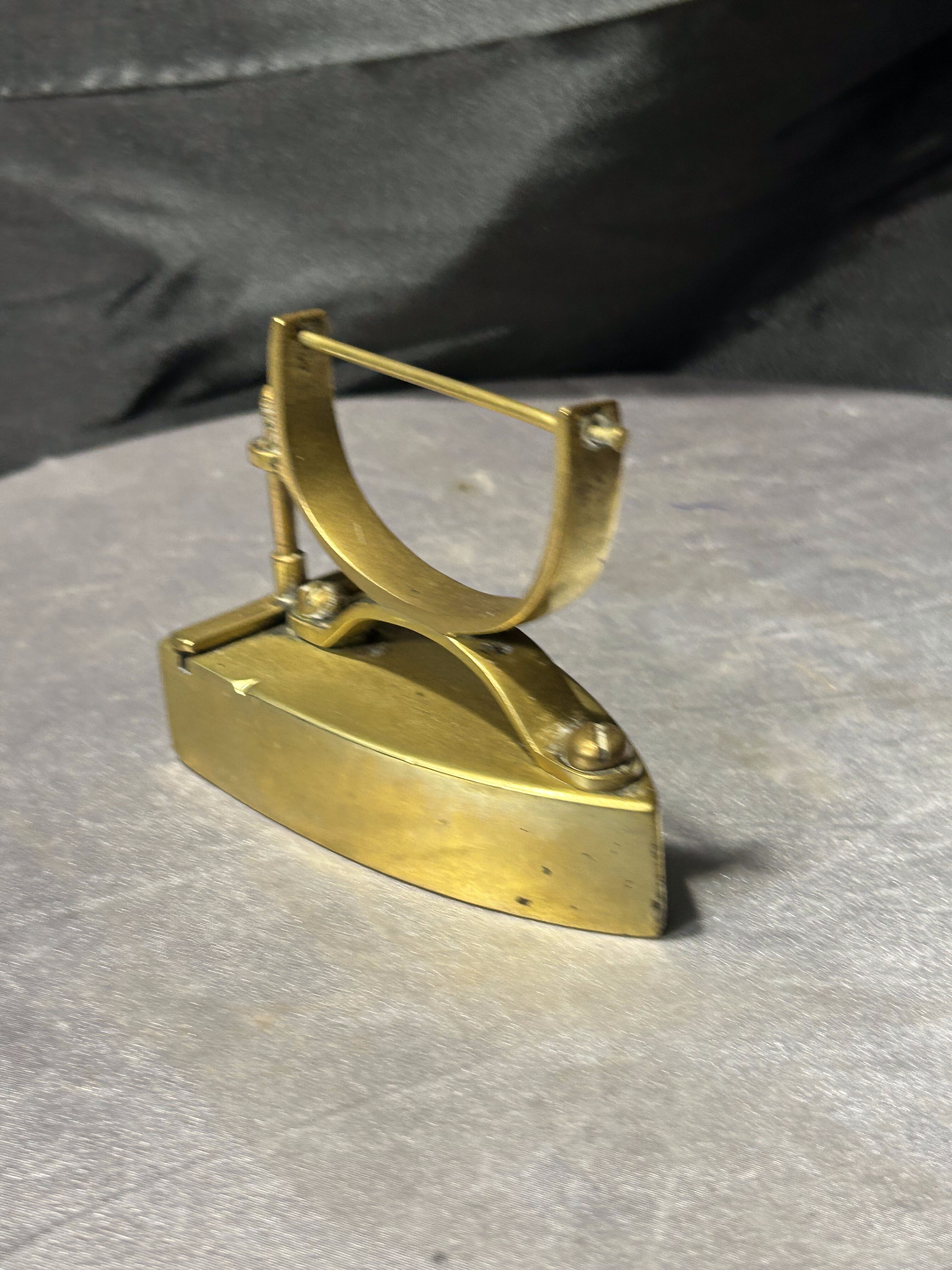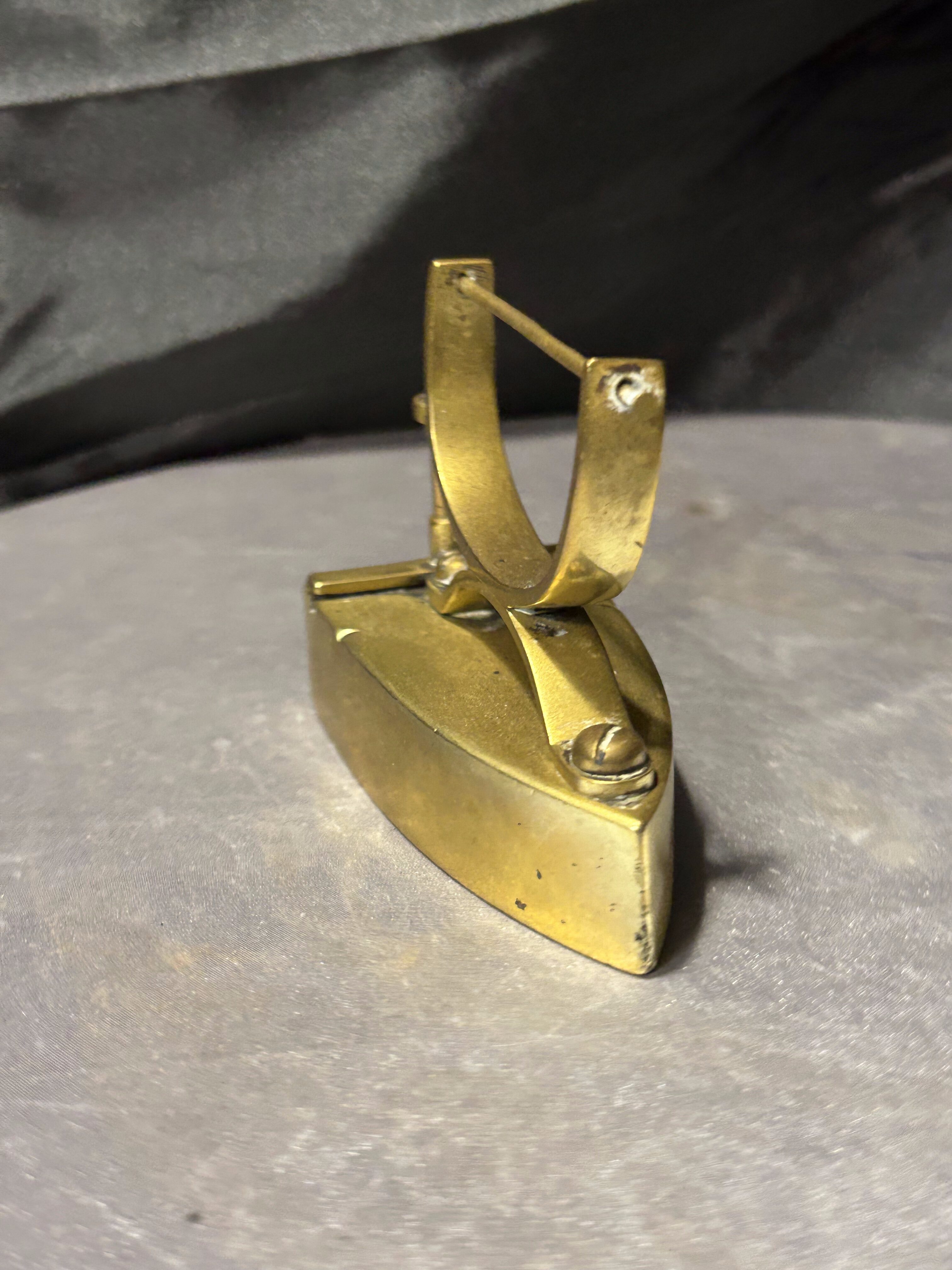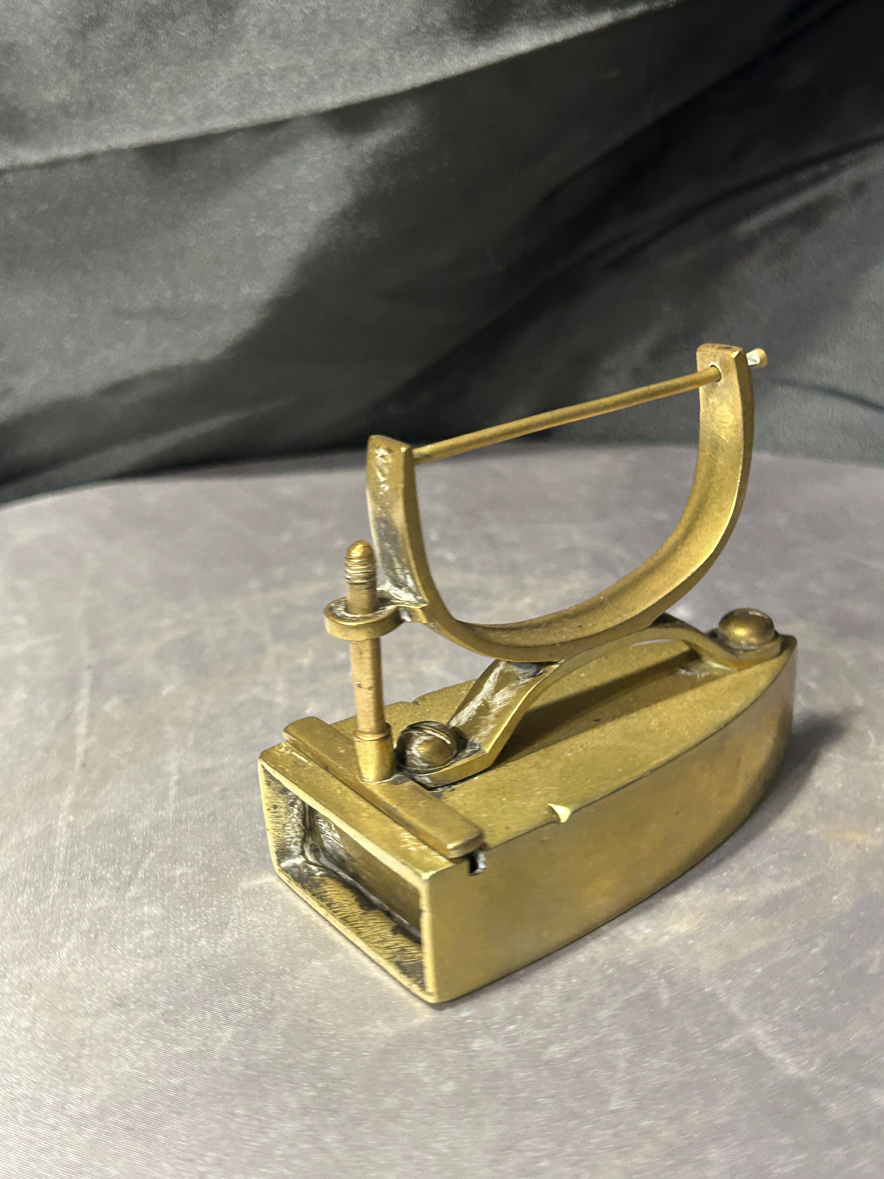 Zabytkowe żelazko wykonane z mosiądzu, przeznaczone do prasowania mankietów oraz wąskich elementów garderoby, takich jak rękawy. Model z miejscem na duszę, charakterystyczny dla dawnych, tradycyjnych technik prasowania. Niewielki rozmiar i specjalnie wyprofilowana forma sprawiają, że jest to przedmiot zarówno kolekcjonerski, jak i świetna dekoracja do wnętrz w klimacie vintage.