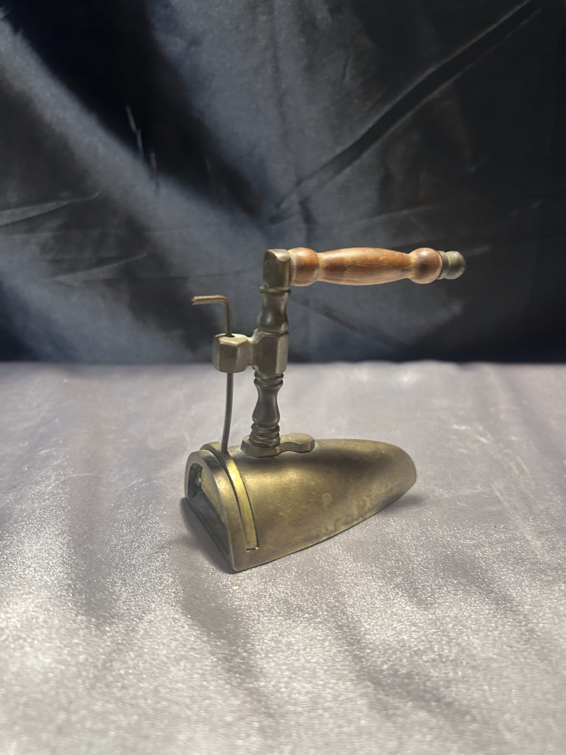Mosiężne Żelazko Vintage – Z Miejscem na Duszę i Drewnianą Rączką