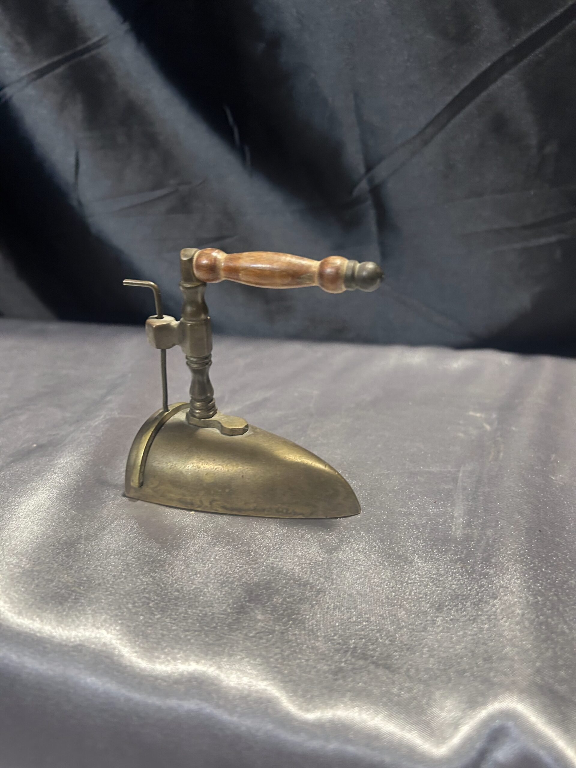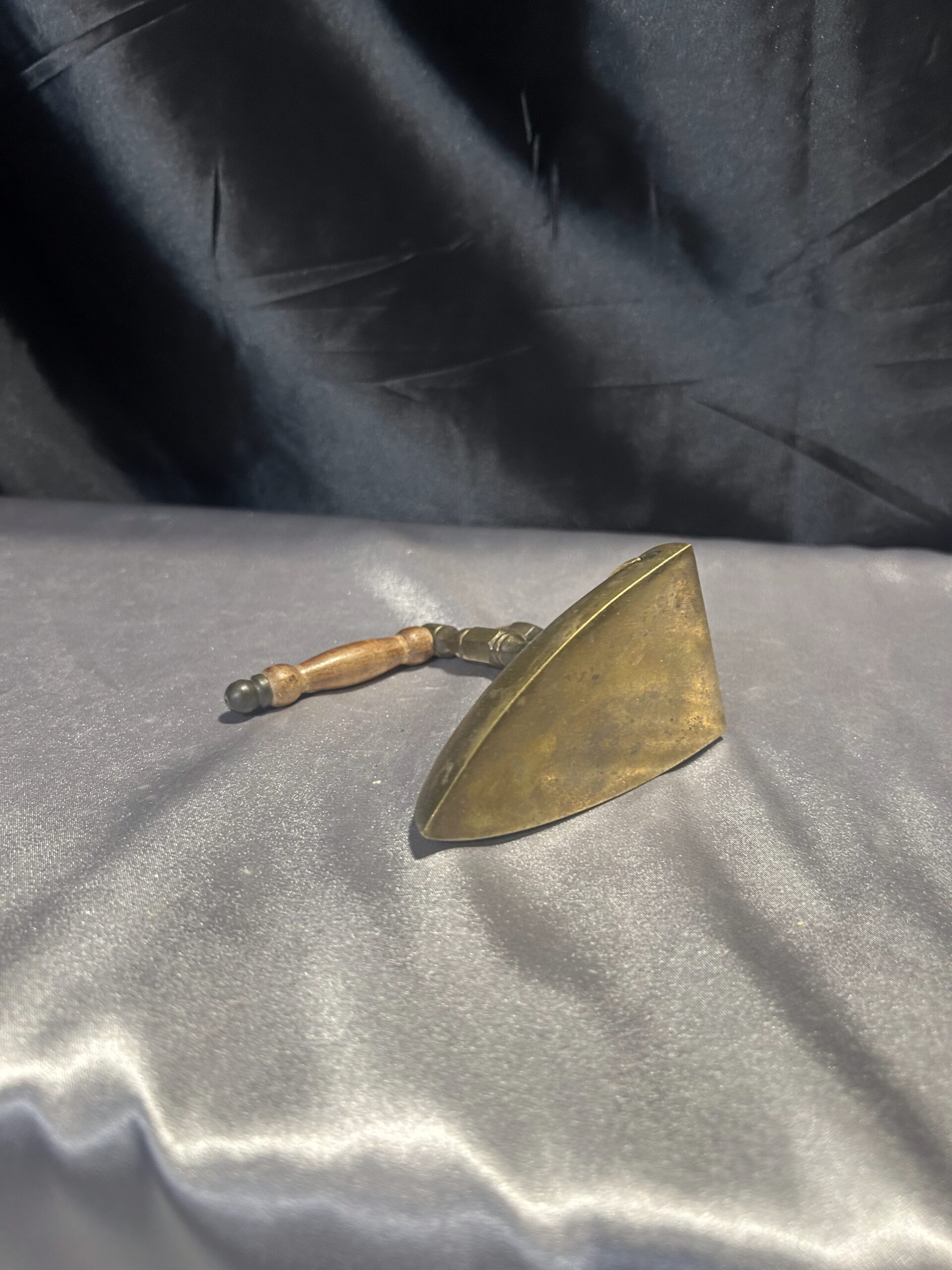Żelazko do Mankietów – Mosiężne Vintage z Drewnianą Rączką