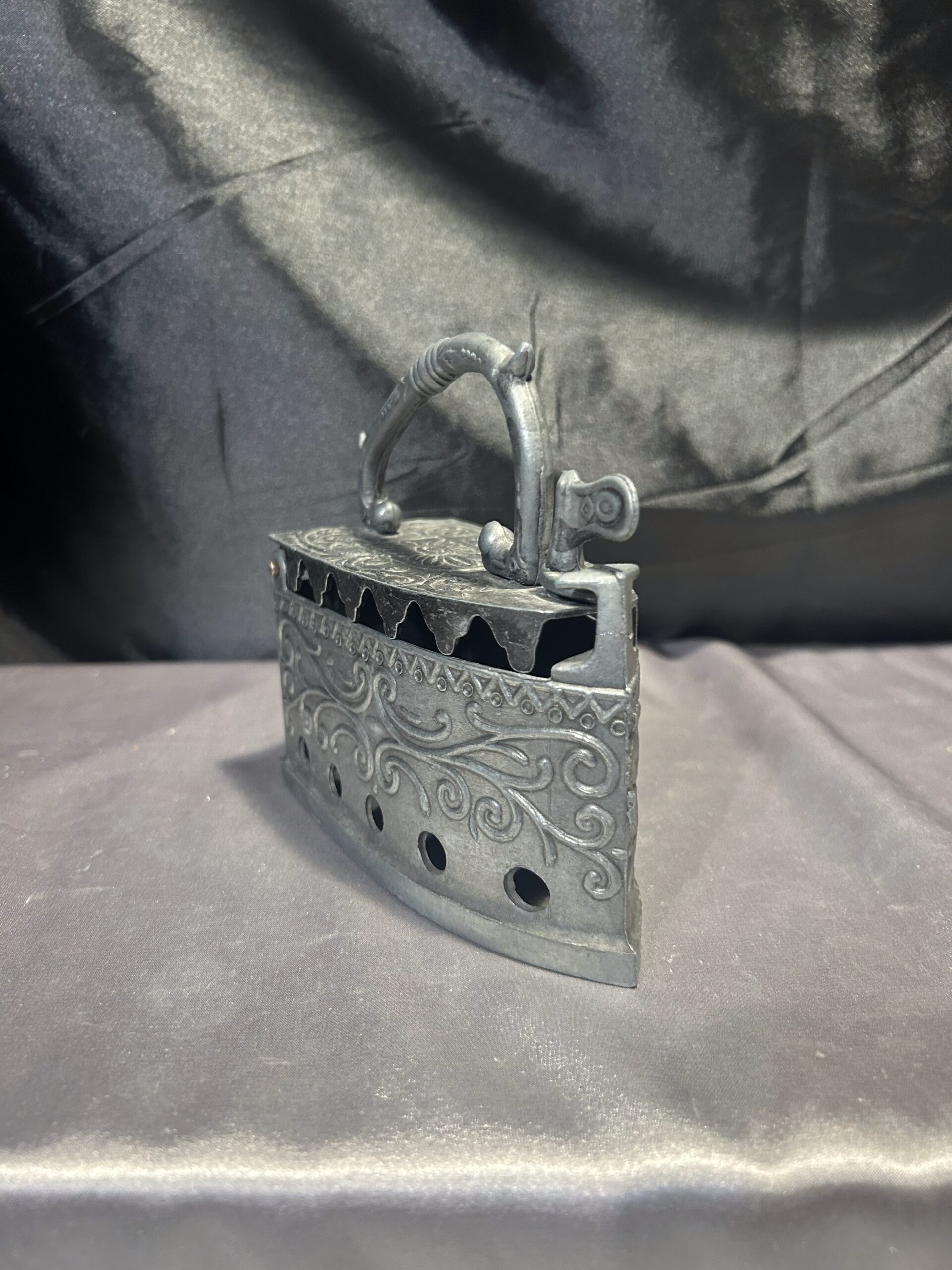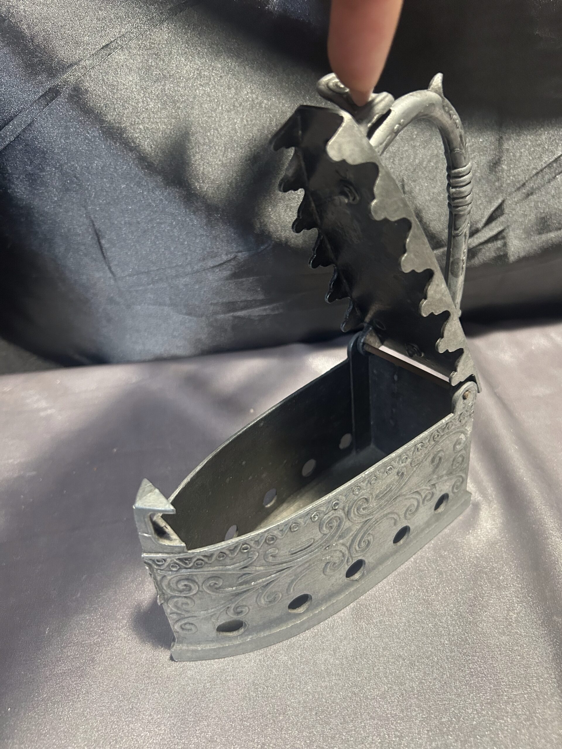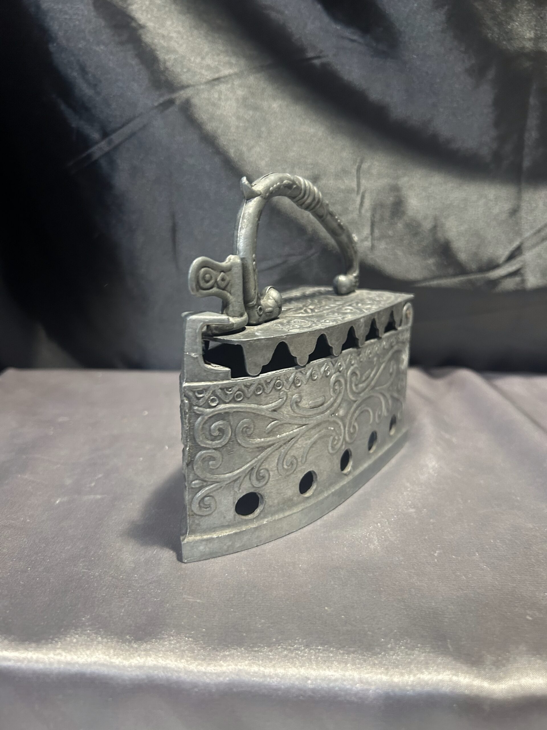Wyjątkowe żelazko zdobione, stworzone z myślą o miłośnikach unikatowych antyków i oryginalnych dodatków. Przeznaczone do używania z węgielkami, łączy w sobie funkcjonalność z artystycznym stylem. Żelazko zamykane od góry gwarantuje, że węgielki pozostaną bezpiecznie wewnątrz, a jego klasyczny design wprowadza do wnętrza nutę vintage i rustykalnego uroku.