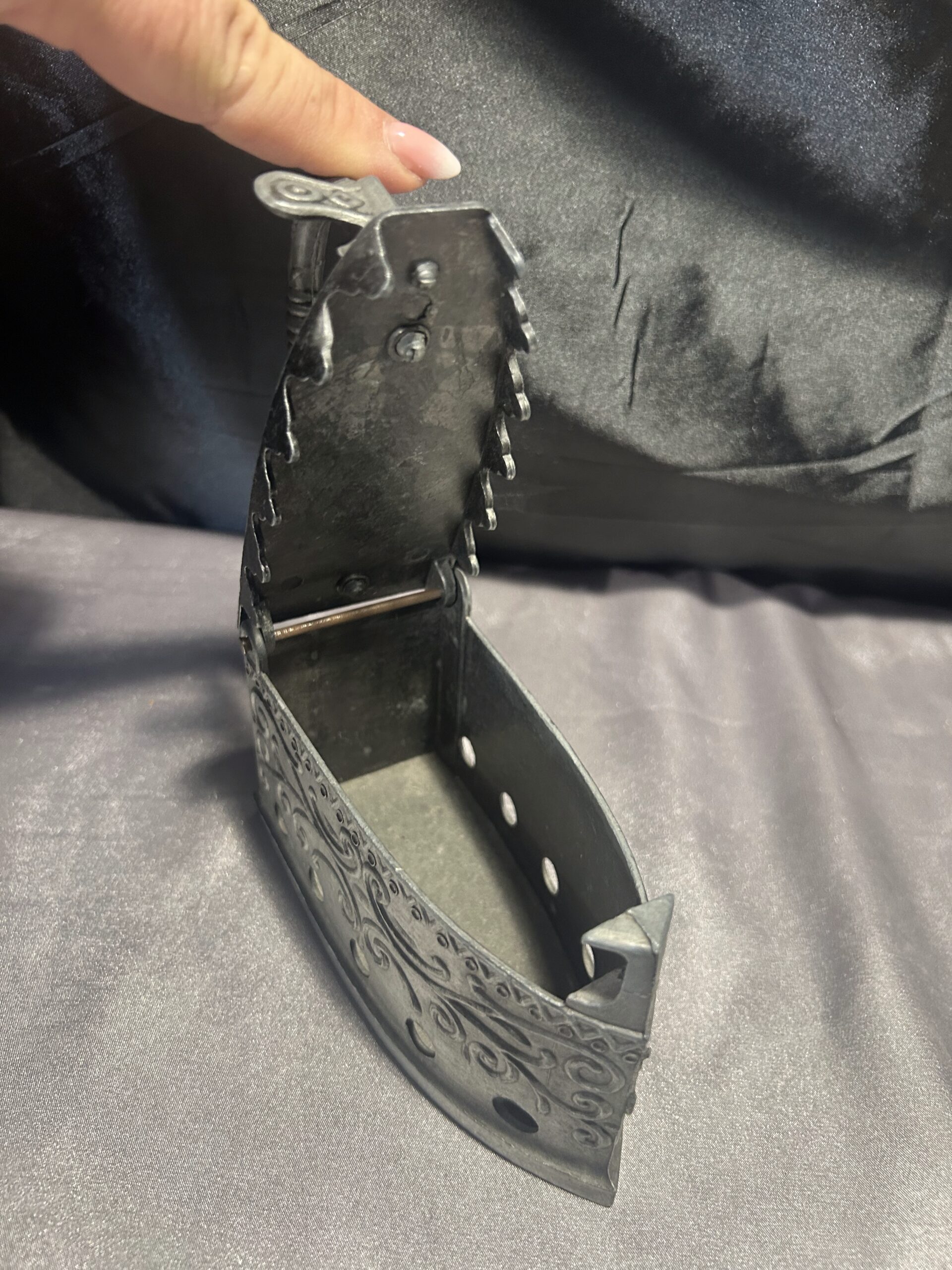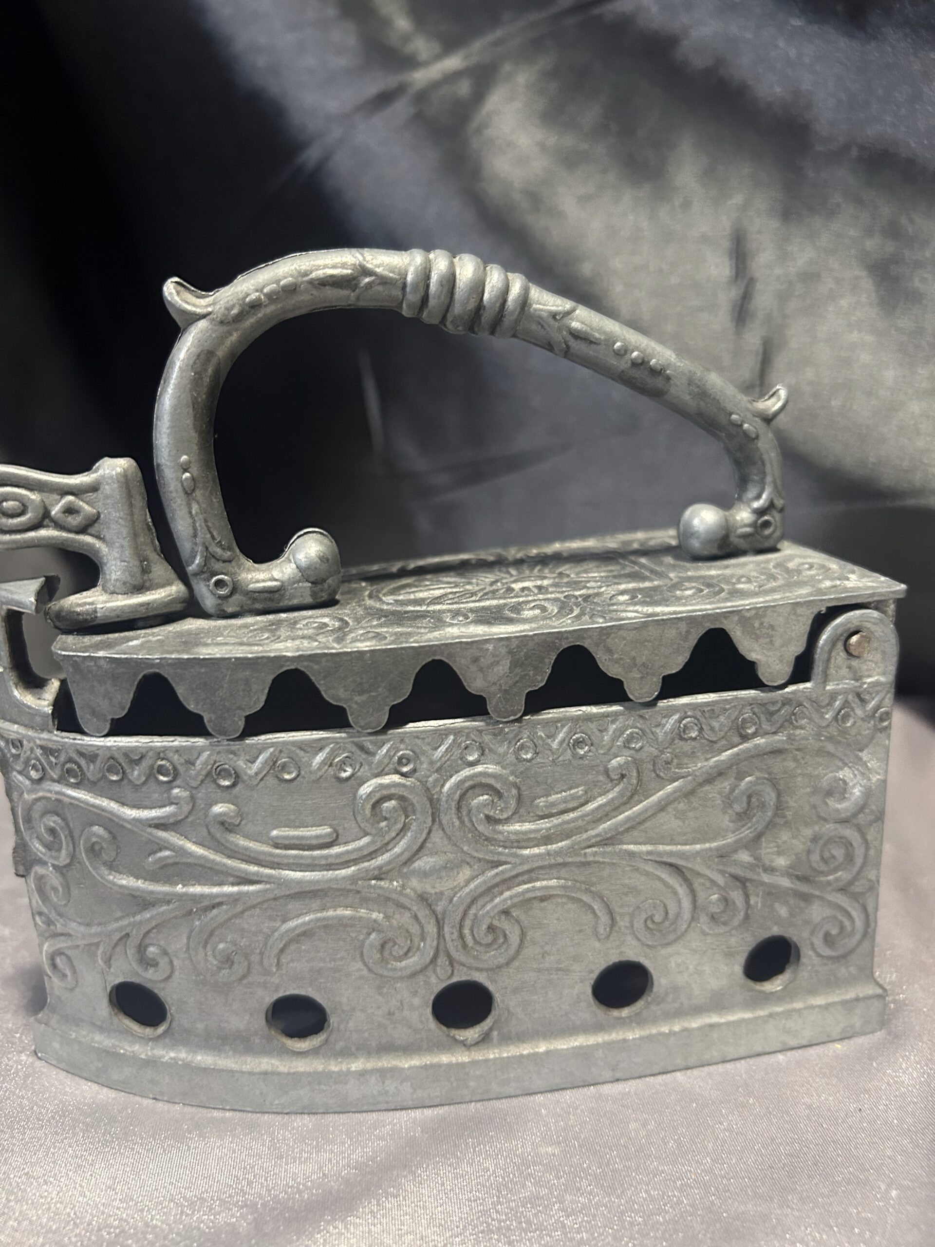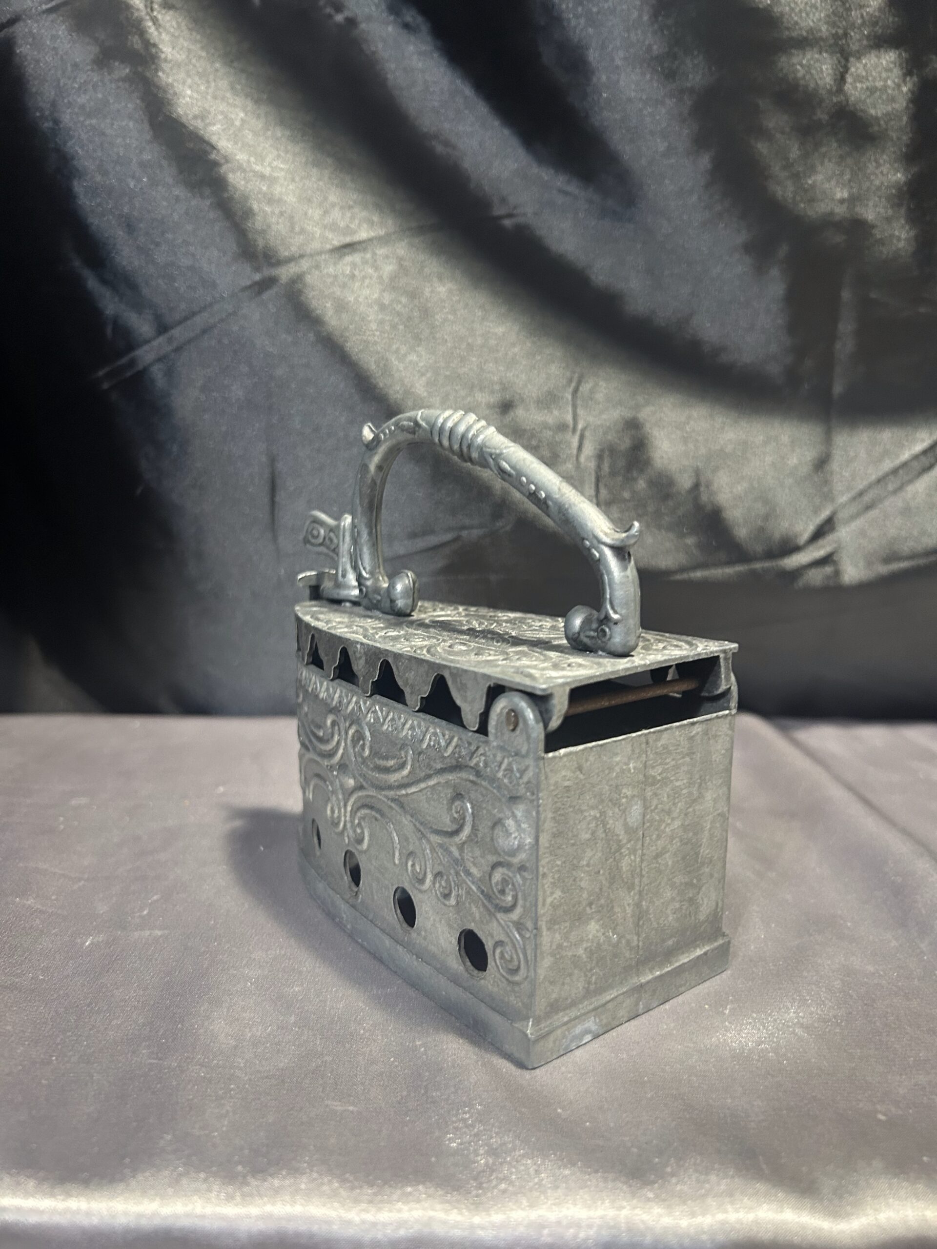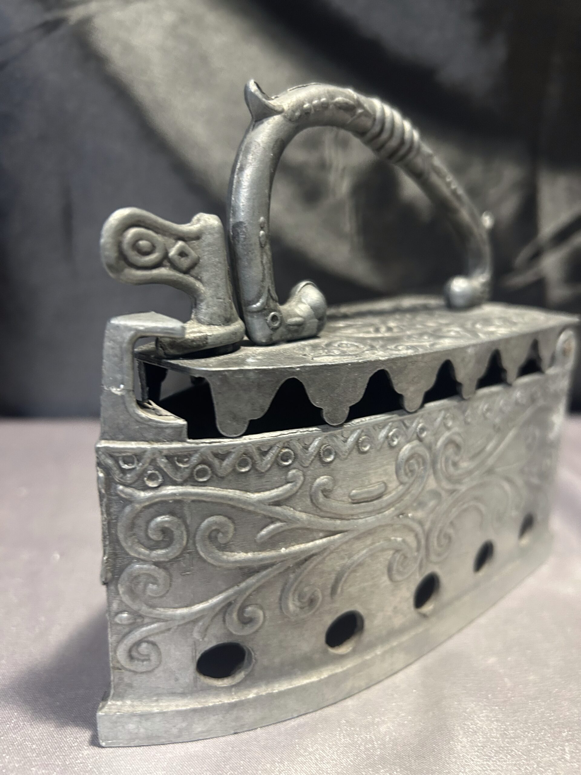 Wyjątkowe żelazko zdobione, stworzone z myślą o miłośnikach unikatowych antyków i oryginalnych dodatków. Przeznaczone do używania z węgielkami, łączy w sobie funkcjonalność z artystycznym stylem. Żelazko zamykane od góry gwarantuje, że węgielki pozostaną bezpiecznie wewnątrz, a jego klasyczny design wprowadza do wnętrza nutę vintage i rustykalnego uroku.