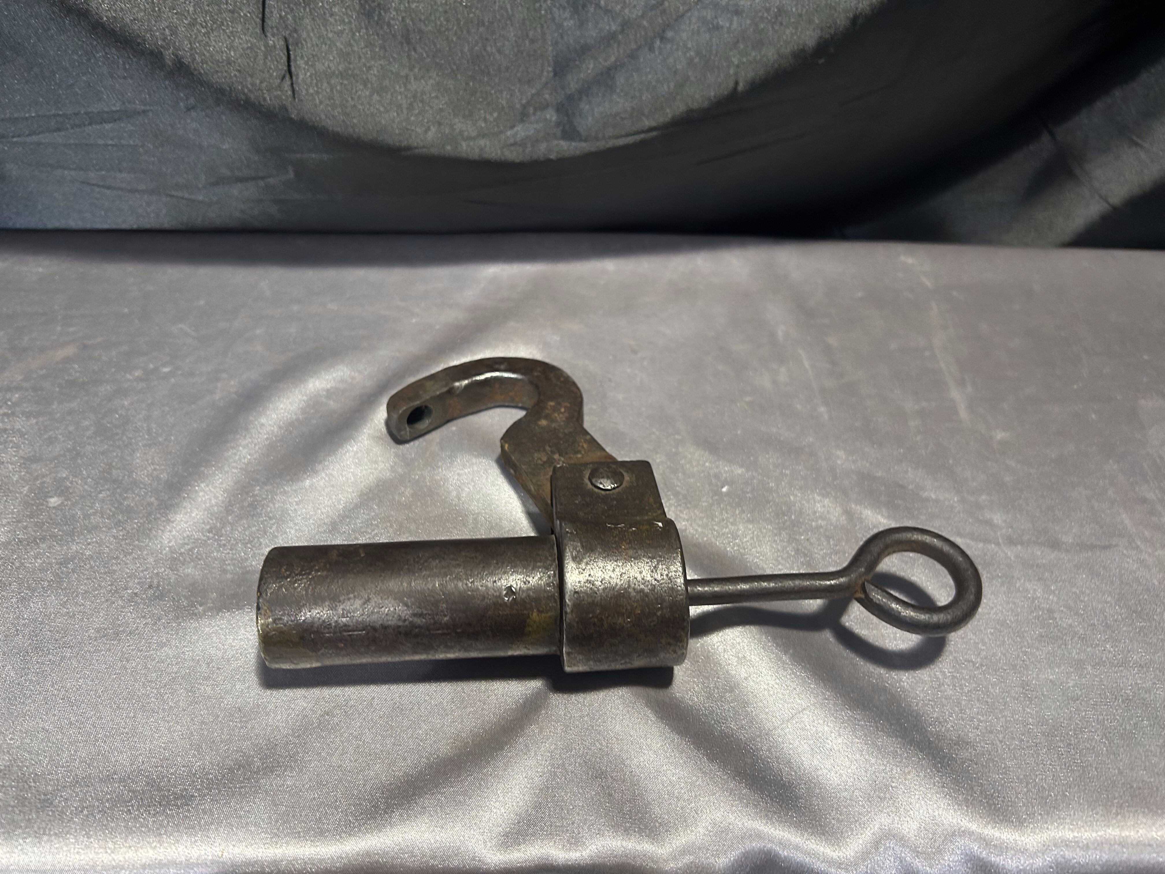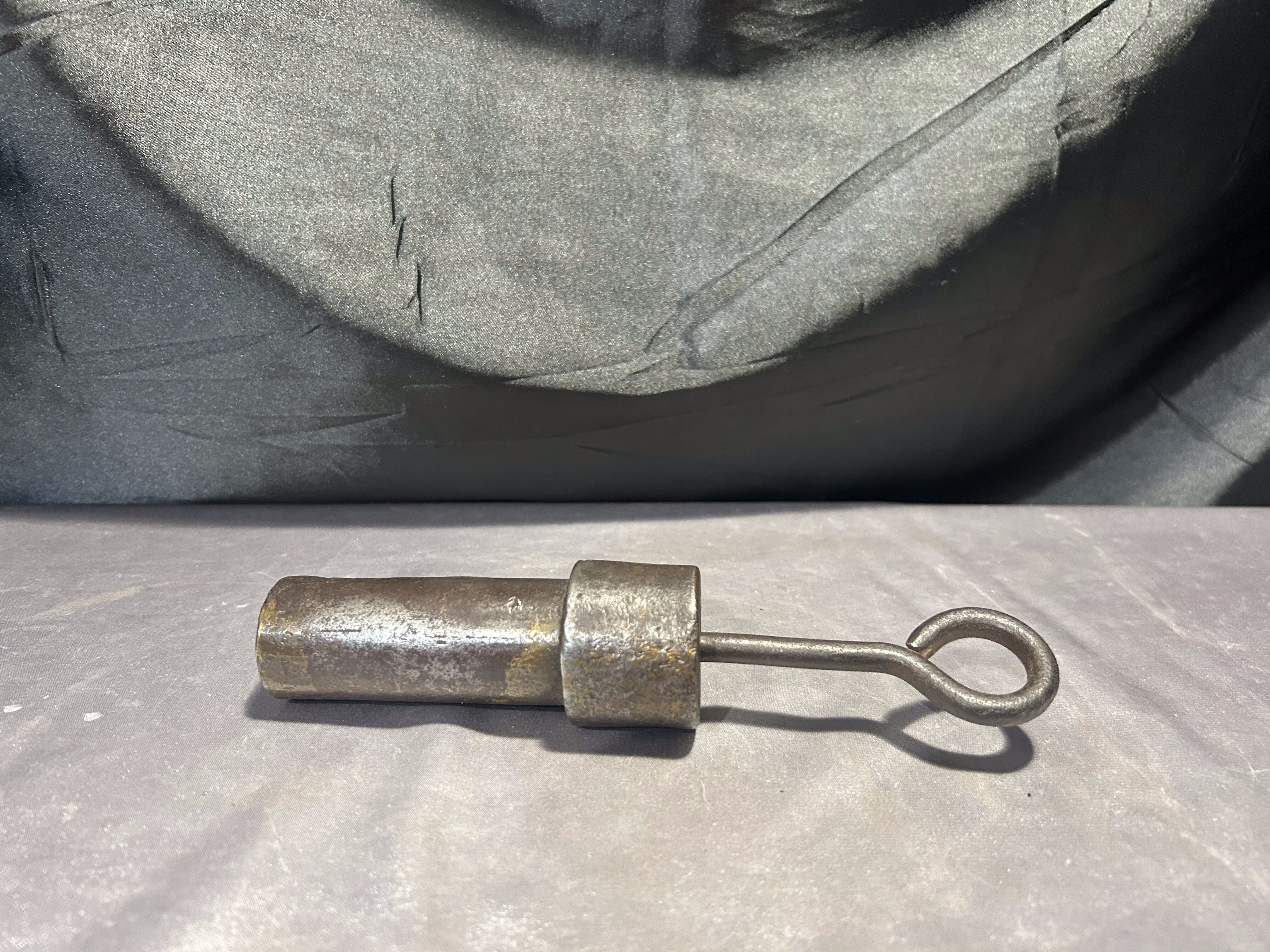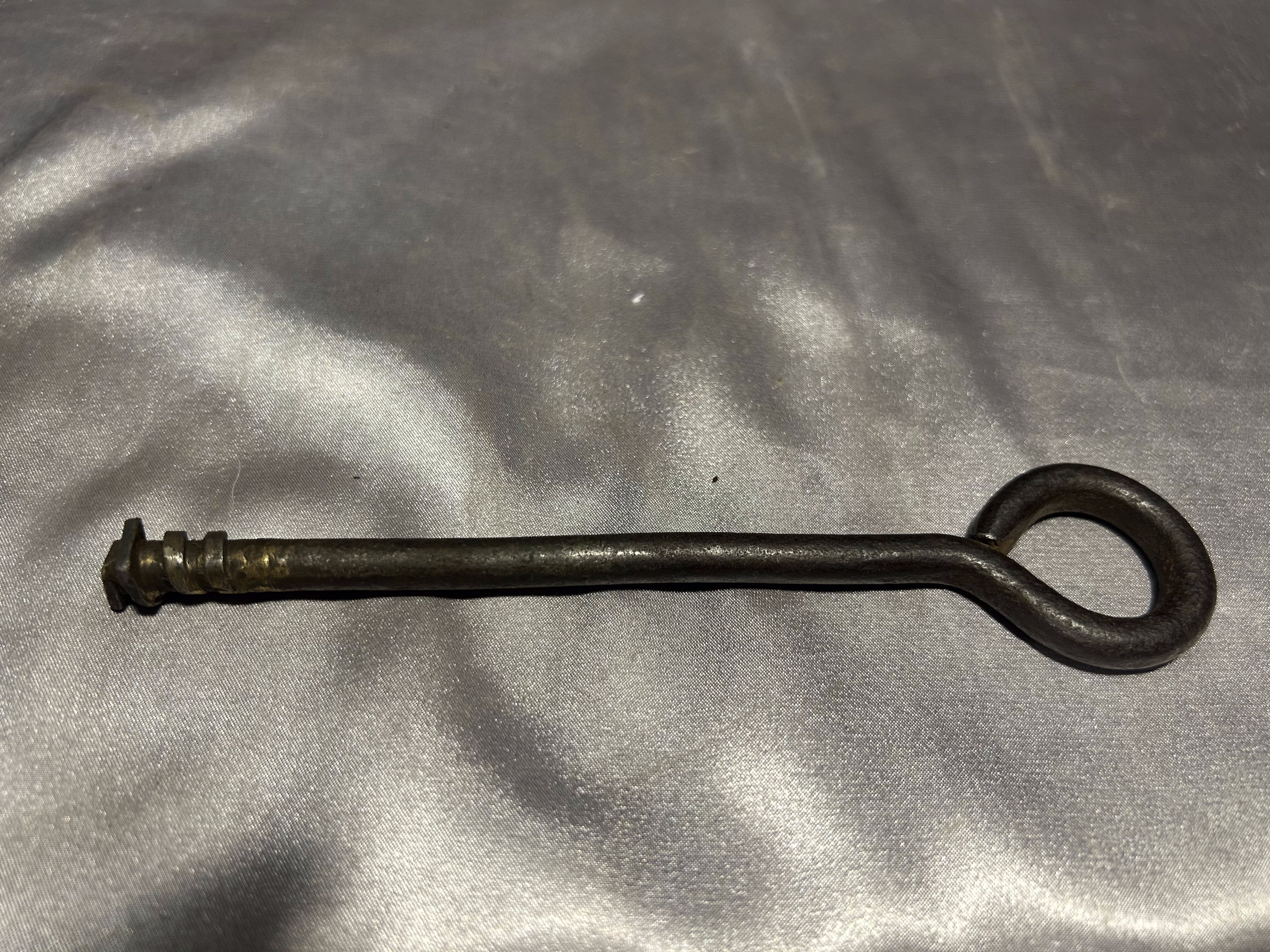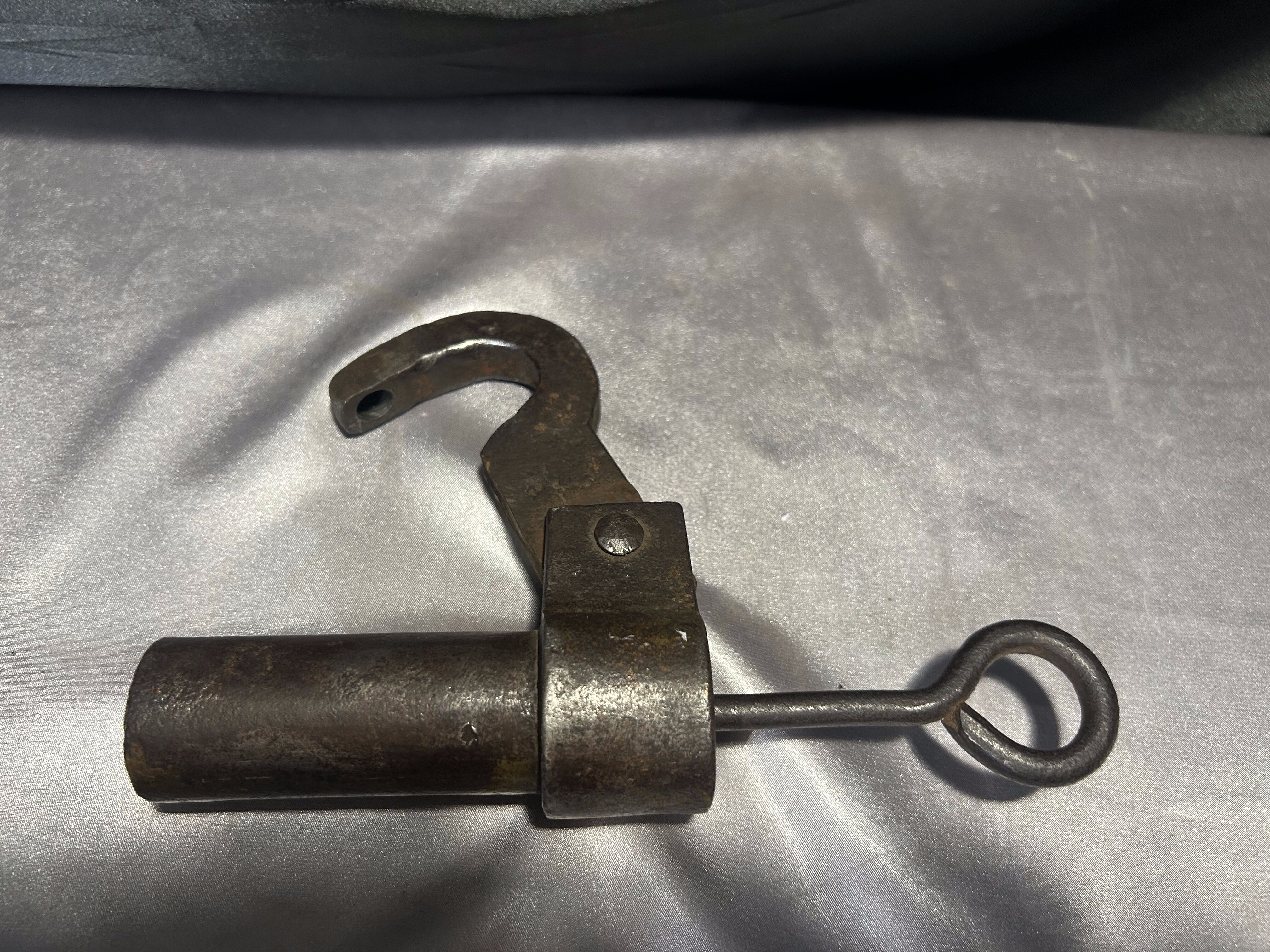 Na sprzedaż unikalna żeliwna kłódka ze spiralnym kluczem, w pełni sprawna. Kształtem przypomina kłódkę kowalską, jednak według informacji uzyskanych od poprzedniego właściciela, podobne modele były używane do zabezpieczania więźniów na statkach. Solidna i ciężka konstrukcja świadczy o jej autentyczności i dawnym zastosowaniu.