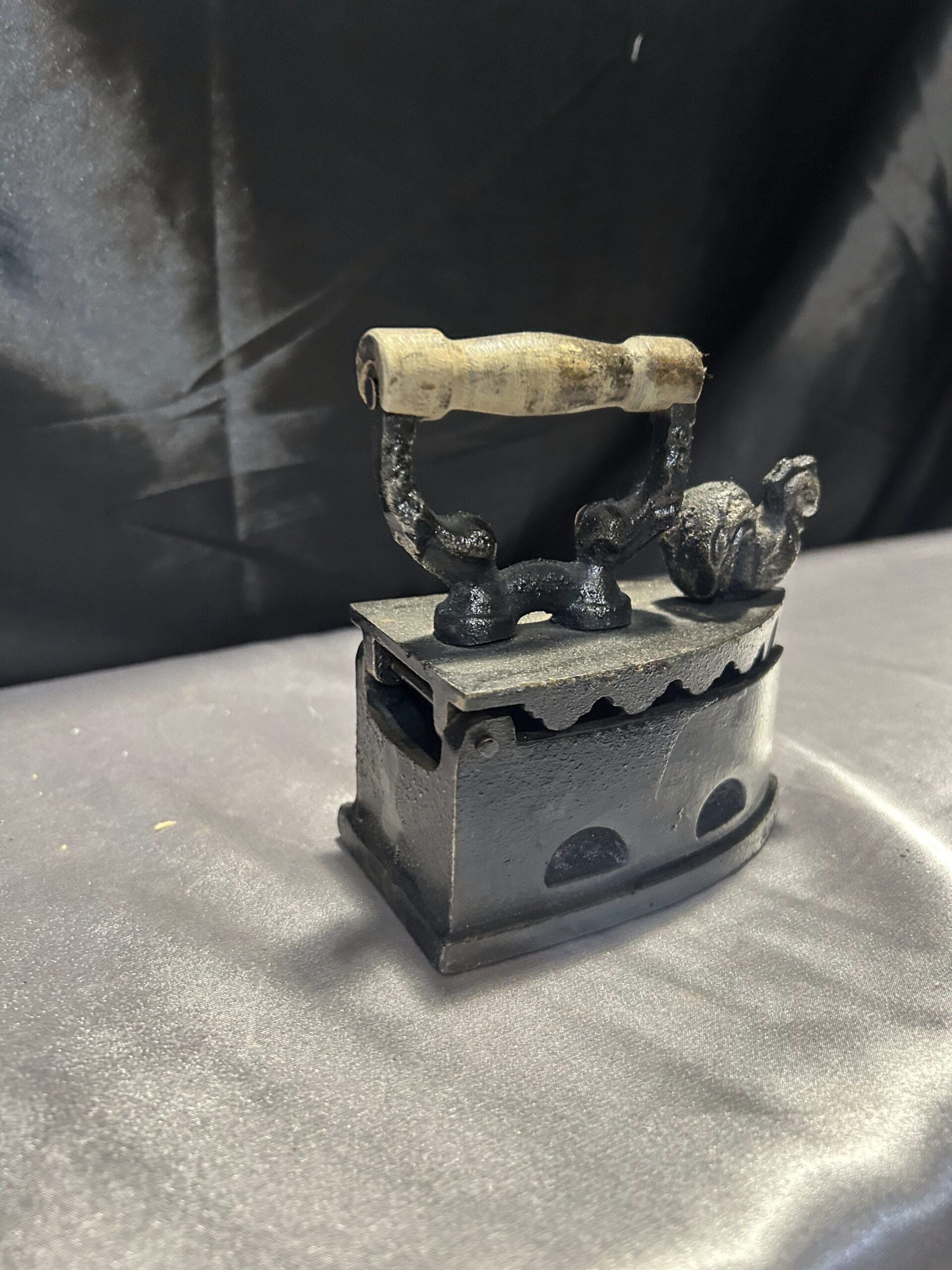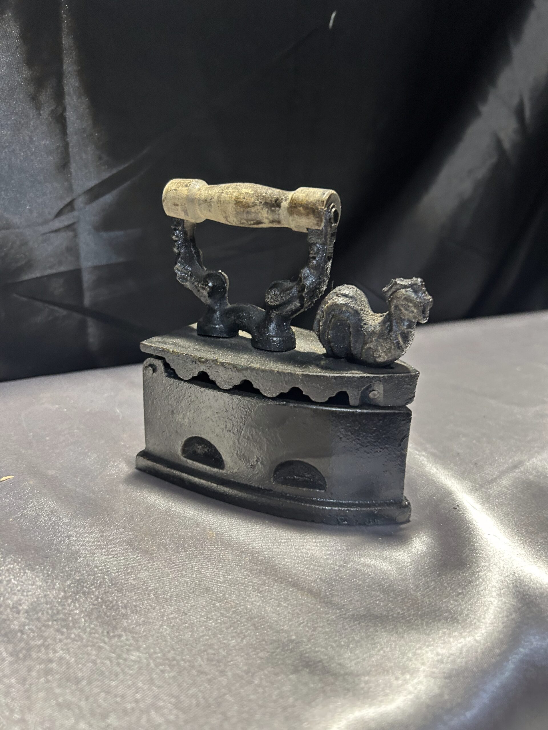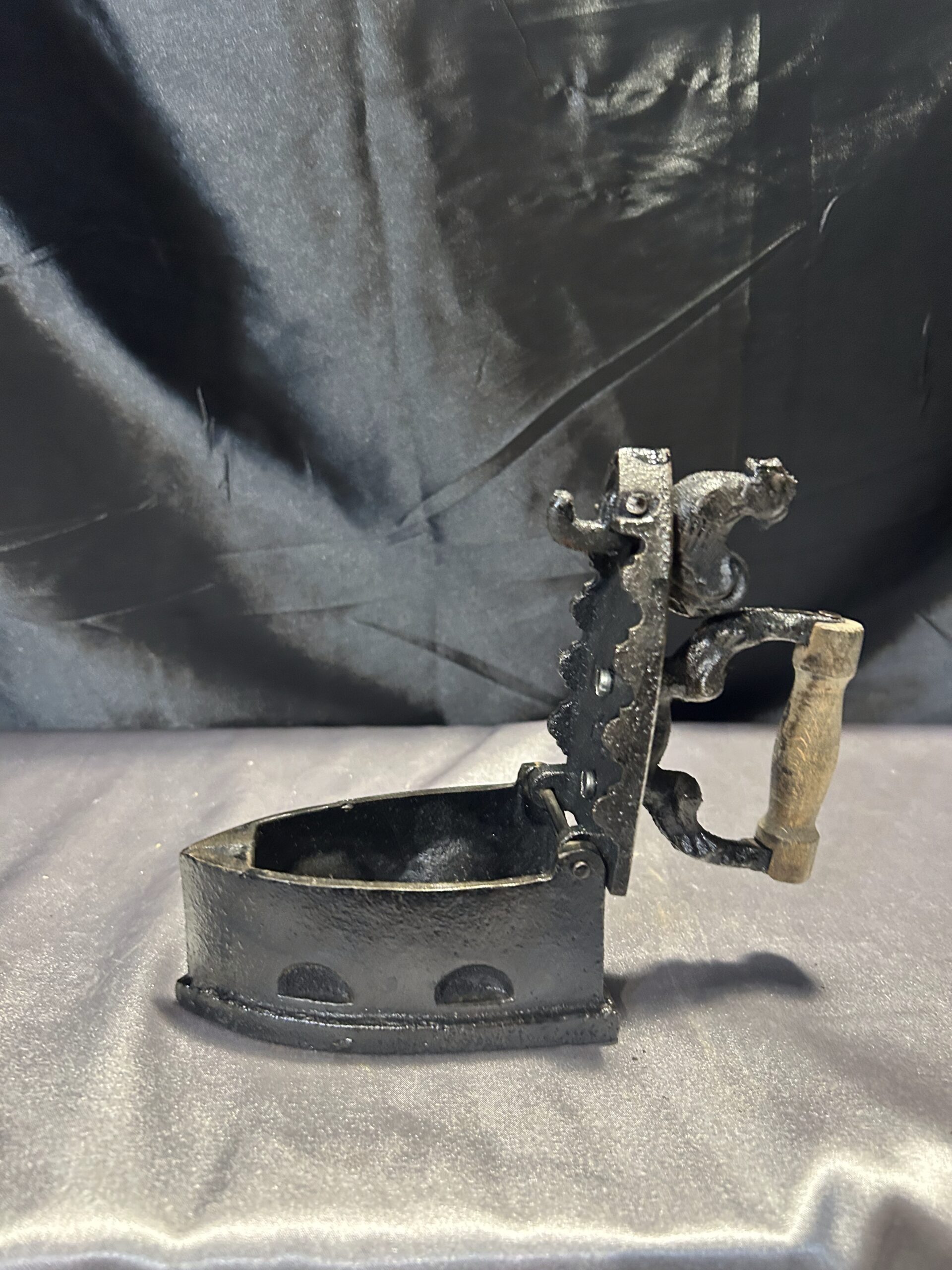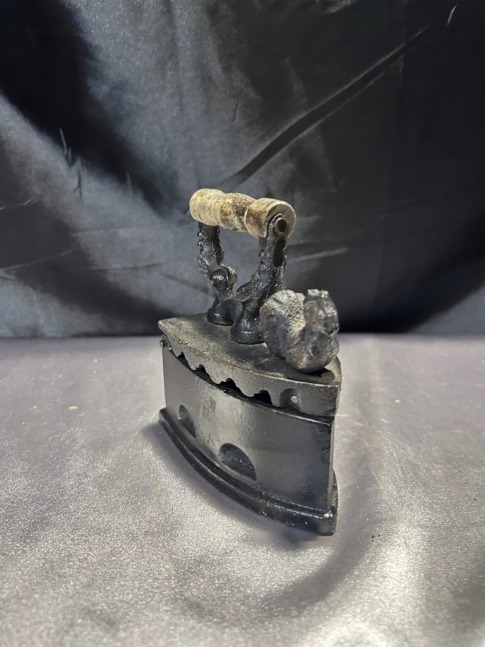 Żeliwne Żelazko Vintage – Sygnowane NR 4 z Drewnianą Rączką