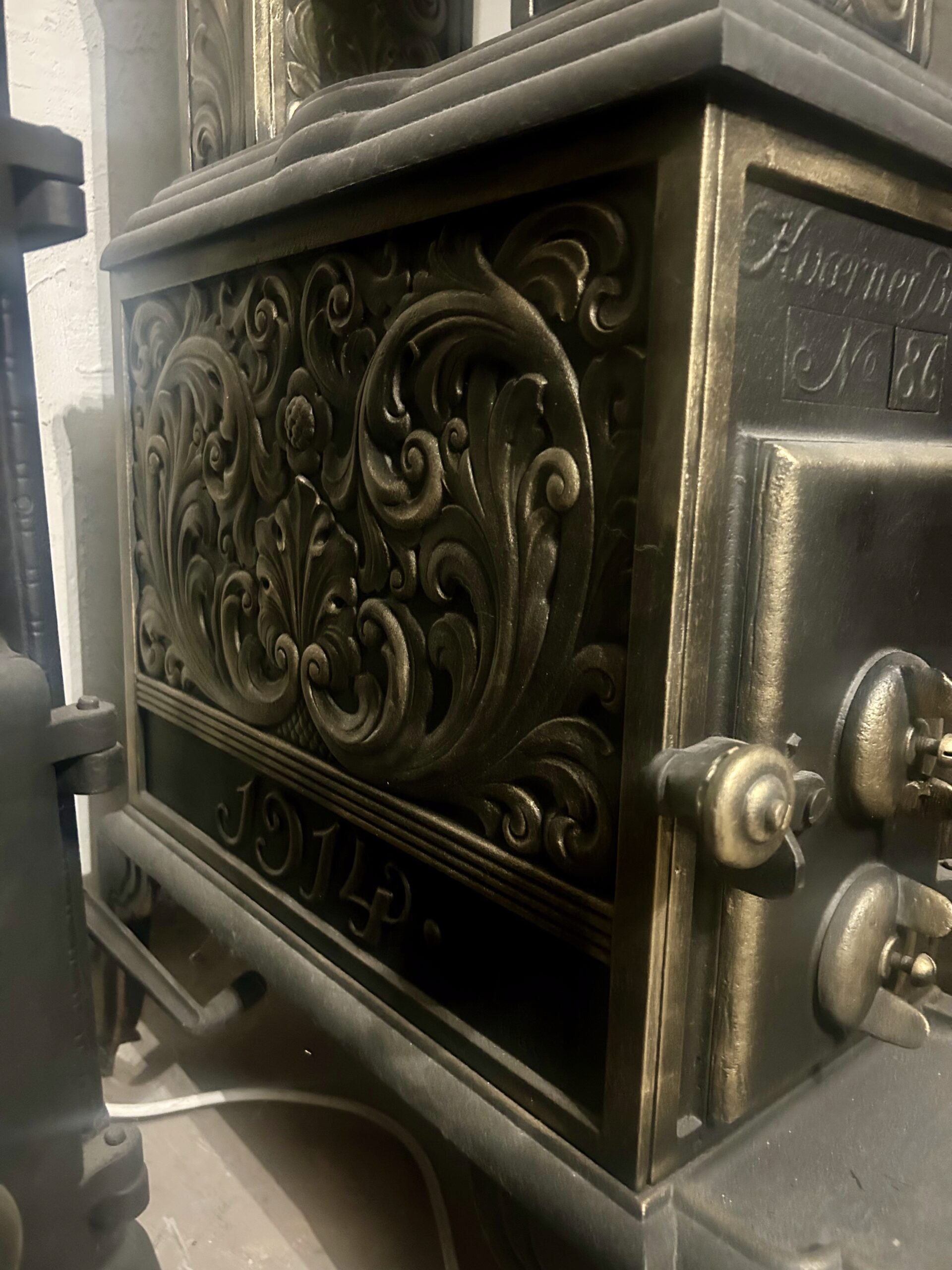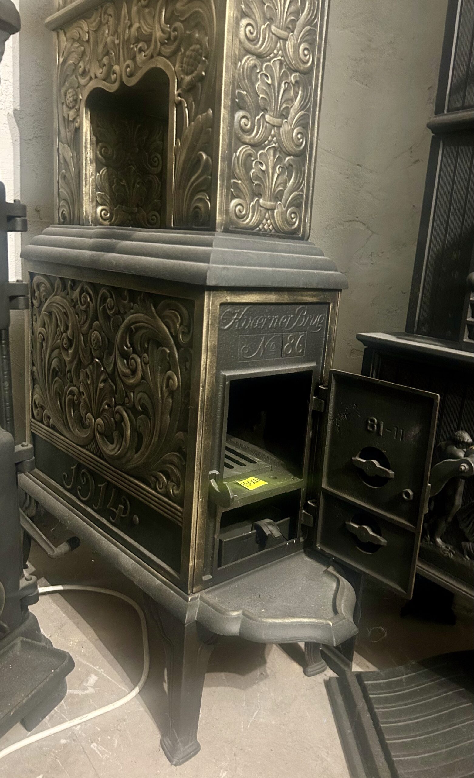Wyjątkowy piec żeliwny typu koza firmy Kvaerner Brug No 86, wyróżniający się solidnym wykonaniem i funkcjonalnością. Piec posiada: