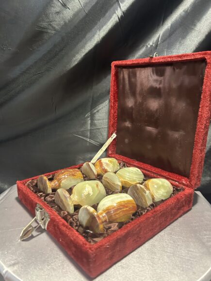 Zestaw 6 kieliszków z onyksu w oryginalnym etui – Pakistan – unikatowa kolekcja