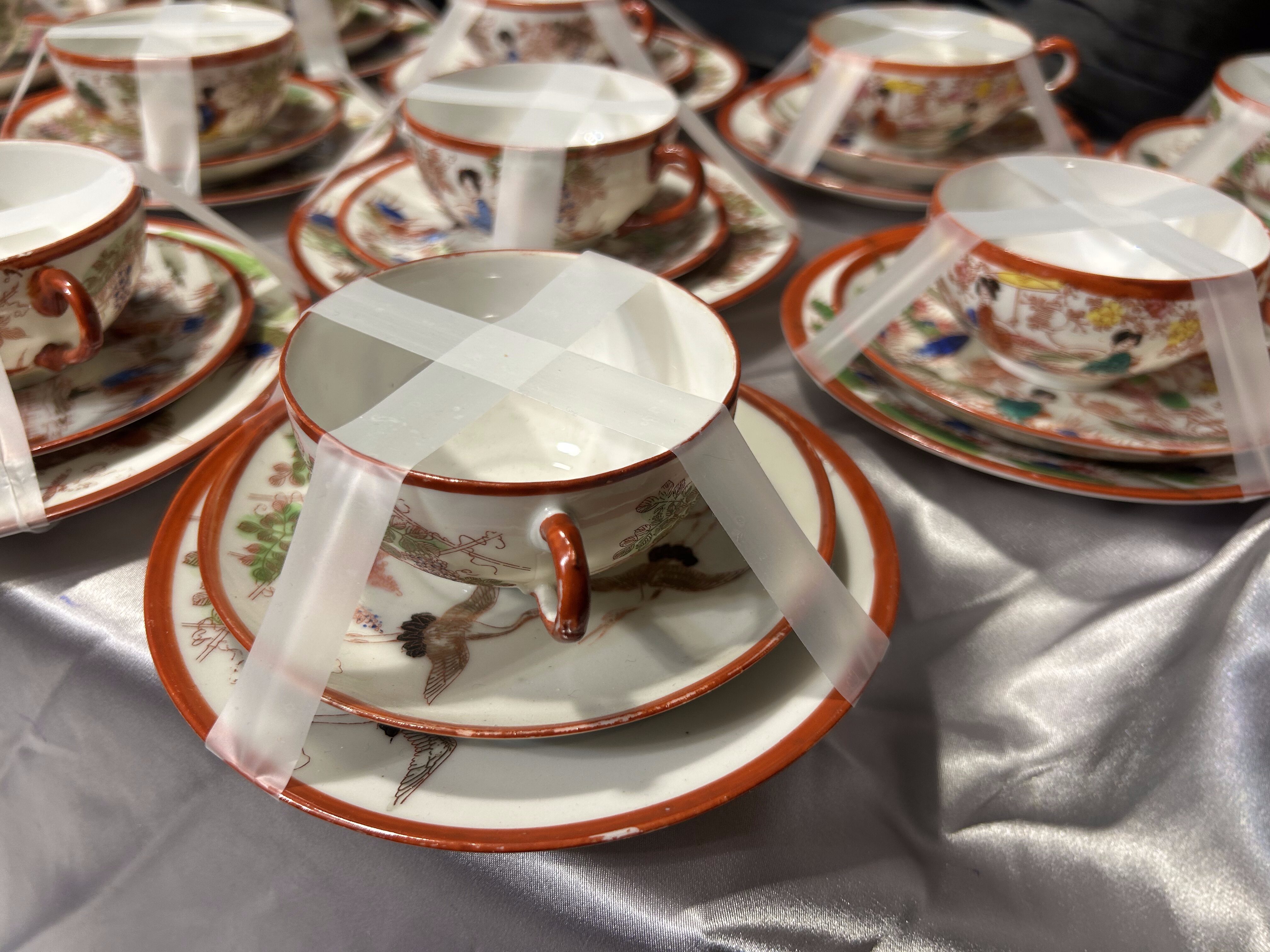 Zestaw 12 filiżanek Trio – Japonia – porcelana orientalna – dekoracyjne sceny