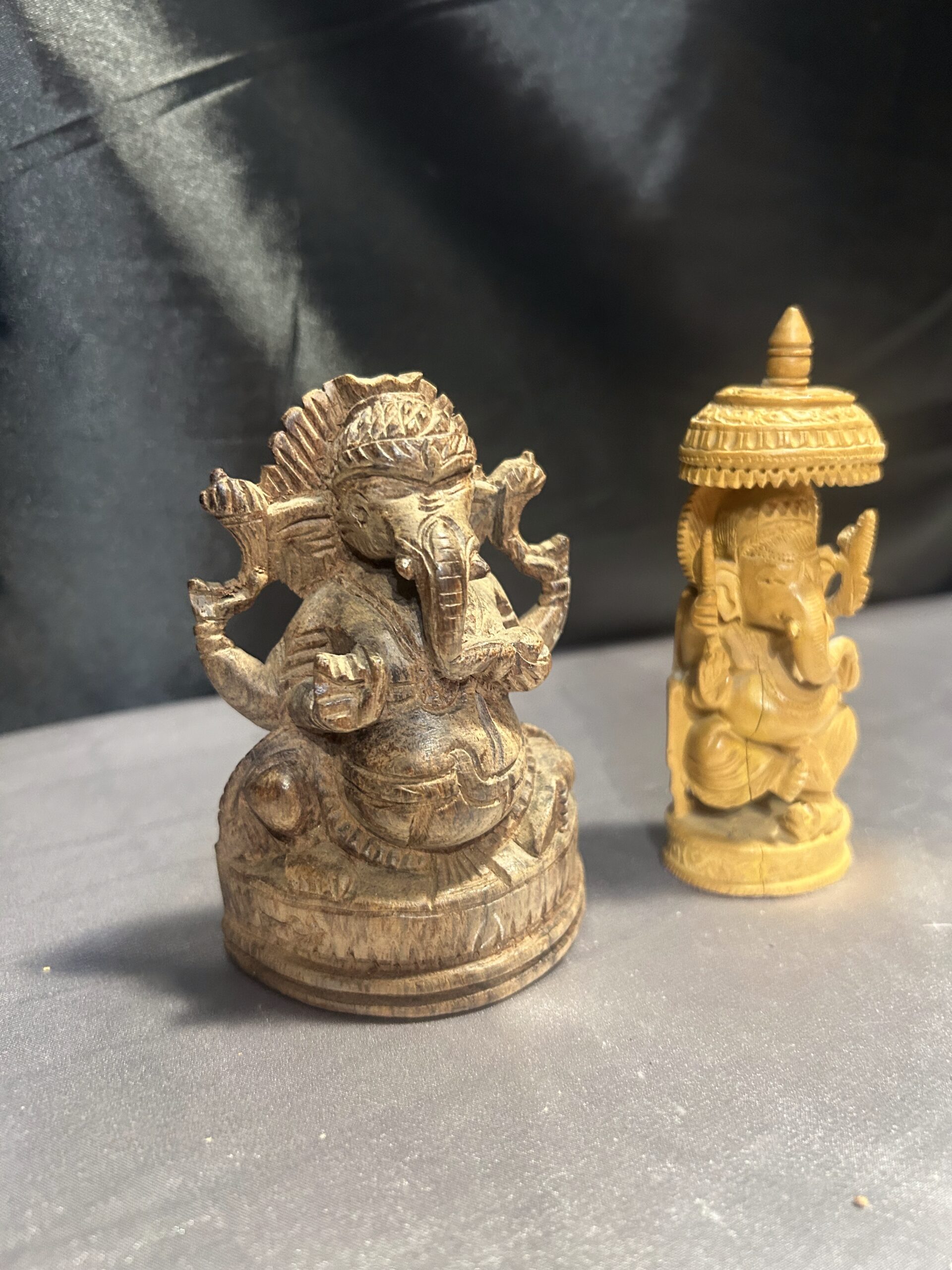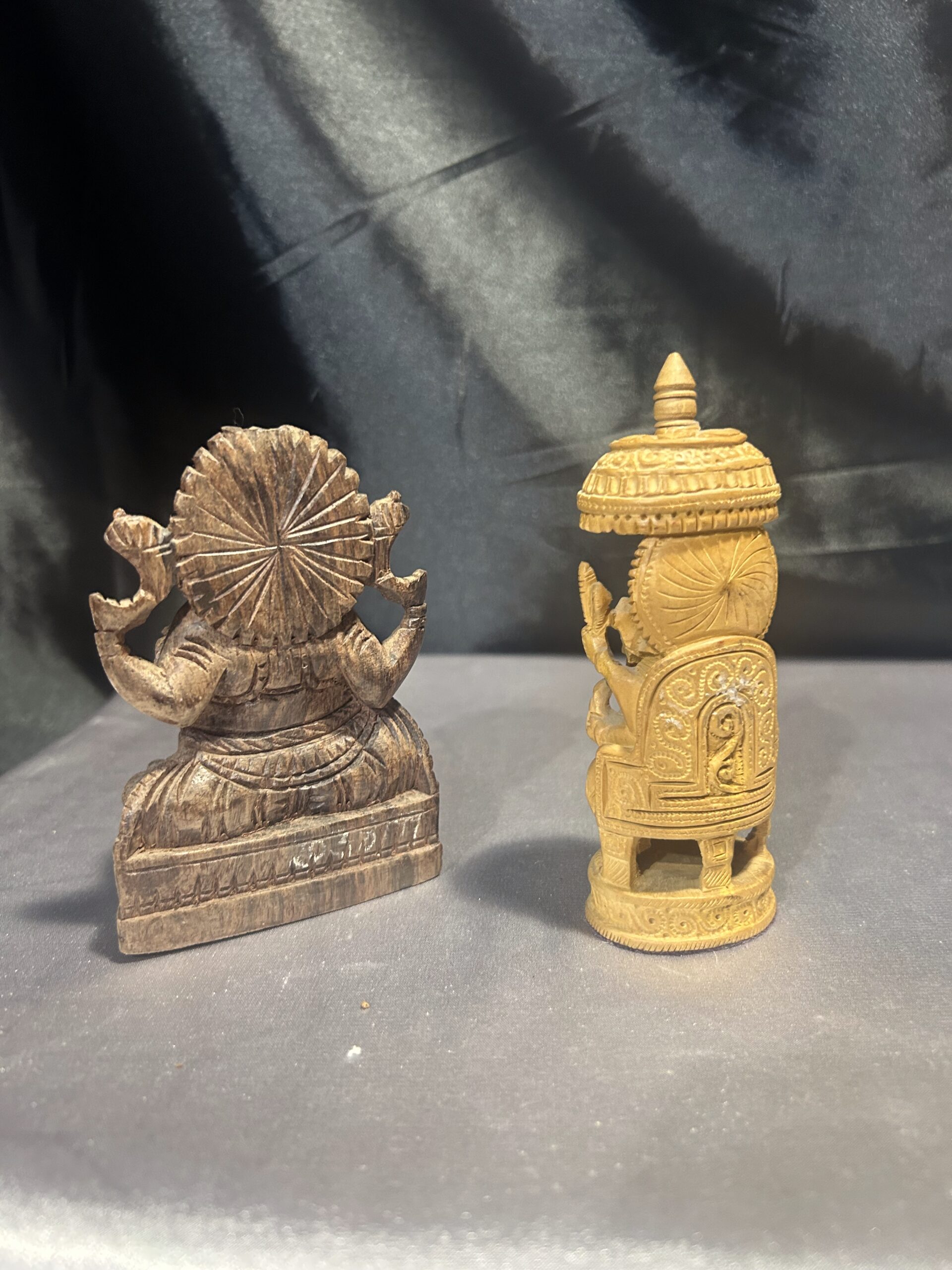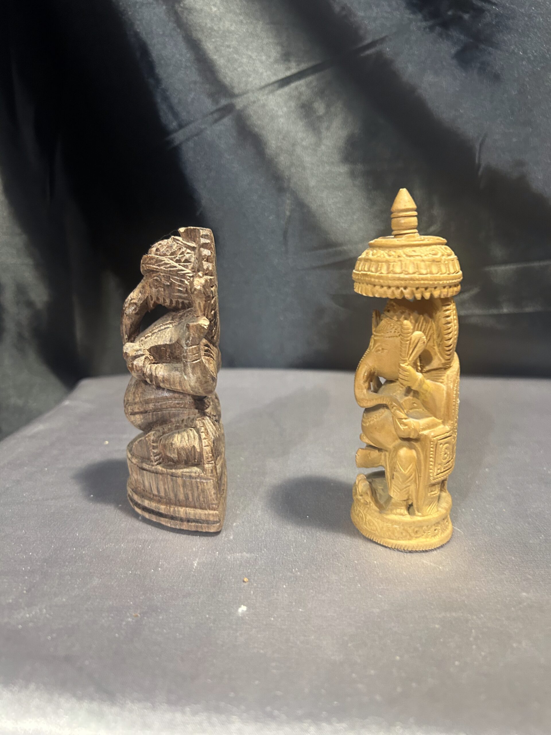 Zestaw 2 Drewnianych Figurek Ganesha – Ręcznie Rzeźbione, Jaśniejsze i Ciemniejsze Drewno