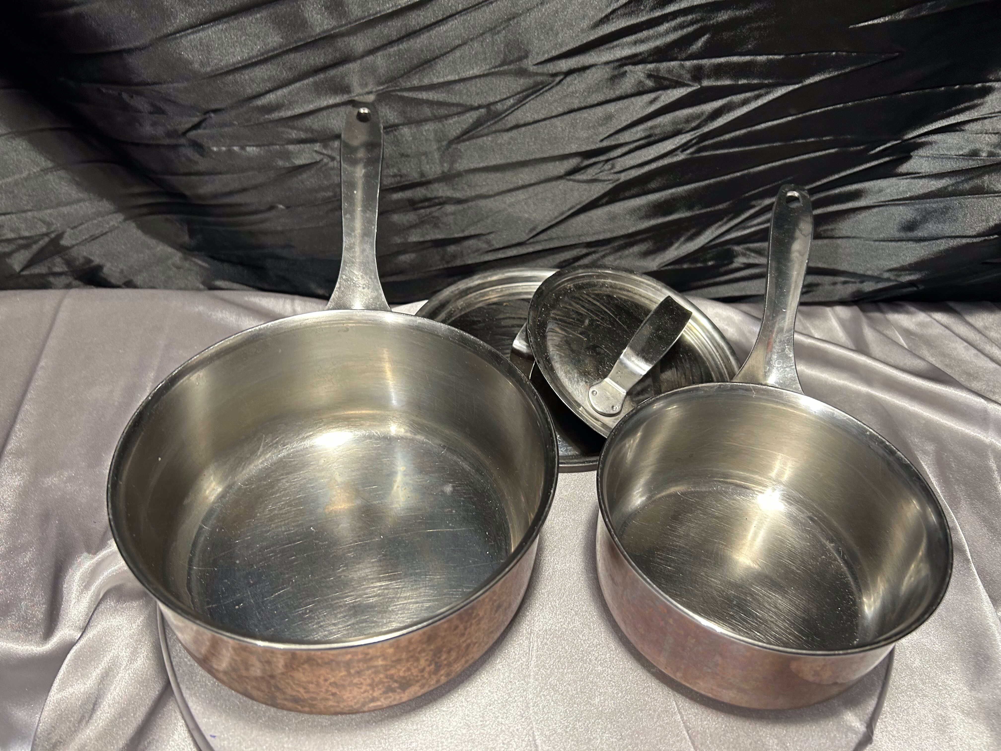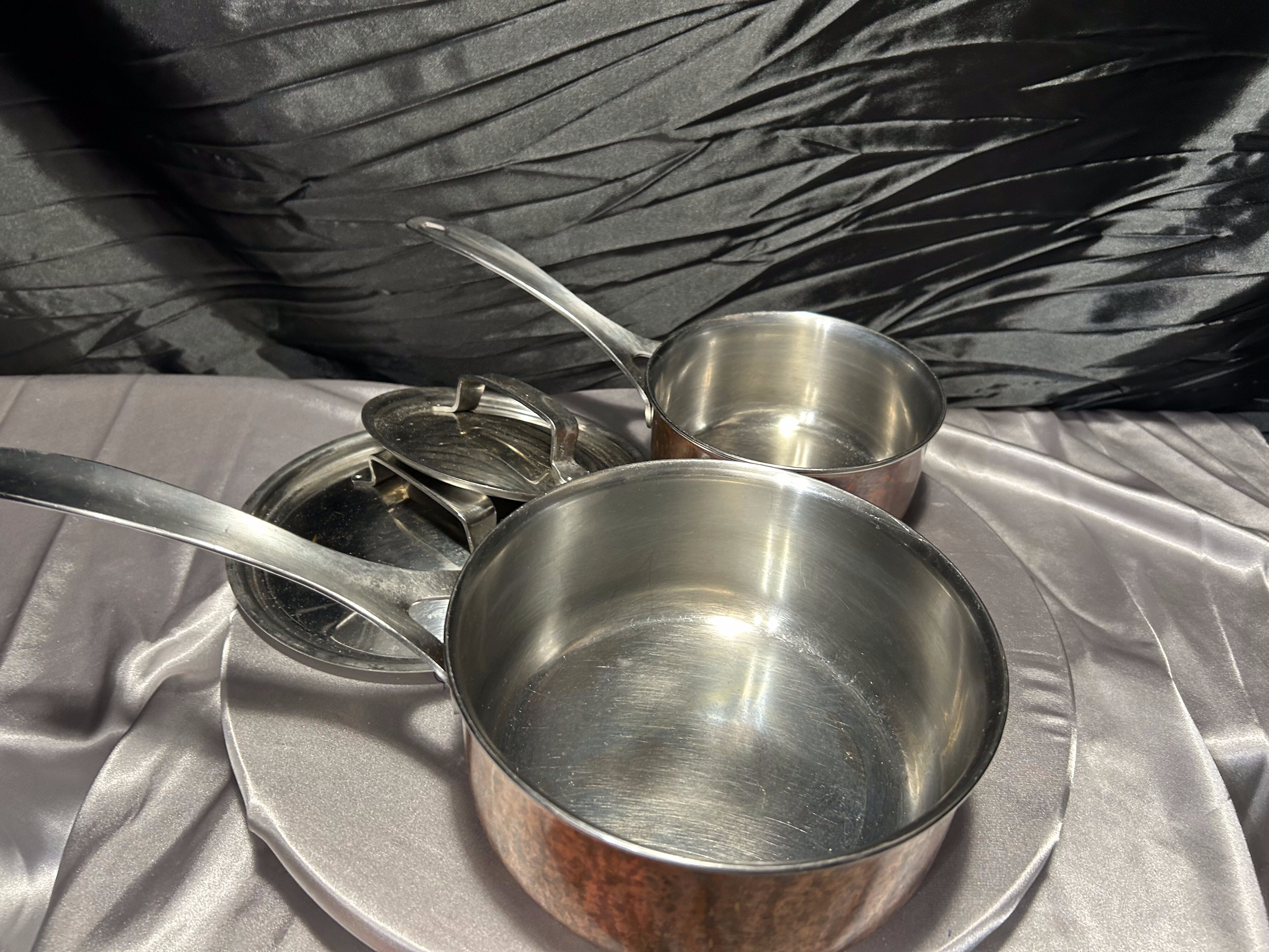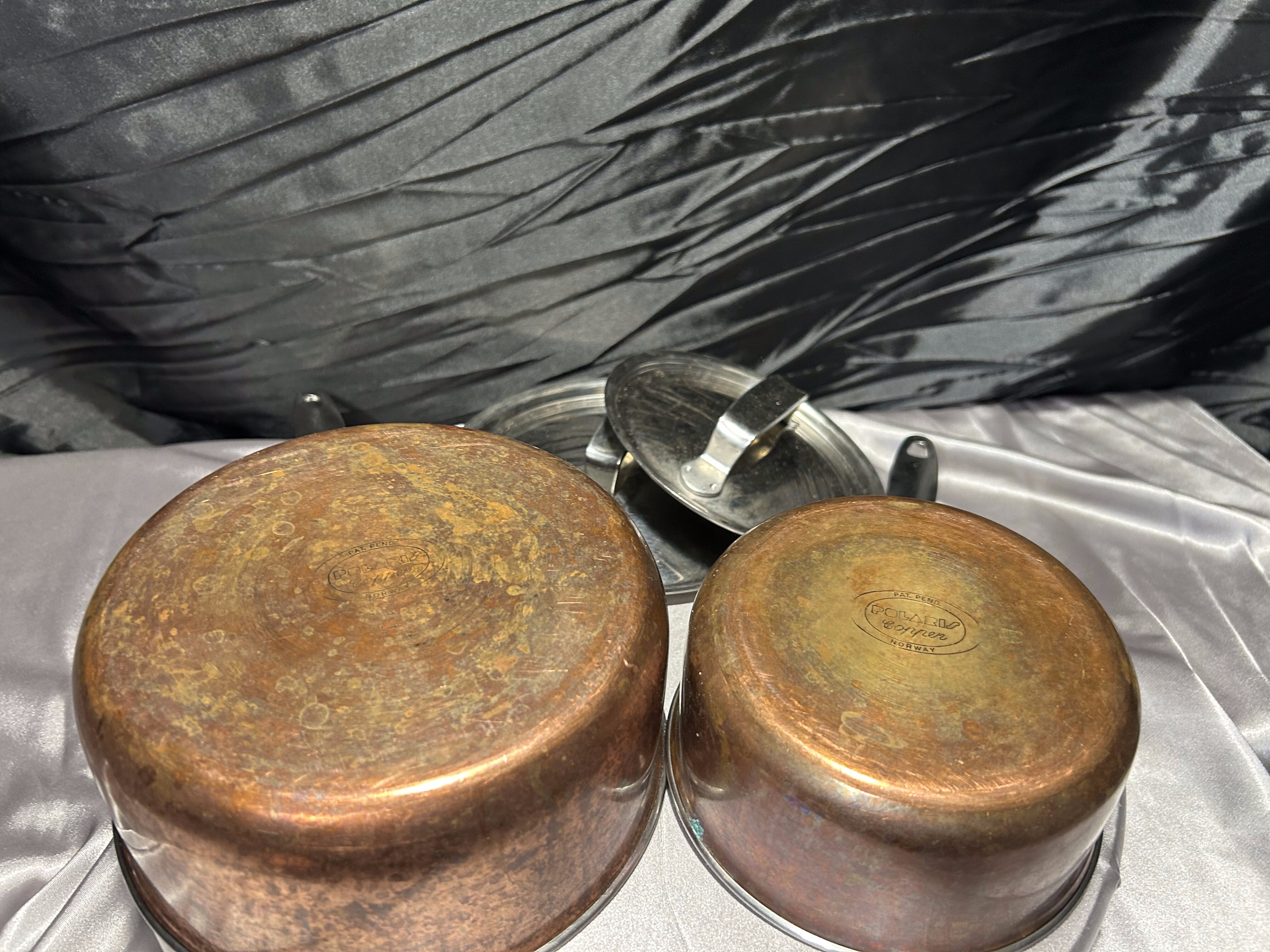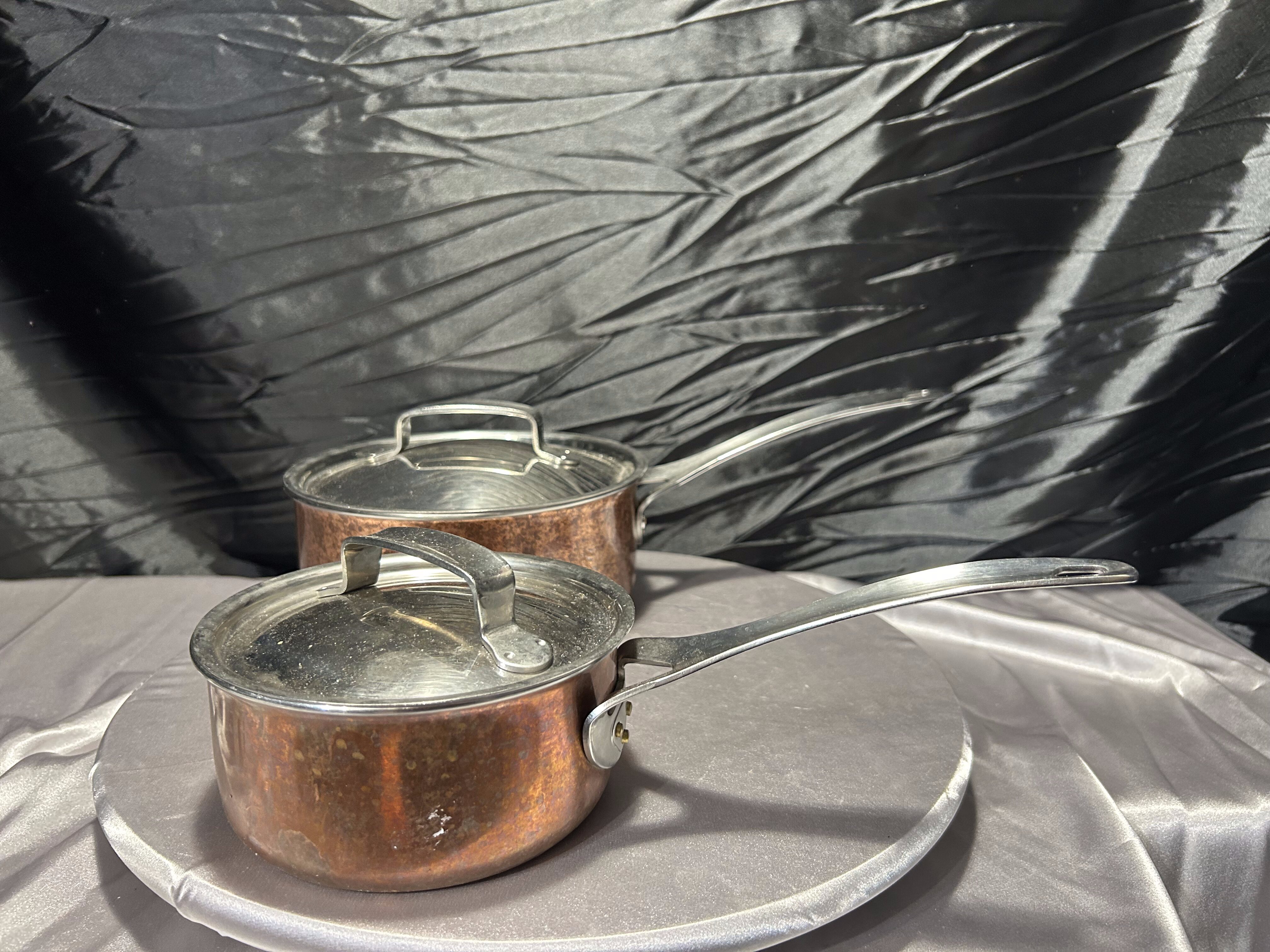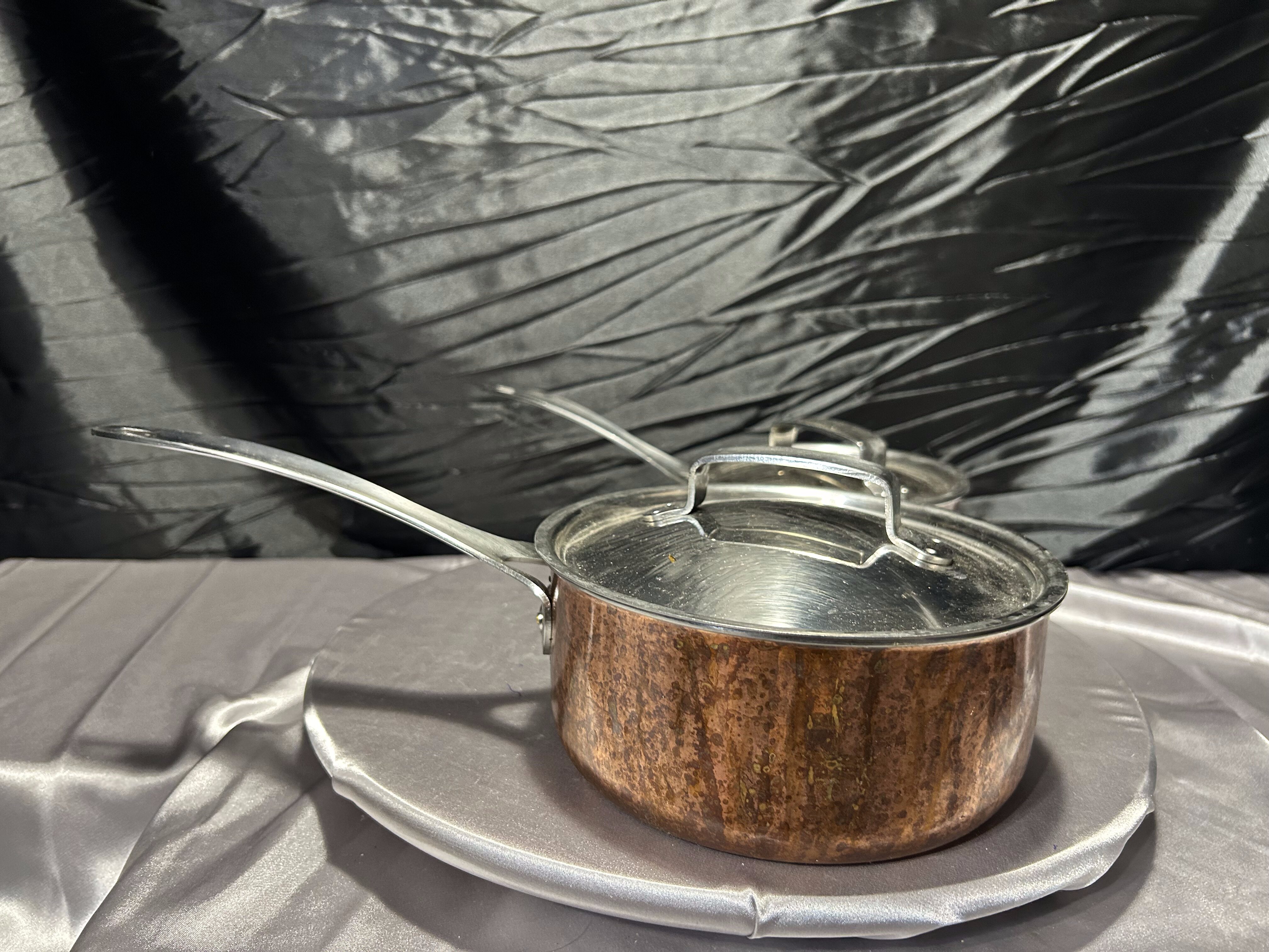 - Zestaw 2 garnków miedzianych Polaris z pokrywkami – sygnowany komplet kuchenny