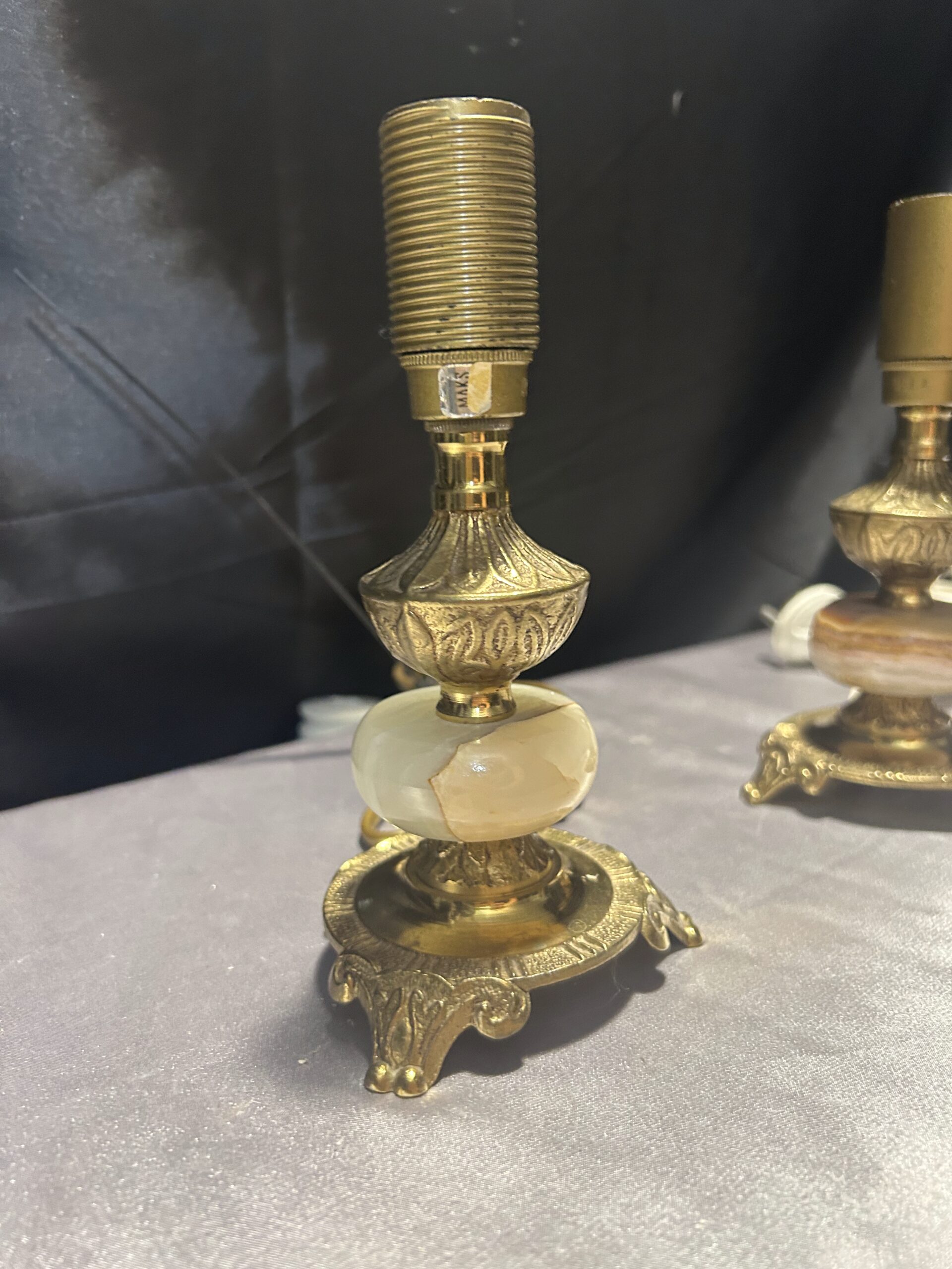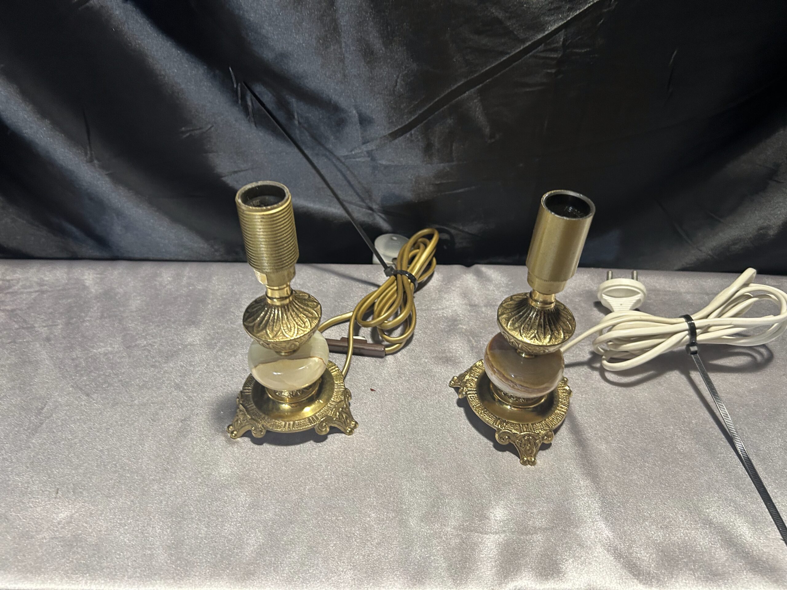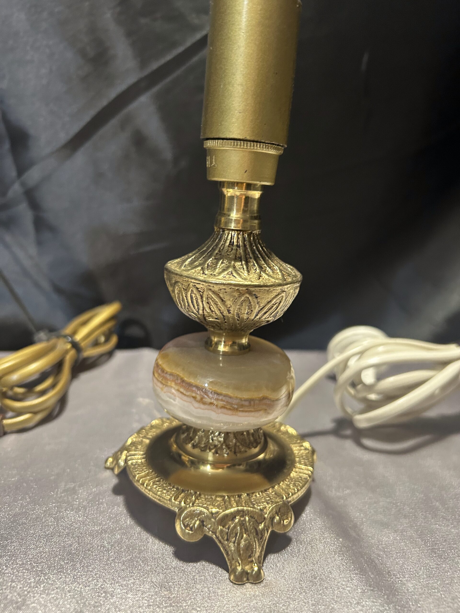 Zestaw 2 Lamp z Onyksu i Mosiądzu – Eleganckie i Zdobione