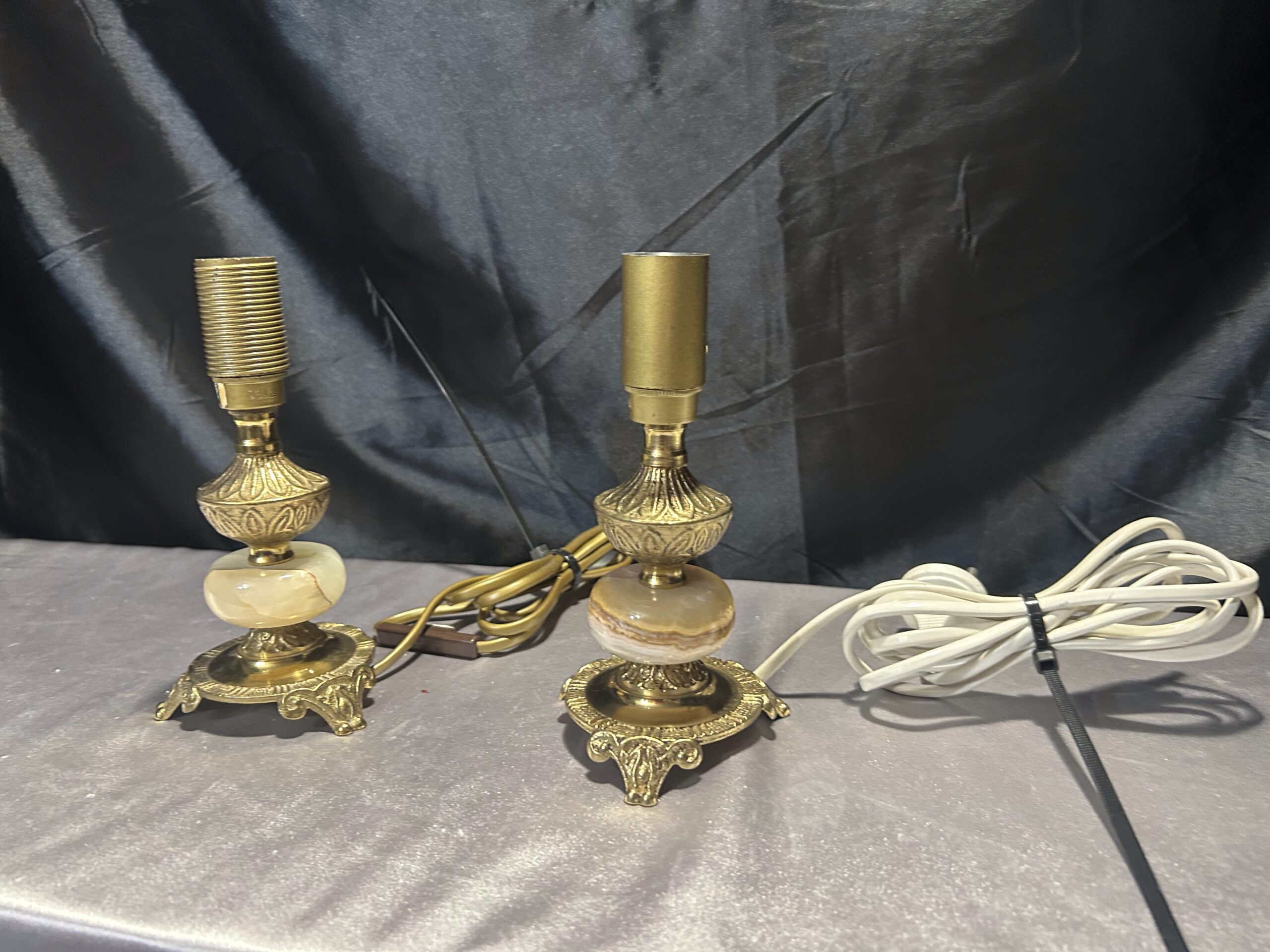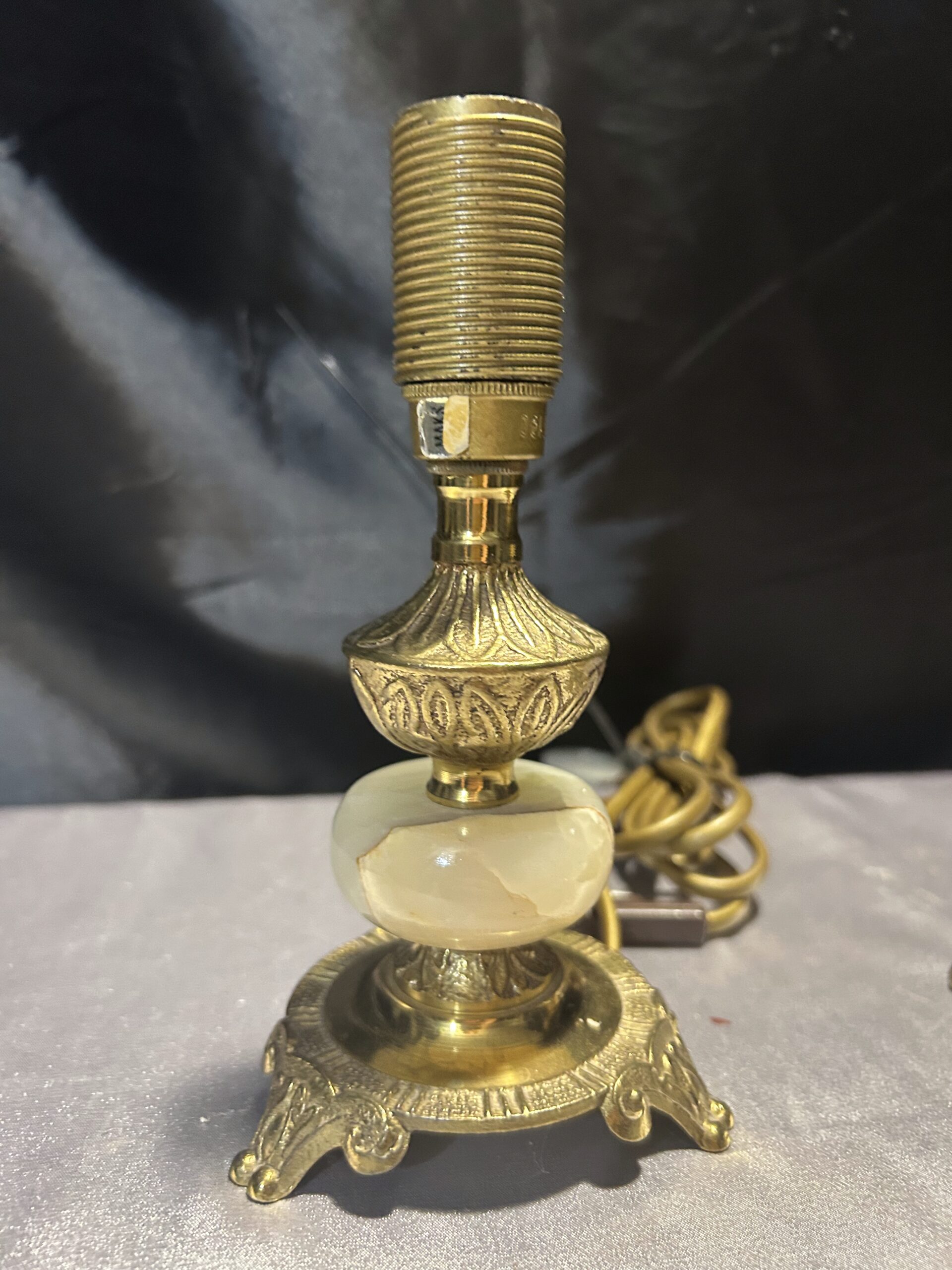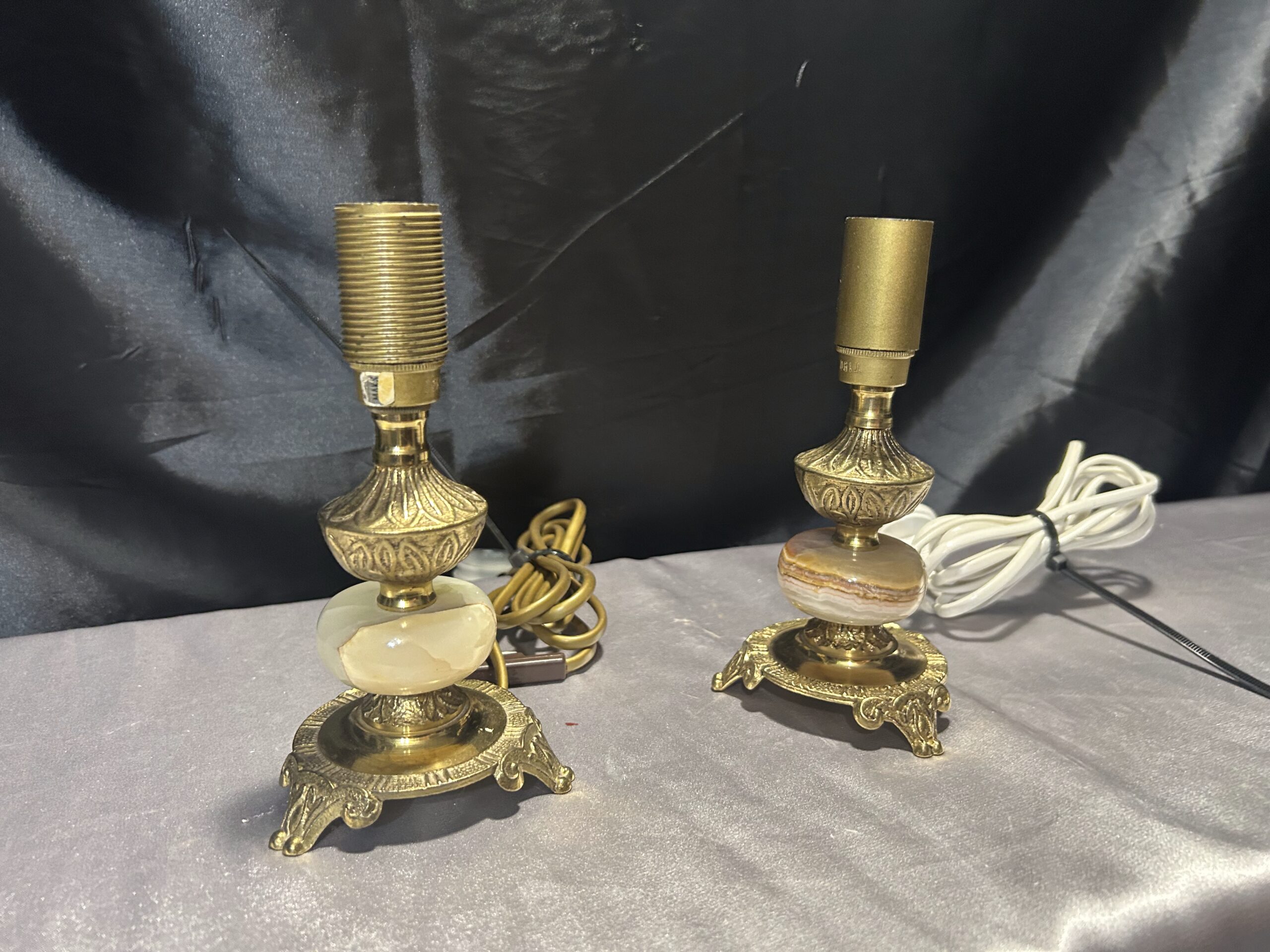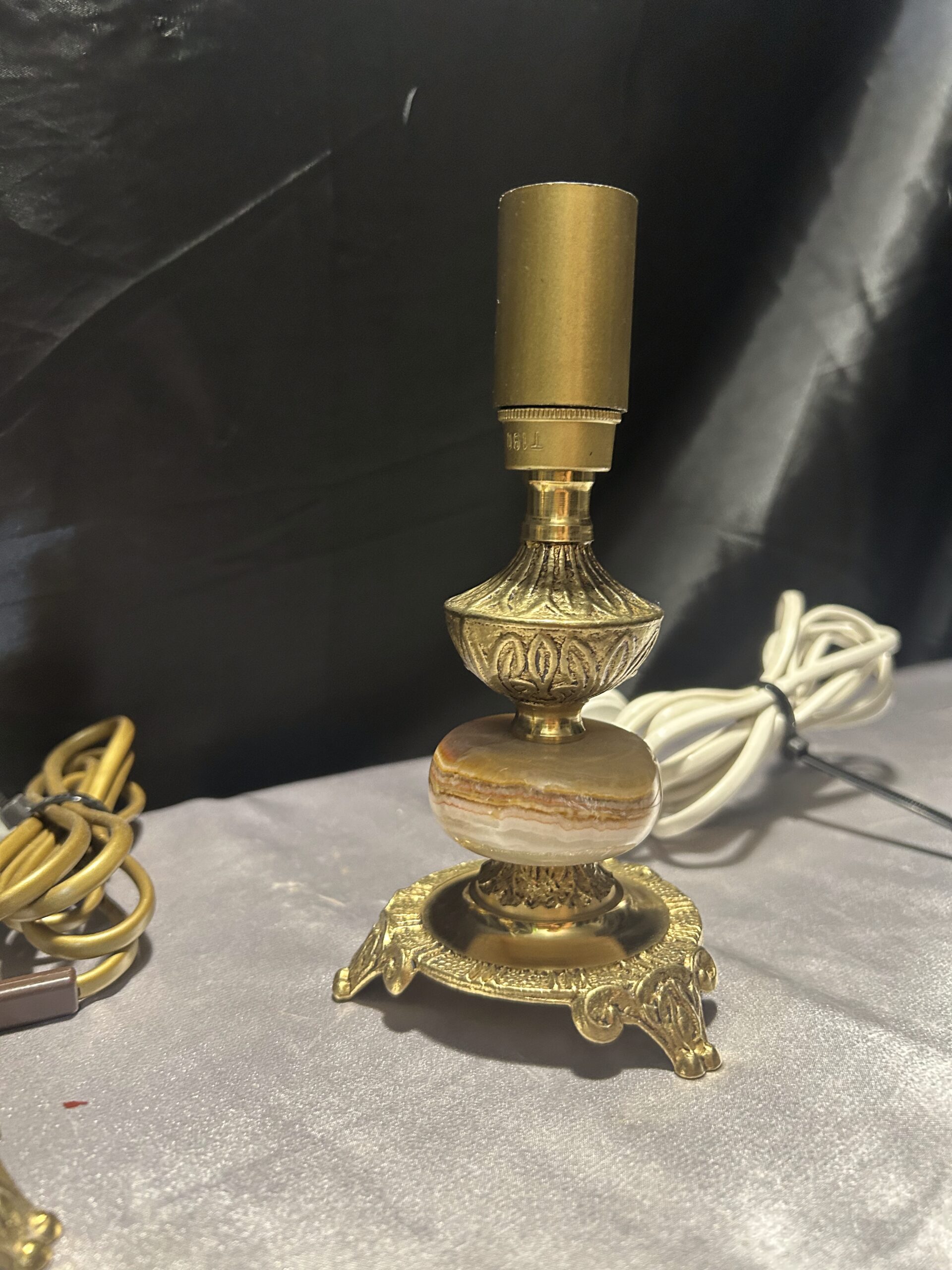 Zestaw 2 Lamp z Onyksu i Mosiądzu – Eleganckie i Zdobione