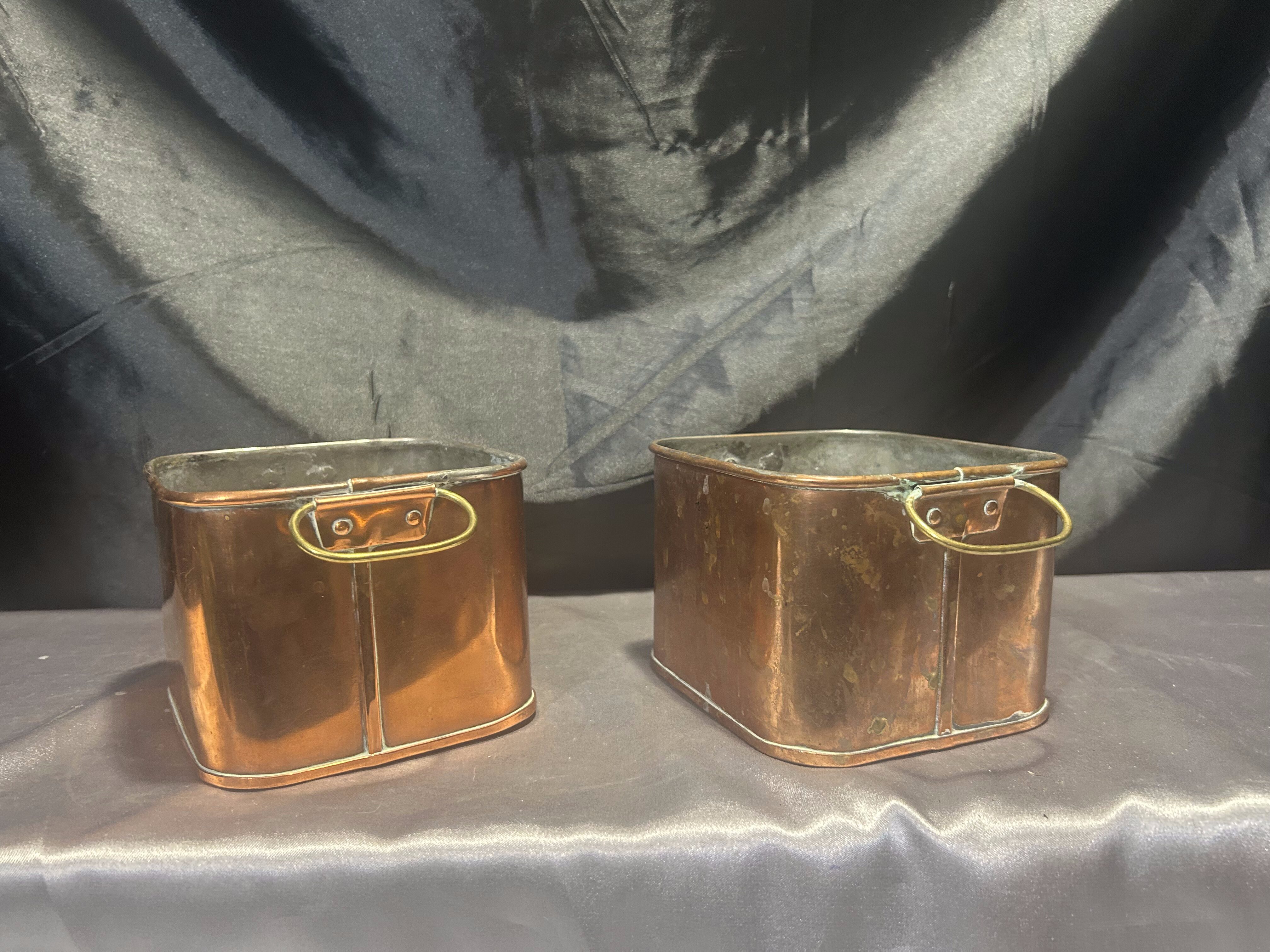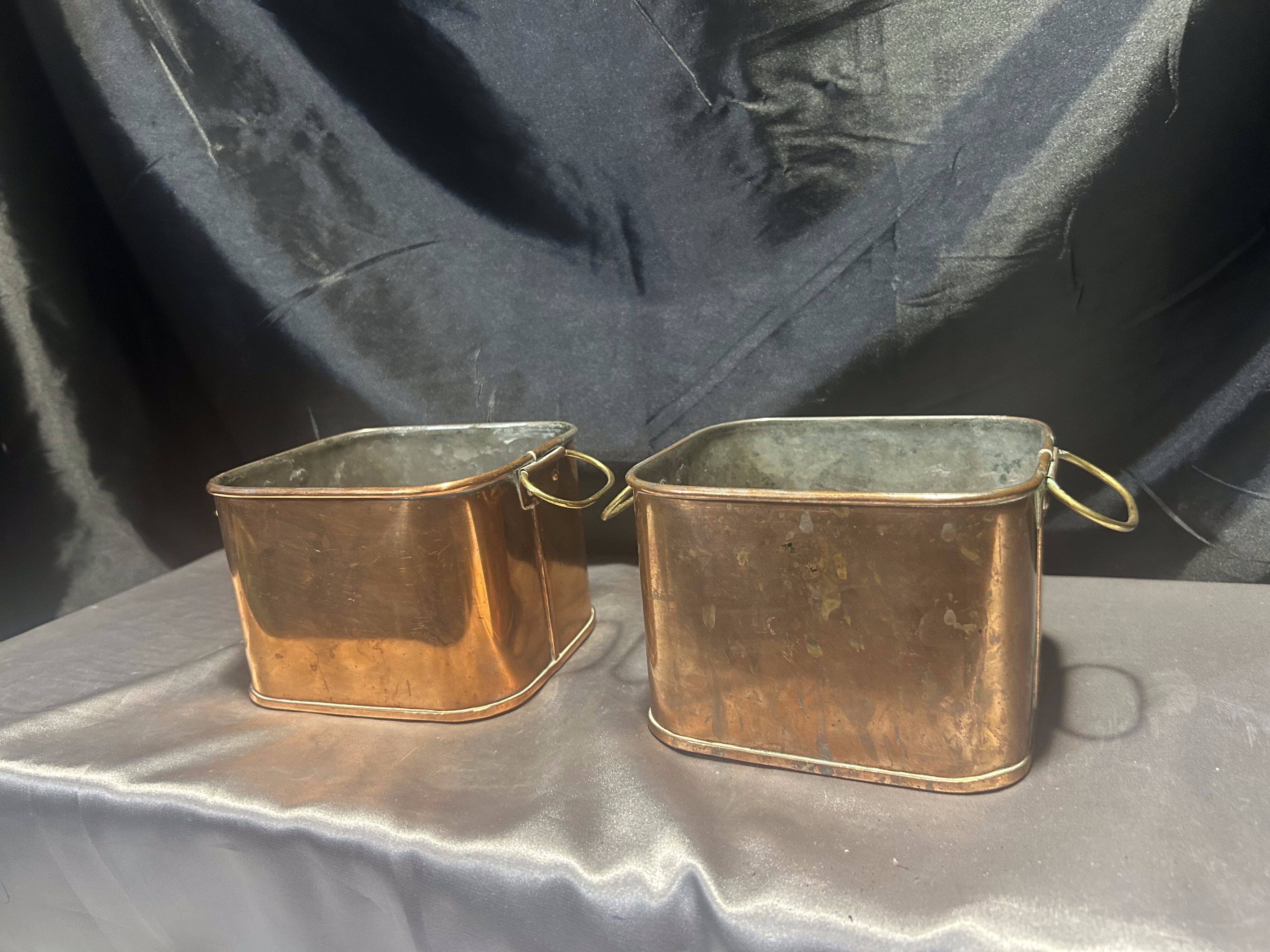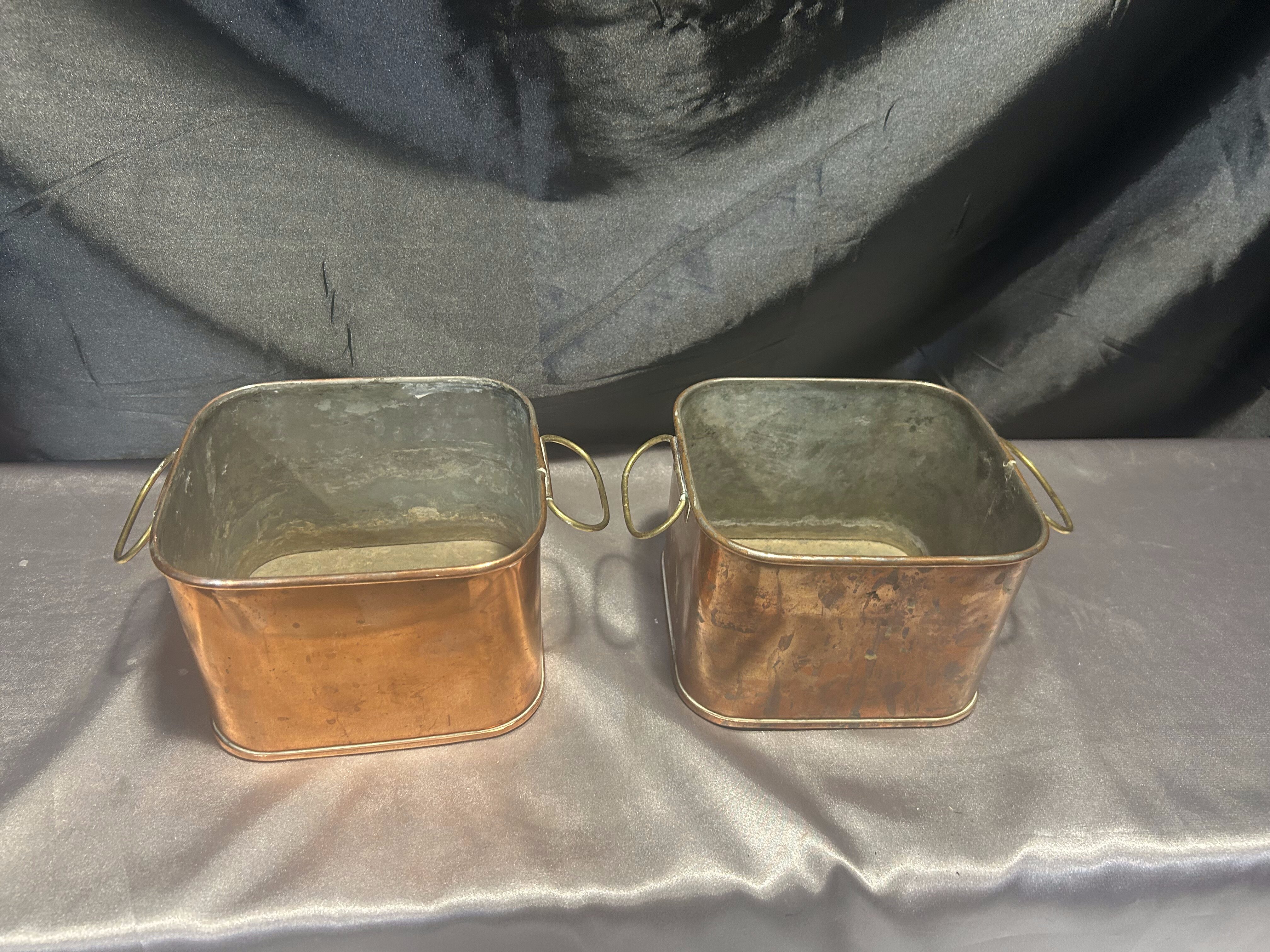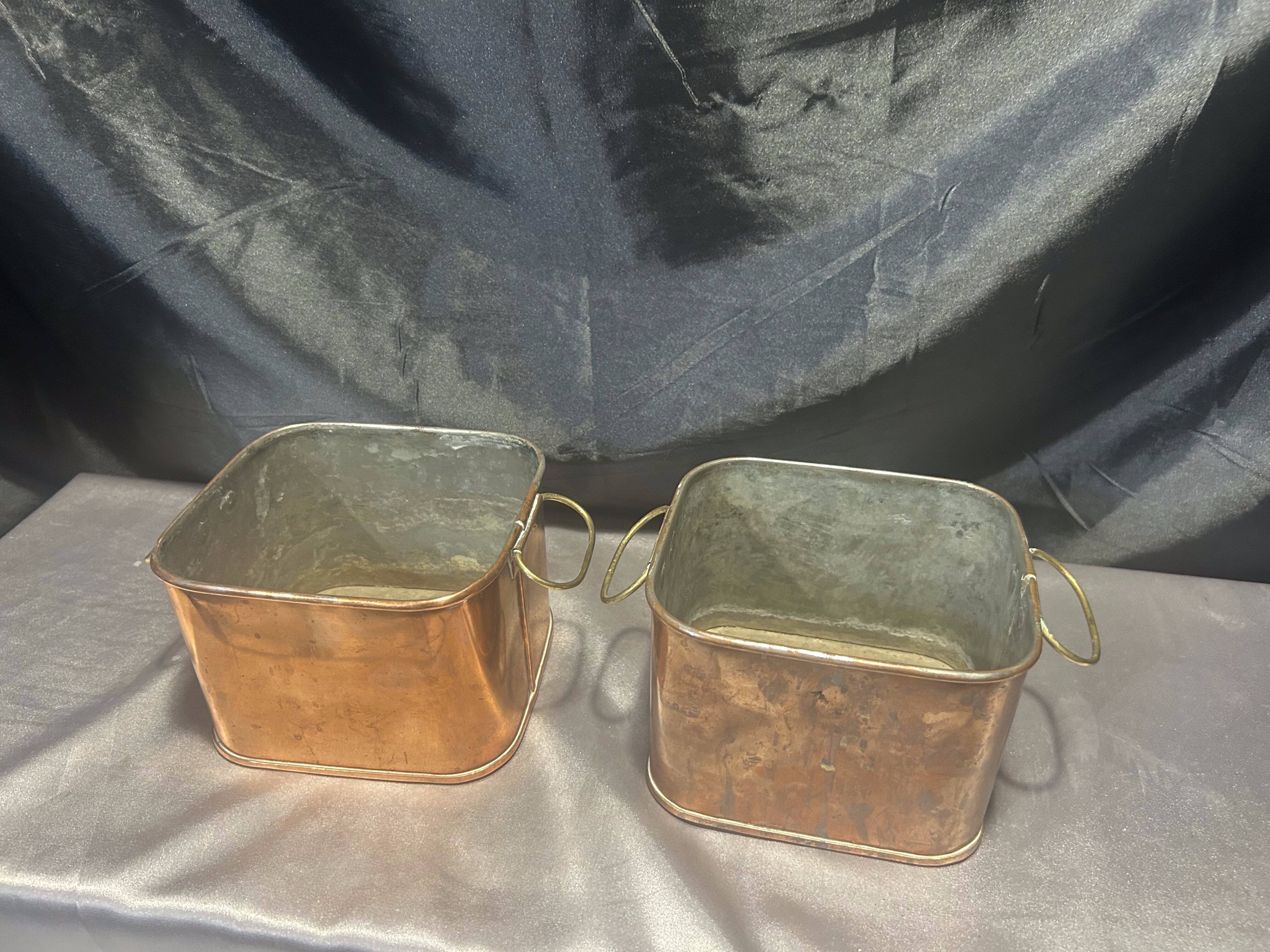 Zestaw 2 Miedzianych Kwietników – Kwadratowe – Z Mosiężnymi Uszami