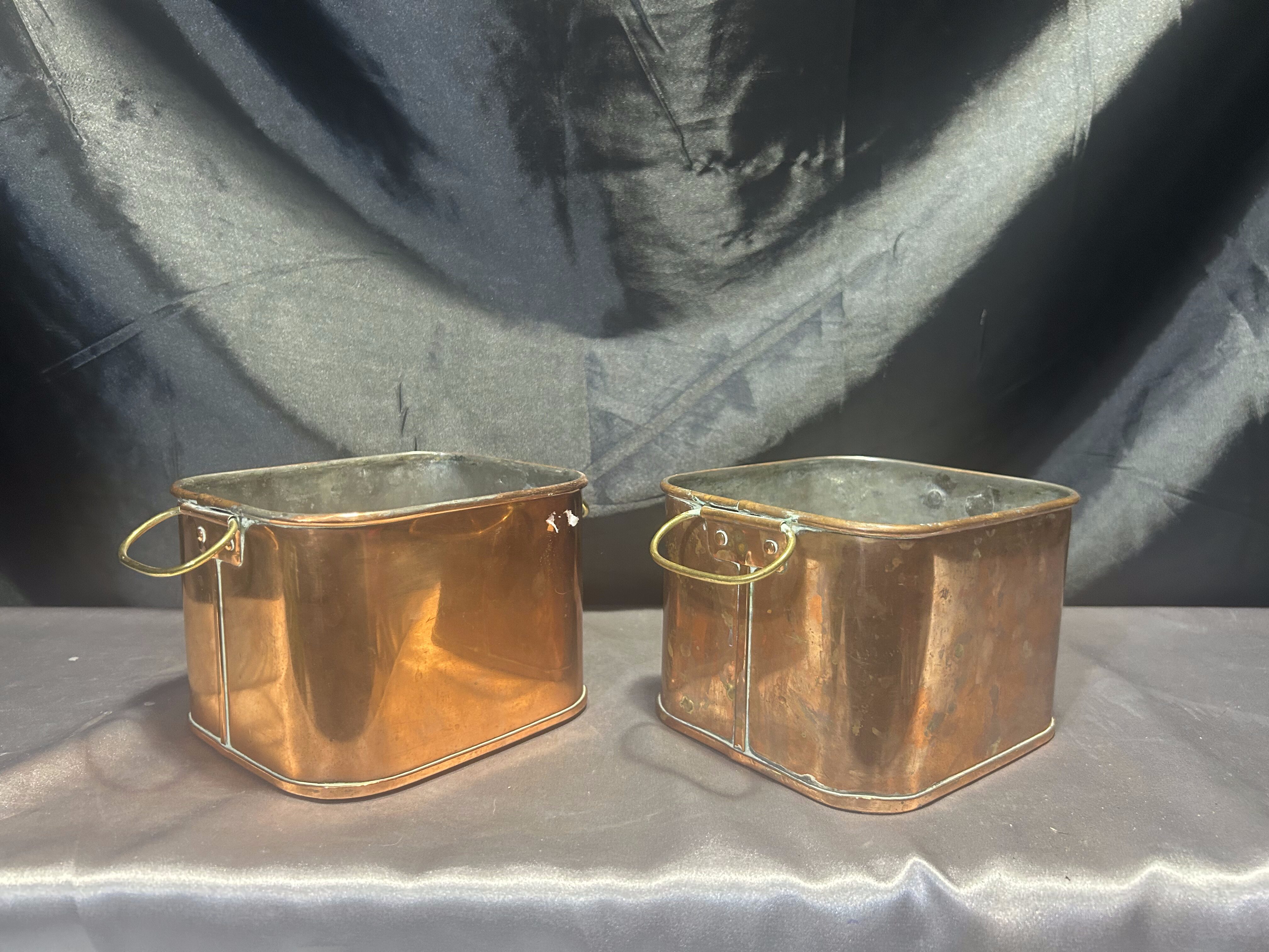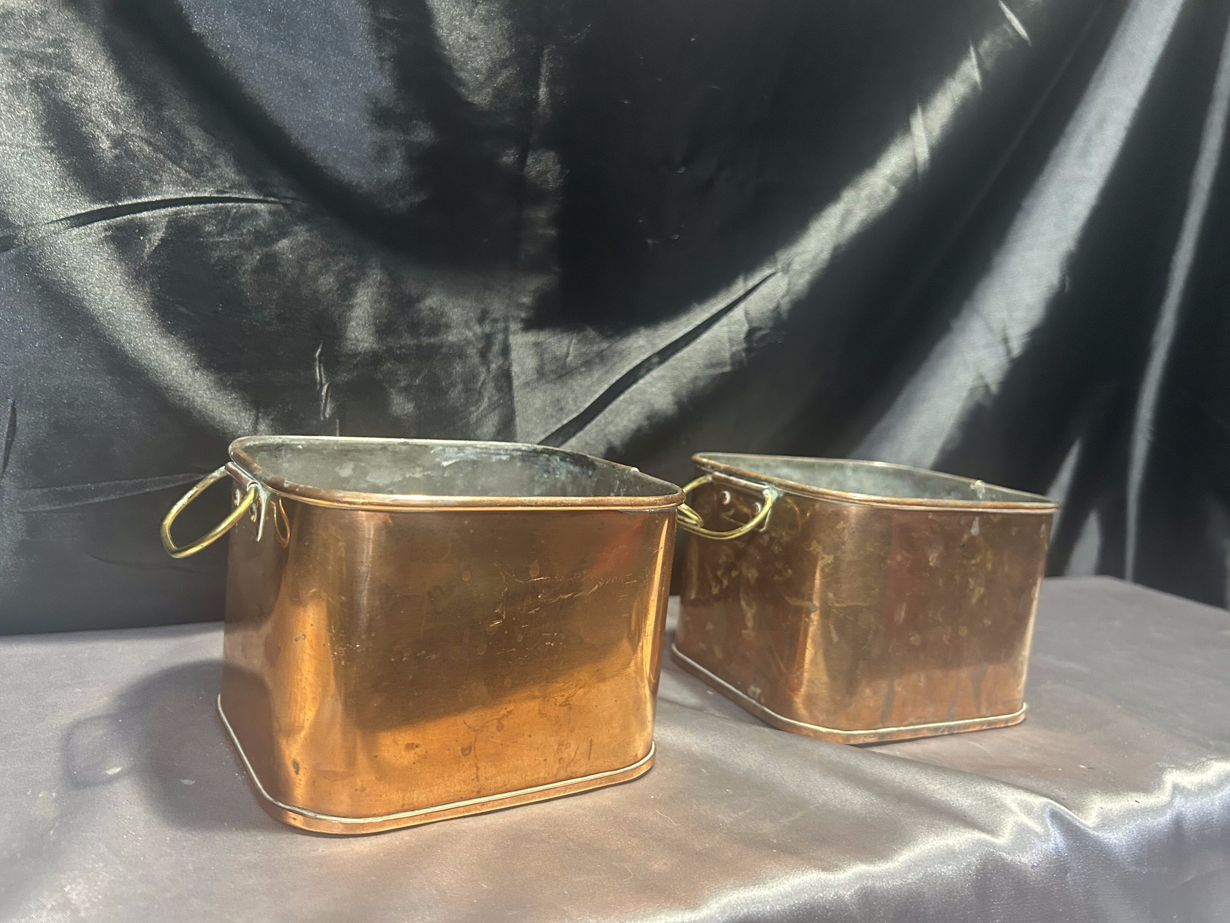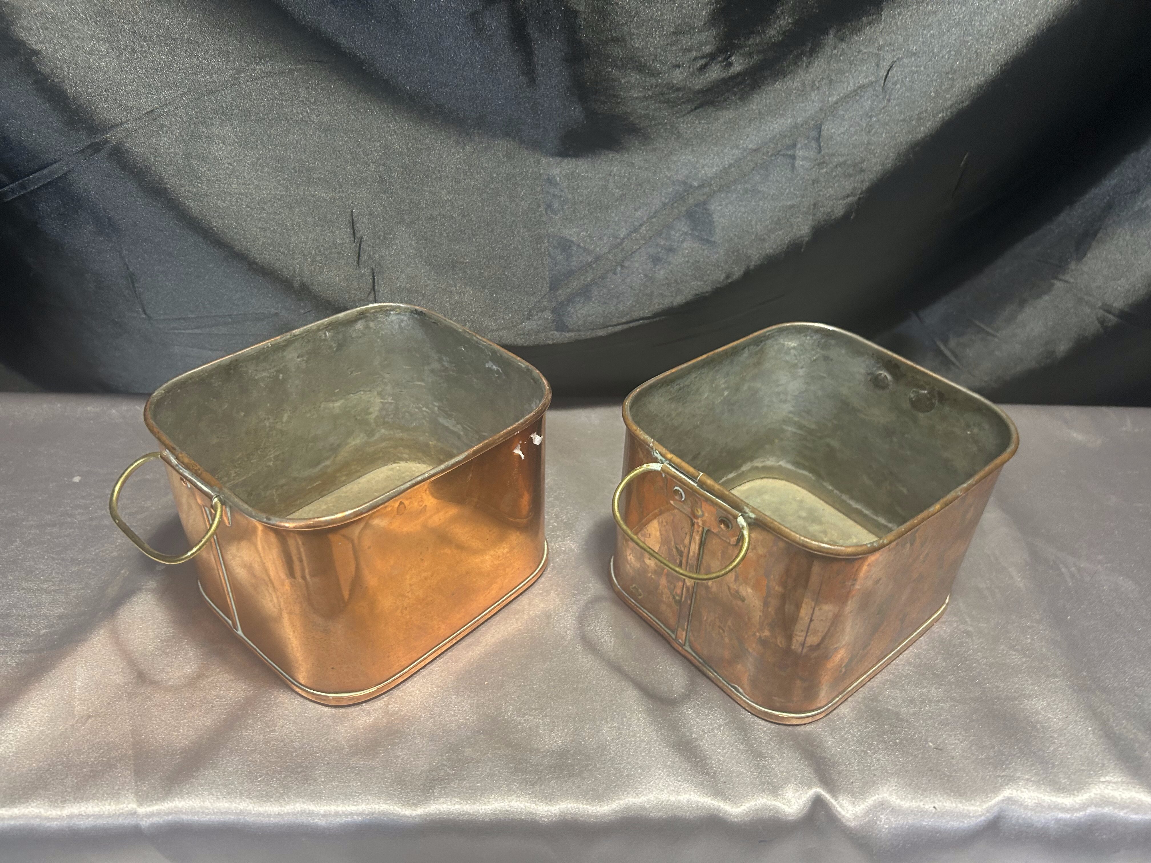 Zestaw 2 Miedzianych Kwietników – Kwadratowe – Z Mosiężnymi Uszami
