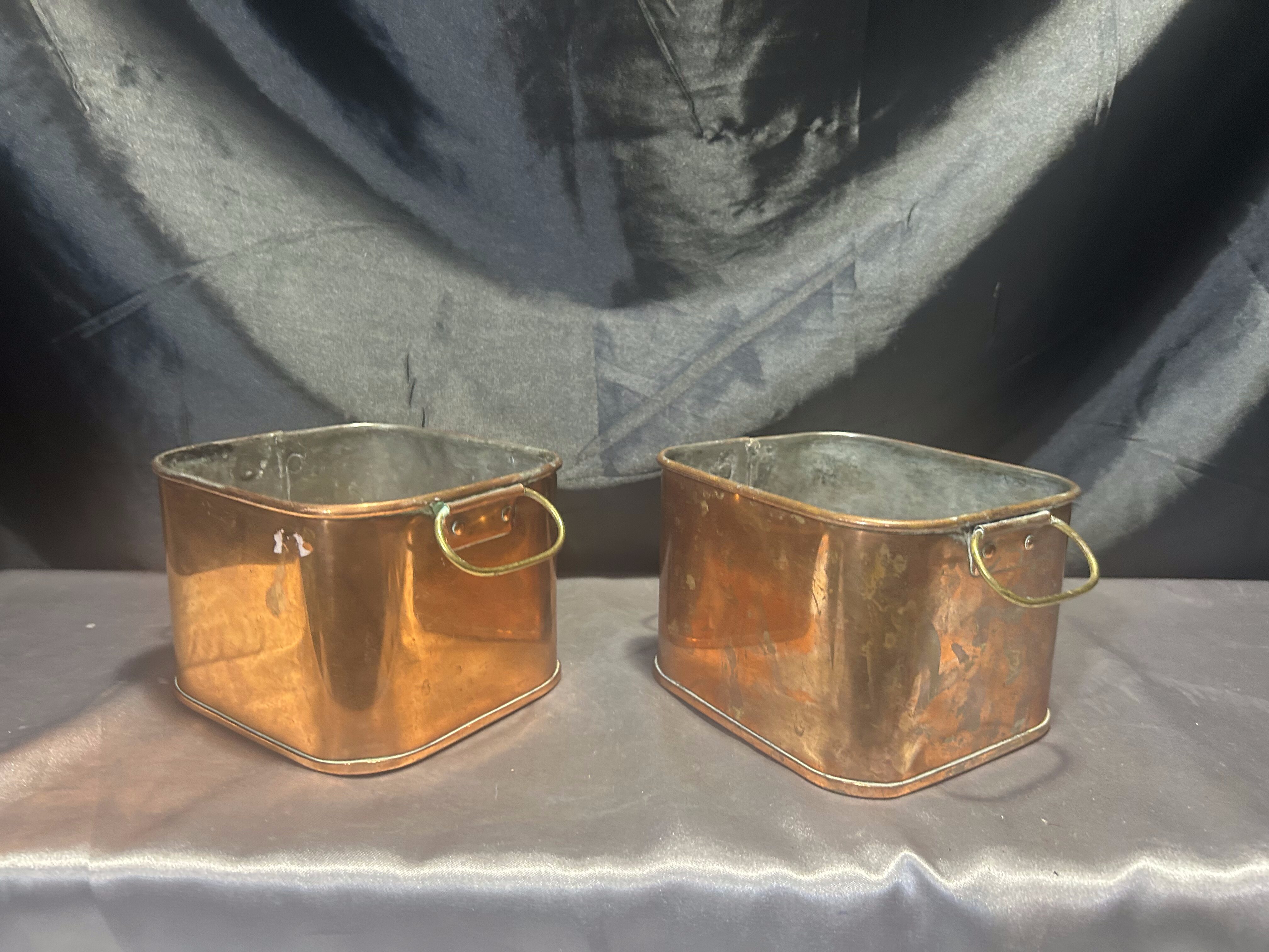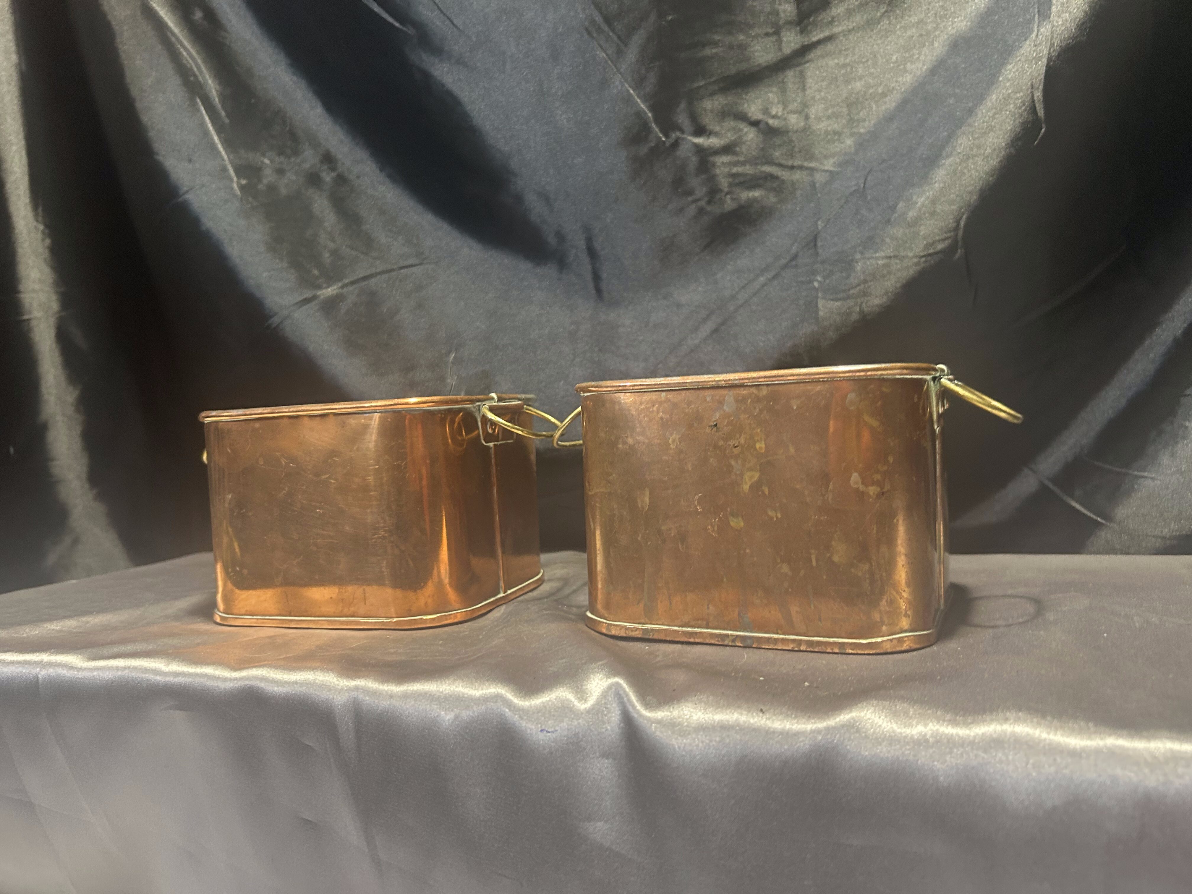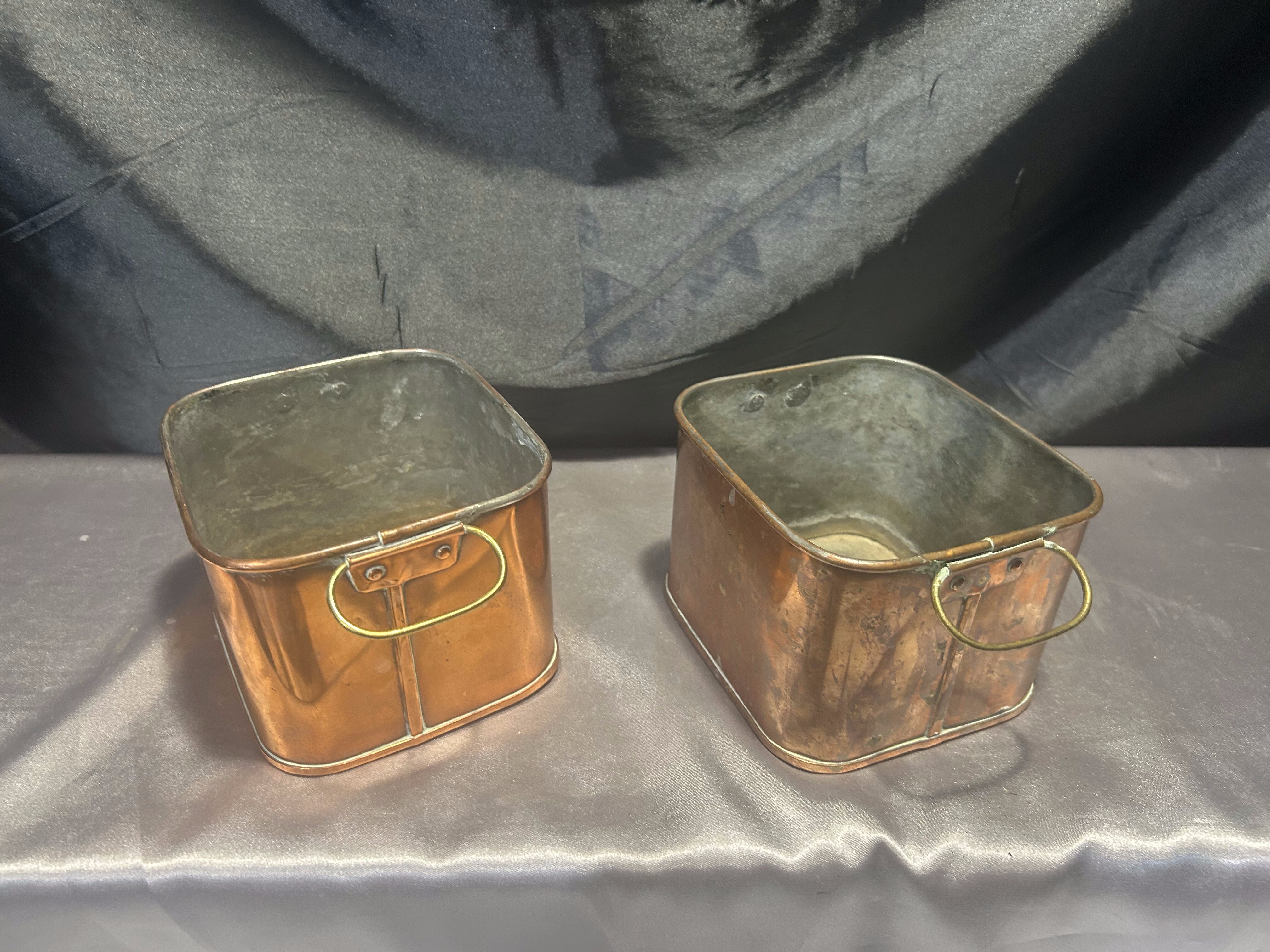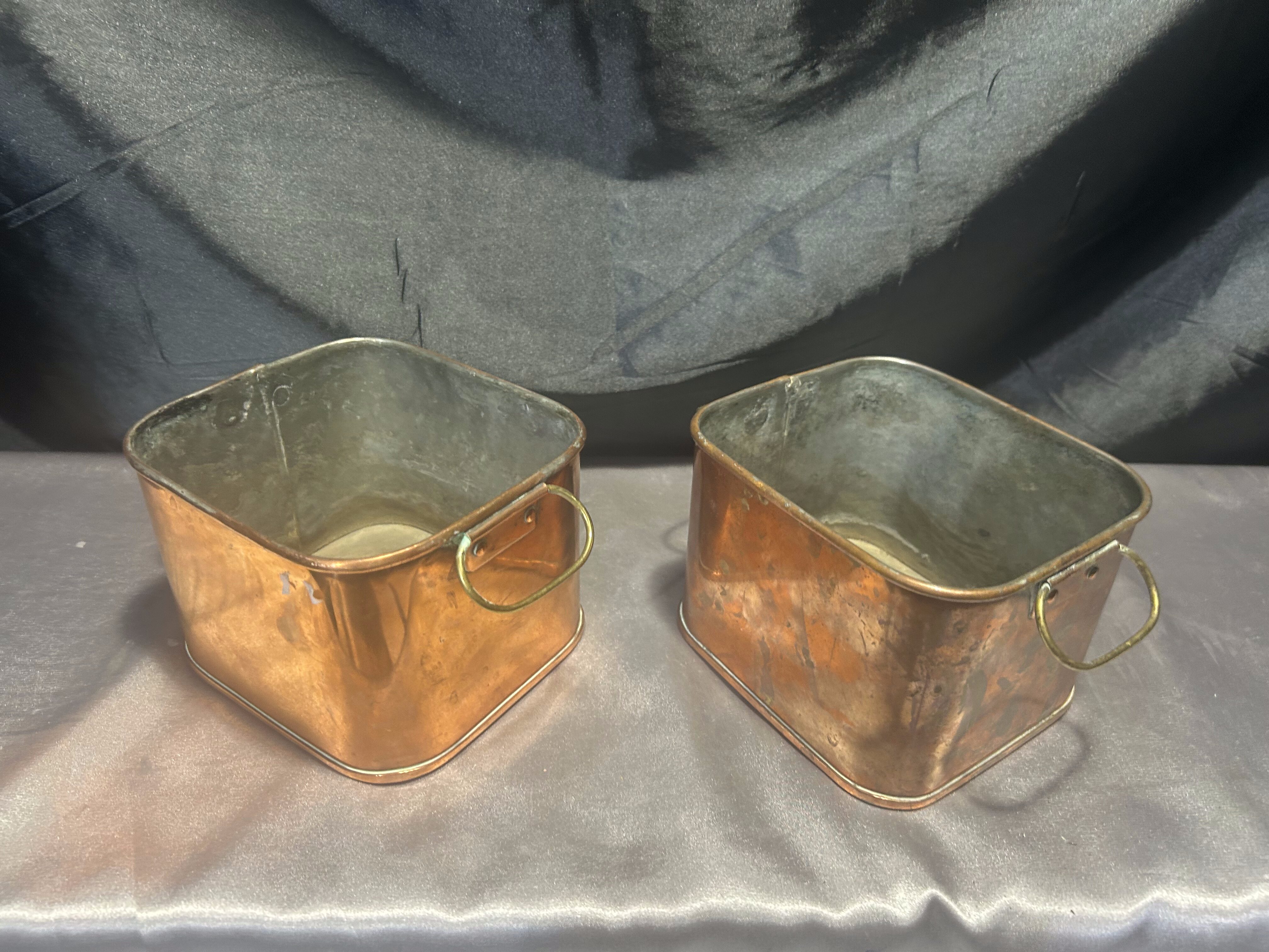Zestaw 2 Miedzianych Kwietników – Kwadratowe – Z Mosiężnymi Uszami