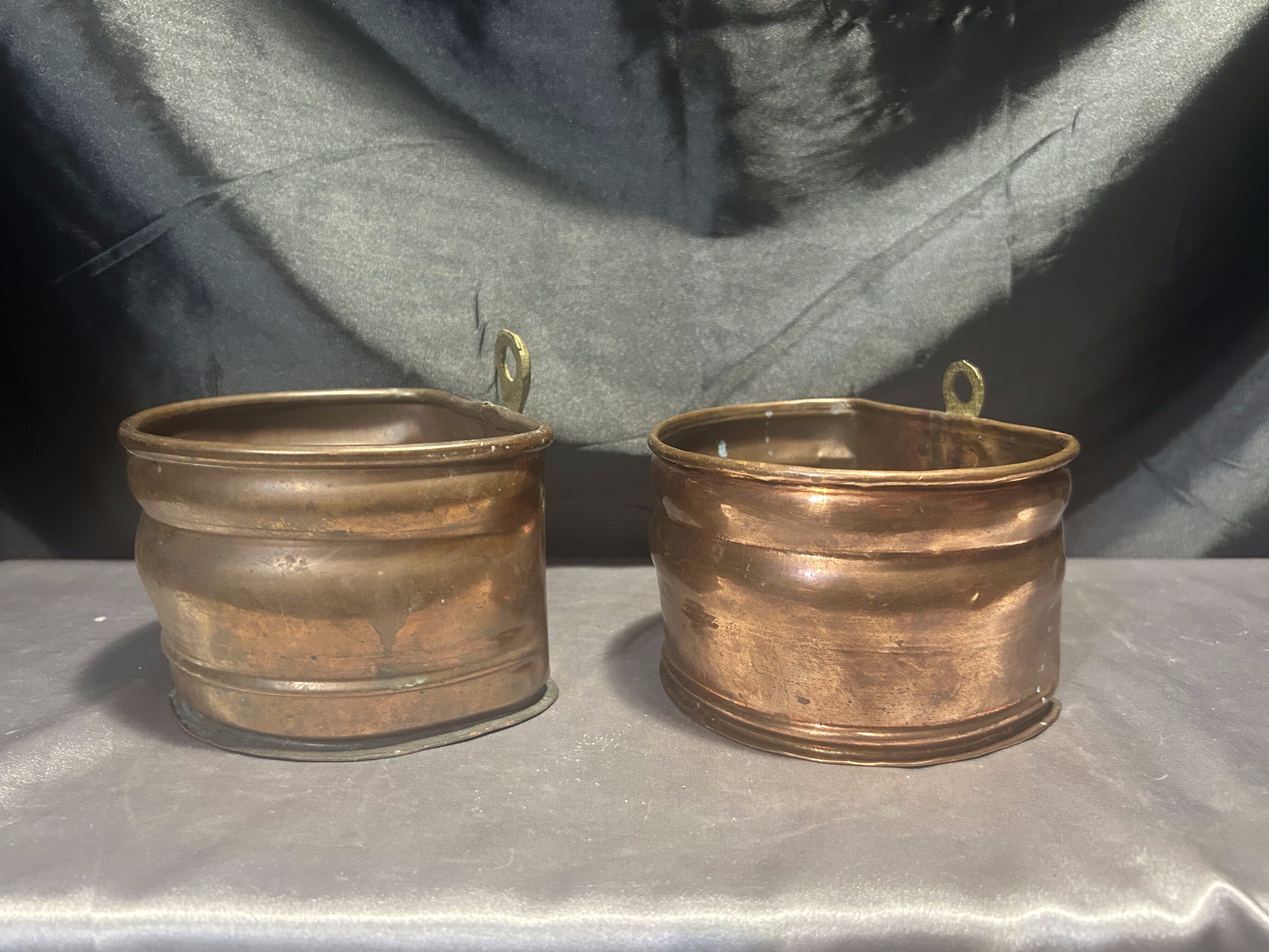 Zestaw 2 Miedzianych Kwietników Ściennych – Z Mosiężnym Oczkiem do Zawieszenia