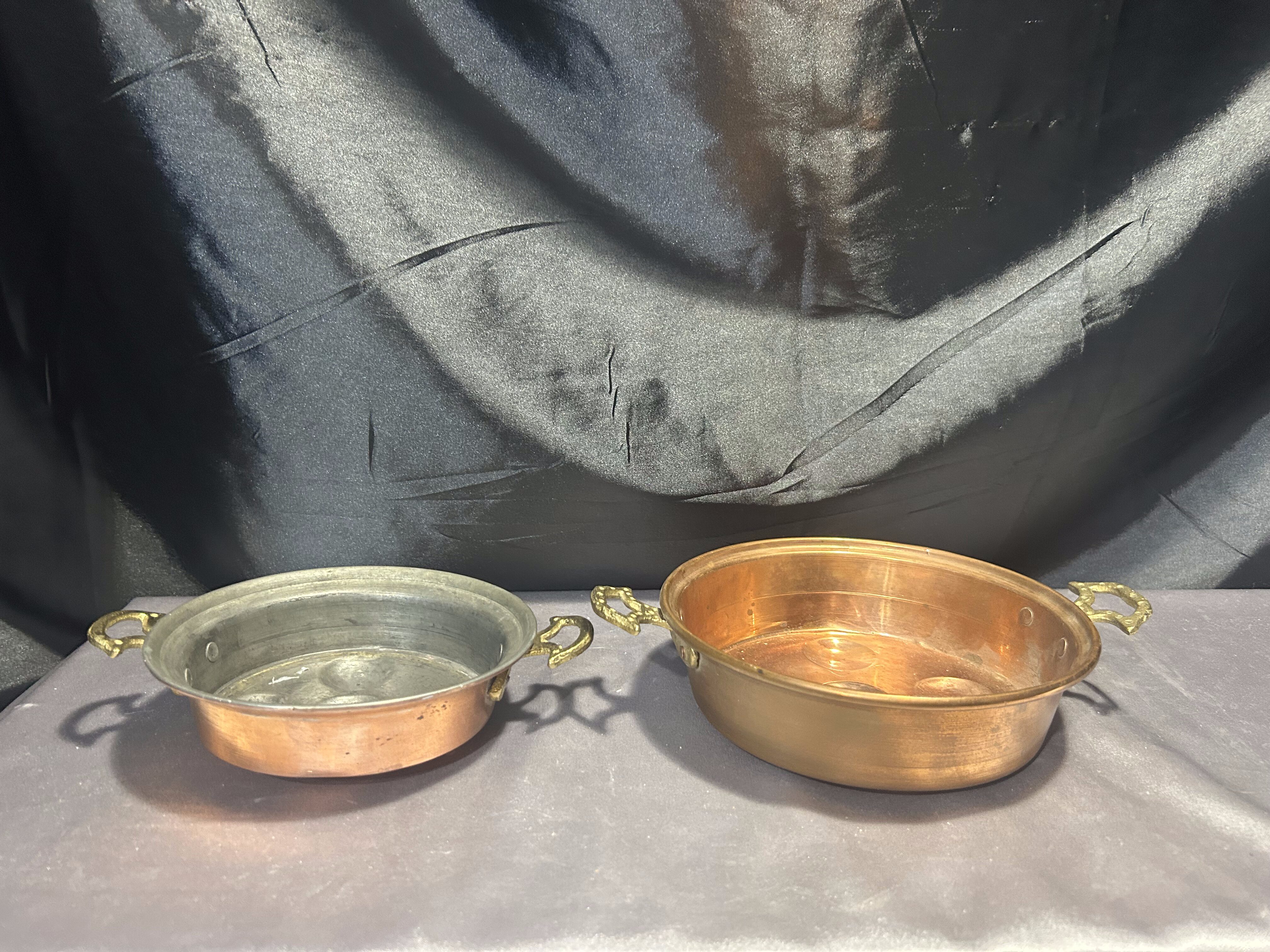 Zestaw 2 Miedzianych Patelni / Foremek – Z Mosiężnymi Rączkami, Dekoracyjne i Użytkowe