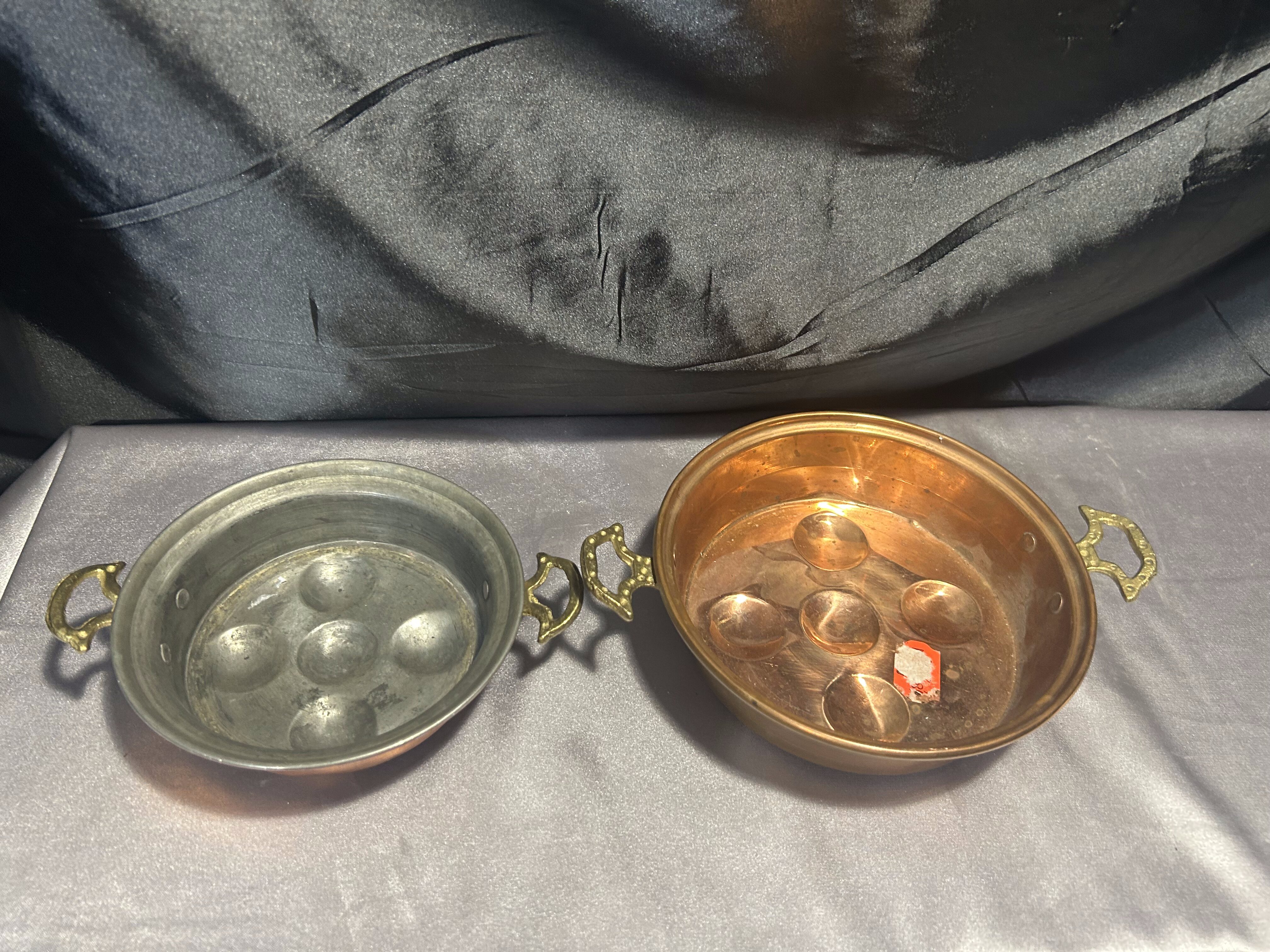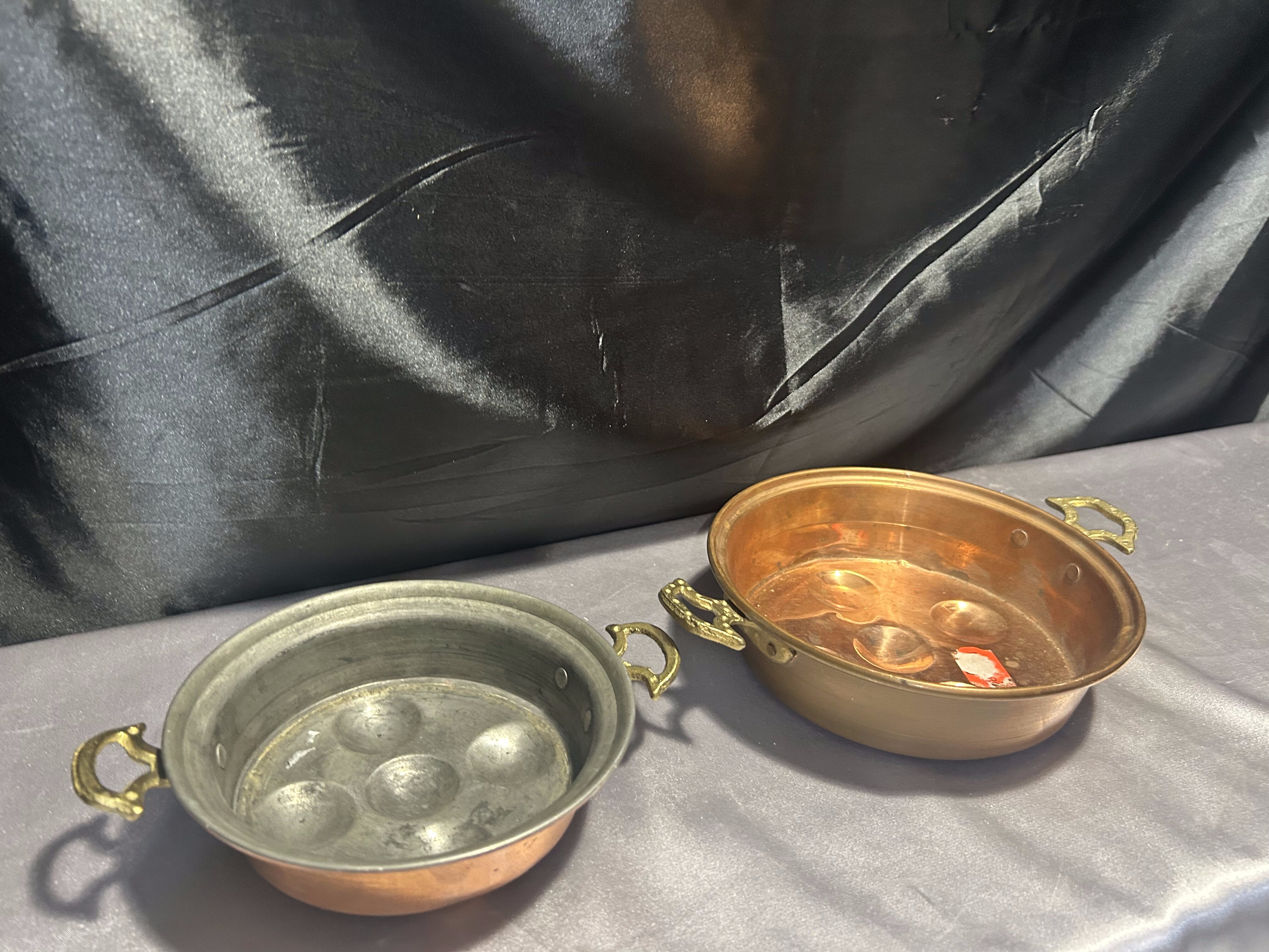 - Typ: zestaw 2 miedzianych patelni/foremek z mosiężnymi rączkami