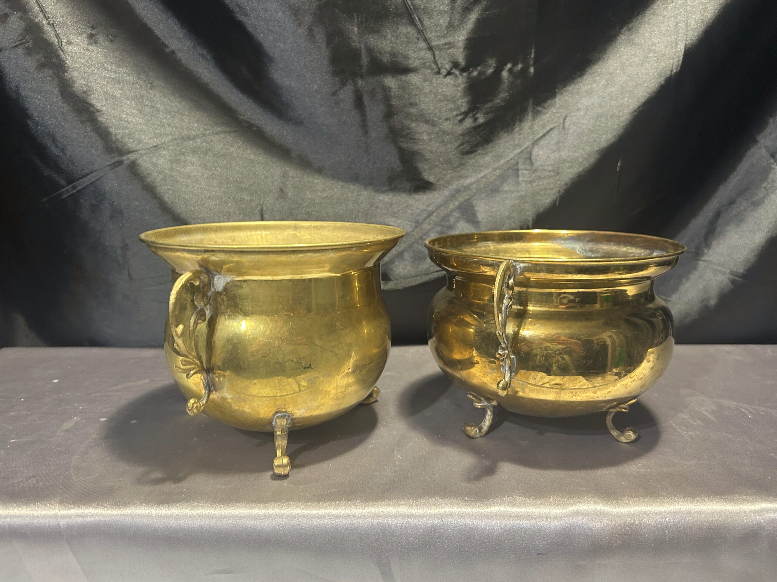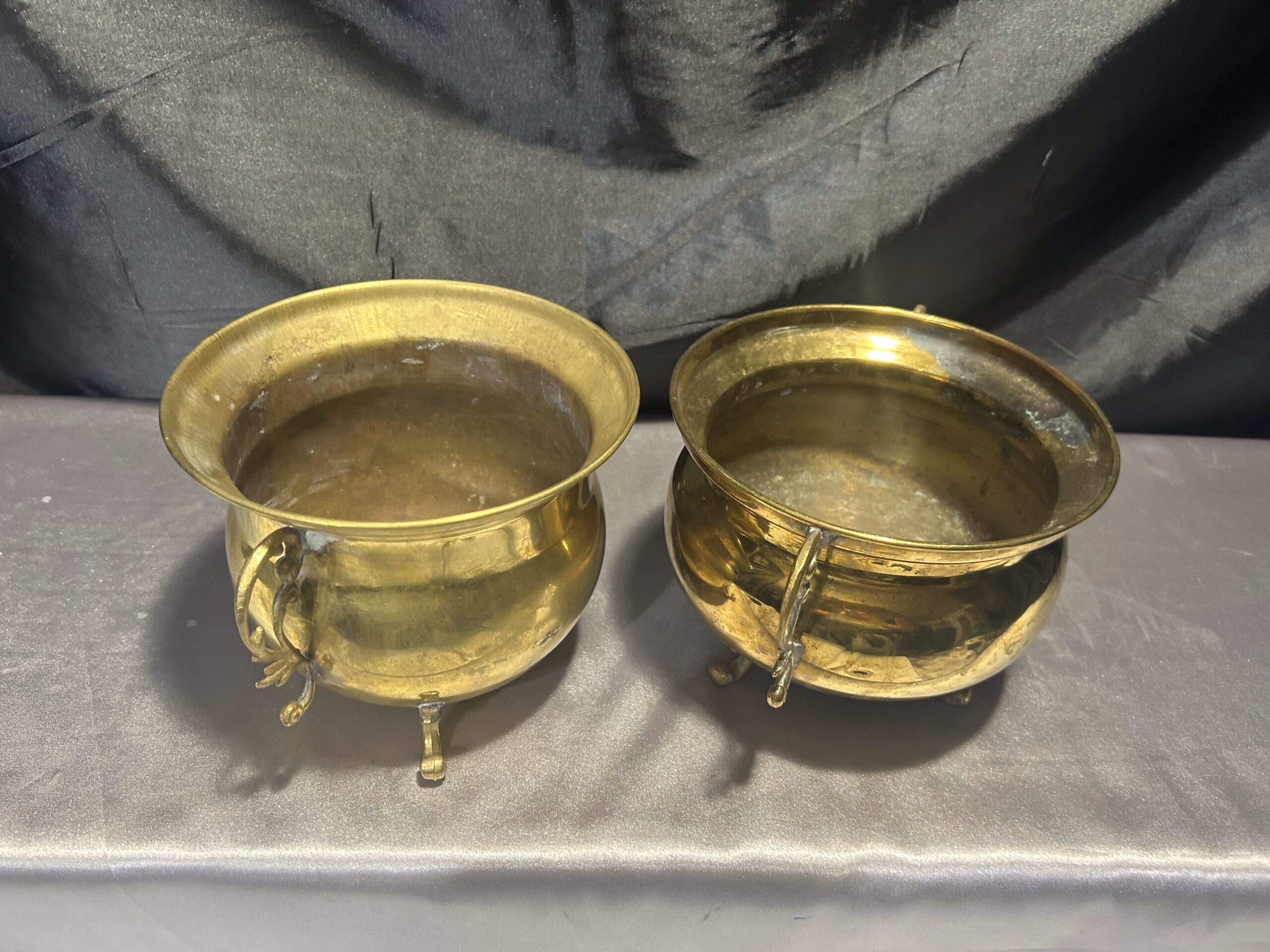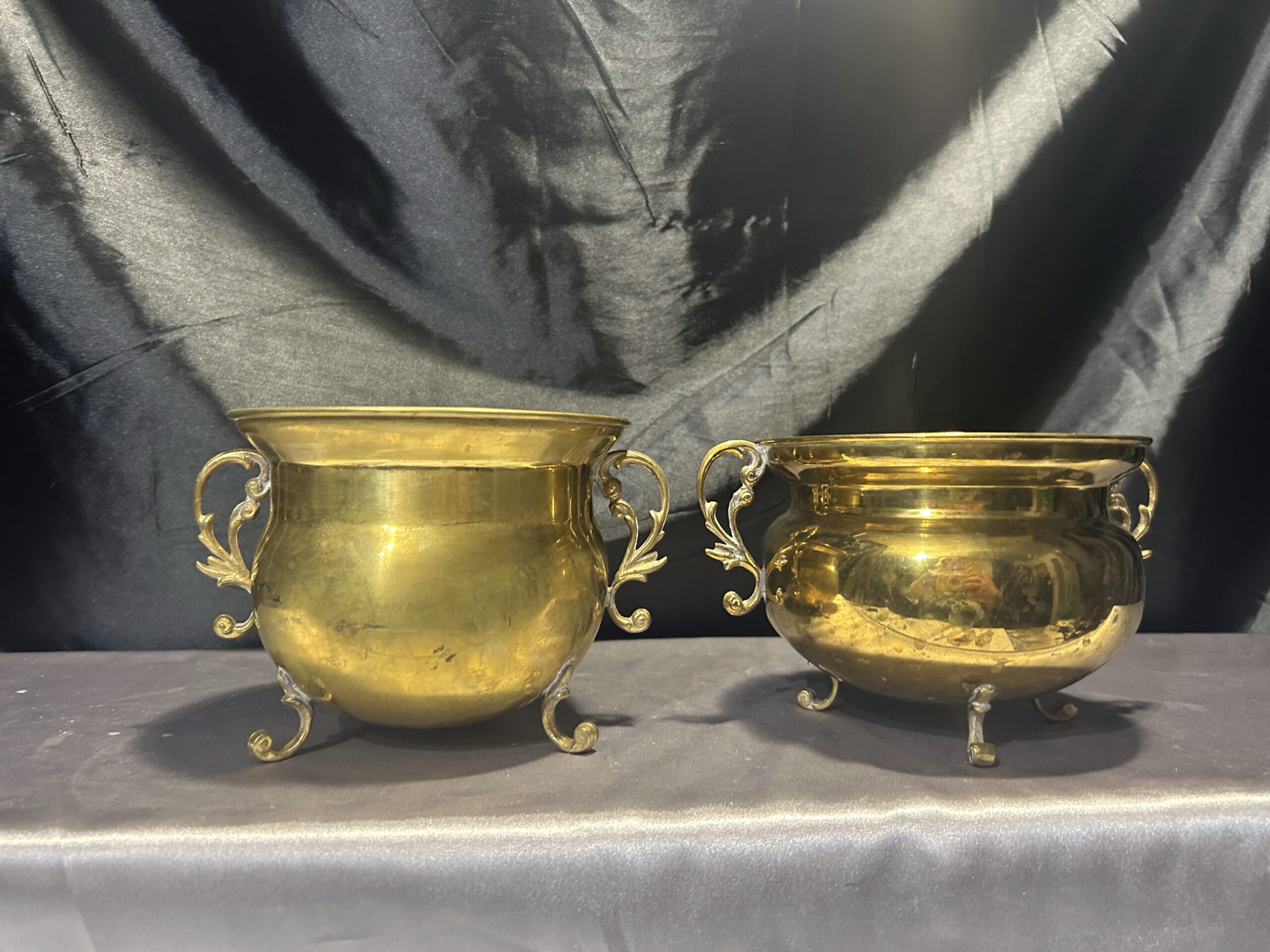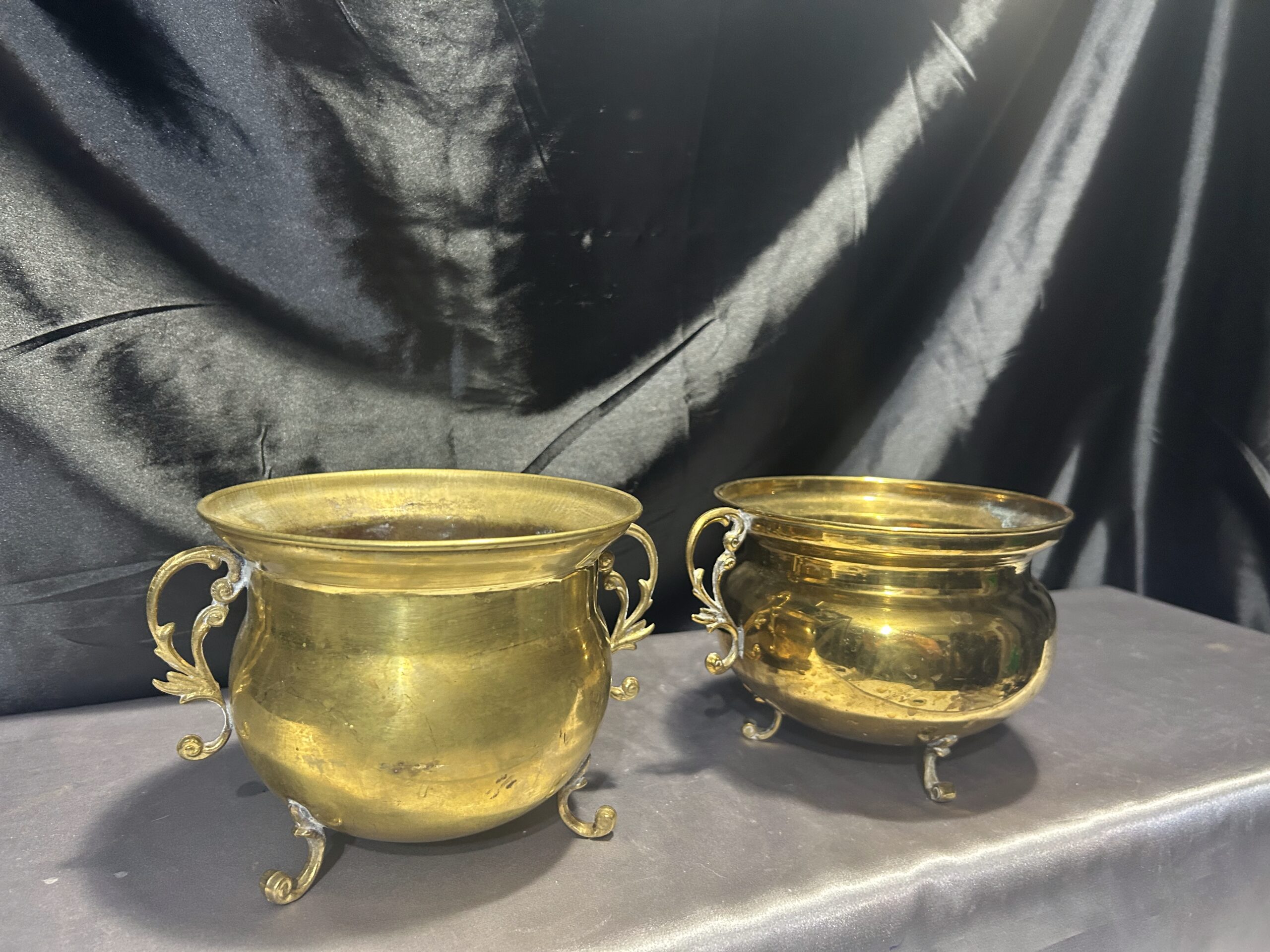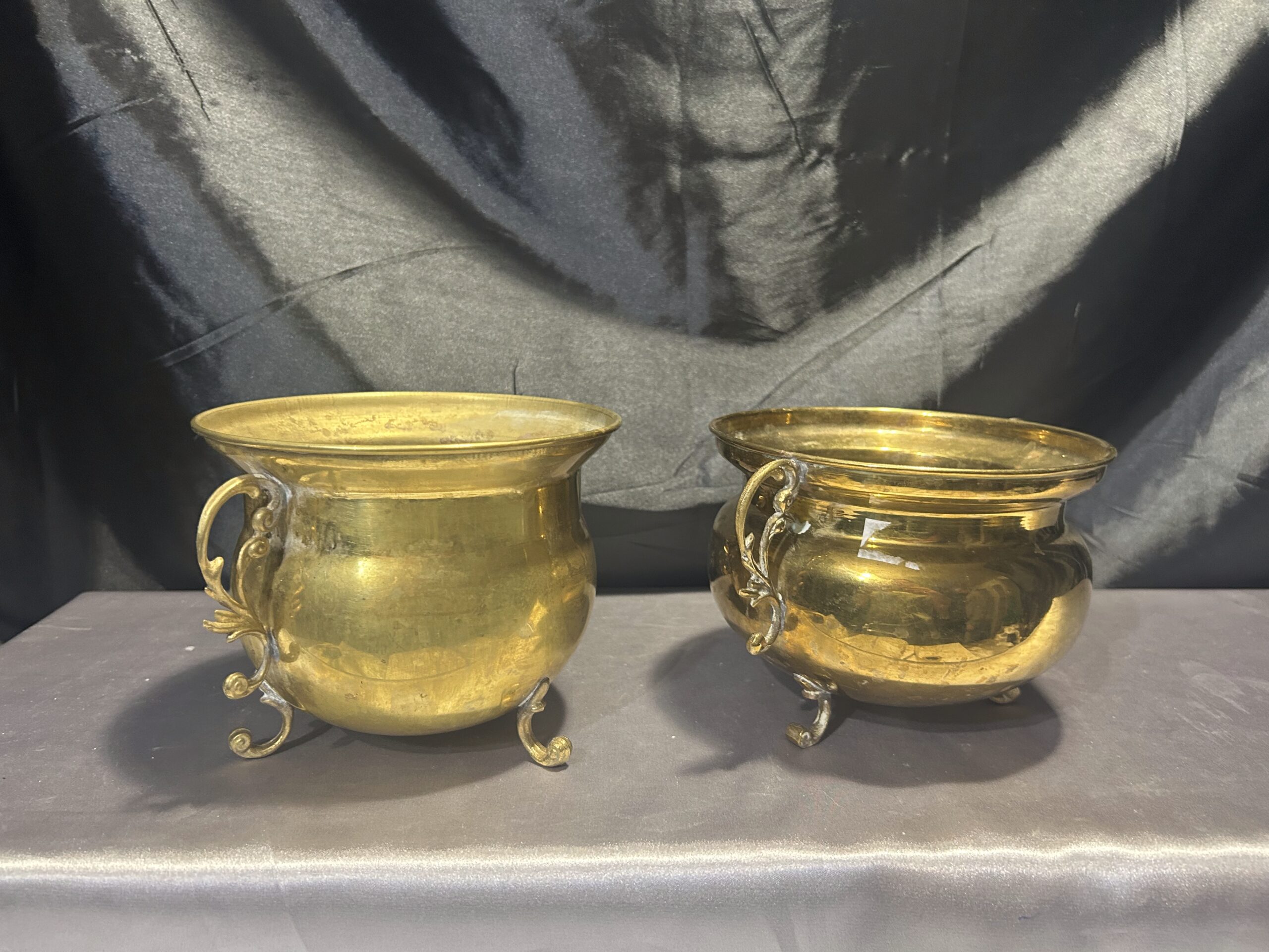 Zestaw 2 Mosiężnych Kwietników – Zdobione Uszy i Nogi