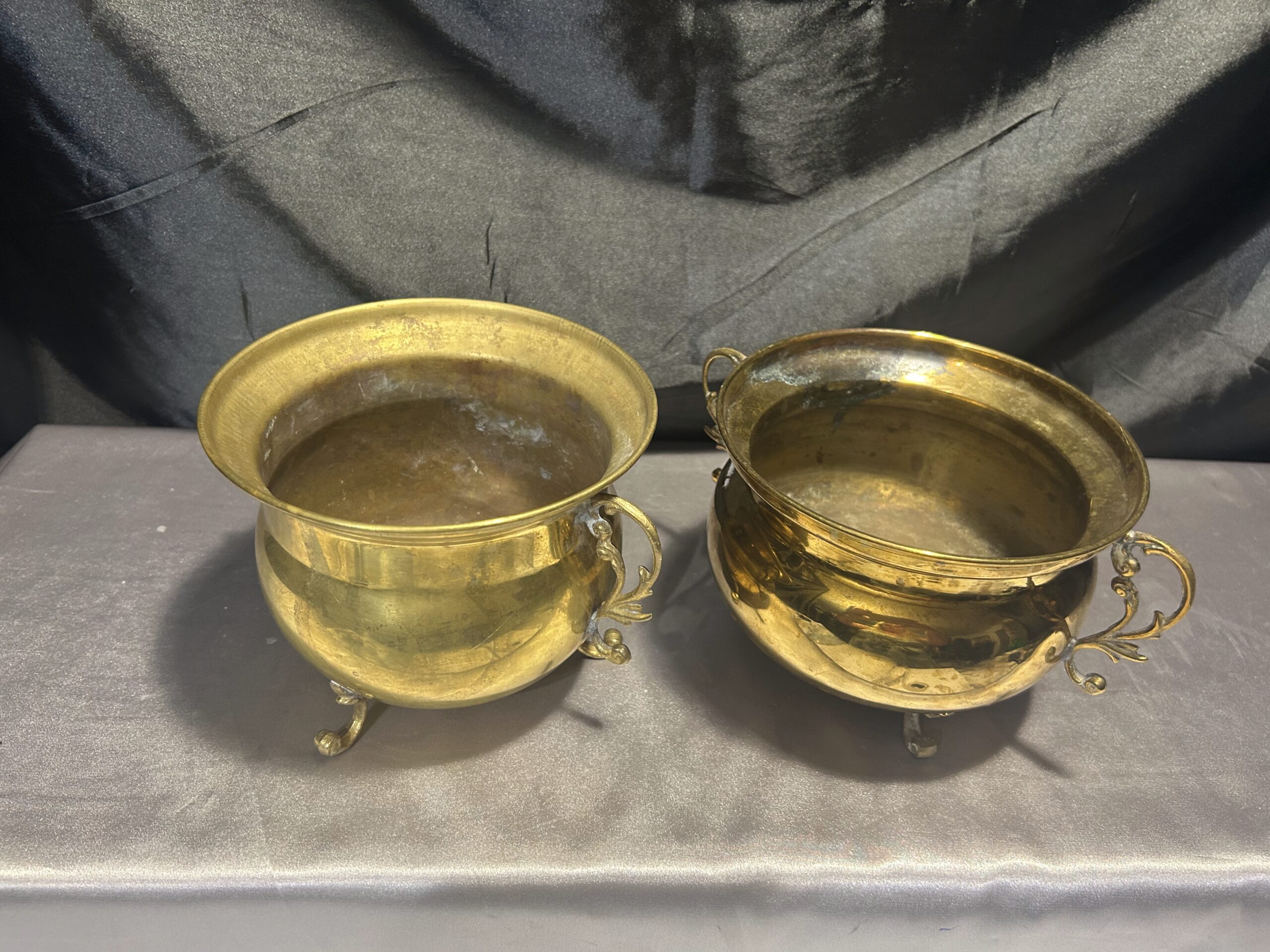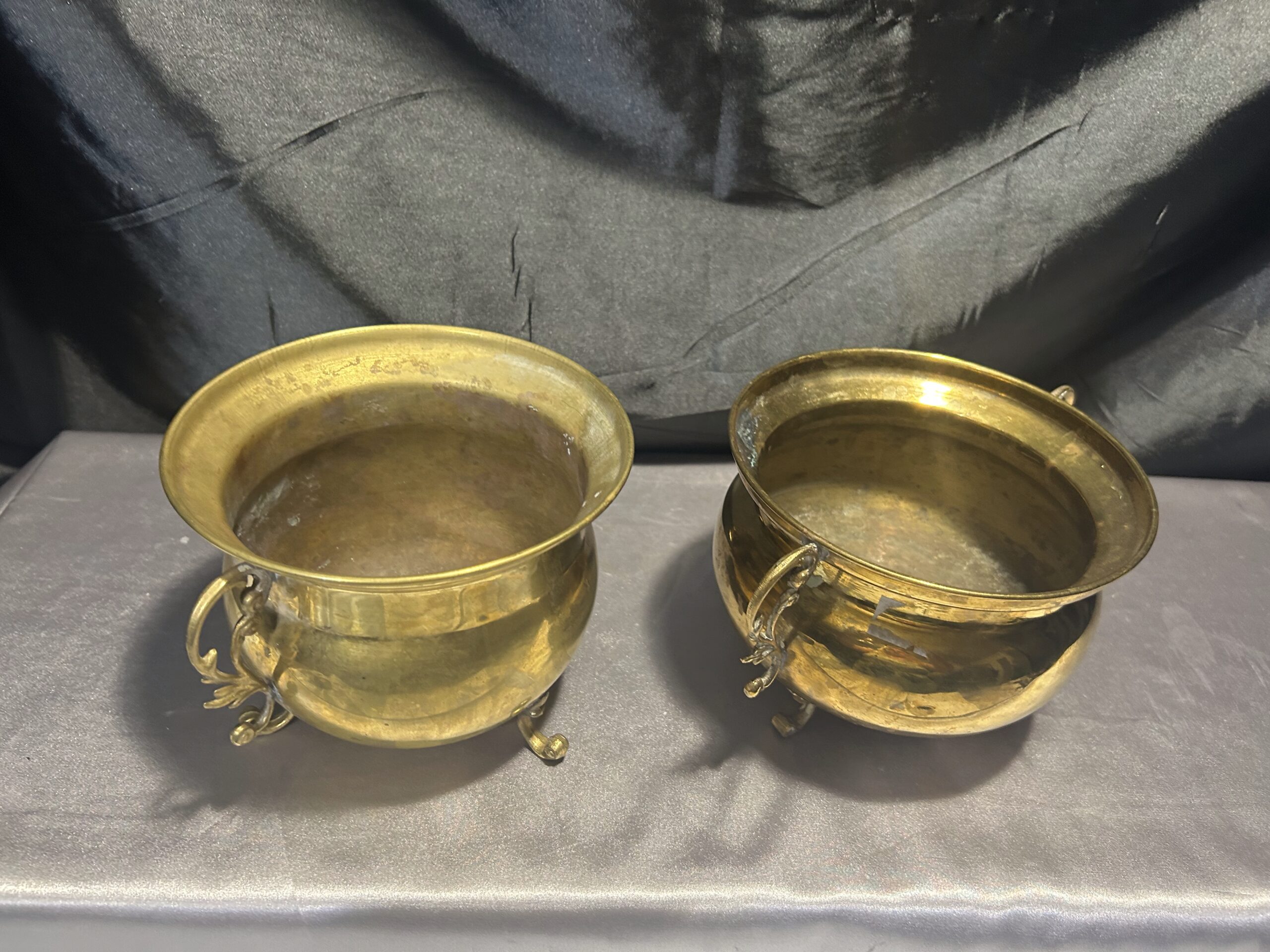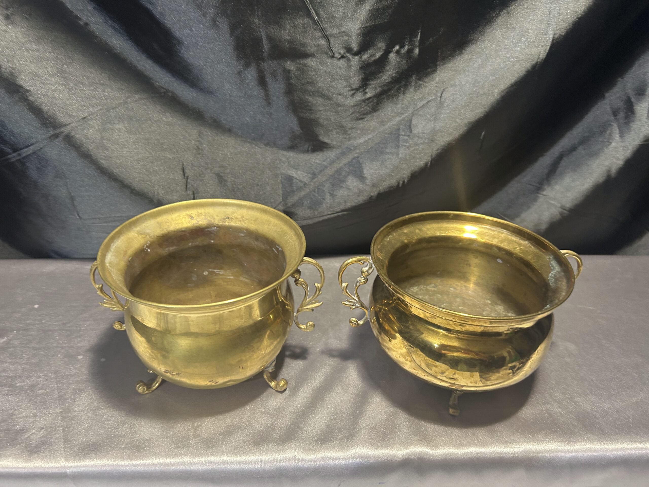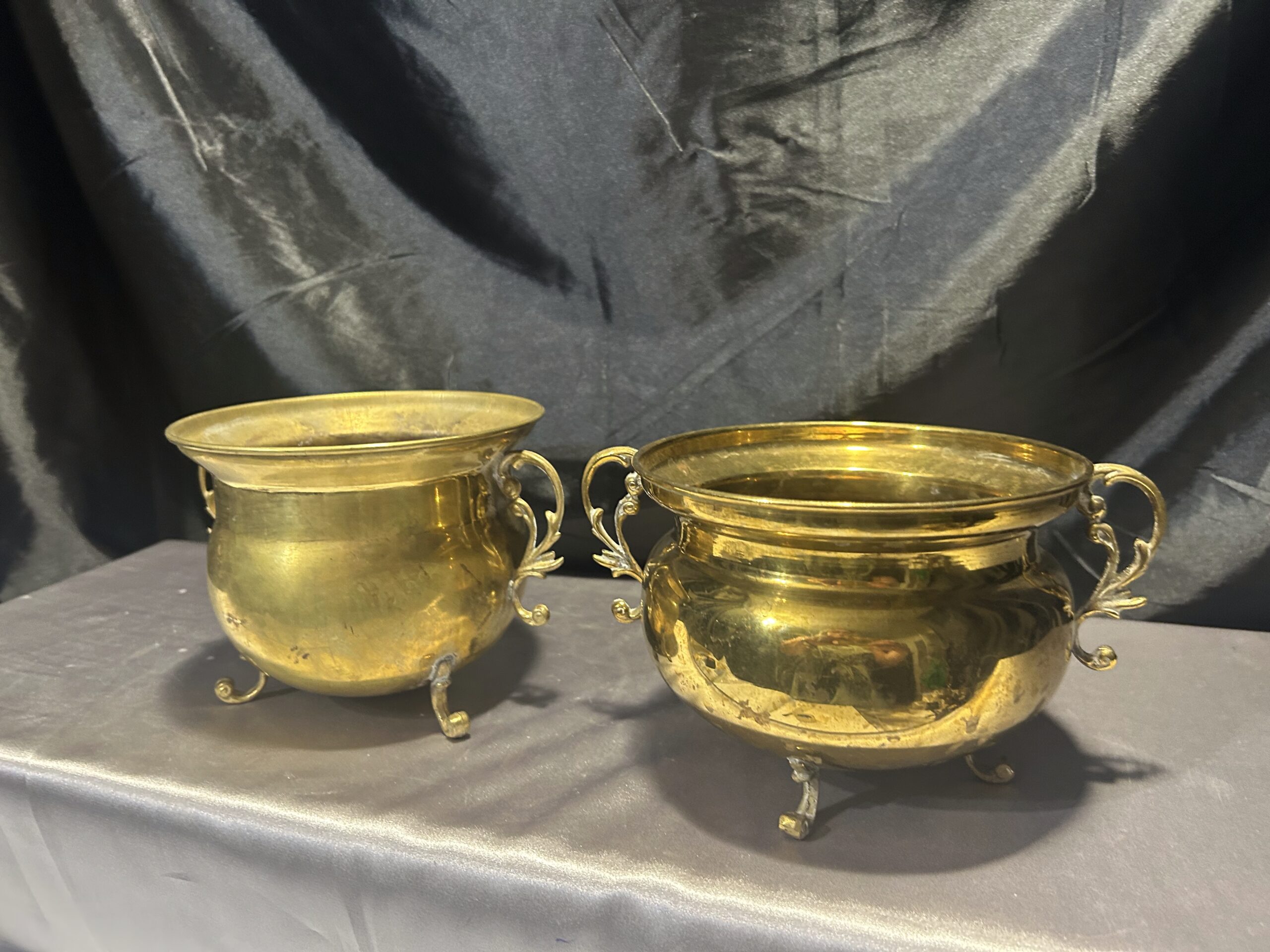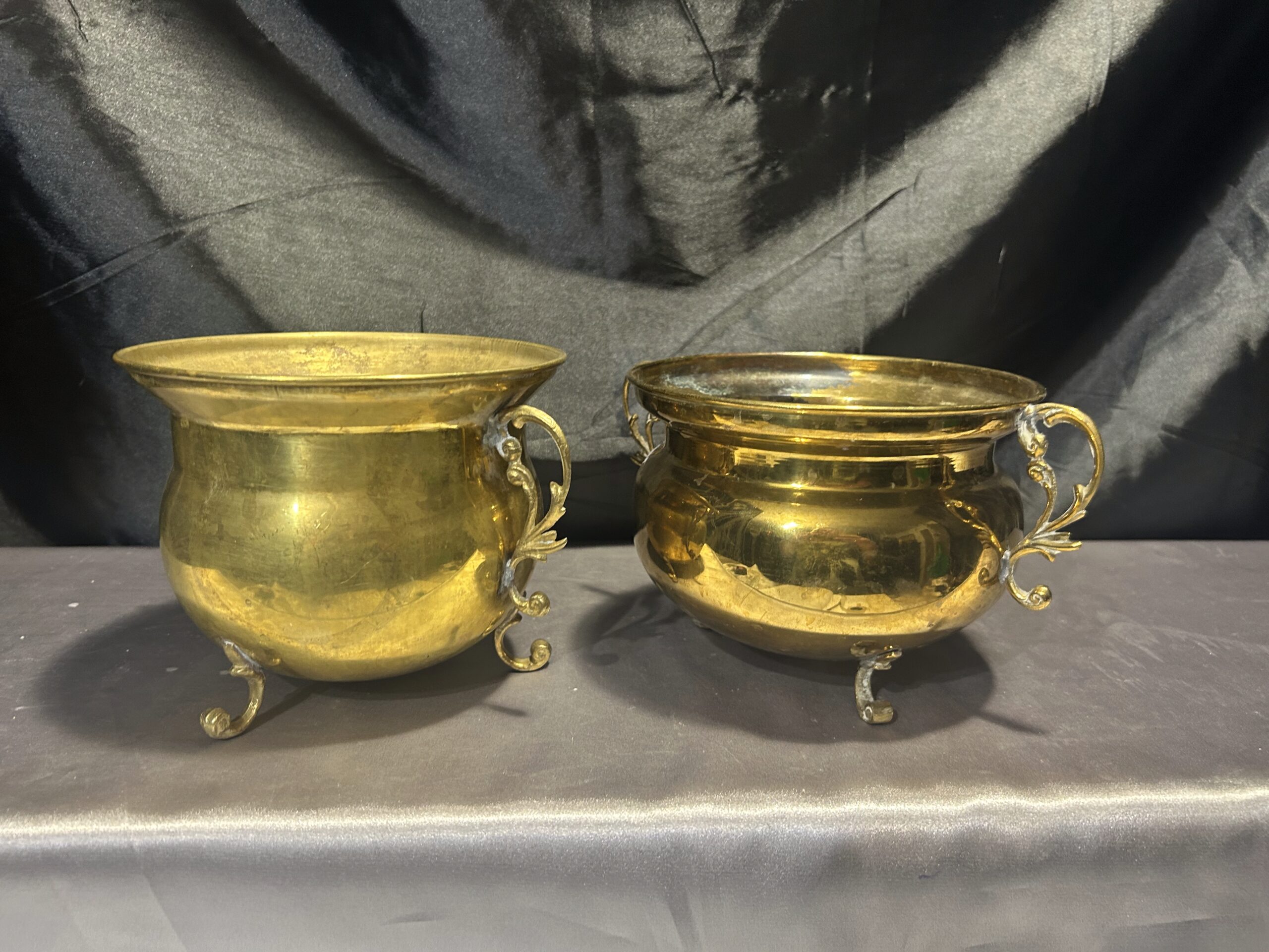 Zestaw 2 Mosiężnych Kwietników – Zdobione Uszy i Nogi
