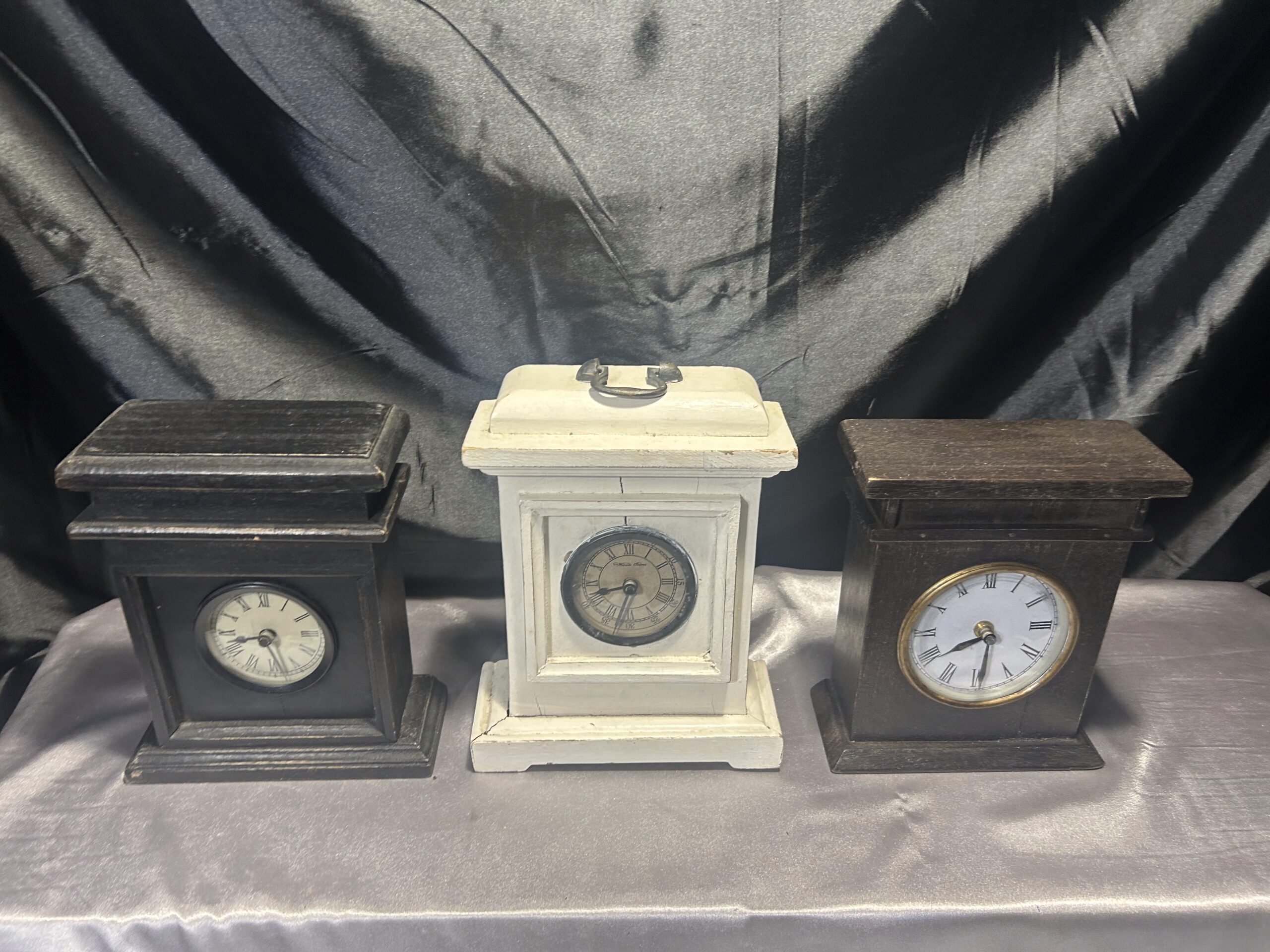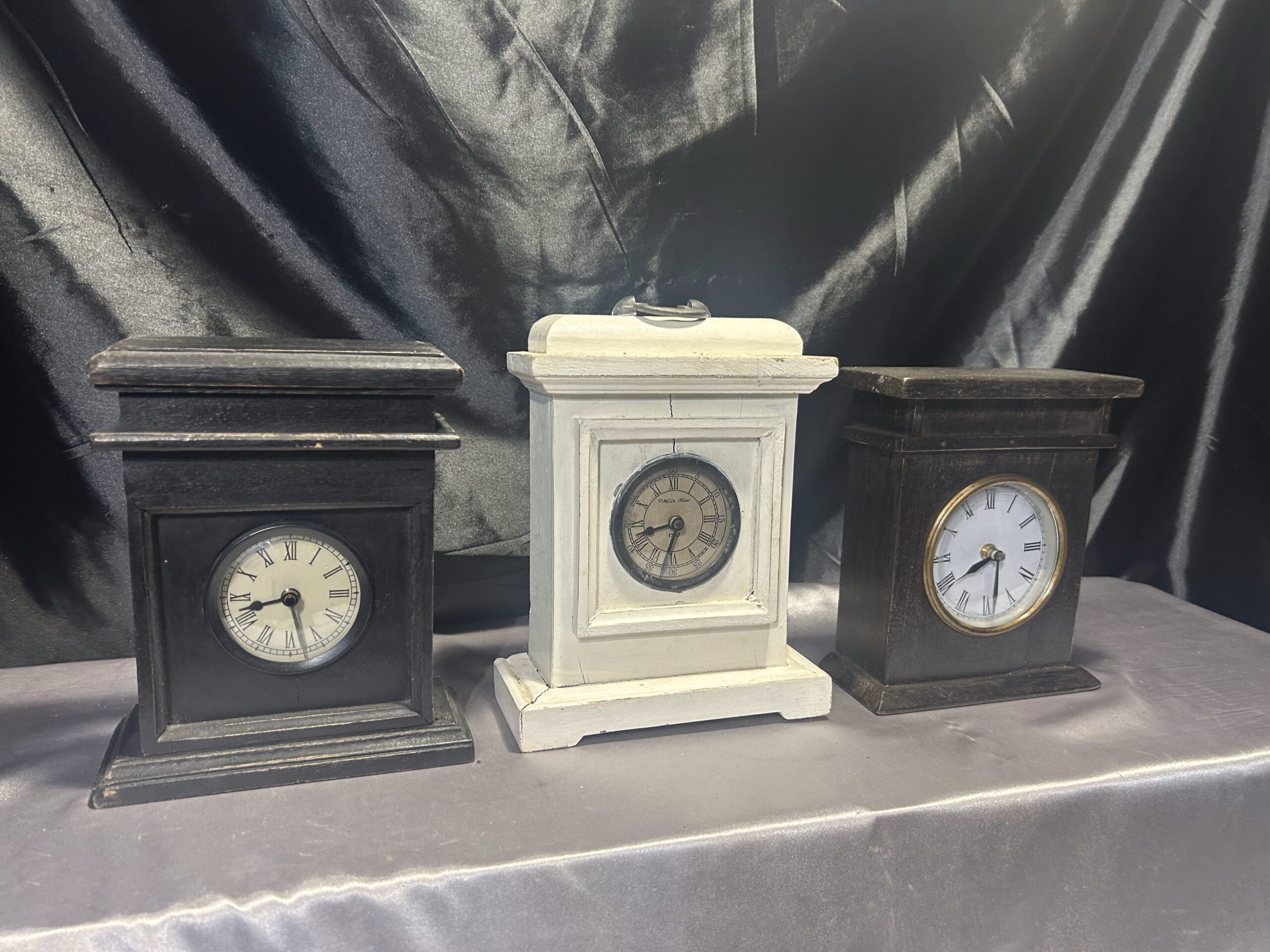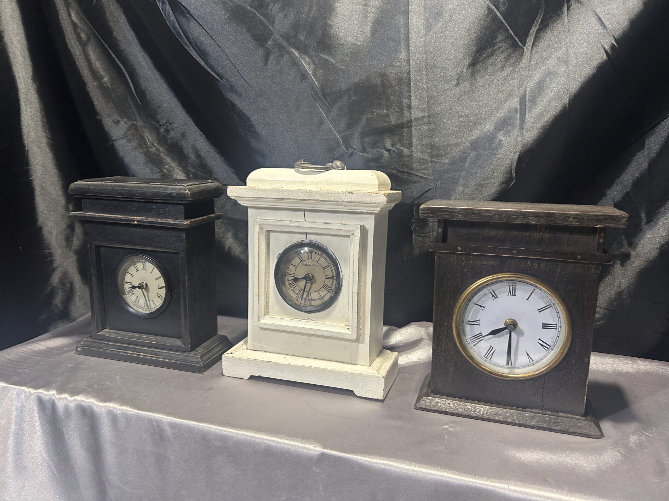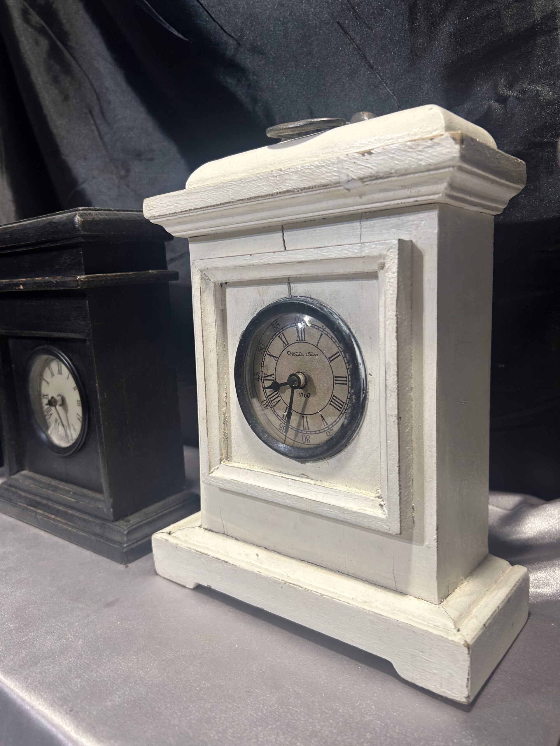 Stylowy zestaw trzech eleganckich zegarów wykonanych z drewna, każdy w innym kolorze – biały, brązowy i czarny. Klasyczne wzornictwo i solidne wykonanie sprawiają, że zegary doskonale komponują się we wnętrzach w stylu vintage, retro czy nowoczesnym. Wszystkie działają na baterię, co zapewnia wygodę użytkowania bez potrzeby nakręcania.