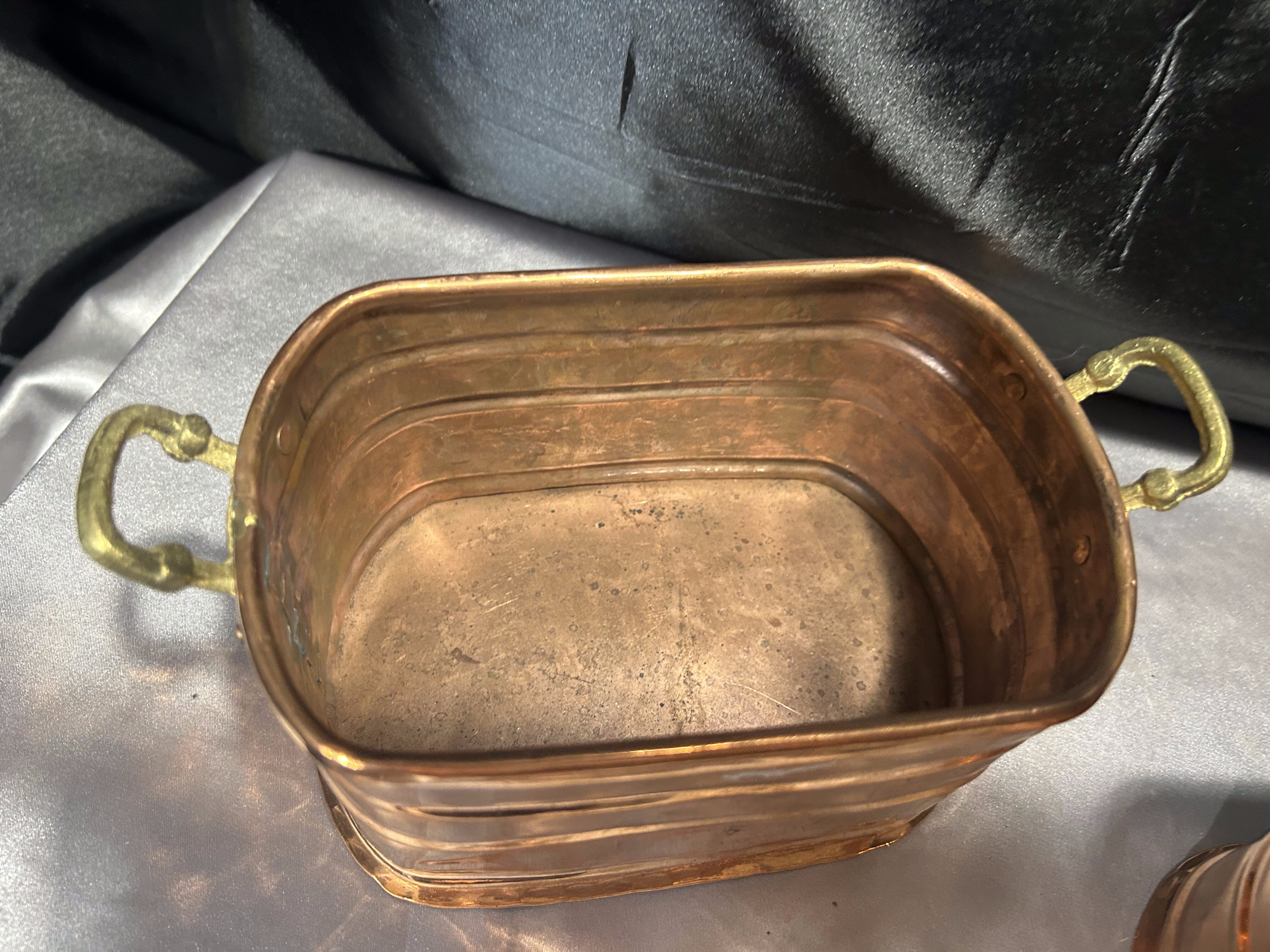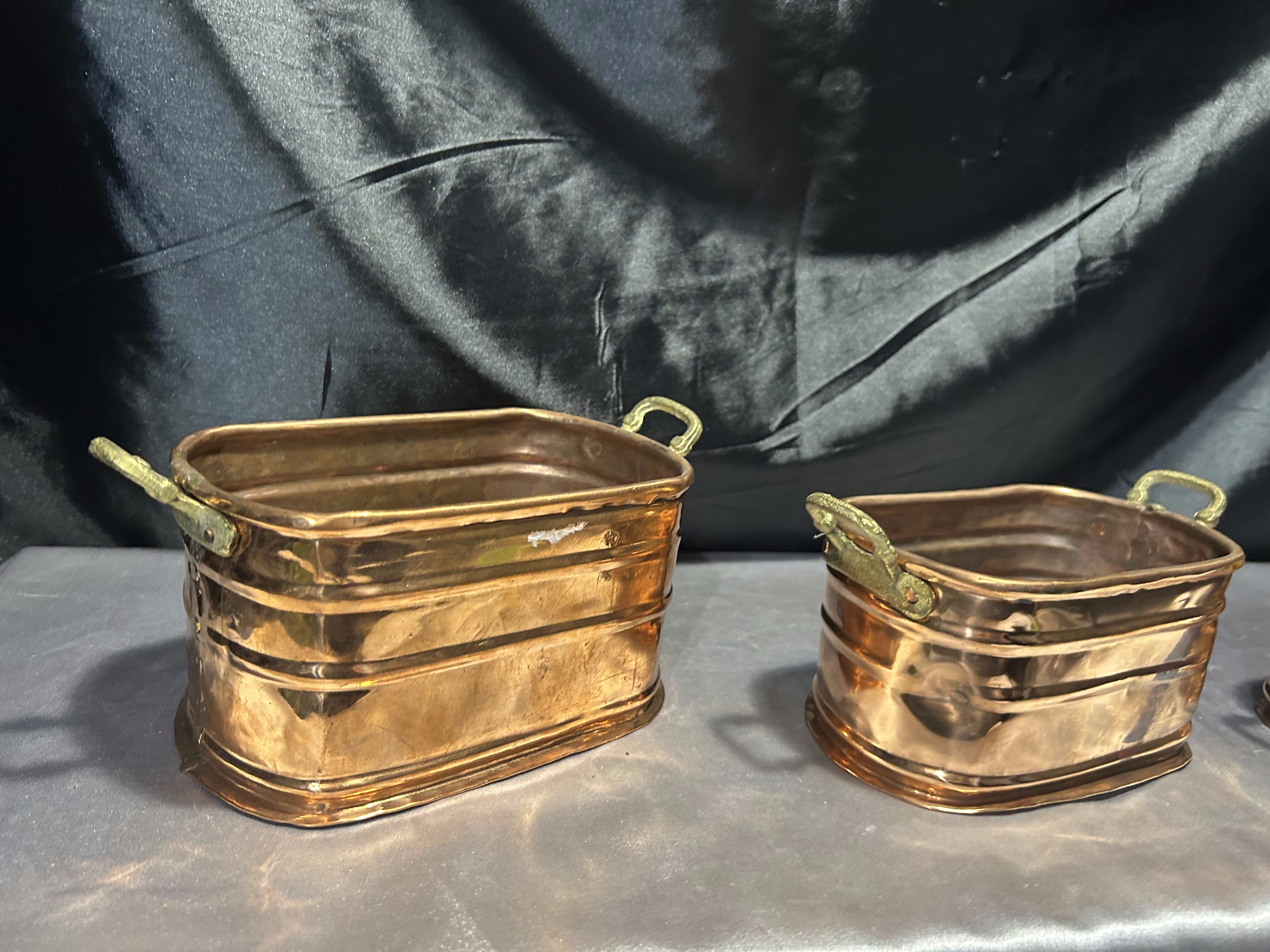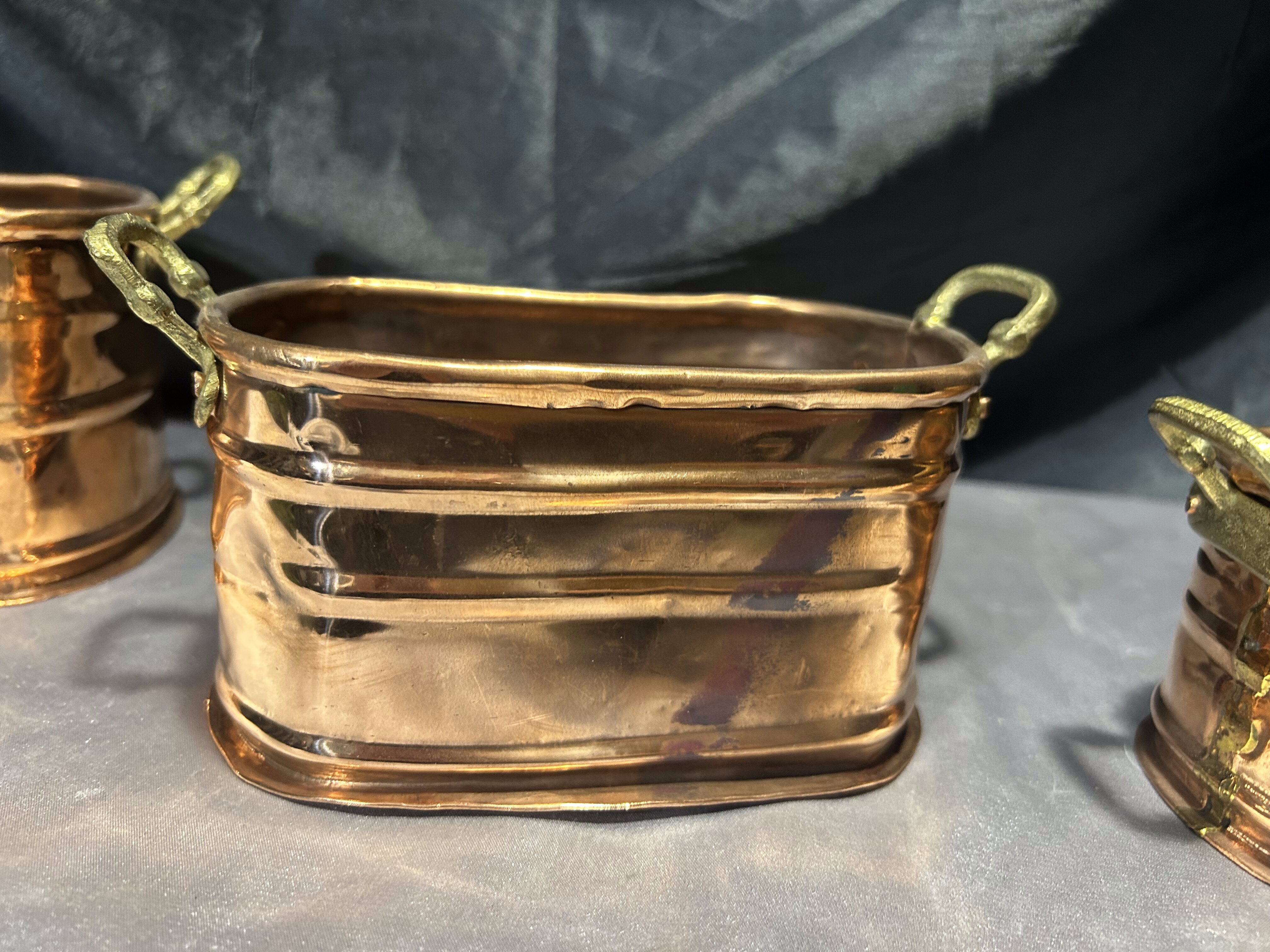 Zestaw 3 Miedzianych Kwietników – Prostokątne, z Mosiężnymi Rączkami – Styl Vintage