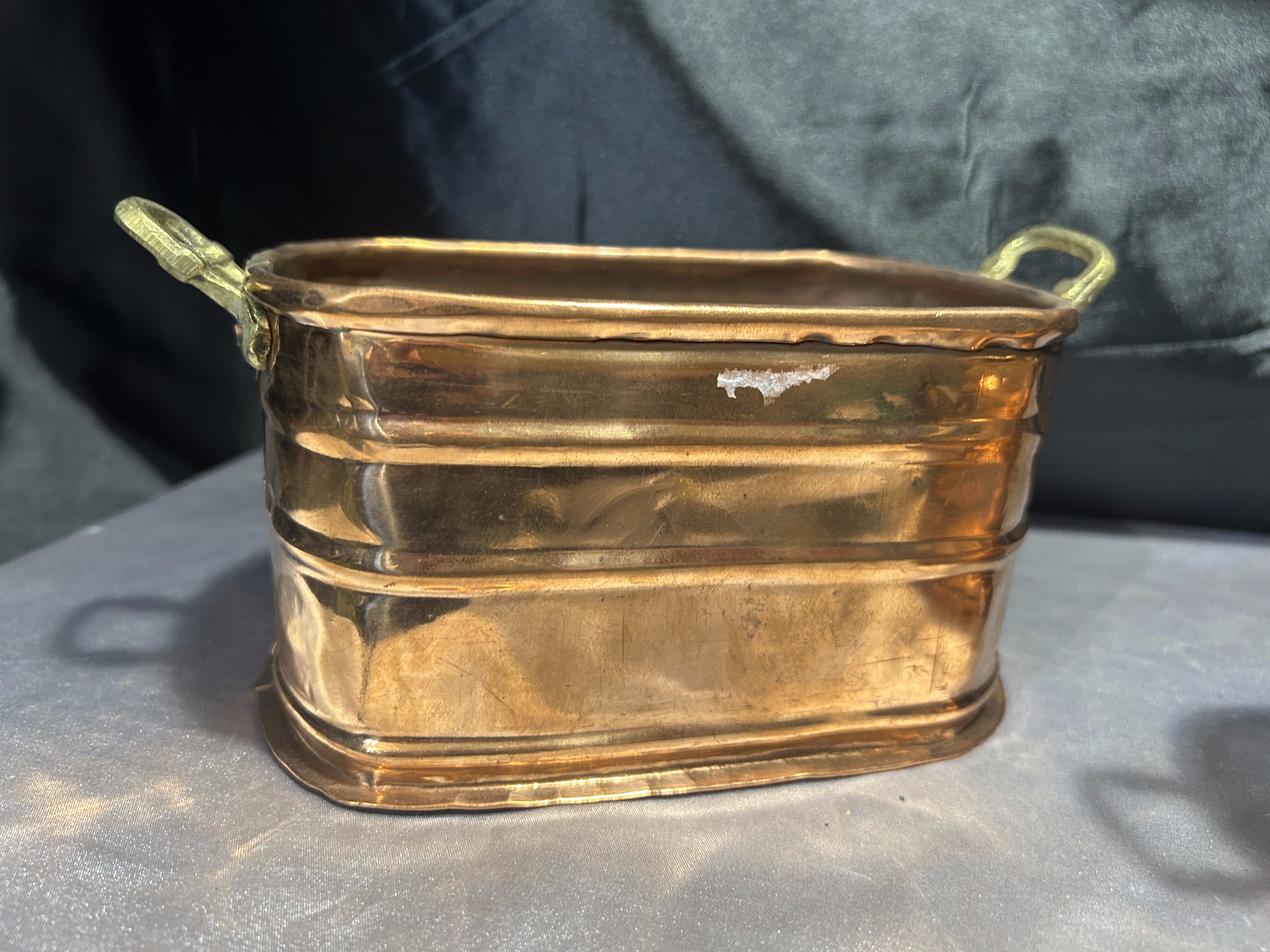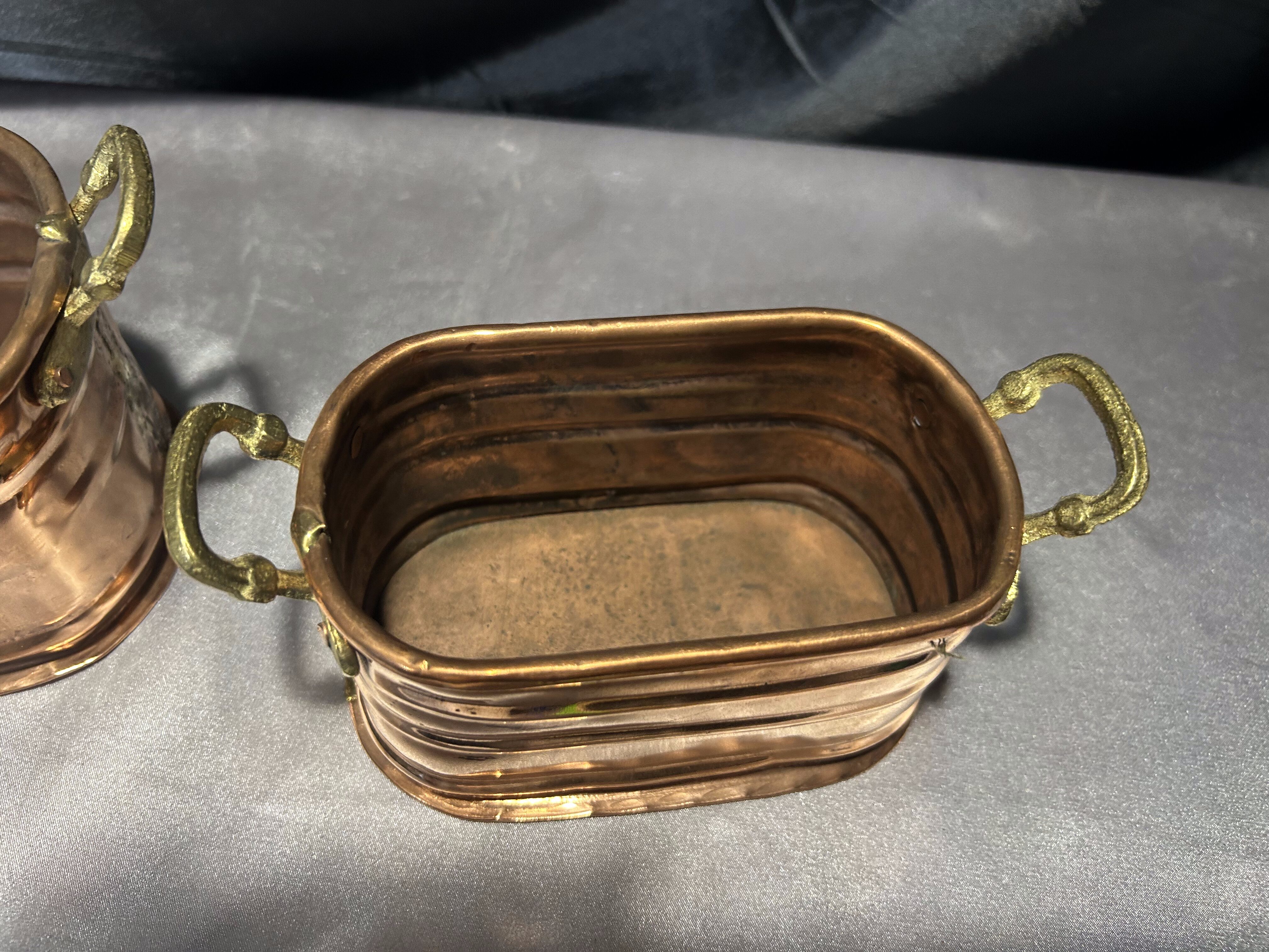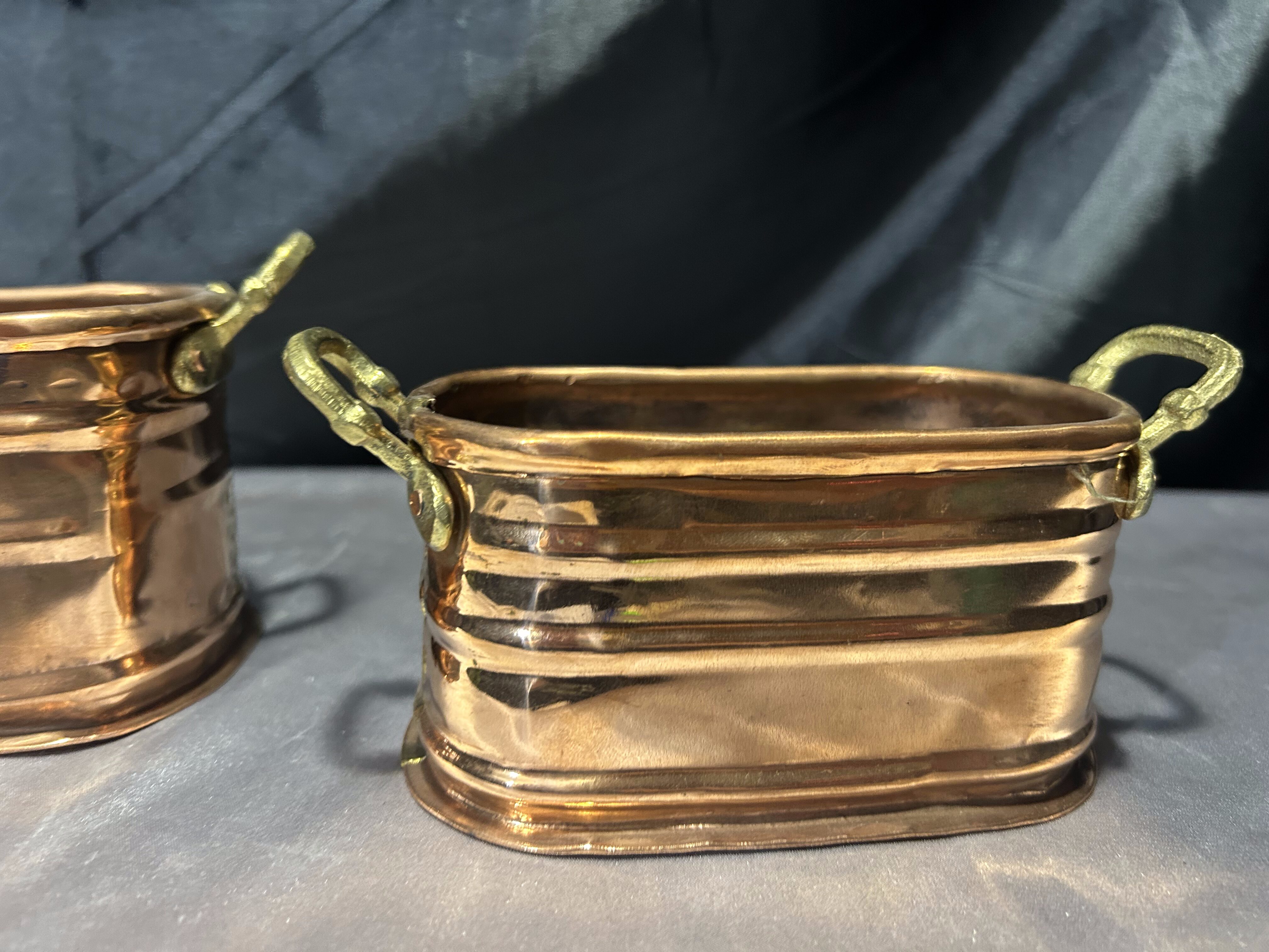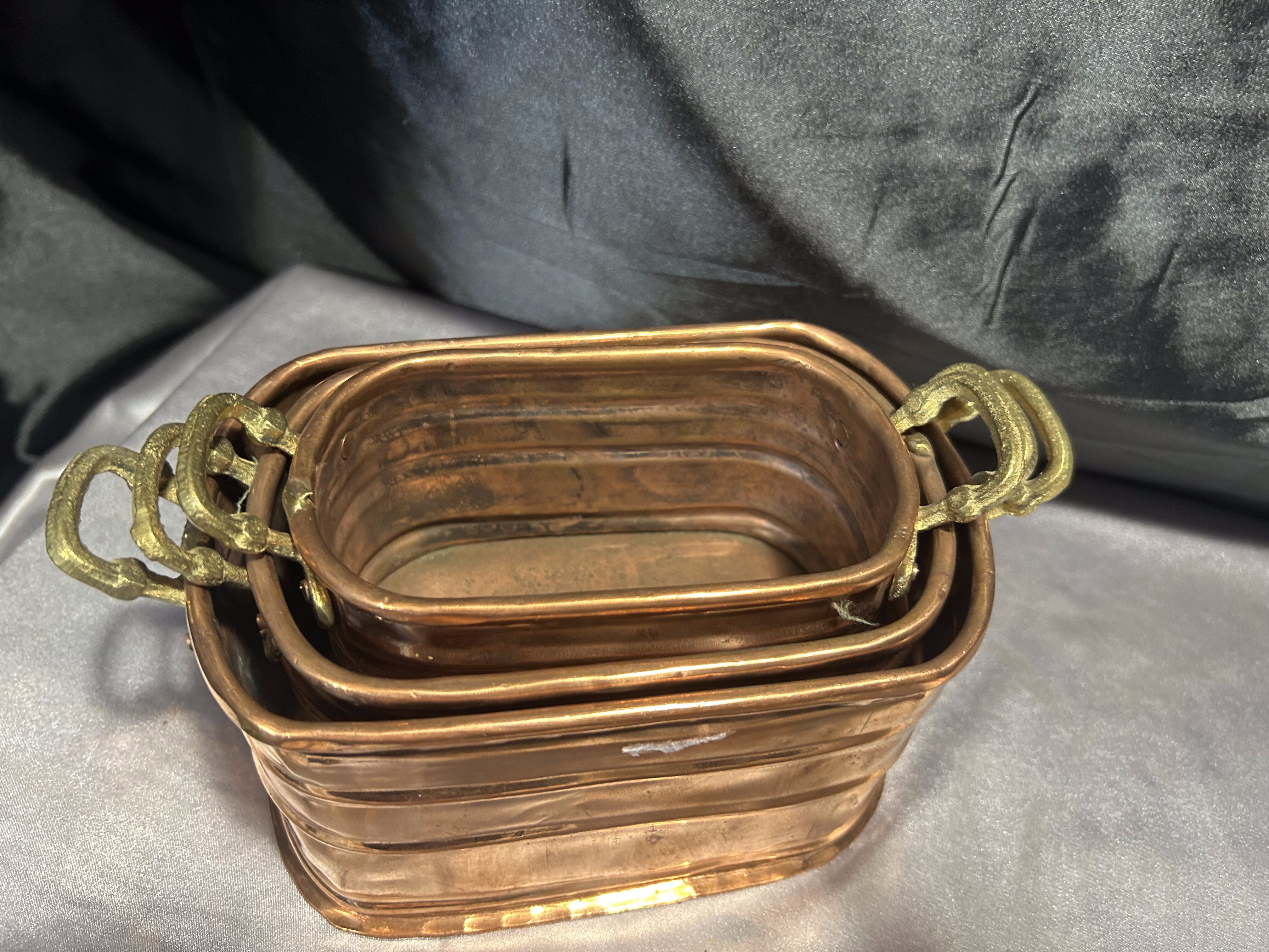 Zestaw 3 Miedzianych Kwietników – Prostokątne, z Mosiężnymi Rączkami – Styl Vintage