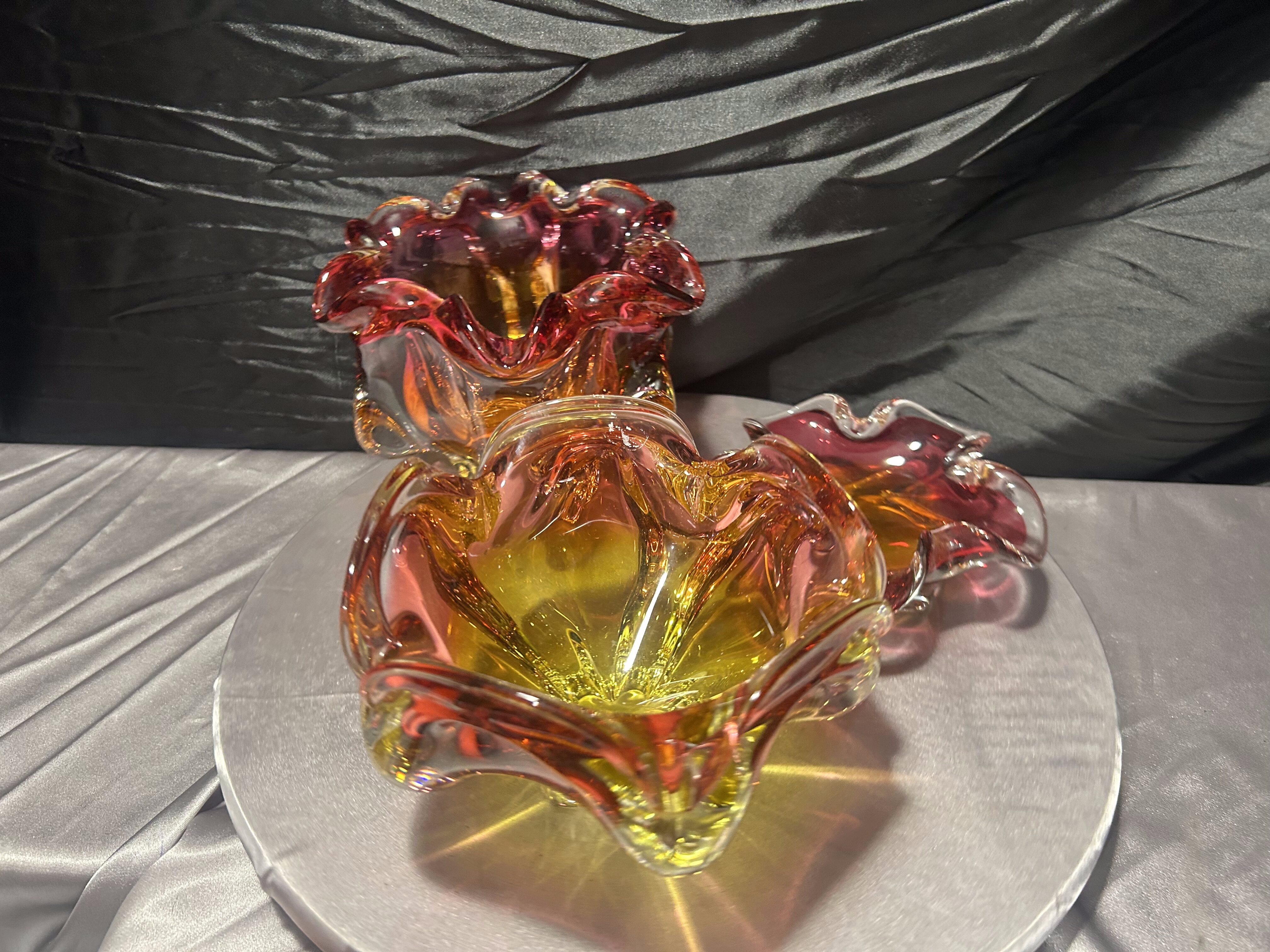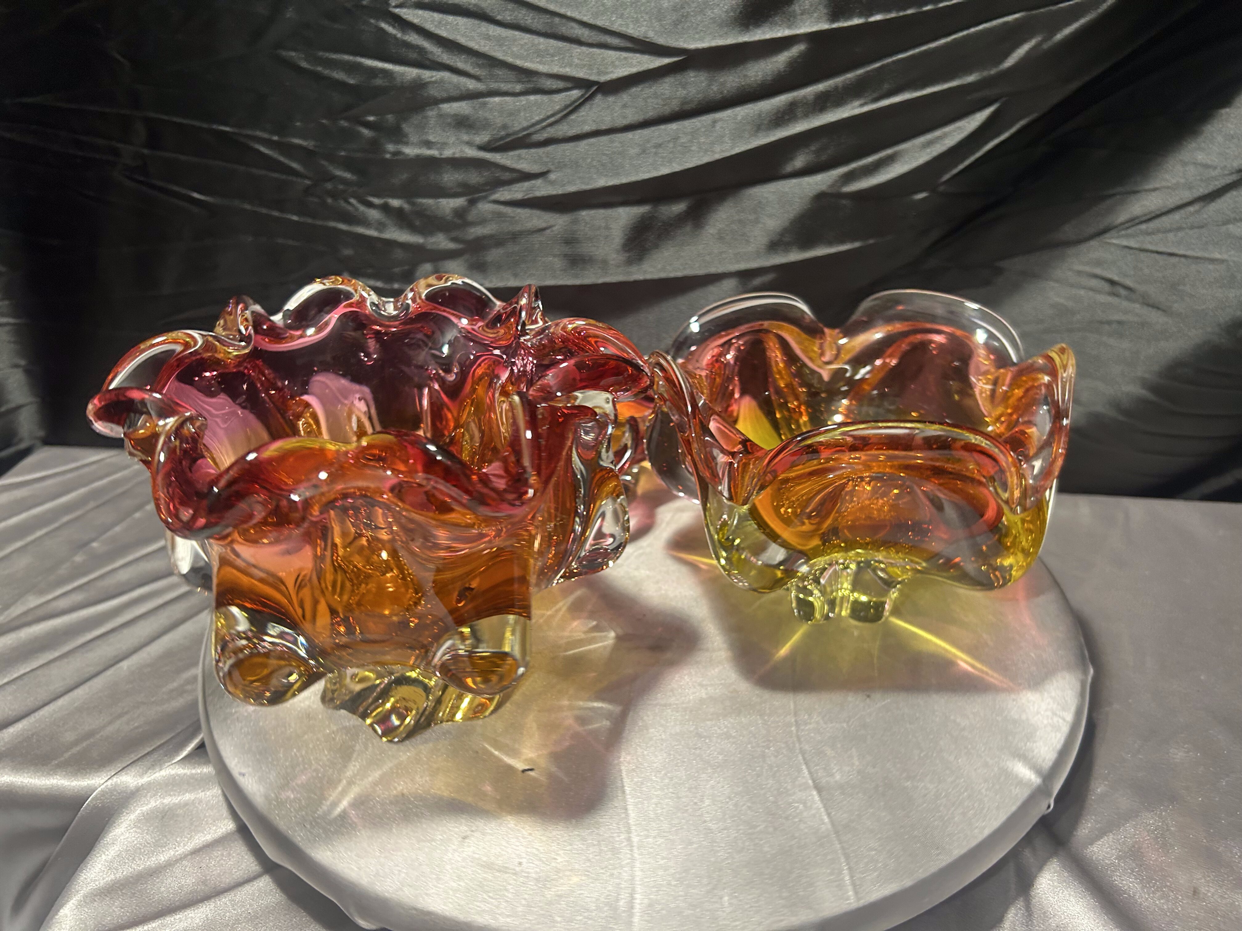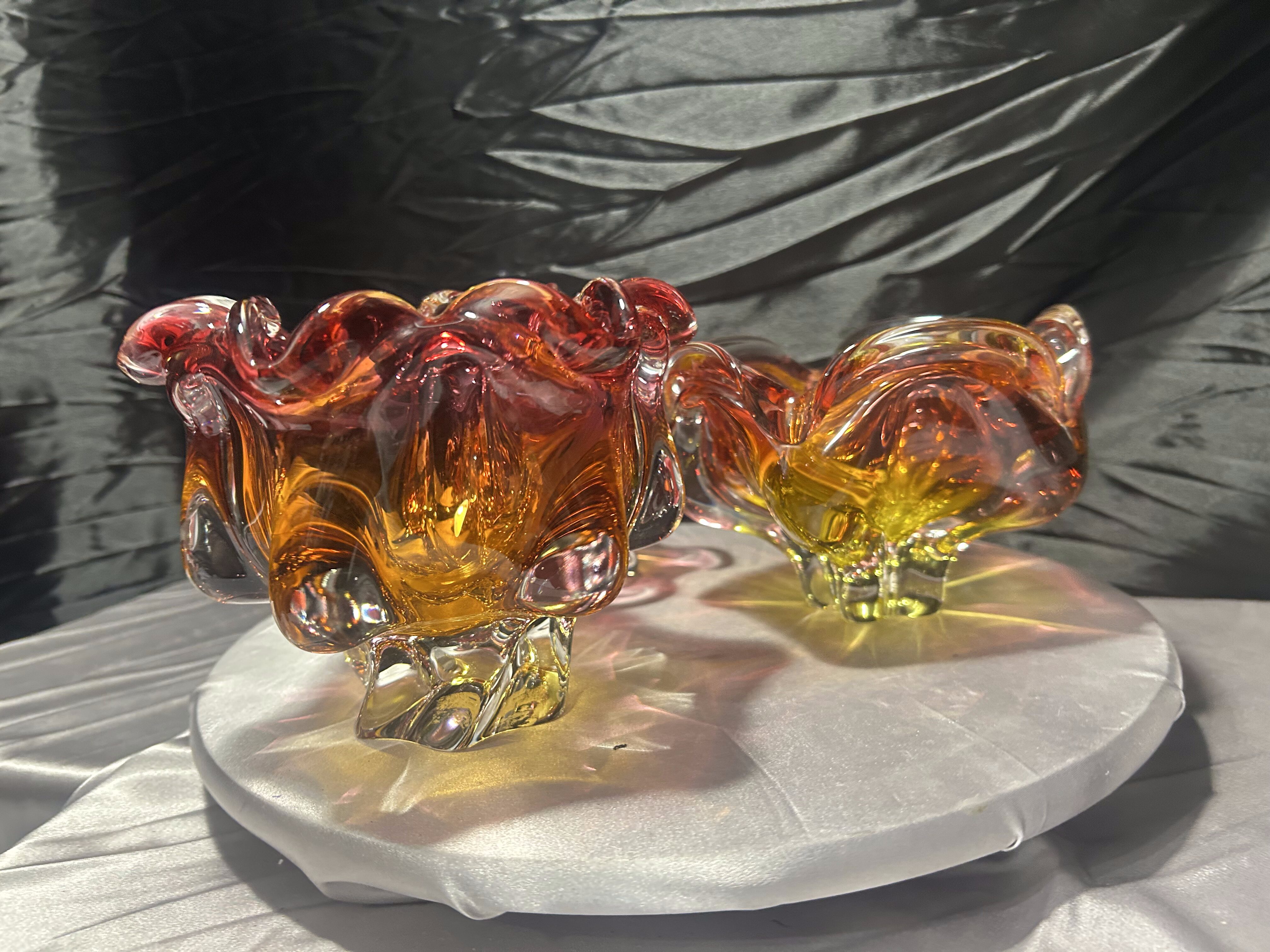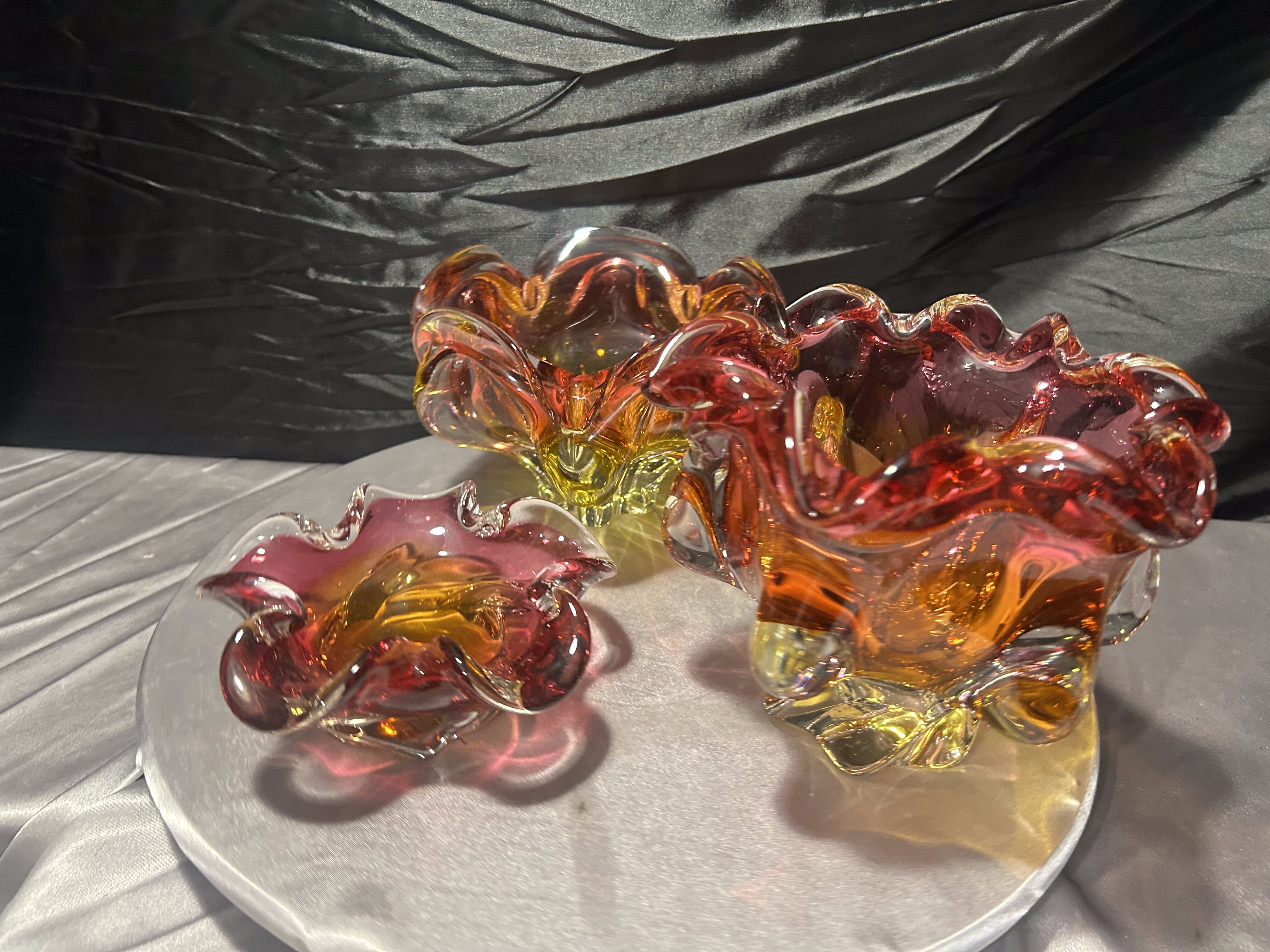 To niepowtarzalny zestaw dla miłośników czeskiego szkła artystycznego. Połączenie dynamicznej formy, intensywnej kolorystyki i ciężkiego wykonania sprawia, że misy stanowią wyrazisty akcent aranżacyjny oraz cenny element kolekcji.