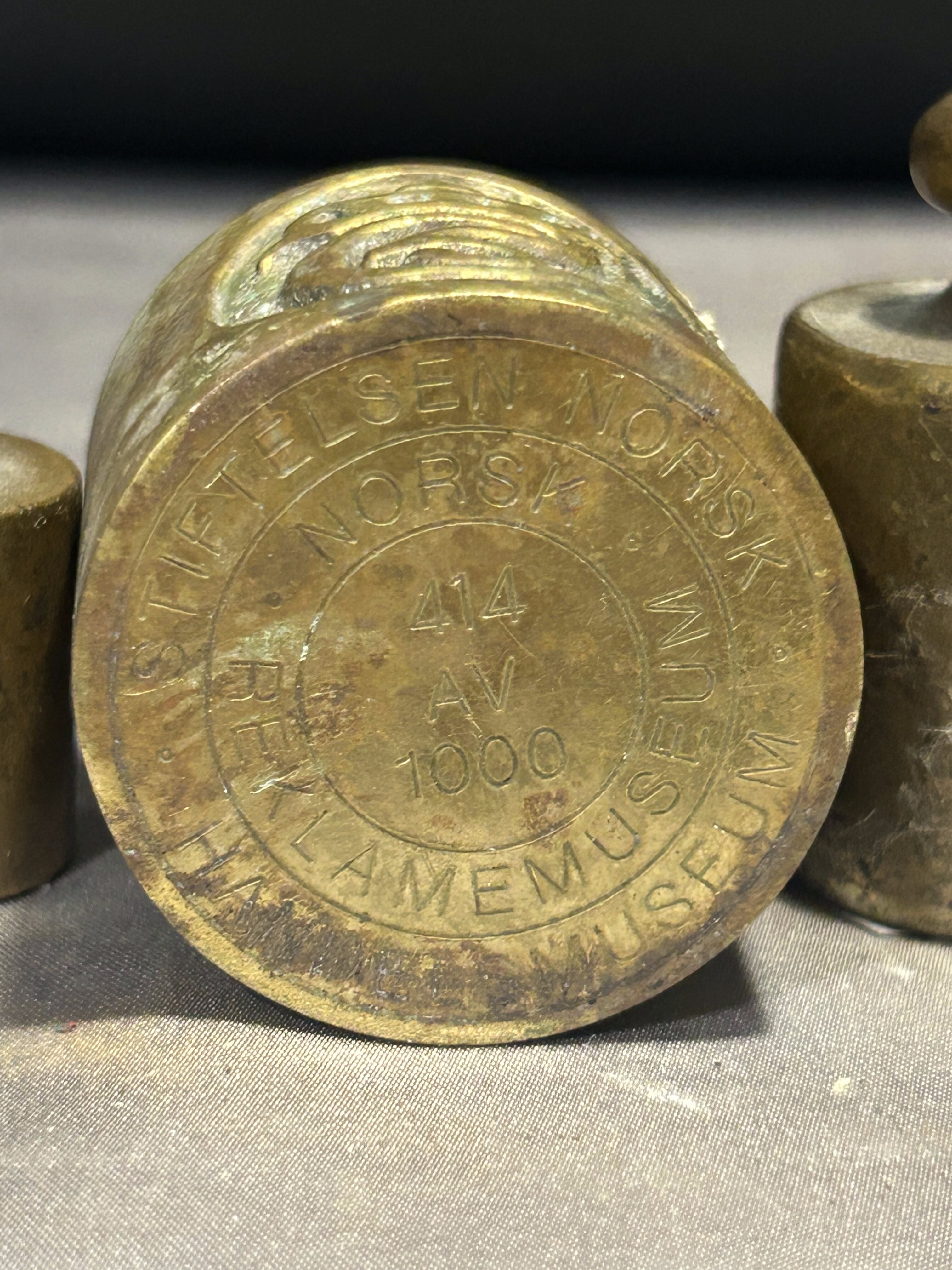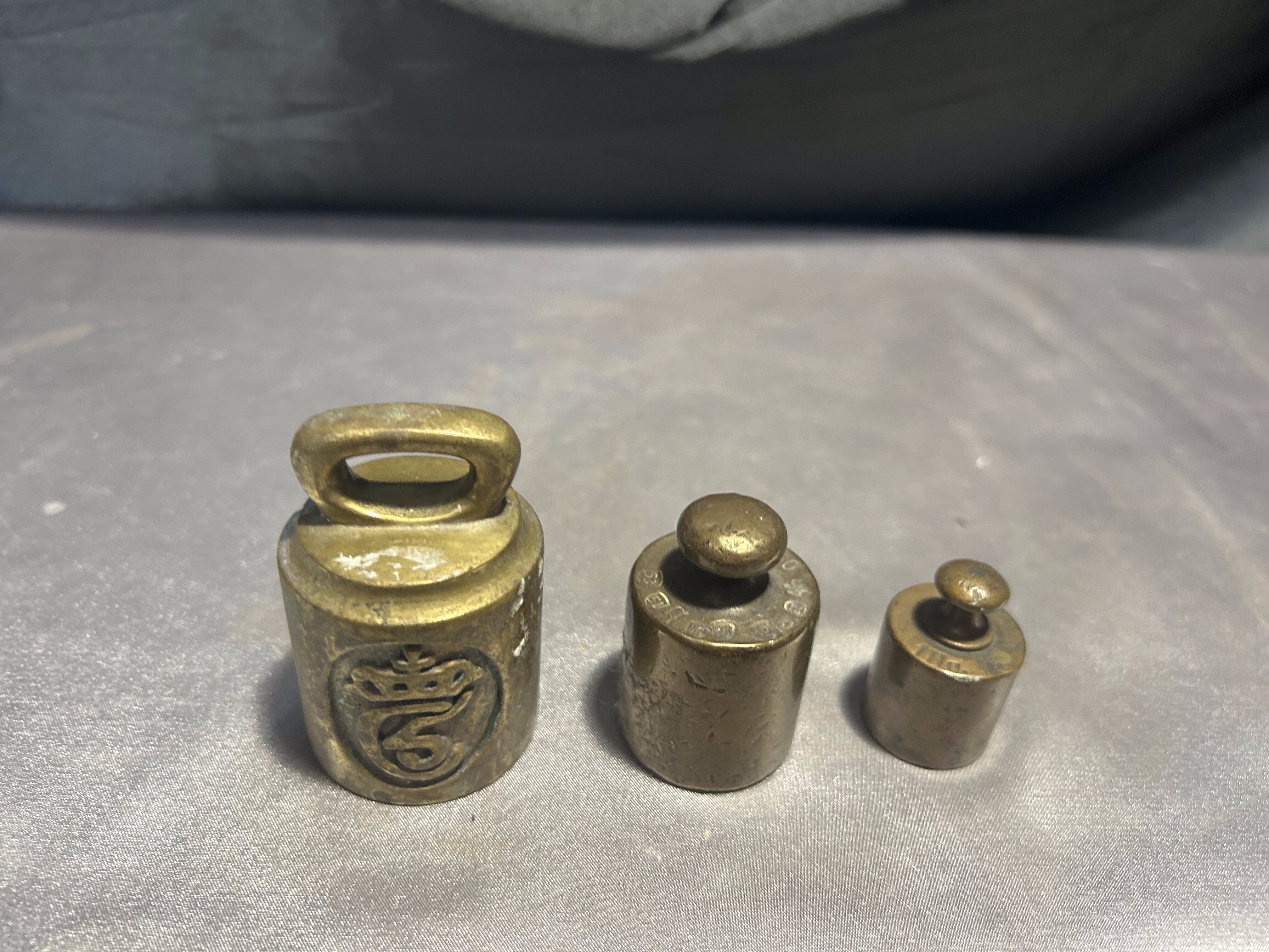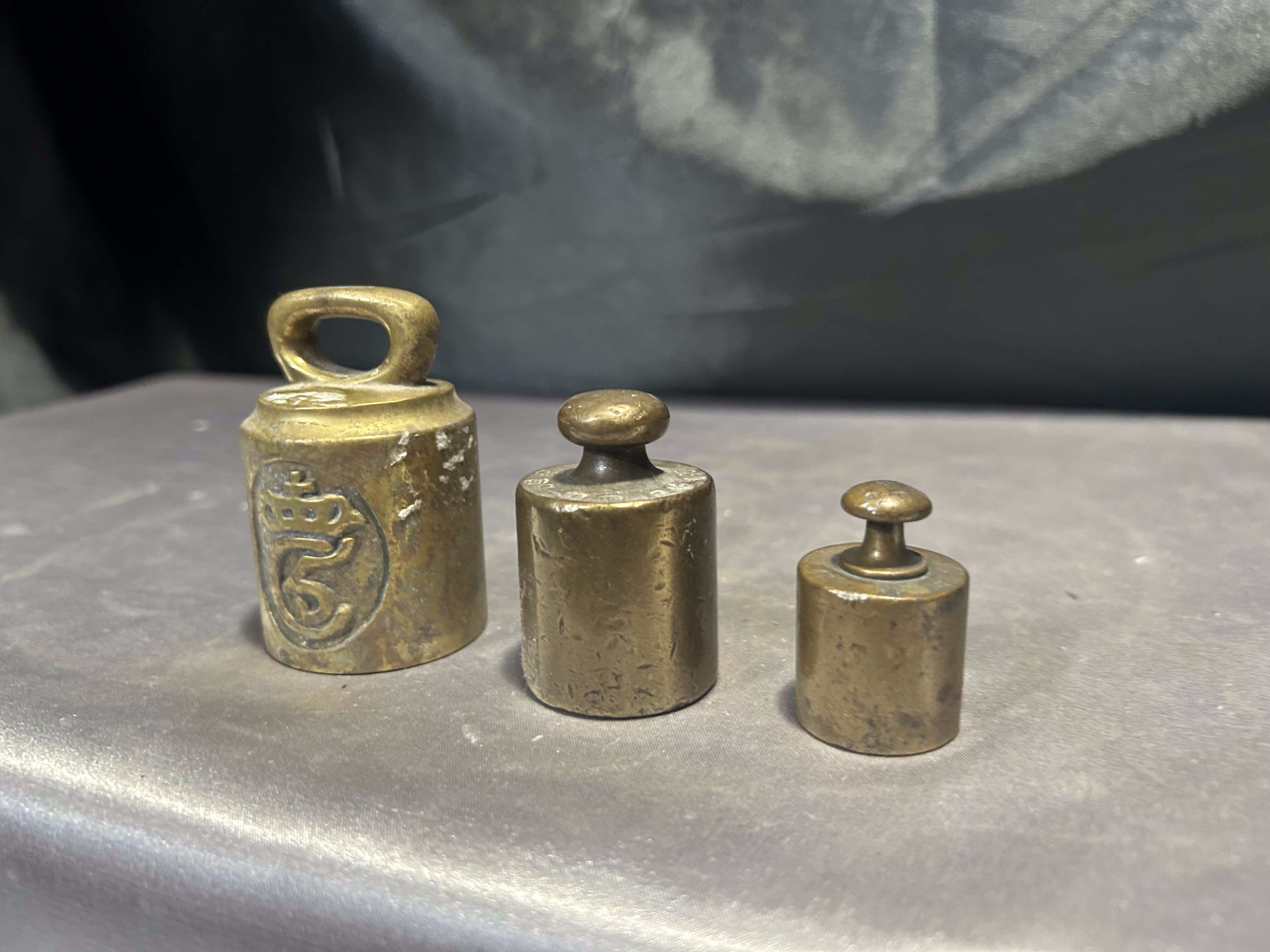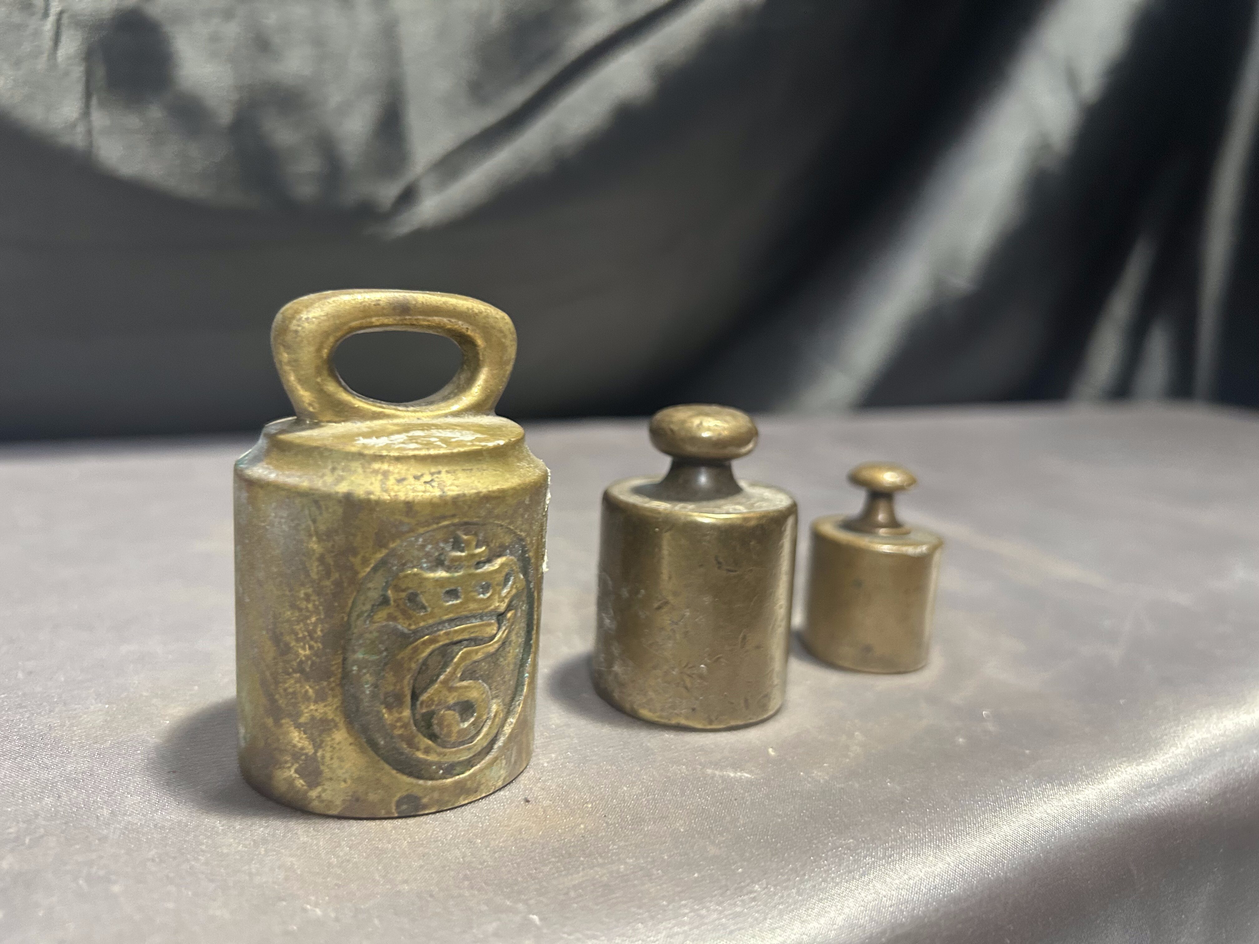 - Zestaw 3 odważników z mosiądzu – Sygnowane – Styl vintage