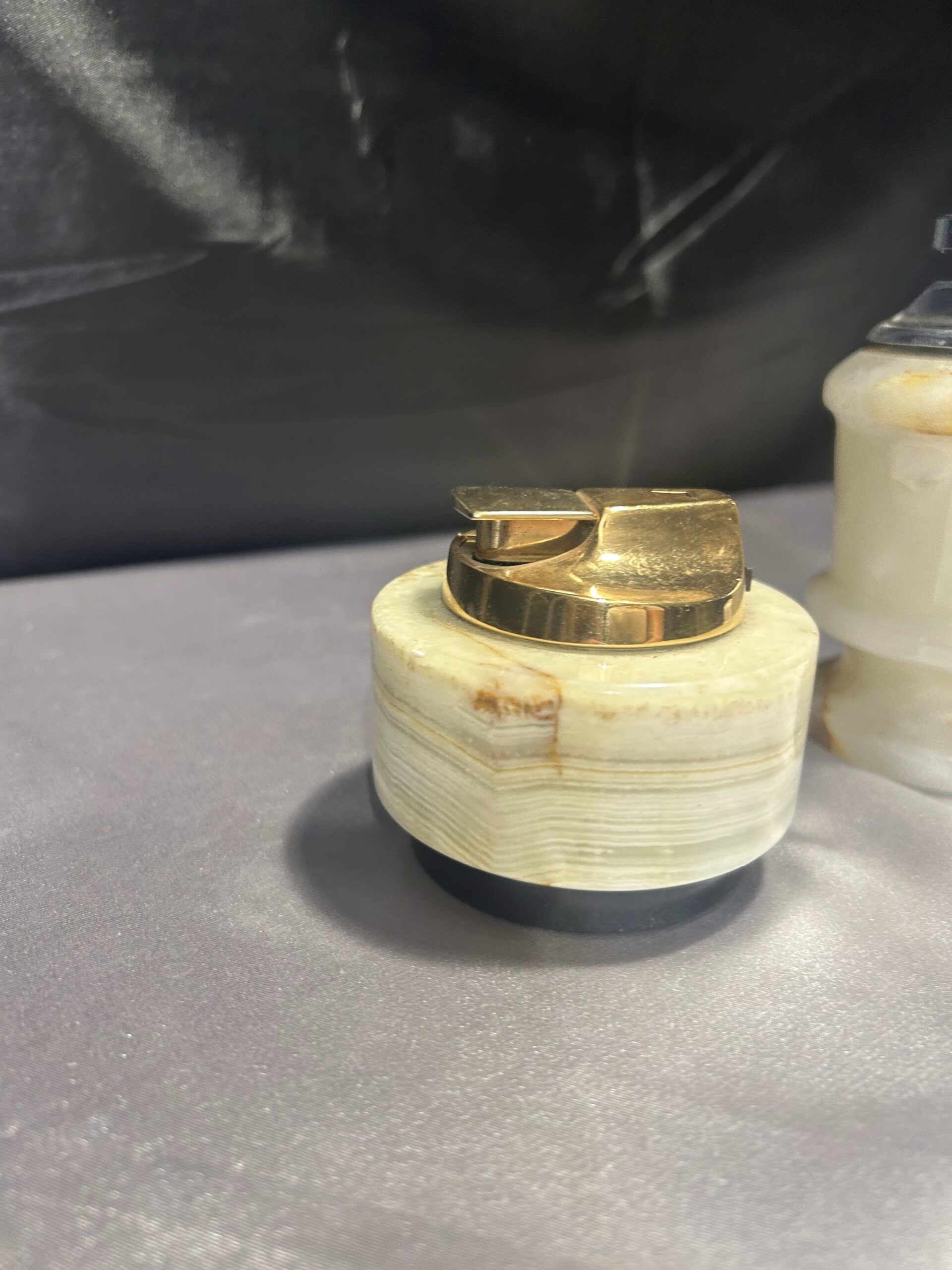 Wyjątkowy zestaw trzech zapalniczek ozdobnych, wykonanych z onyxu, z czego jedna pochodzi od firmy RONSON. Te eleganckie dodatki łączą w sobie funkcjonalność z unikalnym designem, co czyni je doskonałym wyborem dla osób ceniących oryginalne dekoracje oraz prestiżowe akcenty w swoim otoczeniu.