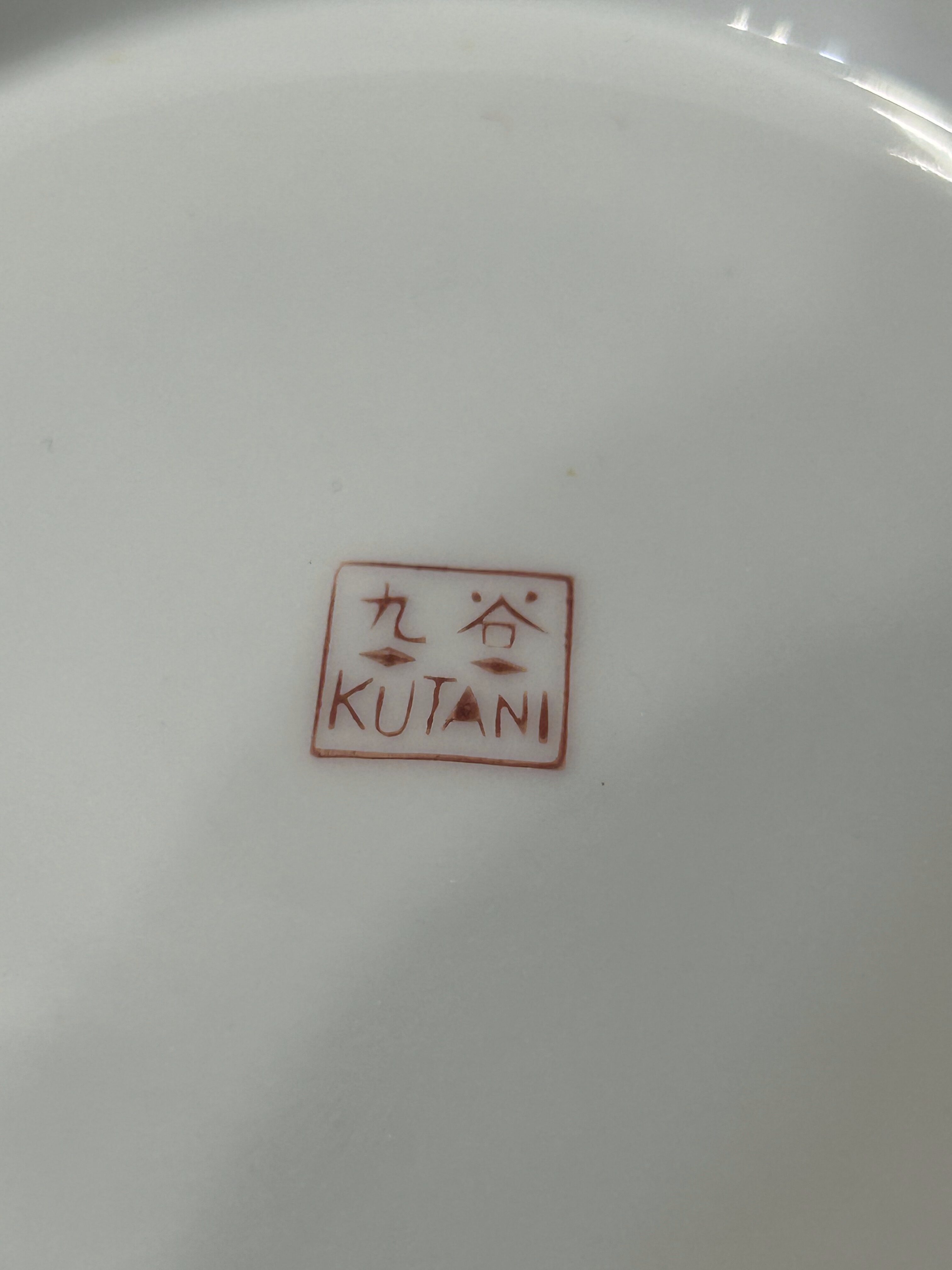 Całość zdobią klasyczne dla Kutani pejzaże – japońskie pagody, drzewa, góry – pełne subtelnych detali i złoconych akcentów.