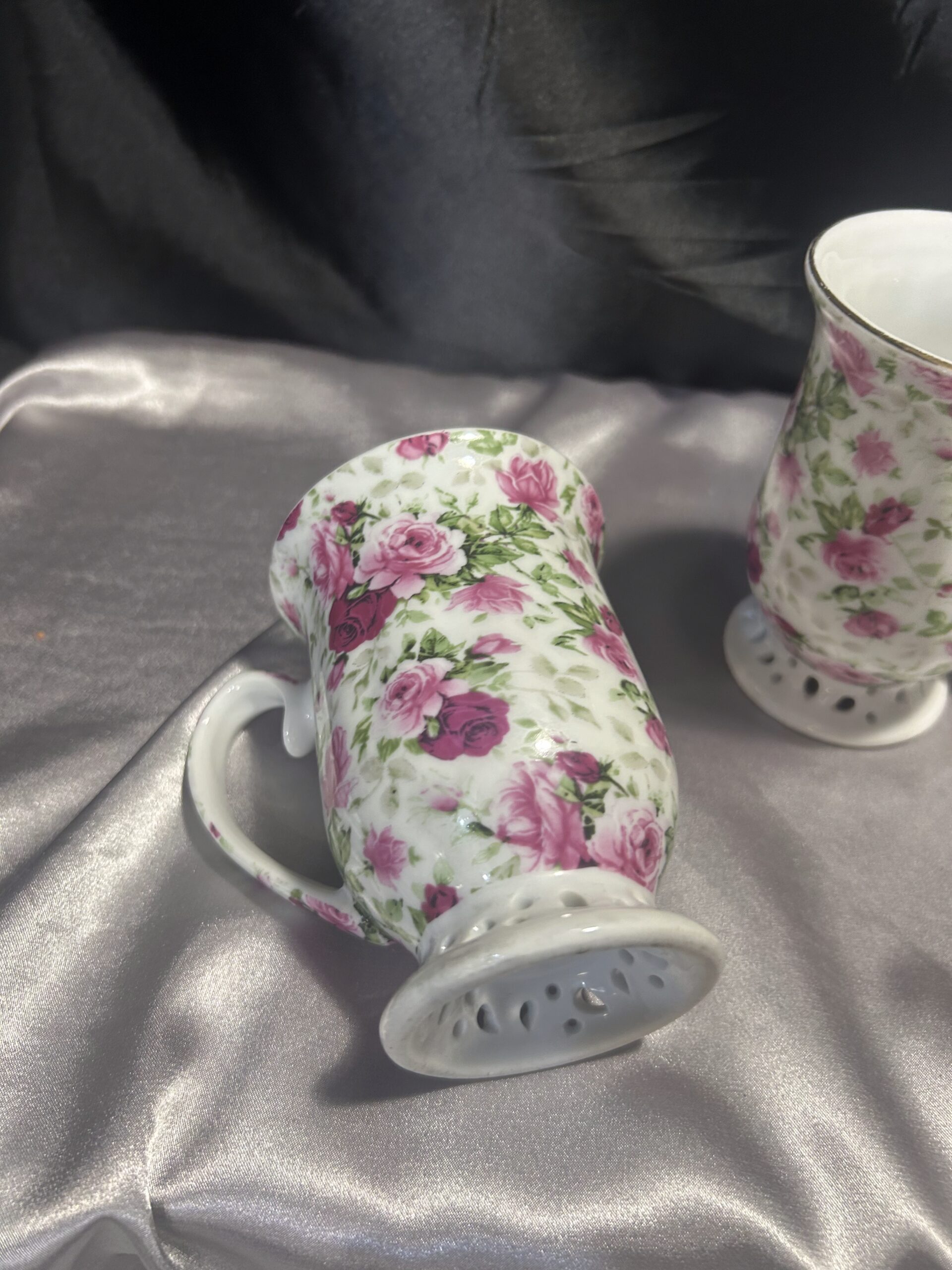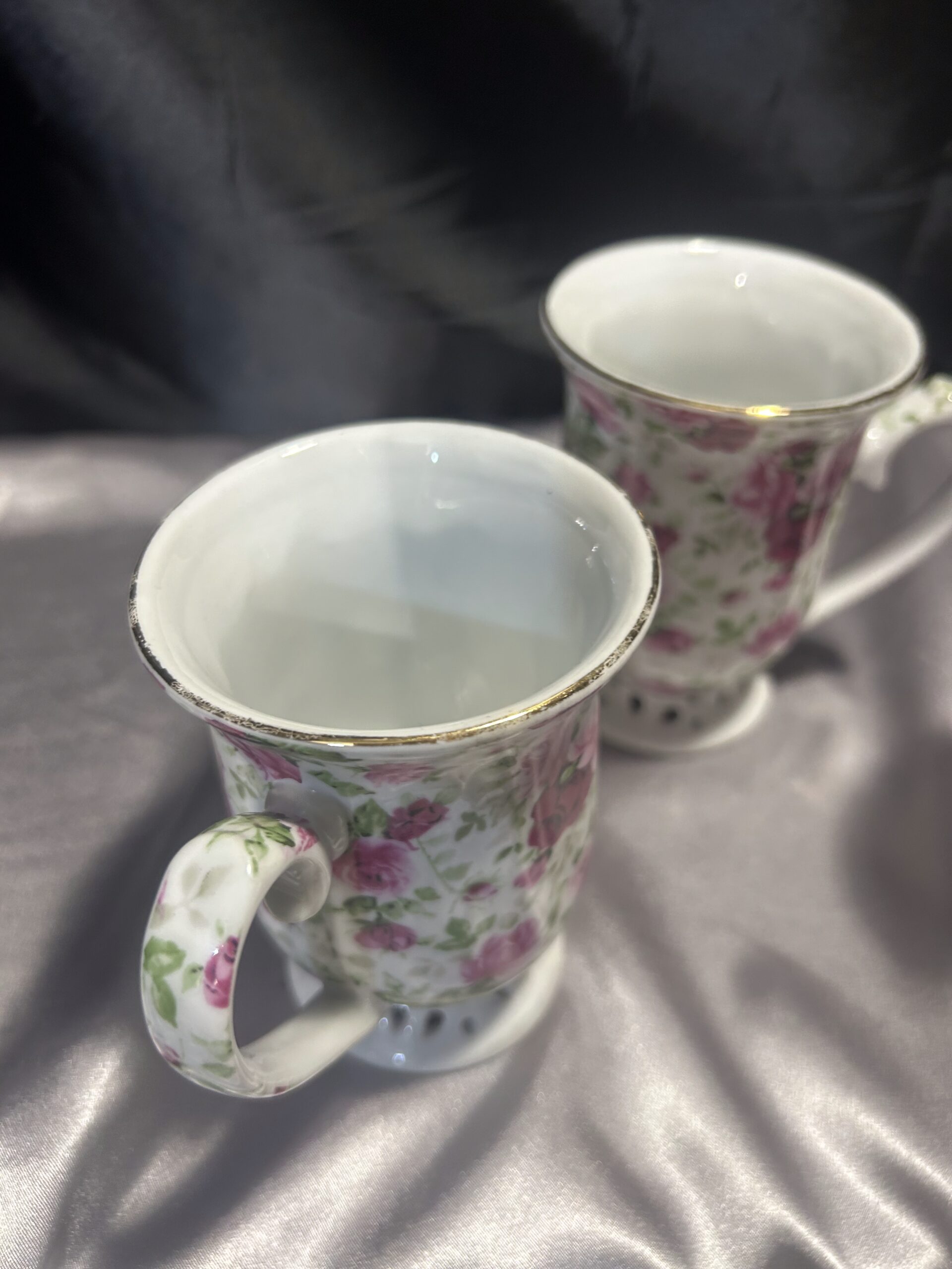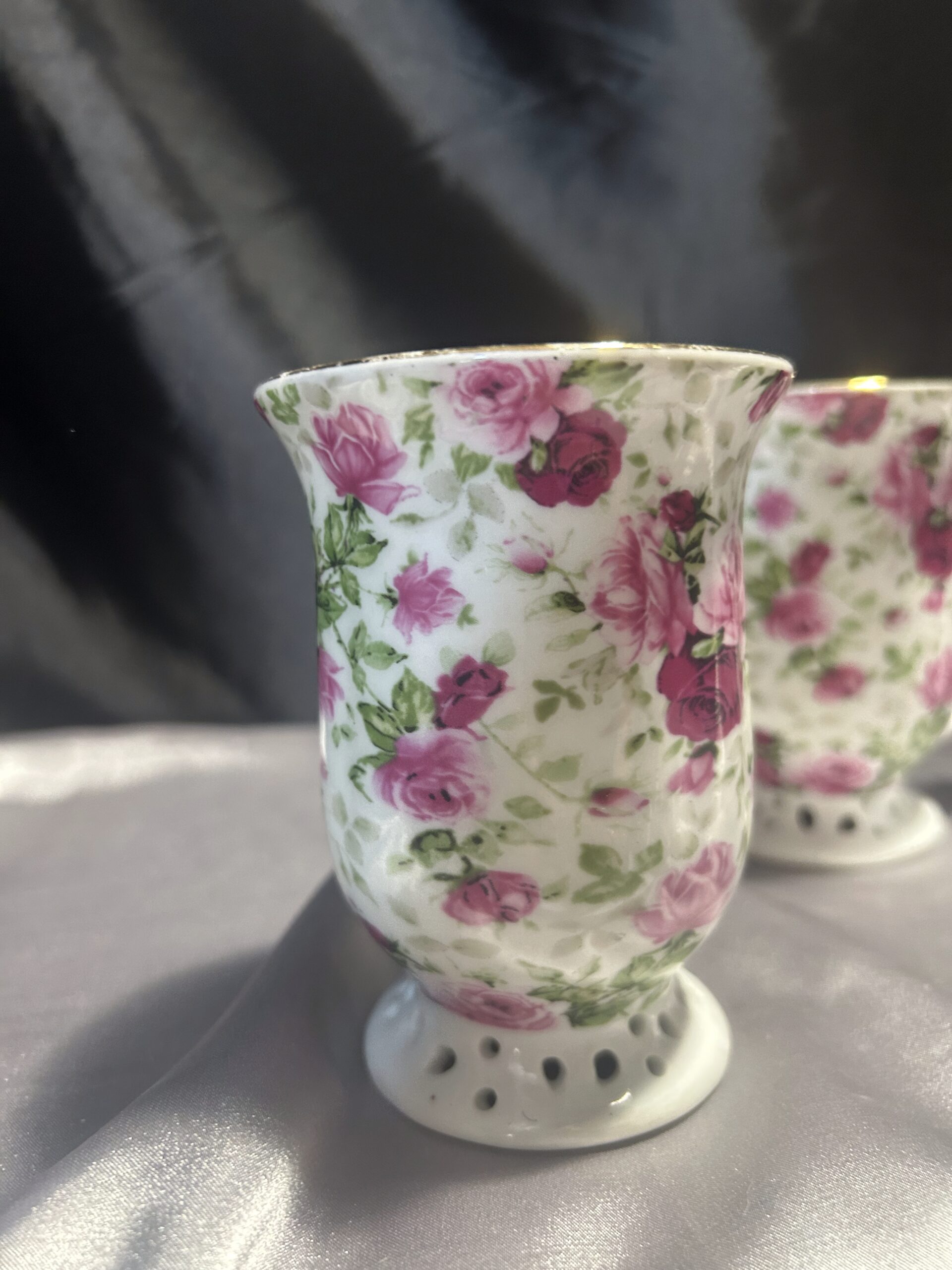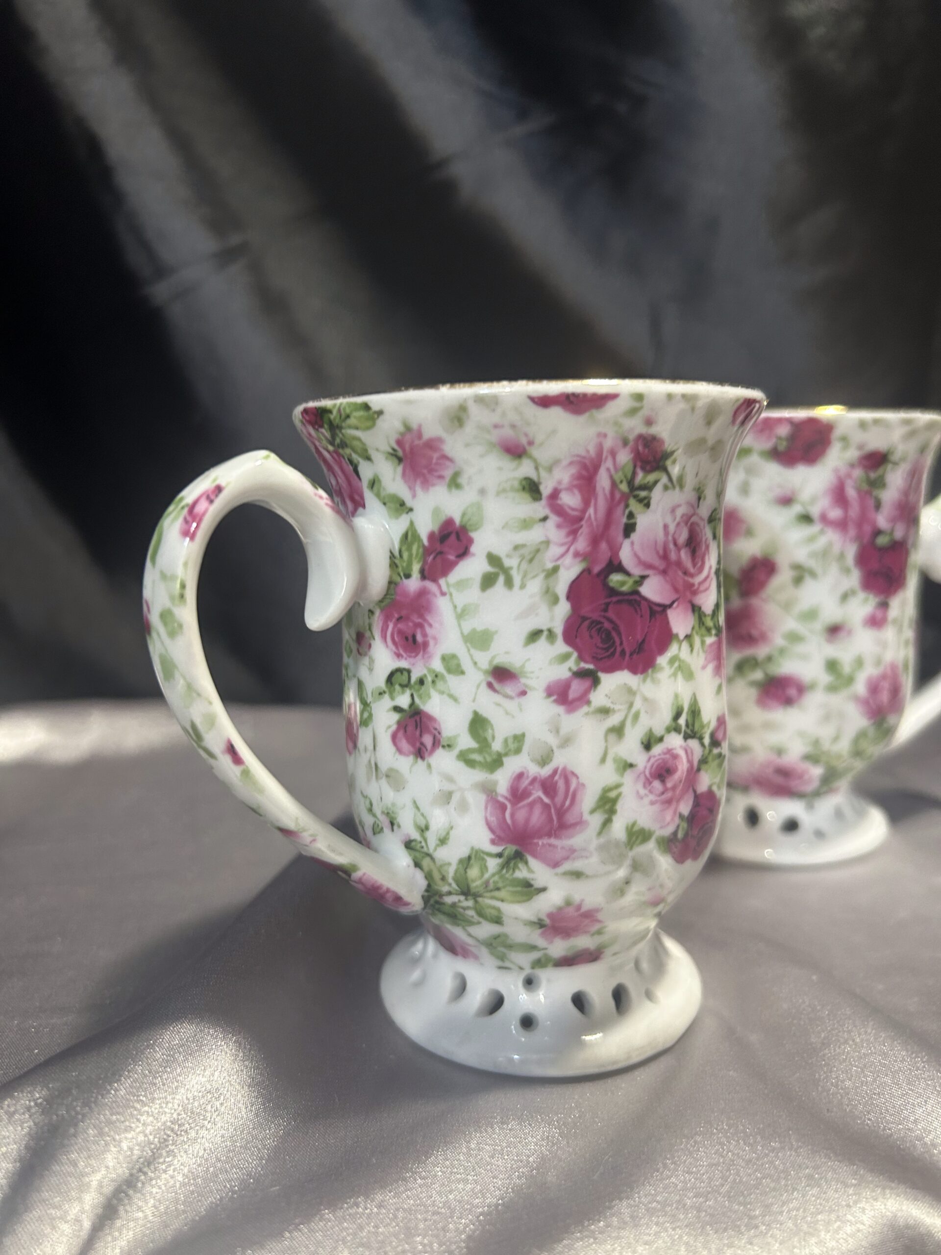 Ten zestaw kubków to doskonały wybór dla osób ceniących sobie elegancję i wysoką jakość wykonania. Delikatne, ażurowe detale oraz wyrafinowane zdobienia w postaci różowych kwiatów i złotych obramówek nadają im wyjątkowego charakteru. Kubki sprawdzą się idealnie zarówno podczas codziennych chwil relaksu, jak i przy specjalnych okazjach, stanowiąc doskonały akcent dekoracyjny w każdym wnętrzu.