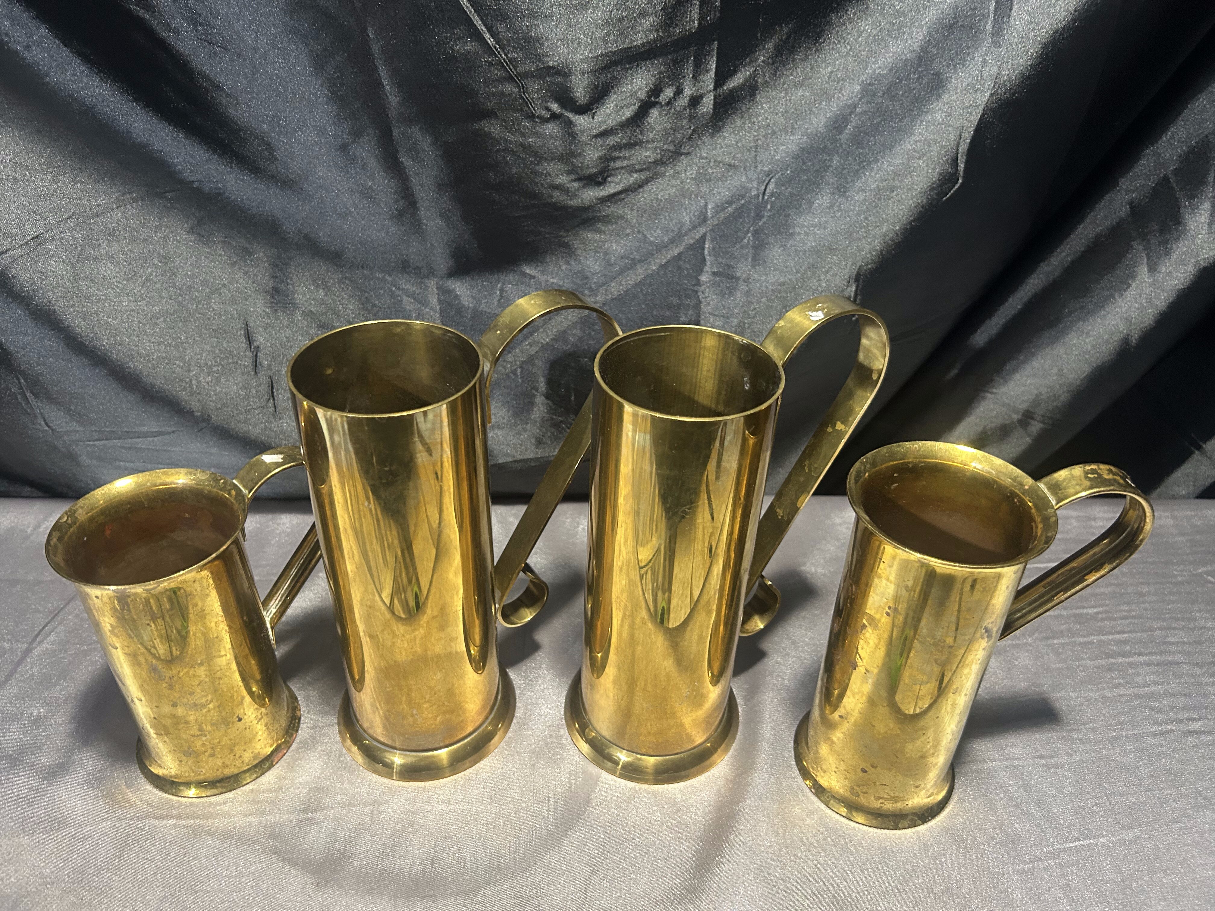 Zestaw 4 kufli z mosiądzu – różne wysokości – Styl vintage