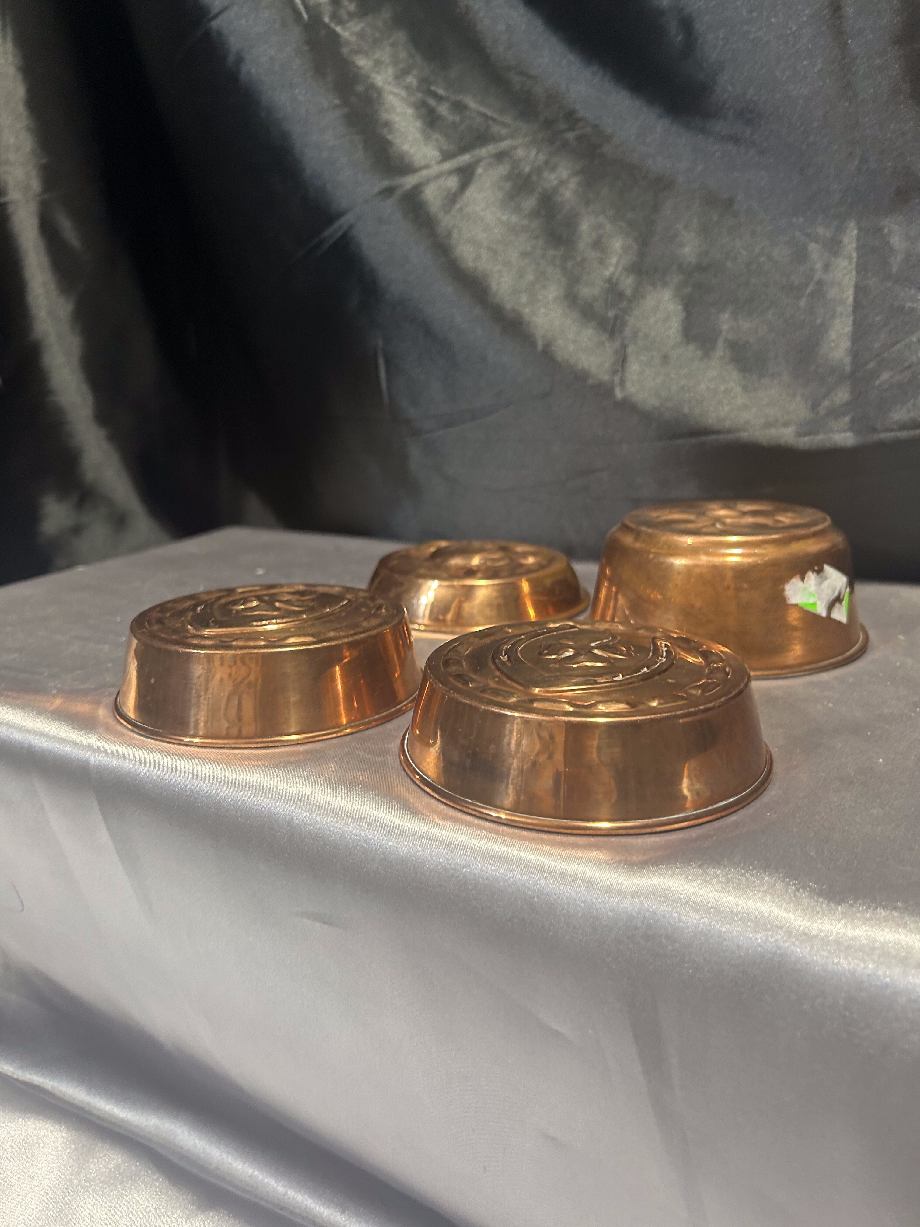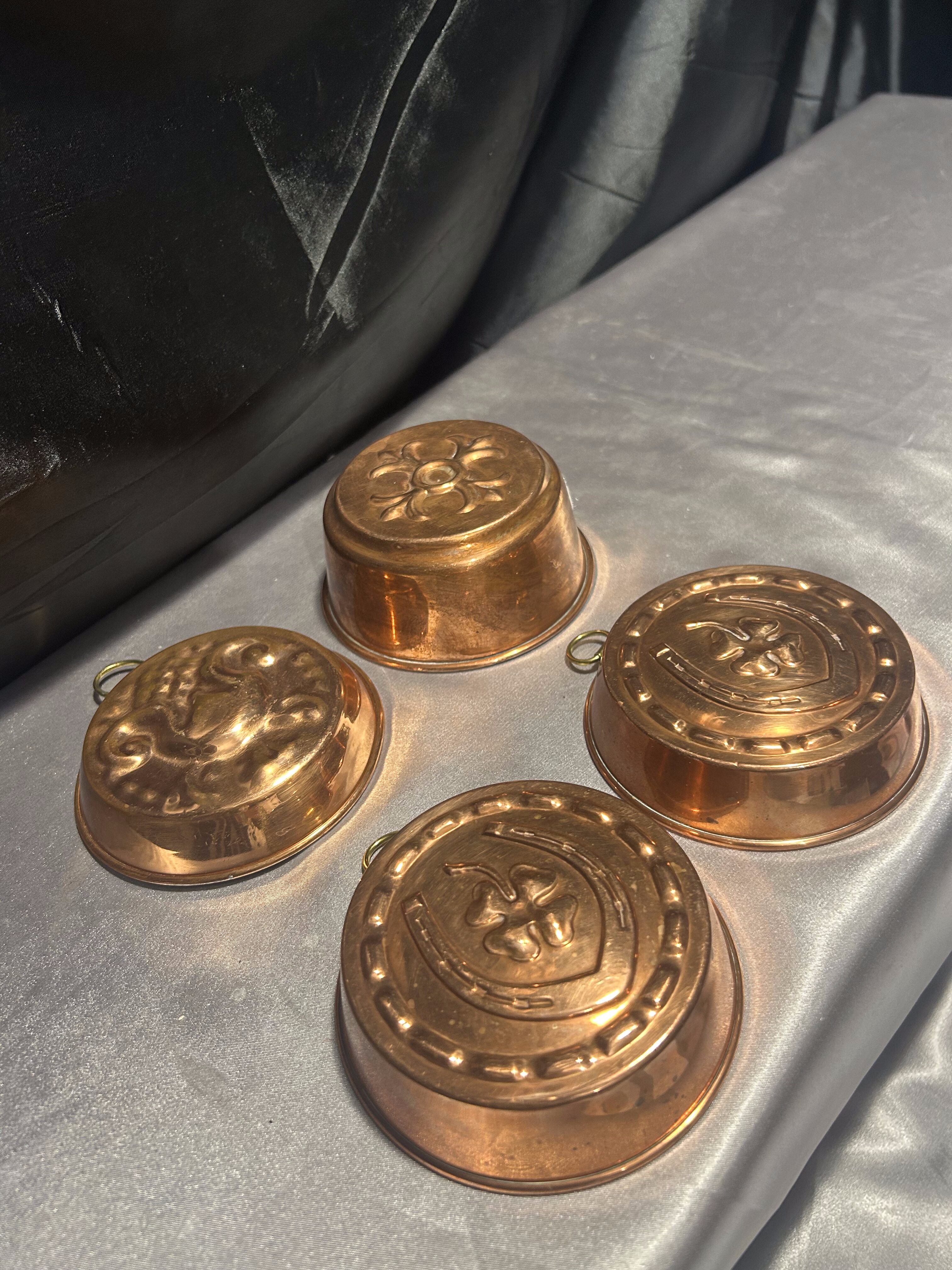 - Zestaw 4 Miedzianych Foremek na Babeczki – Zdobione, z Kółeczkami do Zawieszenia