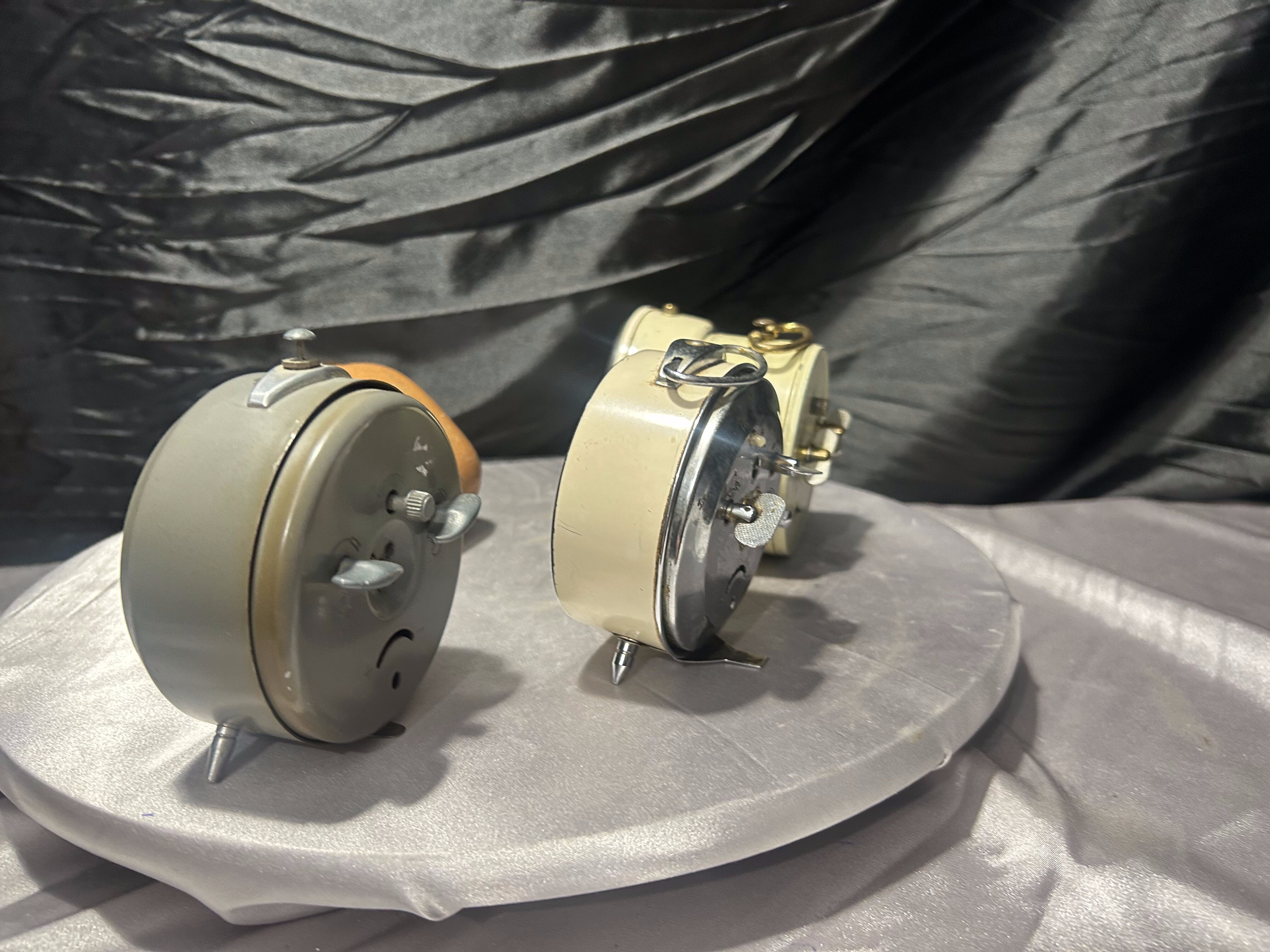 Zestaw budzików stanowi interesującą kolekcję przykładów dawnego wzornictwa użytkowego. To doskonała baza do renowacji lub stylowy element dekoracyjny dla miłośników industrialnych i vintage aranżacji.