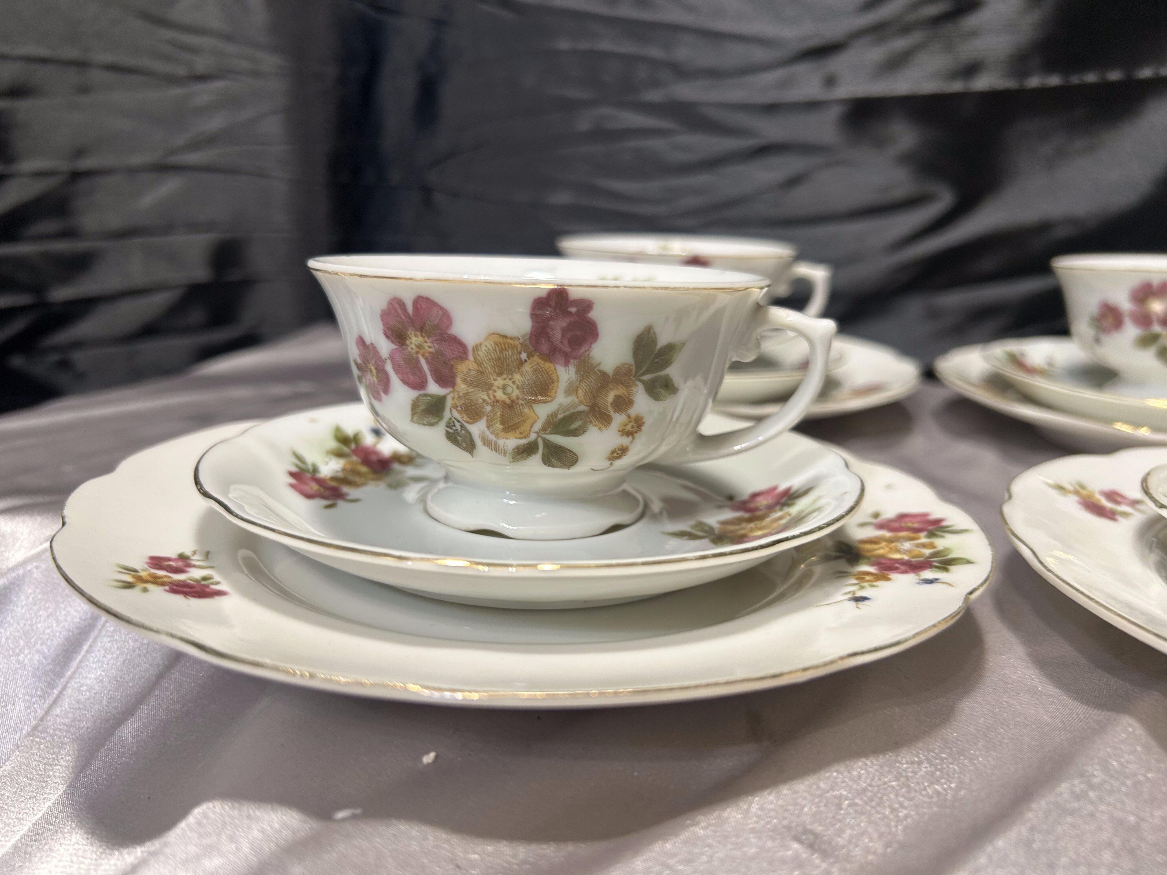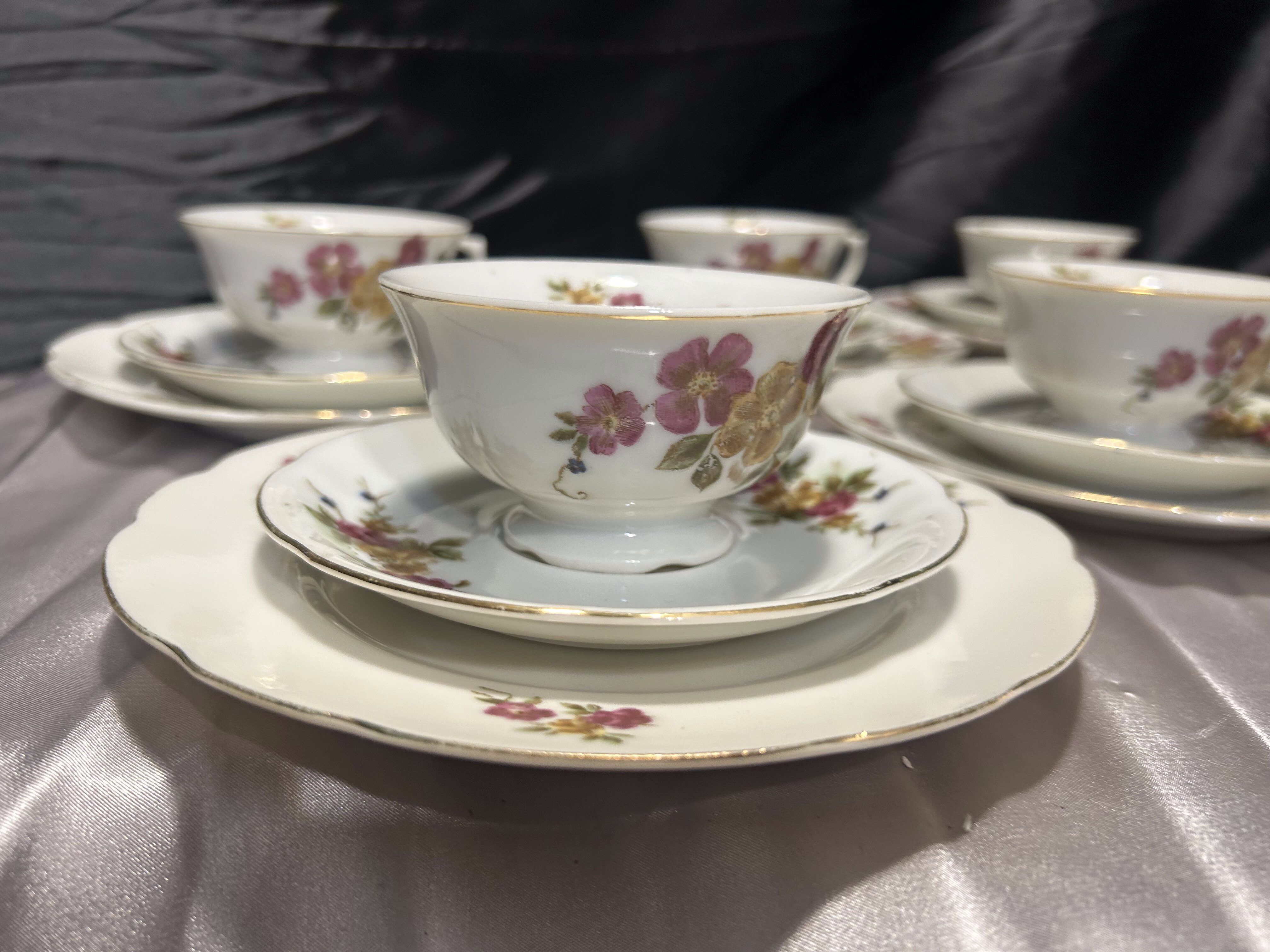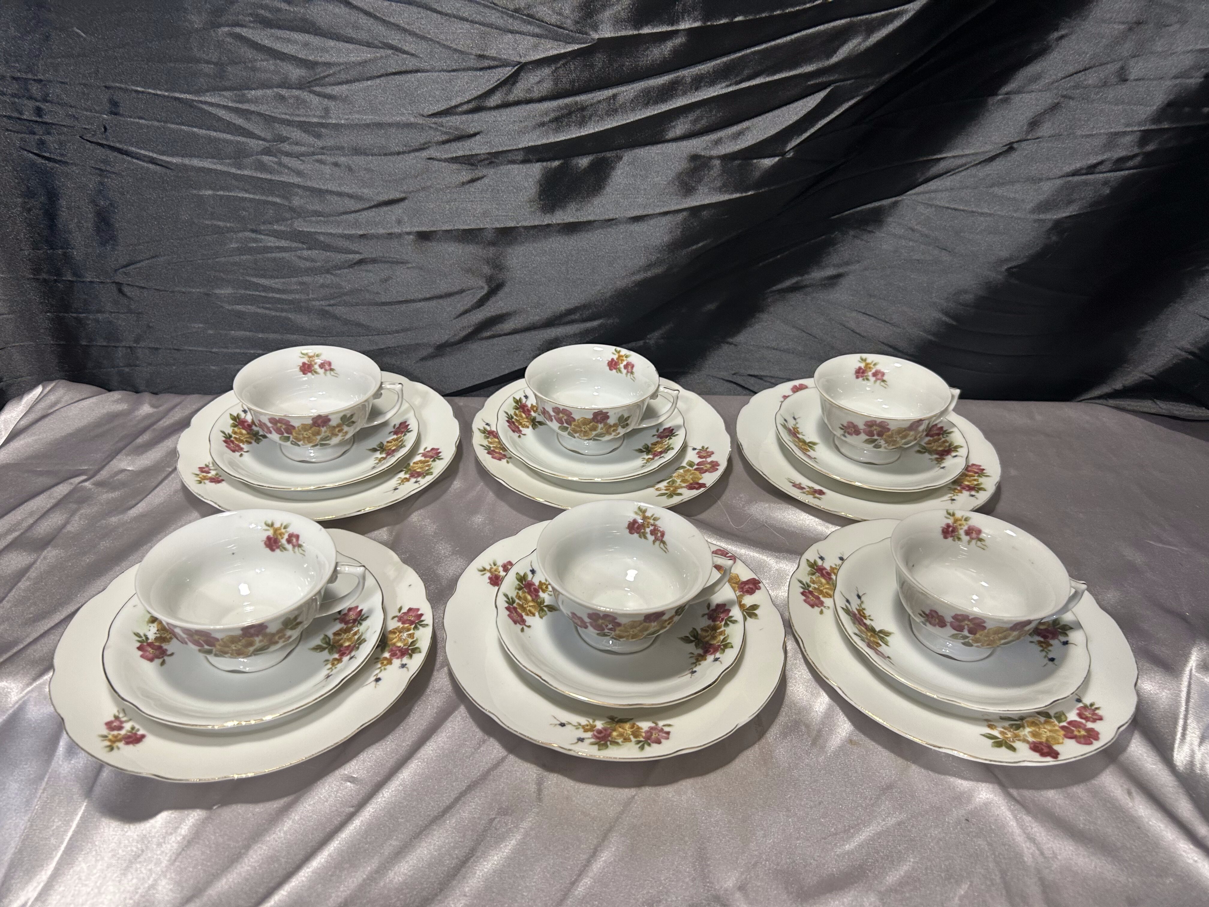 - Zestaw 6 filiżanek Trio KETO – porcelana sygnowana – klasyczny wzór kwiatowy