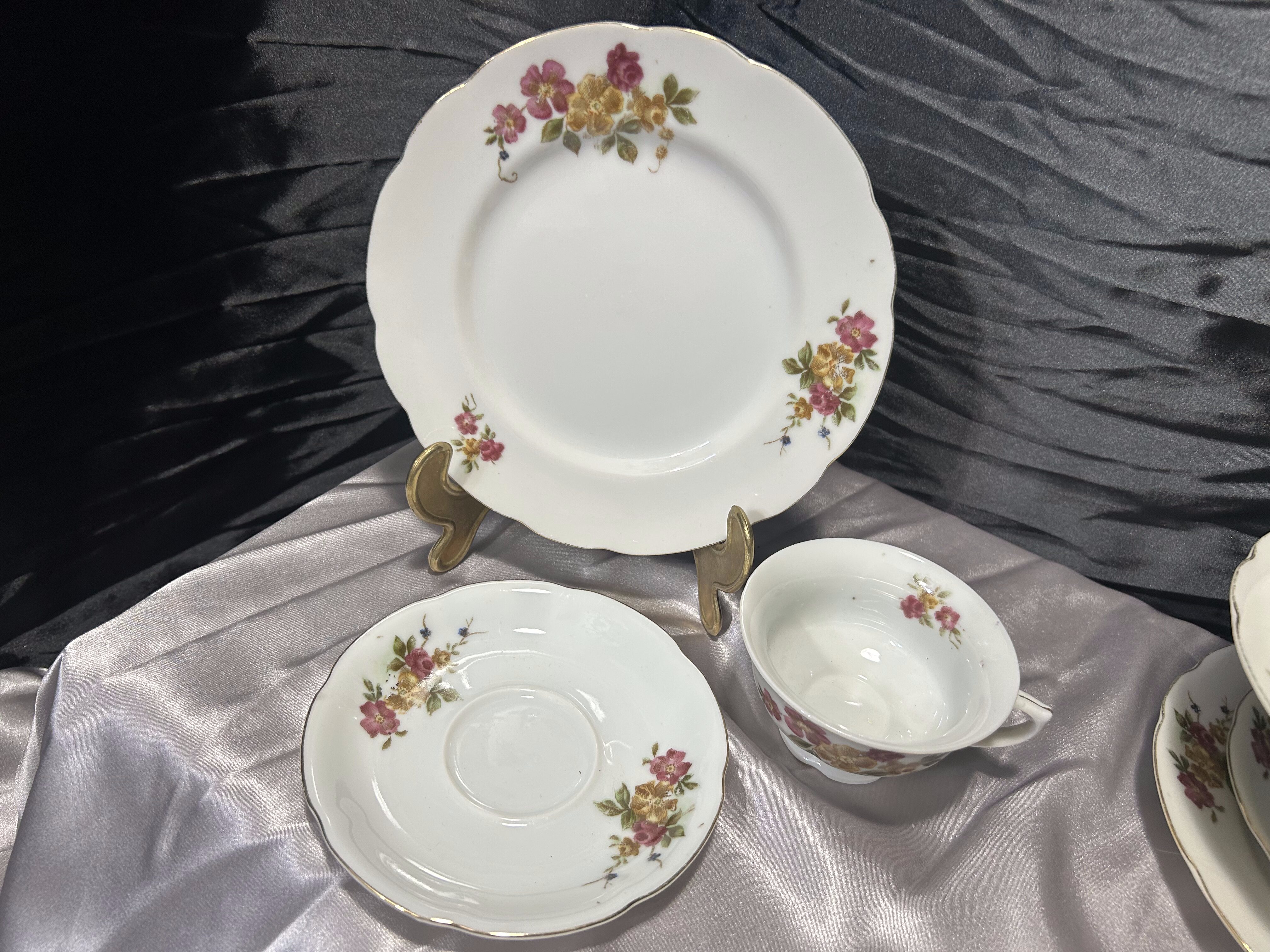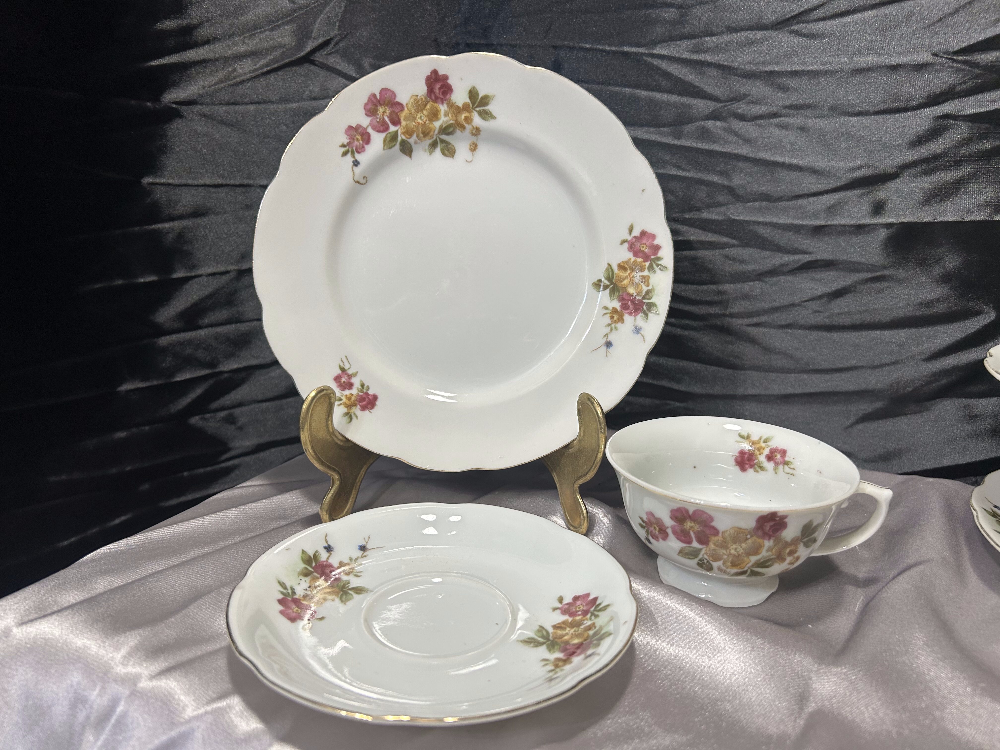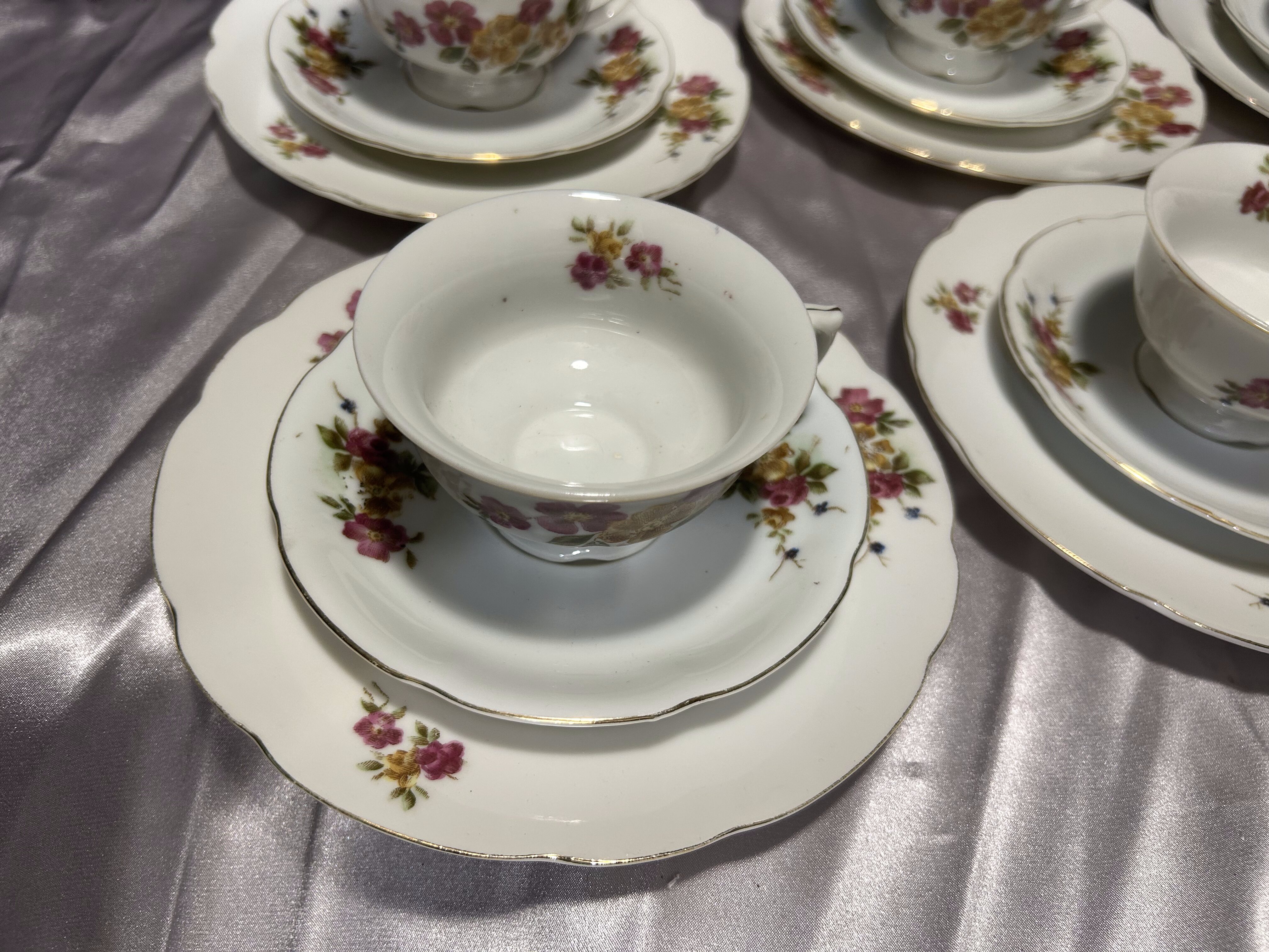 - Zestaw 6 filiżanek Trio KETO – porcelana sygnowana – klasyczny wzór kwiatowy