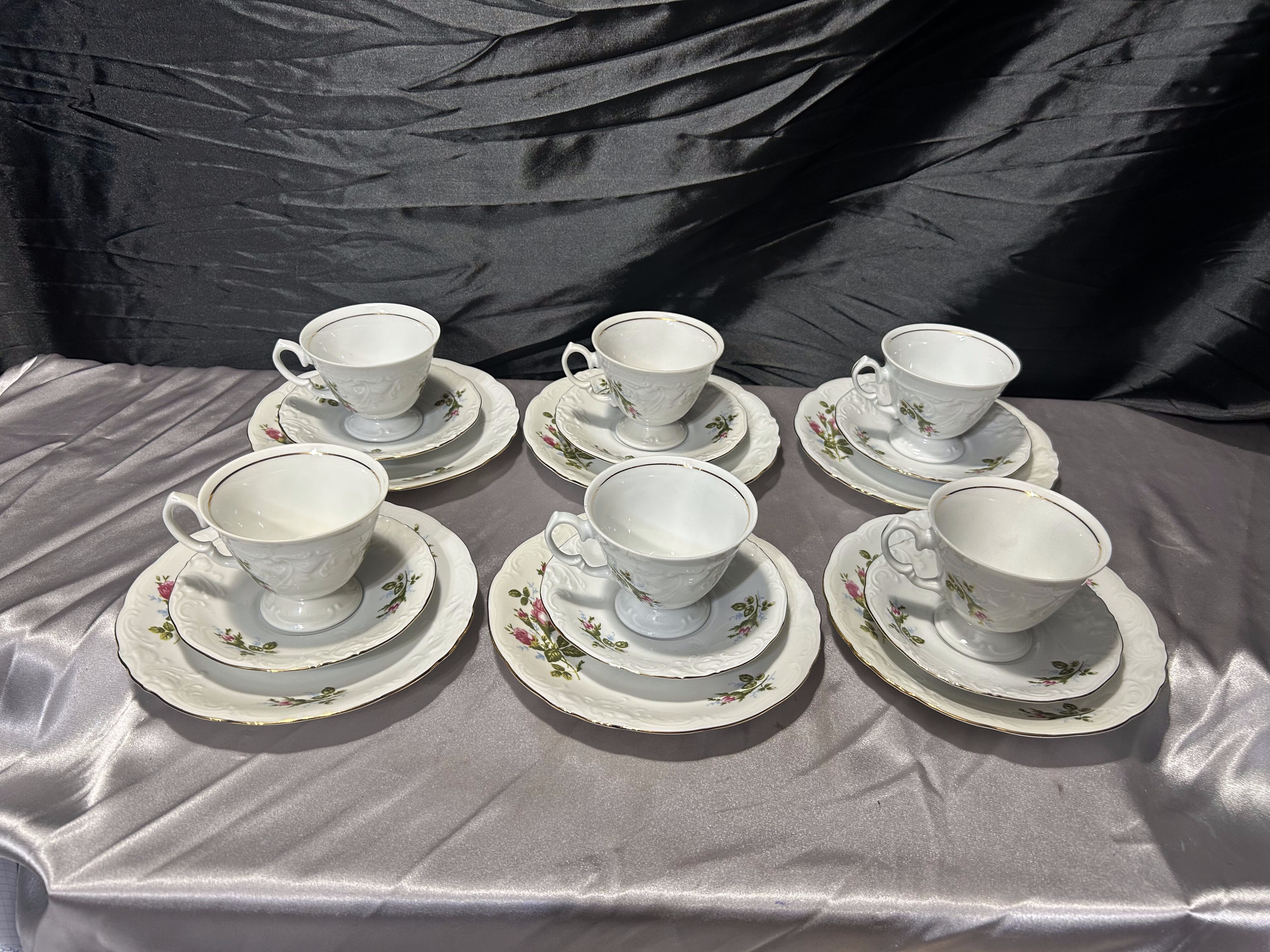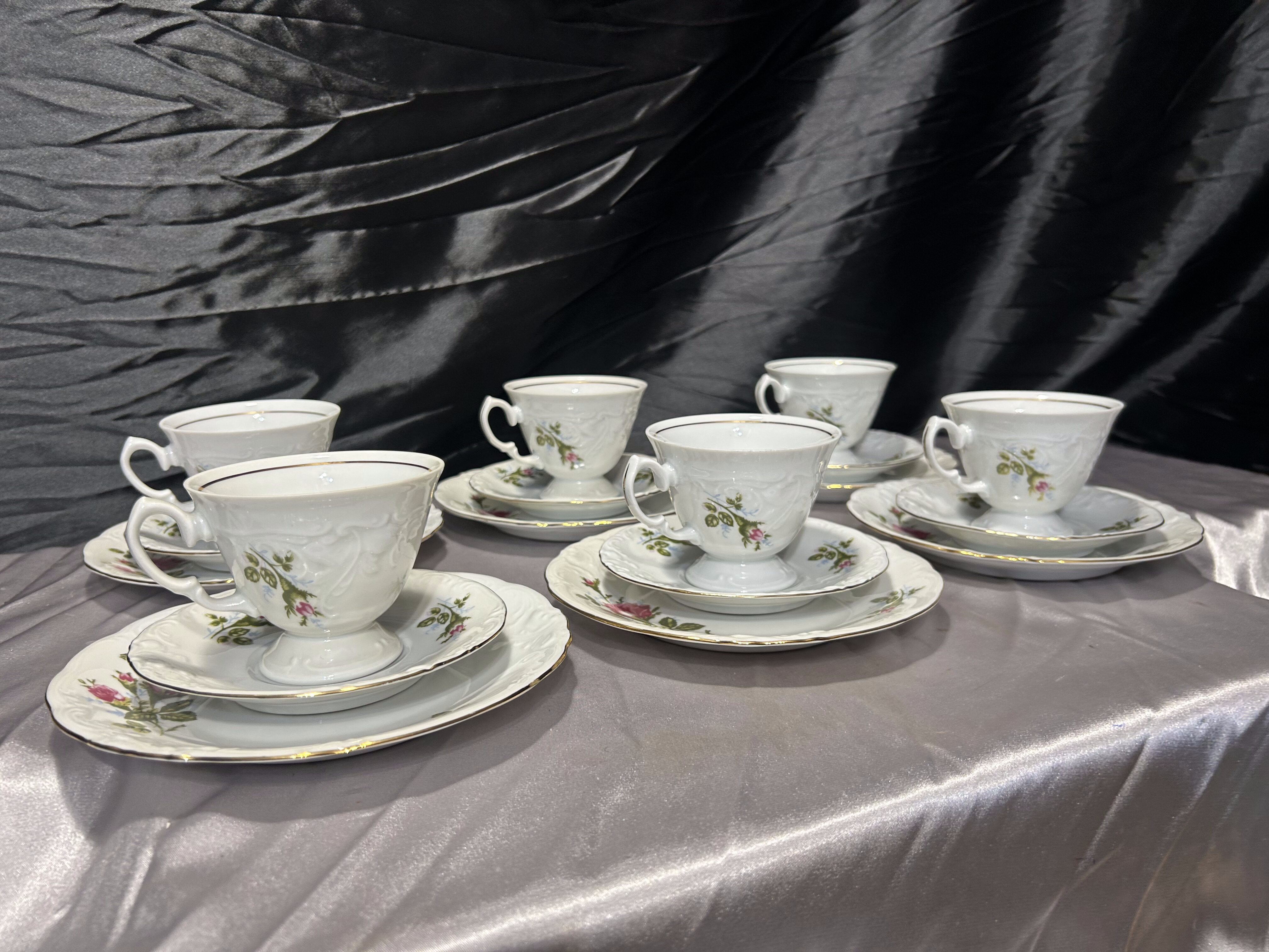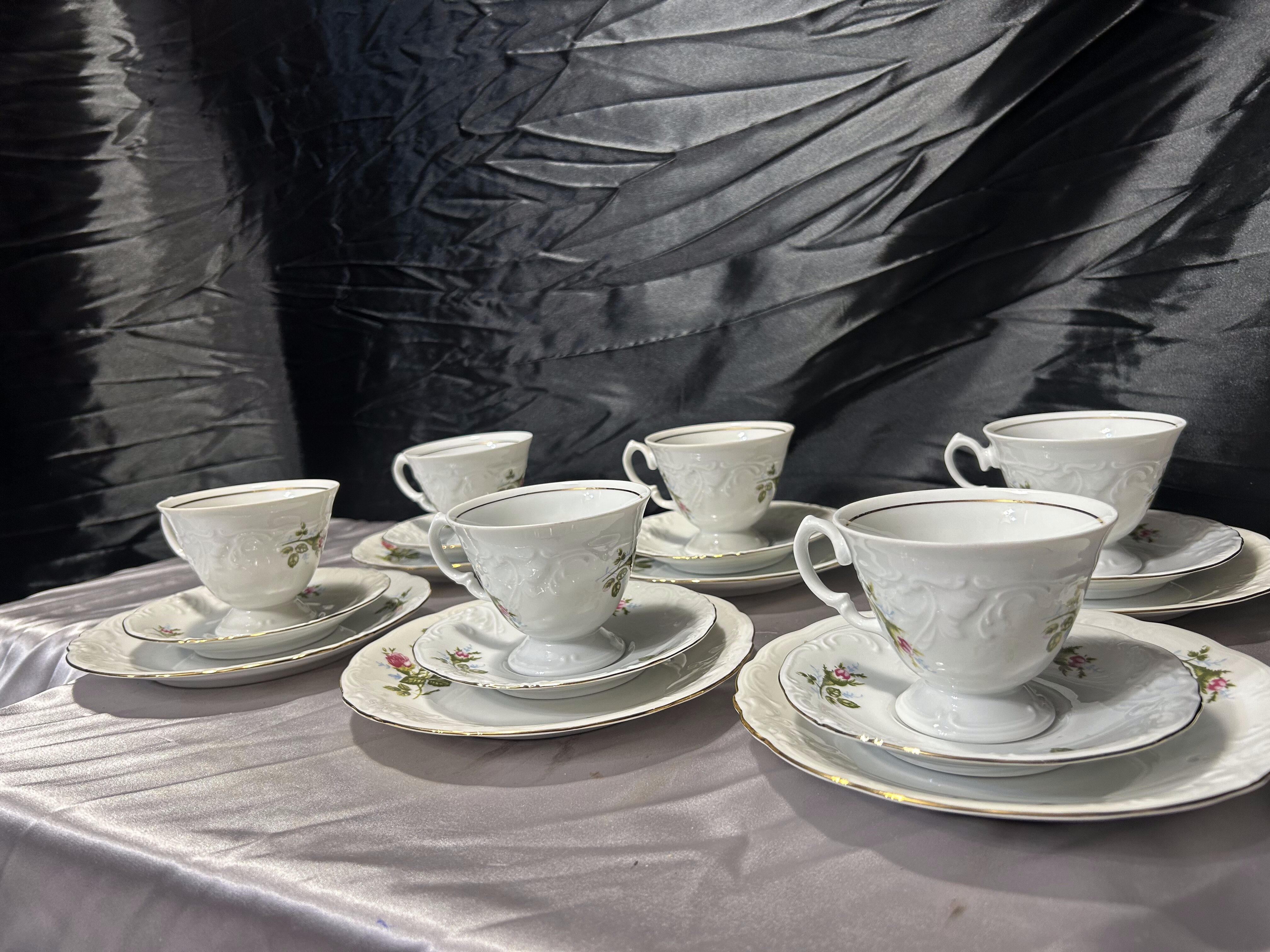 Zestaw 6 filiżanek TRIO Wawel – porcelana polska – dekoracja kwiatowa – klasyczna elegancja