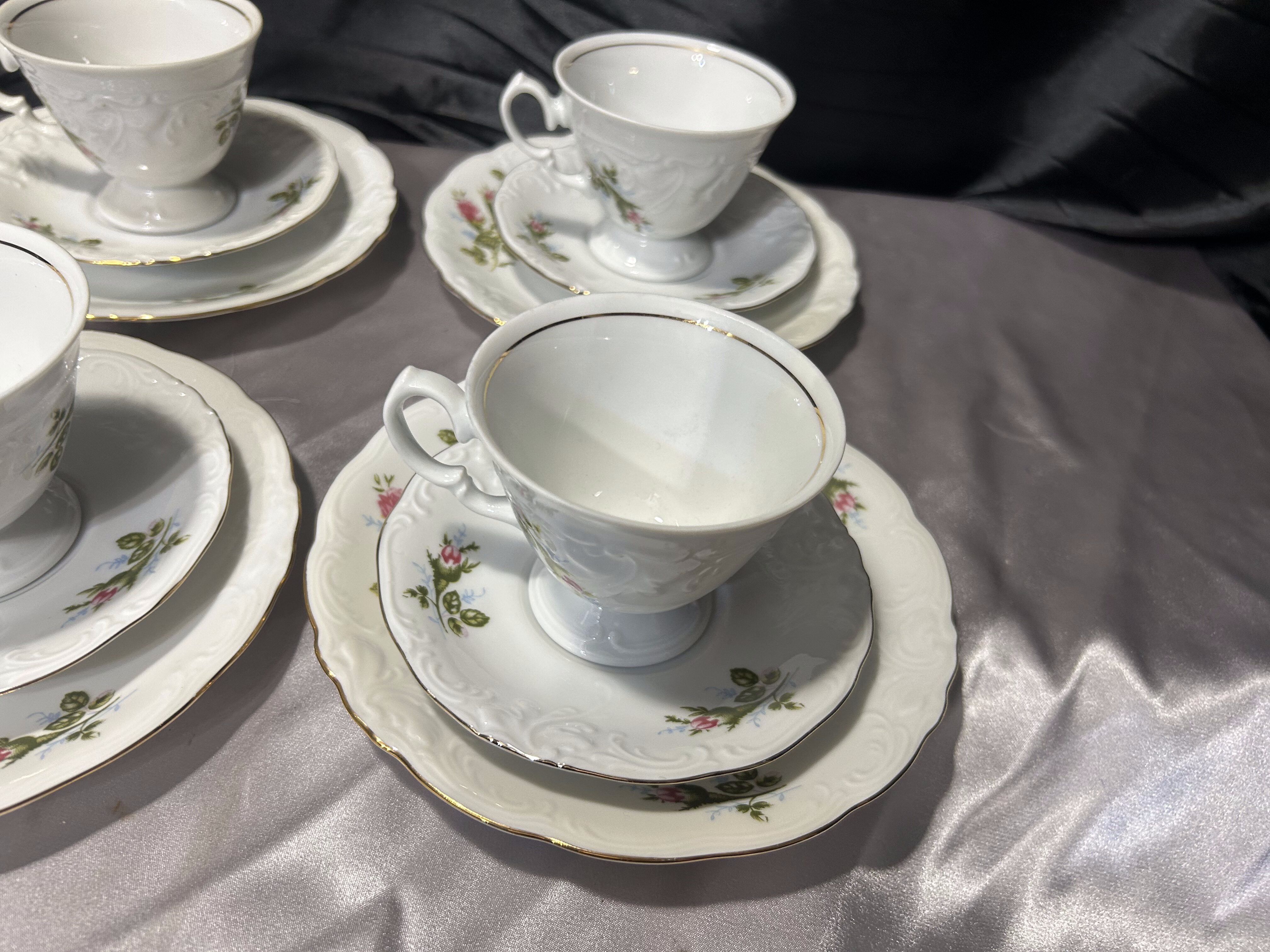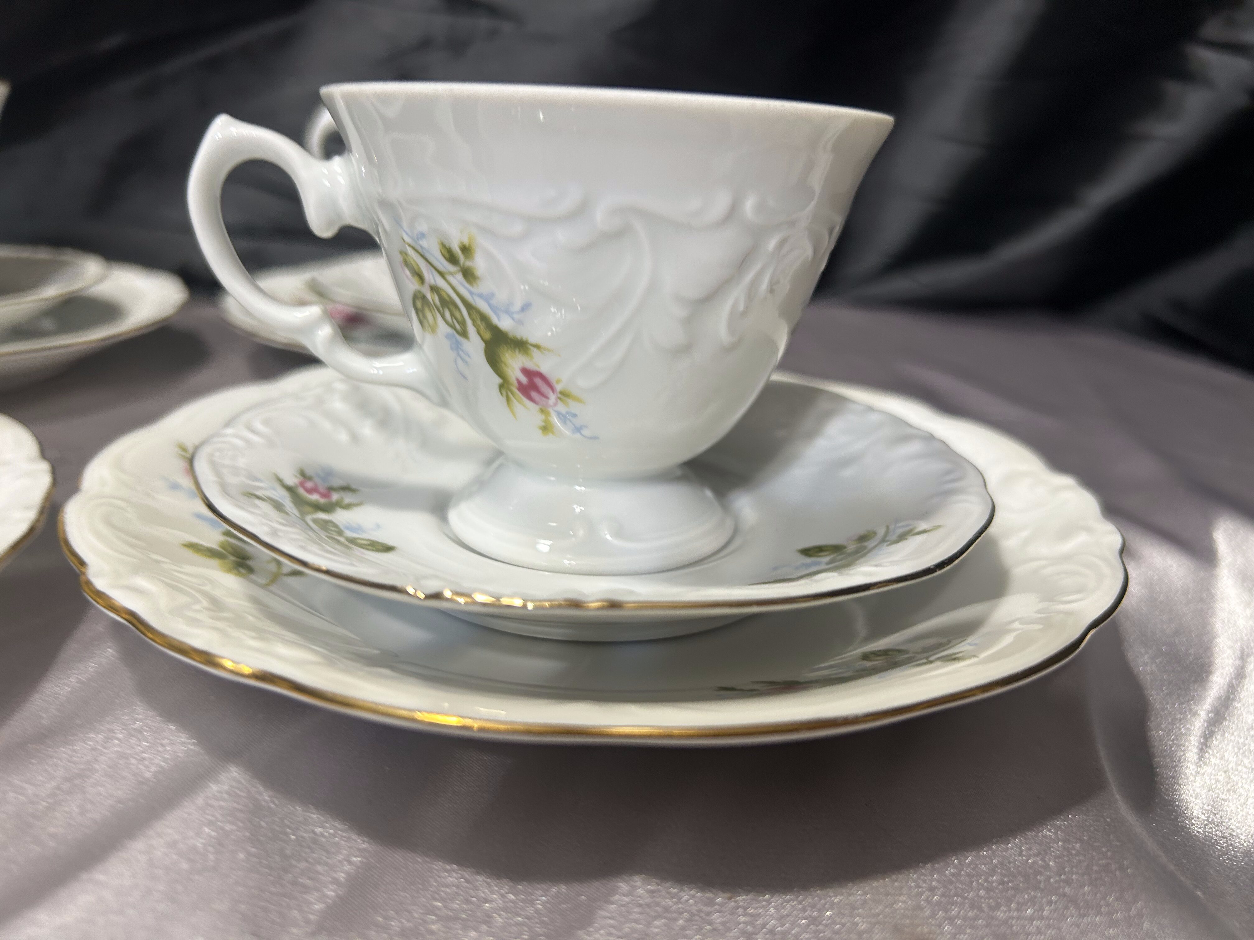 - Zestaw 6 filiżanek TRIO Wawel – porcelana polska – dekoracja kwiatowa – klasyczna elegancja