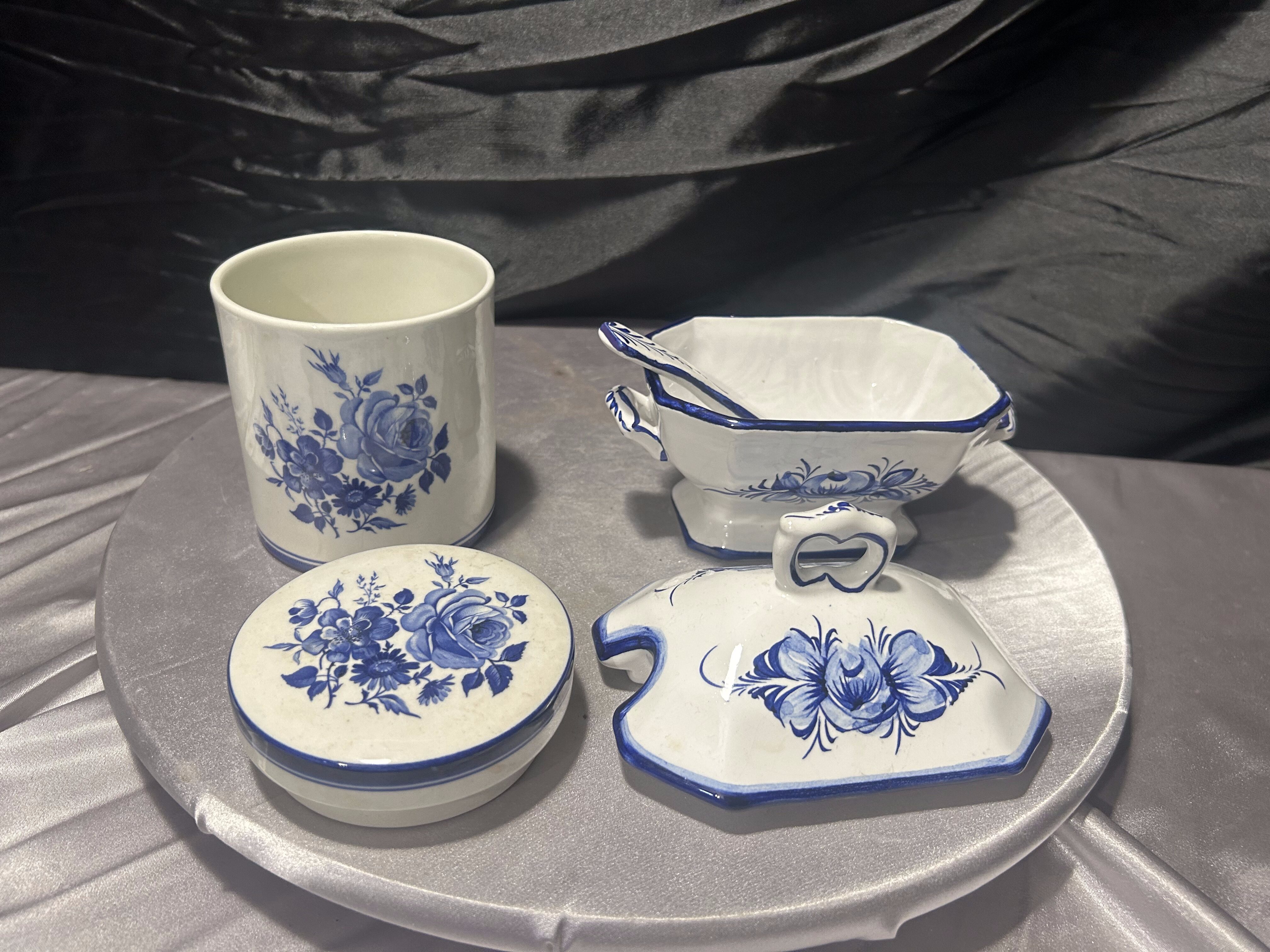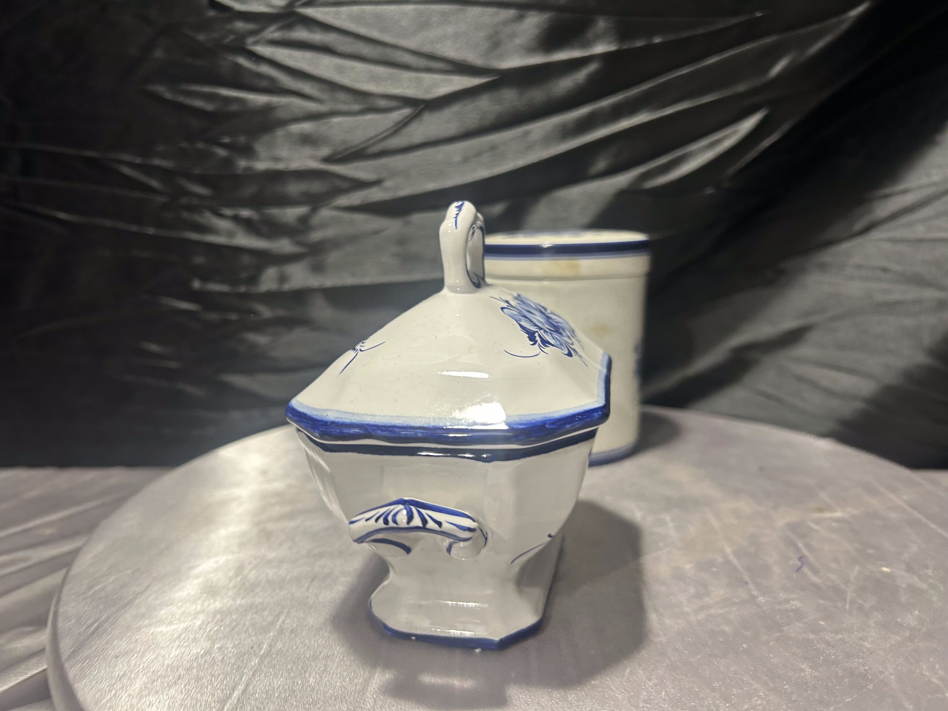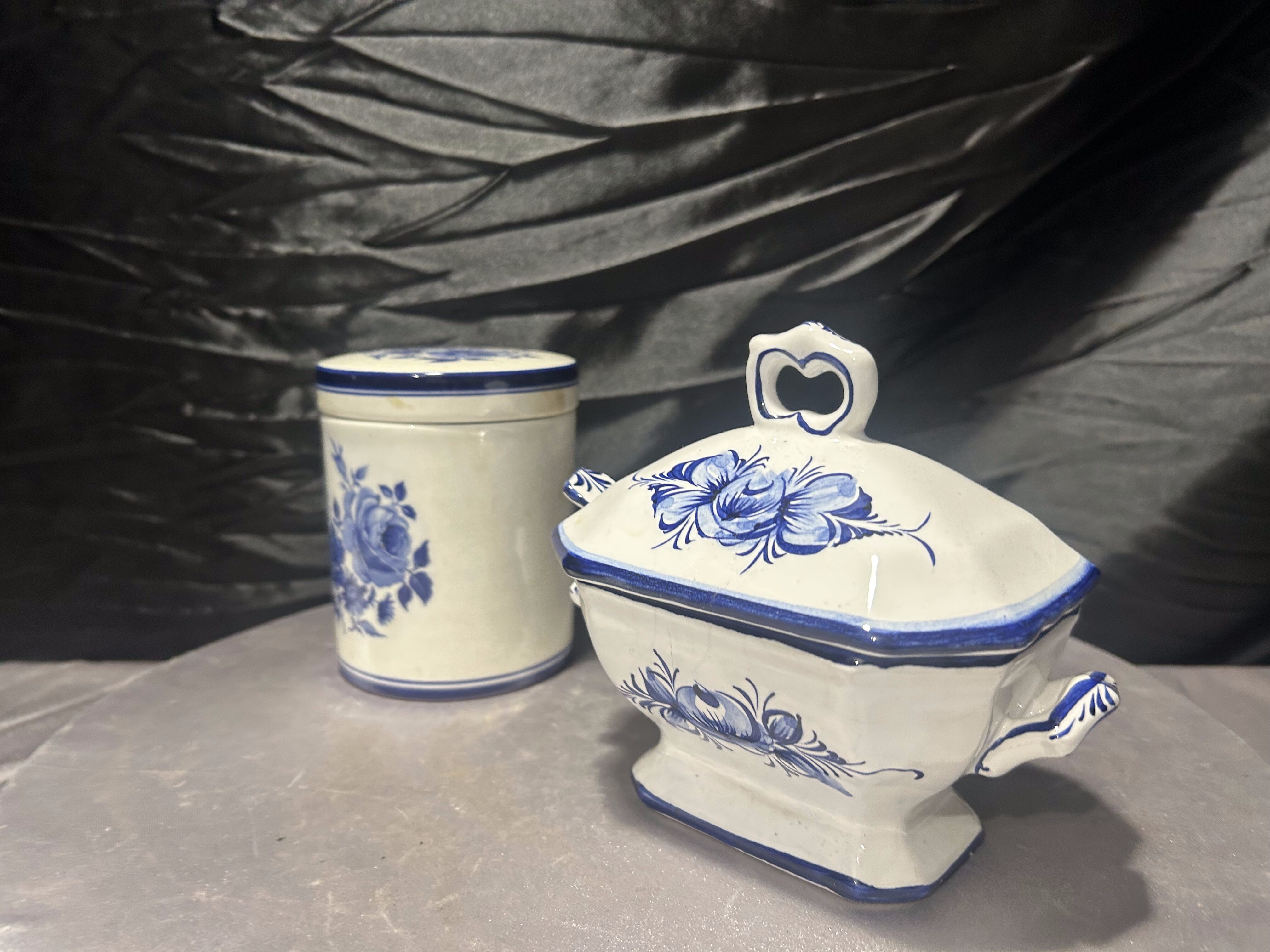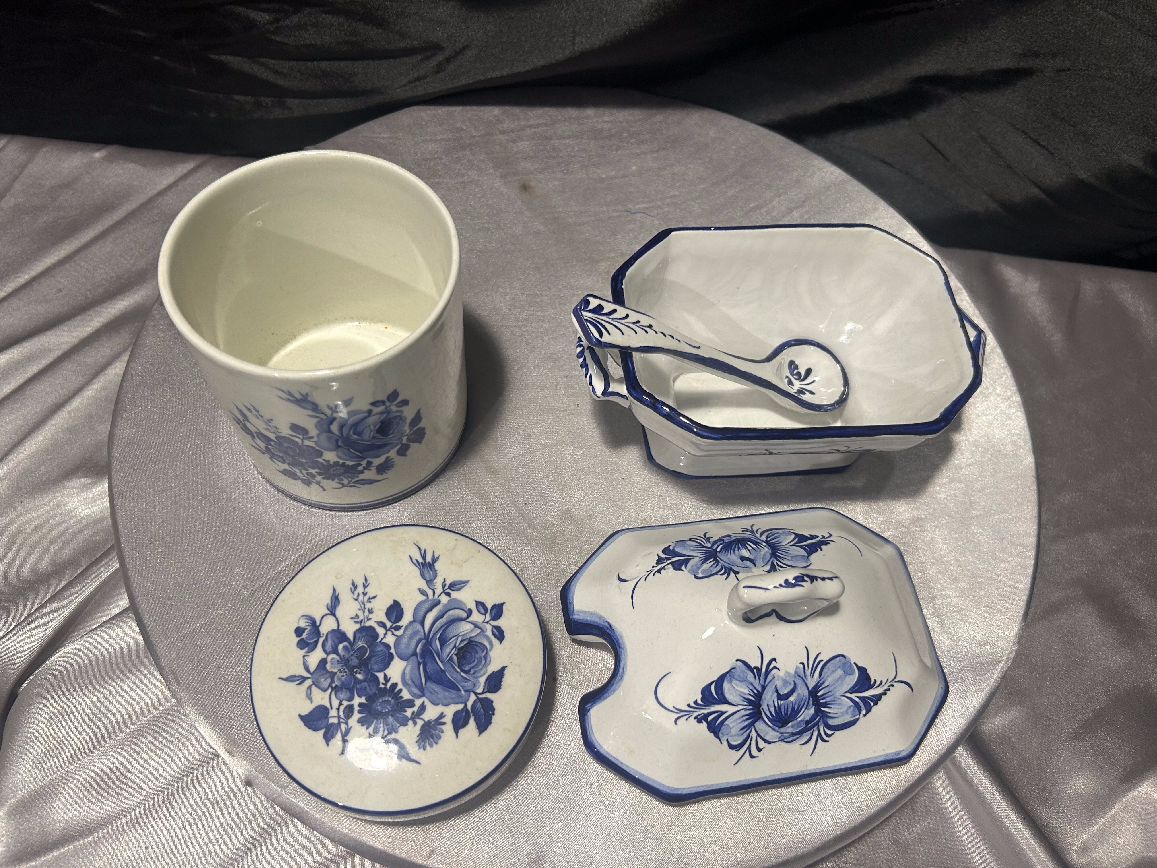 Zestaw ceramiczny cukiernica + pojemnik – dekor kobaltowy – ceramika sygnowana – styl klasyczny