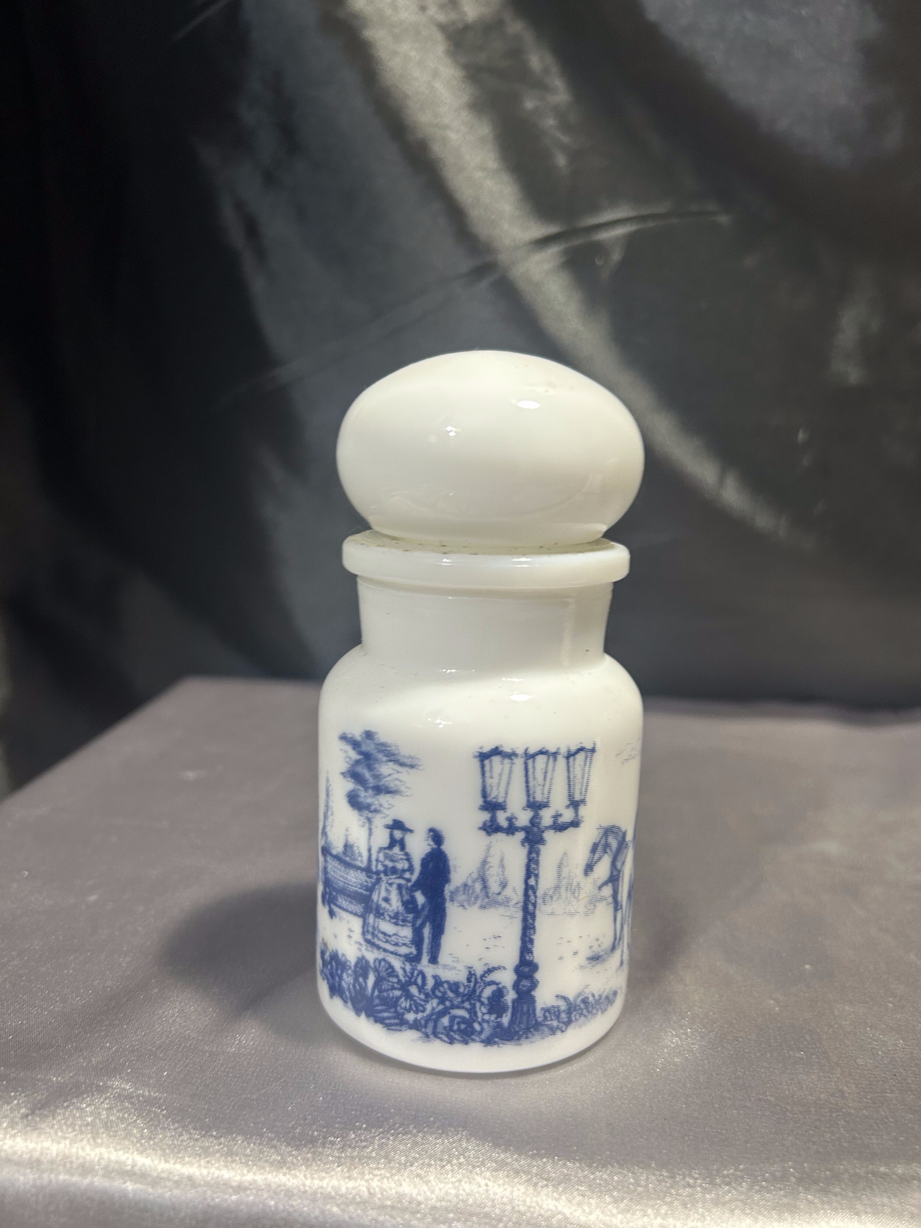 – Kolorystyka: biała ceramika z niebieskim wzorem