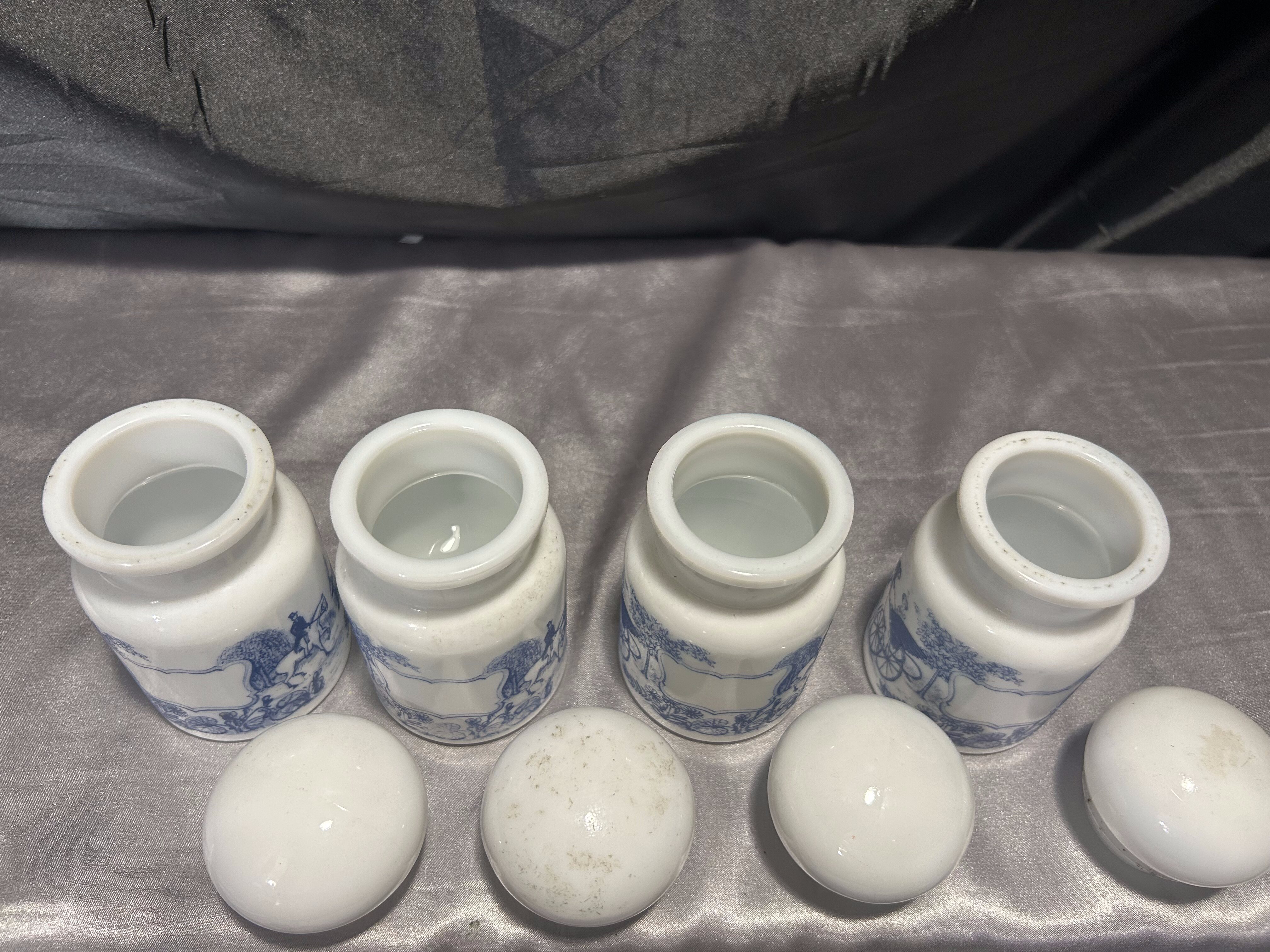 Zestaw czterech ceramicznych pojemników – klasyczny wzór – sygnowane Made in Belgium