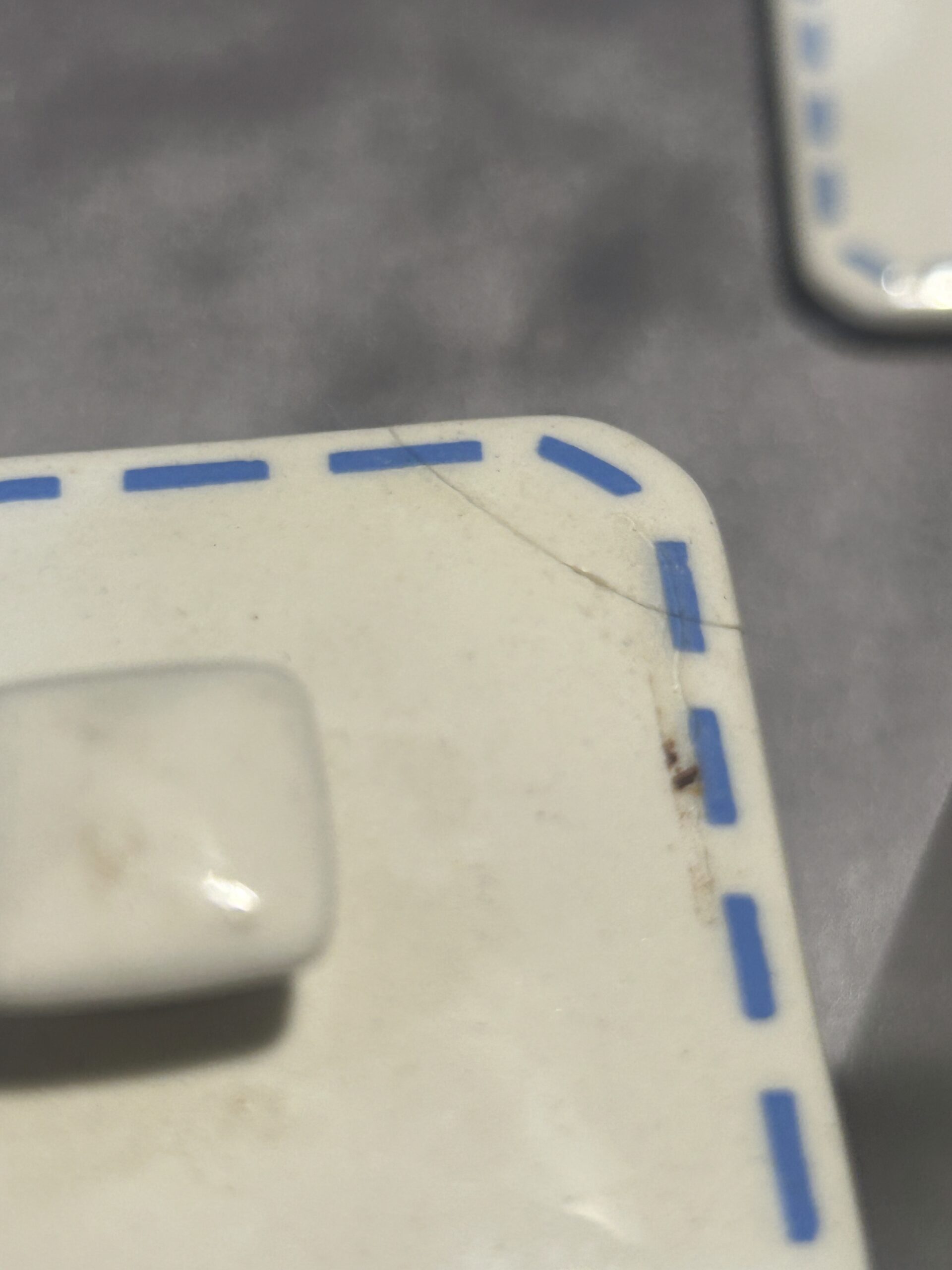 - Jeden z pojemników posiada lekko uszczerbioną pokrywkę – uszkodzenie jest niewielkie i nie wpływa na funkcjonalność zestawu