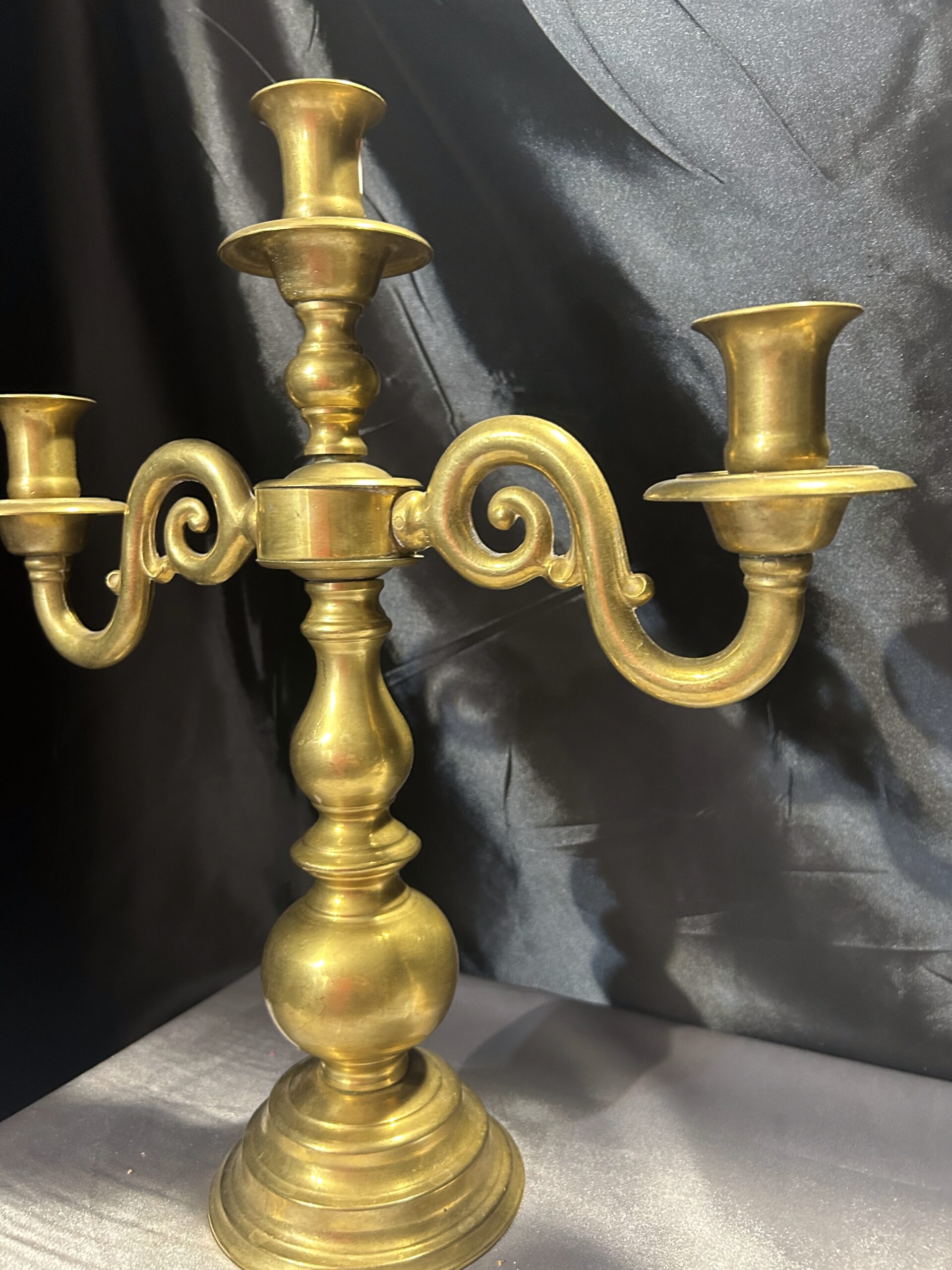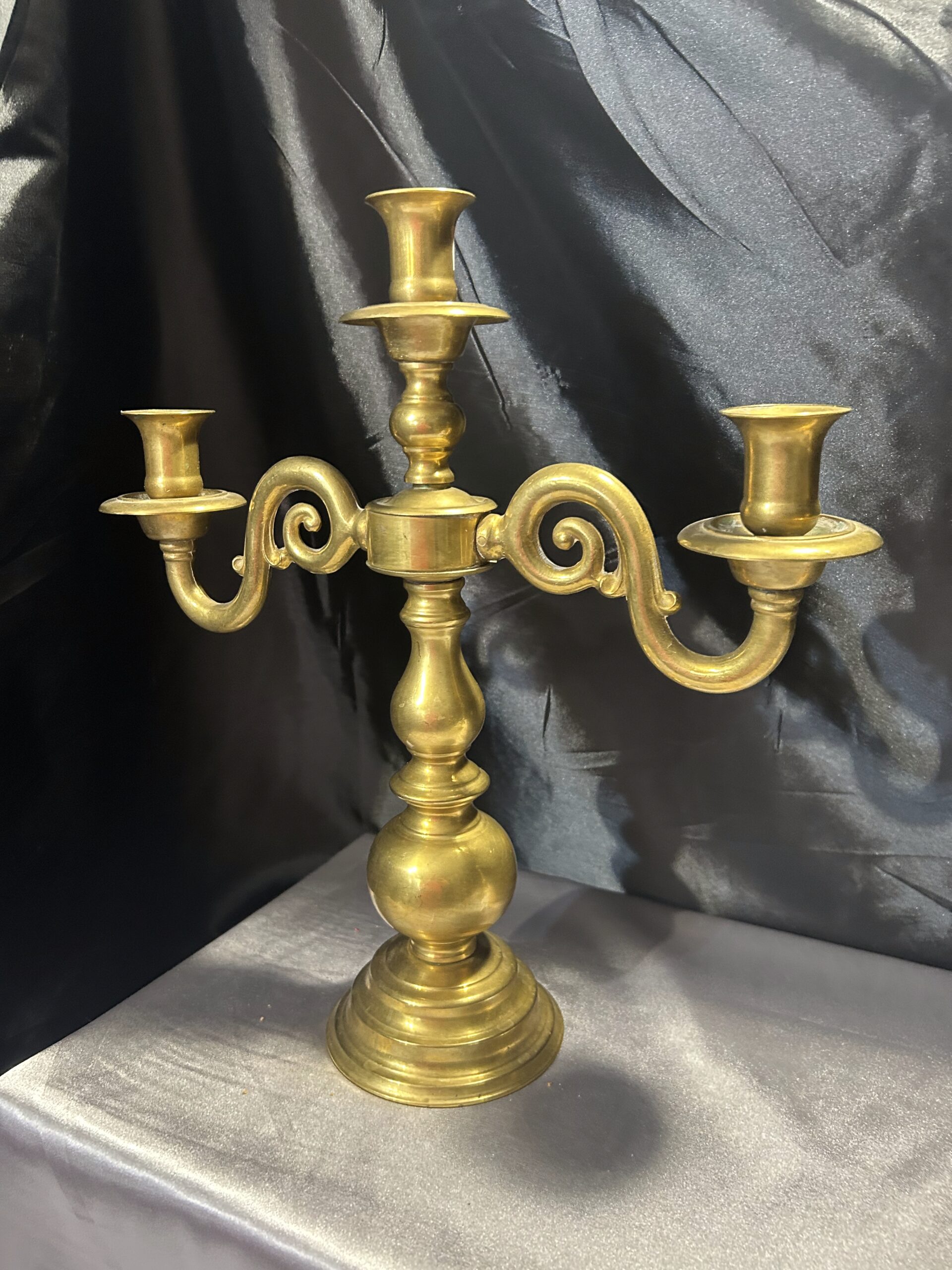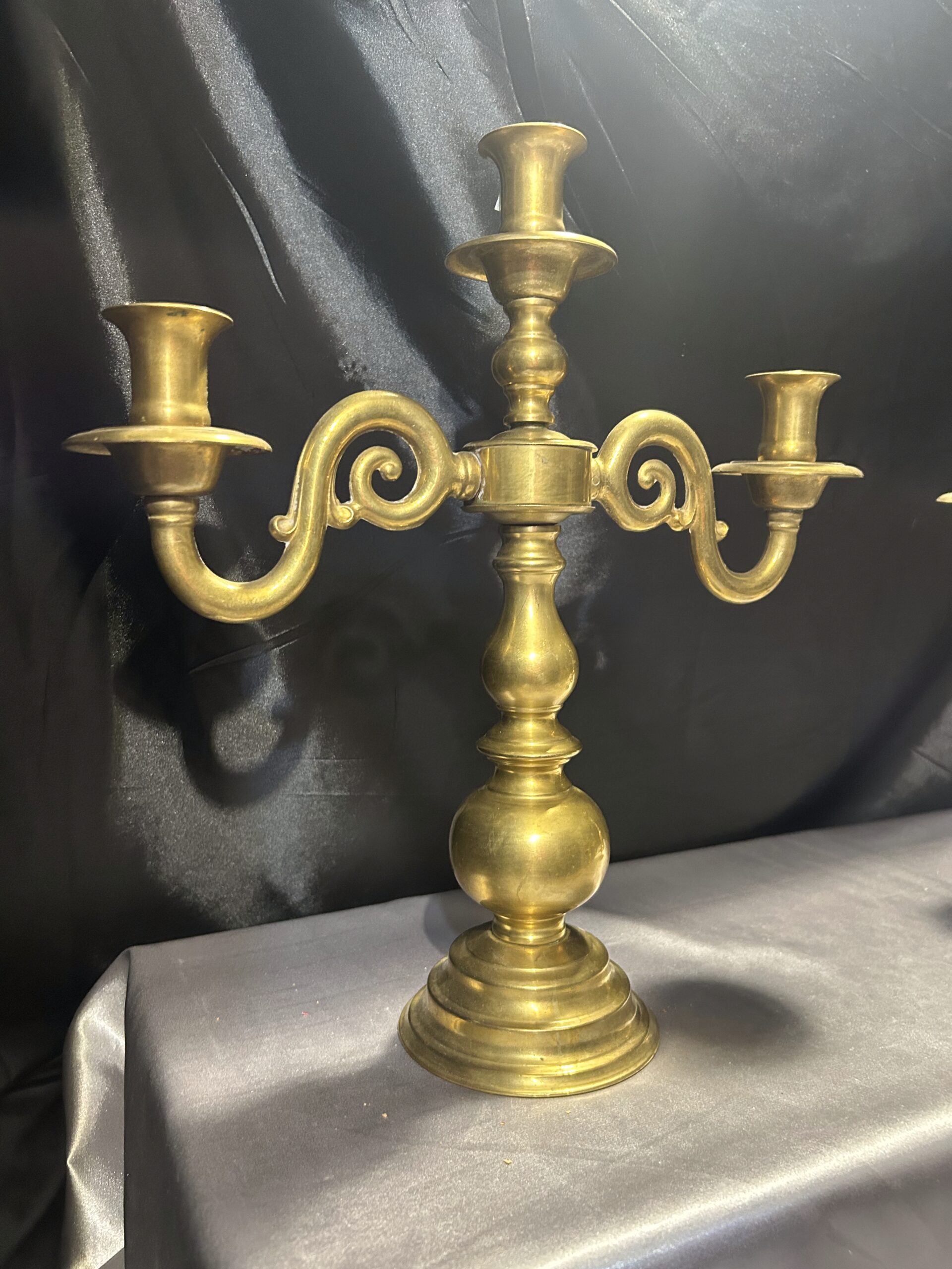 Oferujemy wyjątkowy zestaw czterech zdobionych świeczników trzyramiennych wykonanych z mosiądzu. Solidna konstrukcja i klasyczne detale nadają im eleganckiego charakteru, czyniąc je doskonałą ozdobą stylowych wnętrz. To idealna propozycja dla miłośników klasycznych dekoracji i kolekcjonerów.