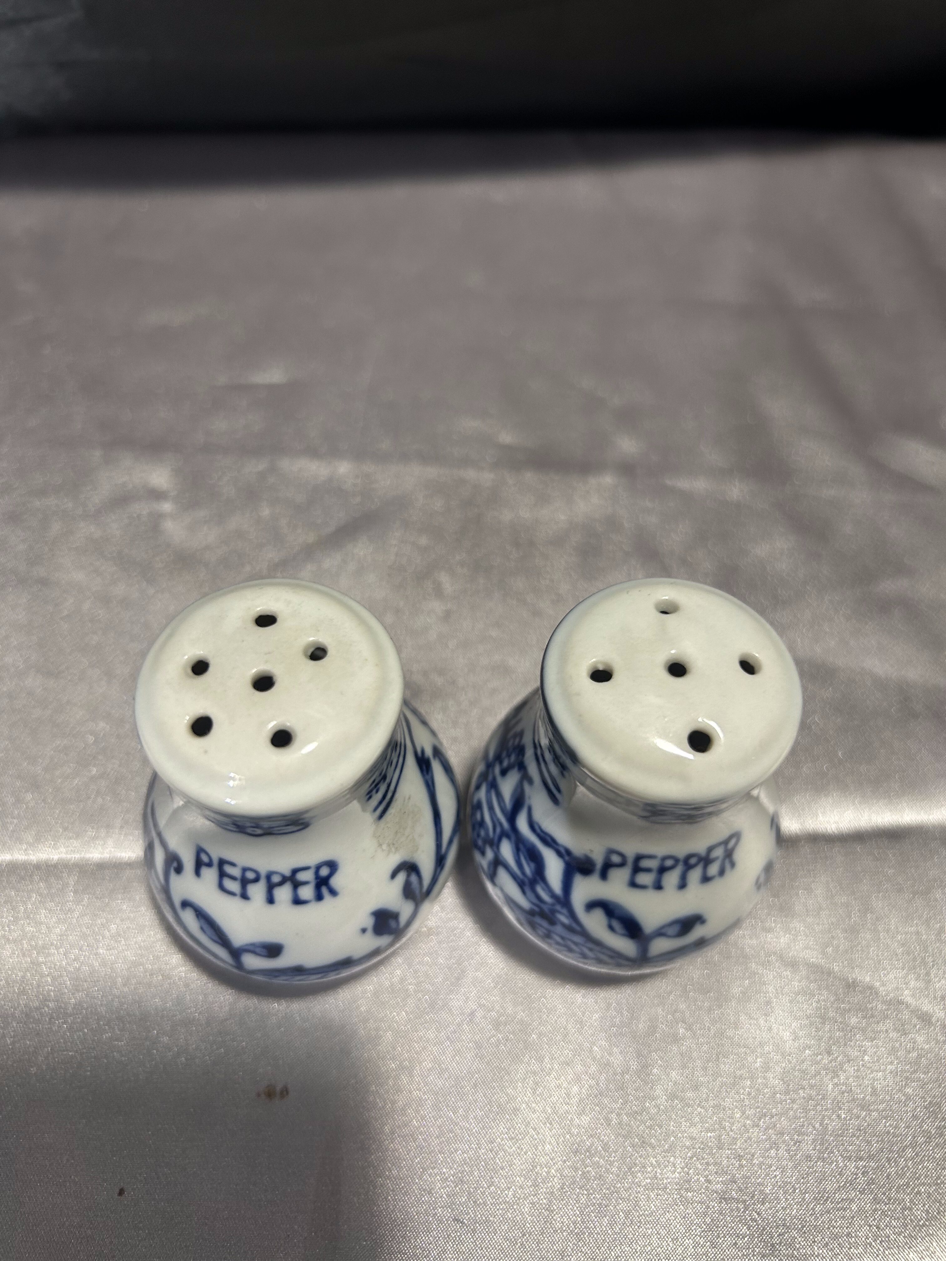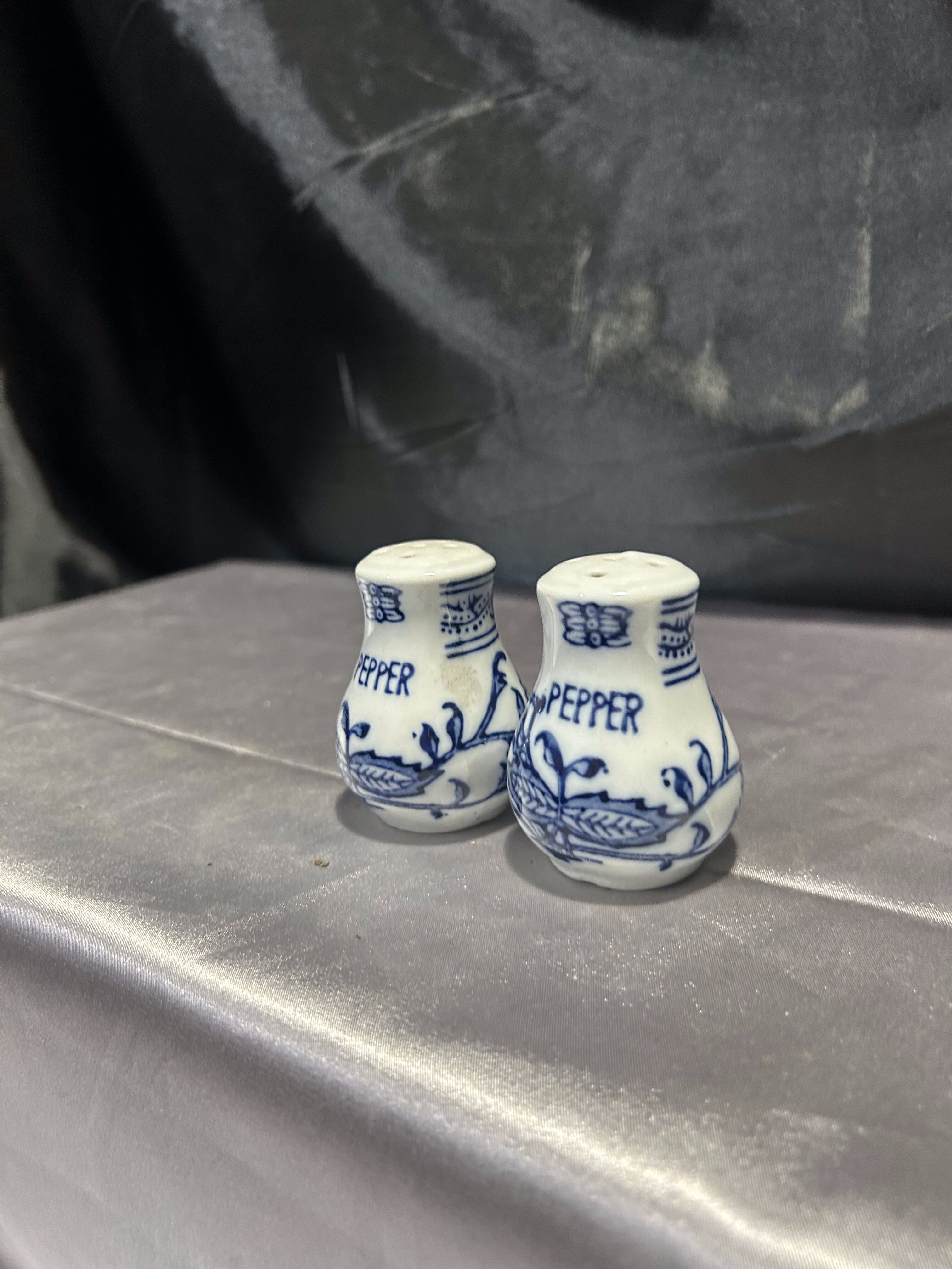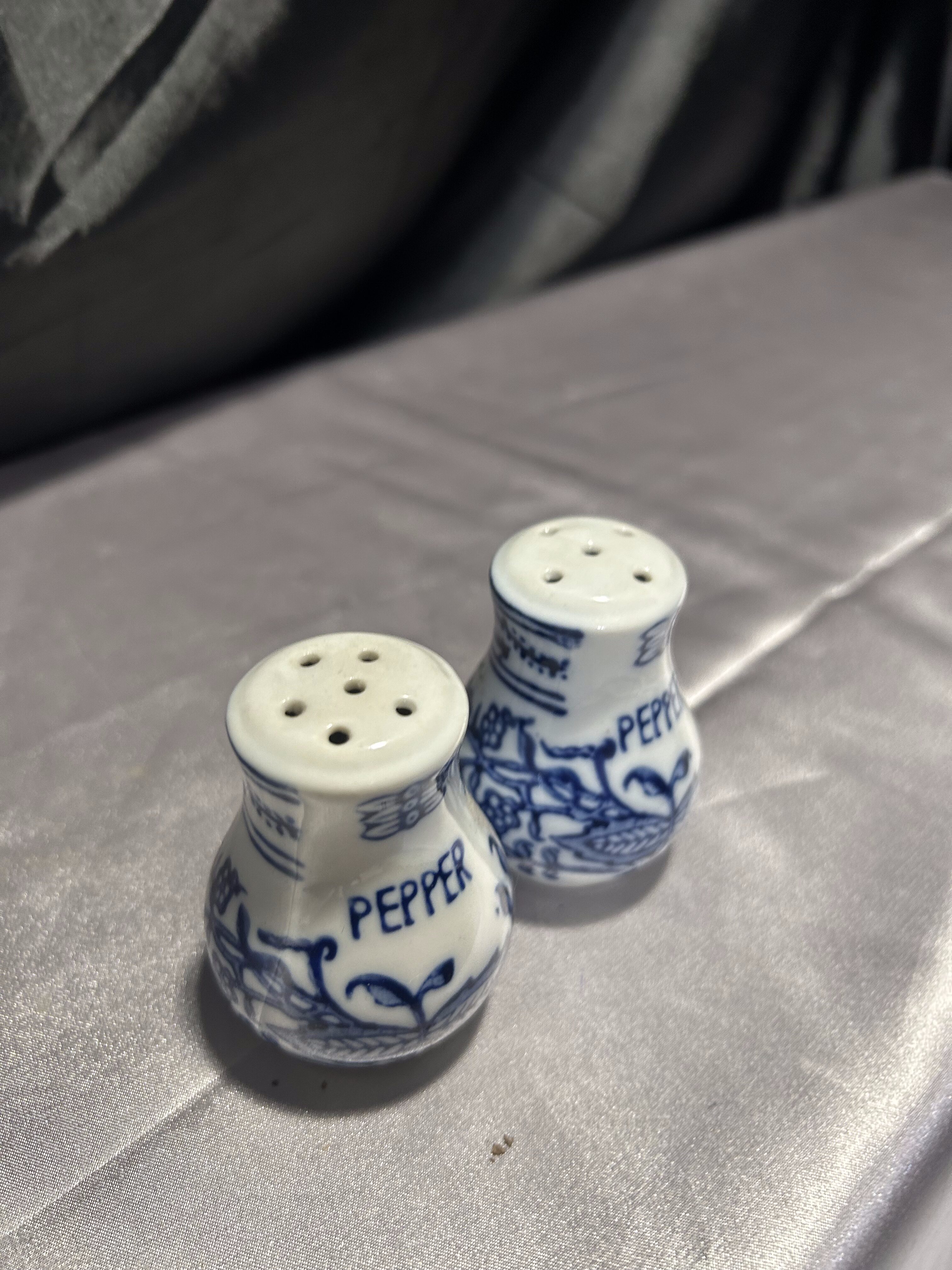 Zestaw dwóch ceramicznych przyprawników zdobionych subtelnym niebieskim wzorem, które choć formalnie to pieprzniczki, mogą pełnić funkcję zarówno solniczki, jak i pieprzniczki. Klasyczna forma i delikatne zdobienia sprawiają, że doskonale wpisują się w estetykę kuchni vintage, prowansalskiej lub rustykalnej.