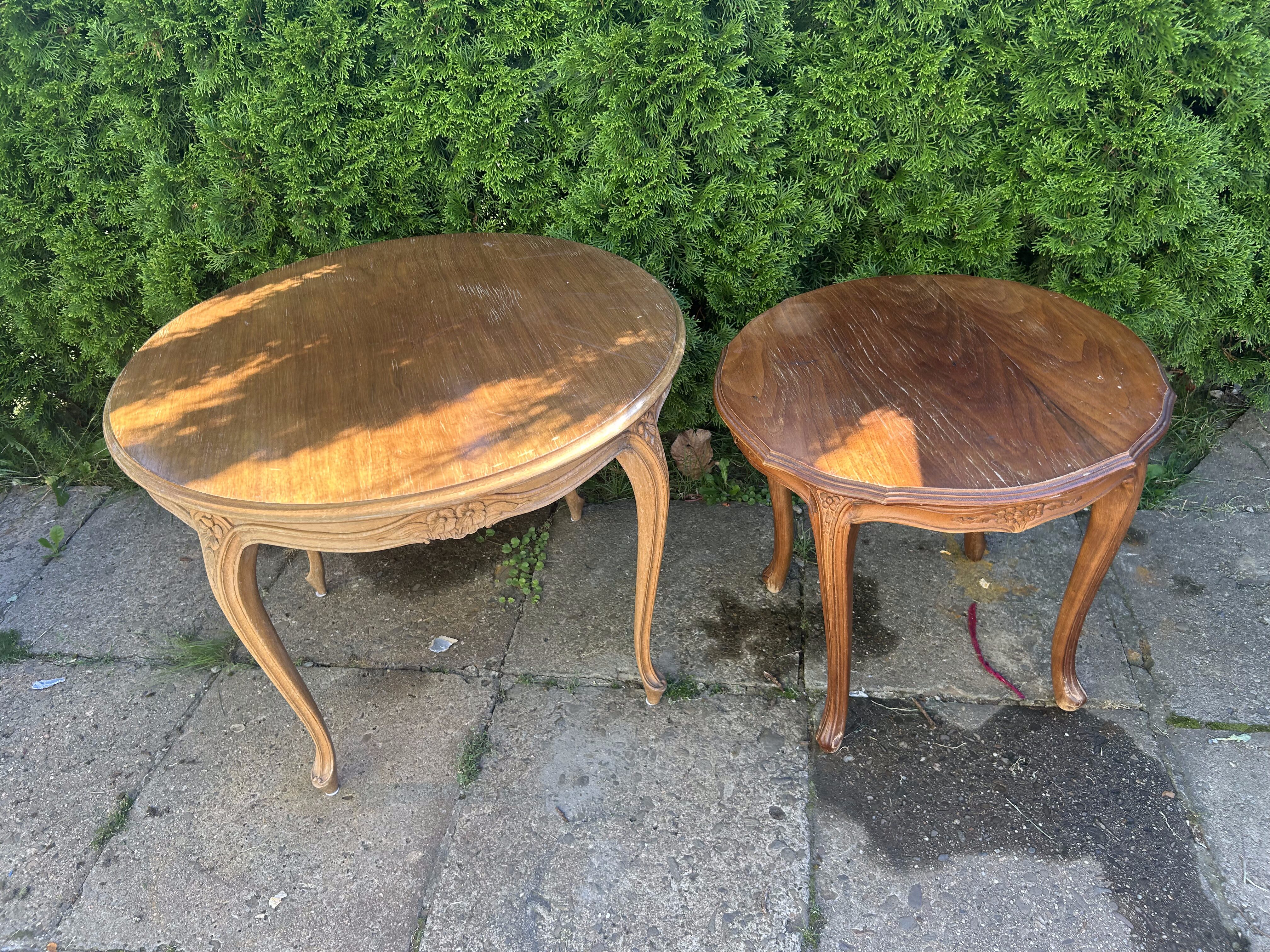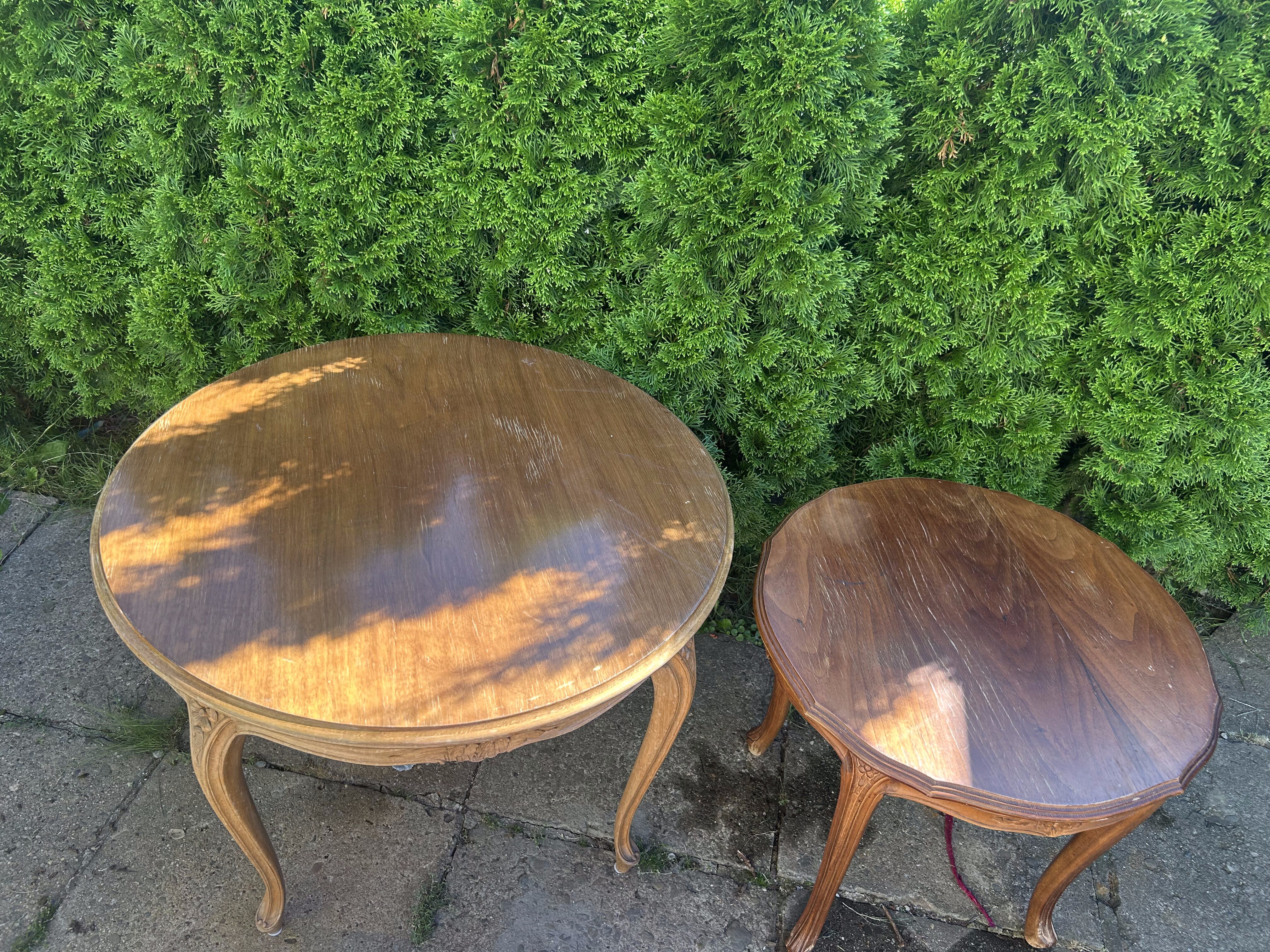 – Zestaw dwóch stolików drewnianych o okrągłych blatach