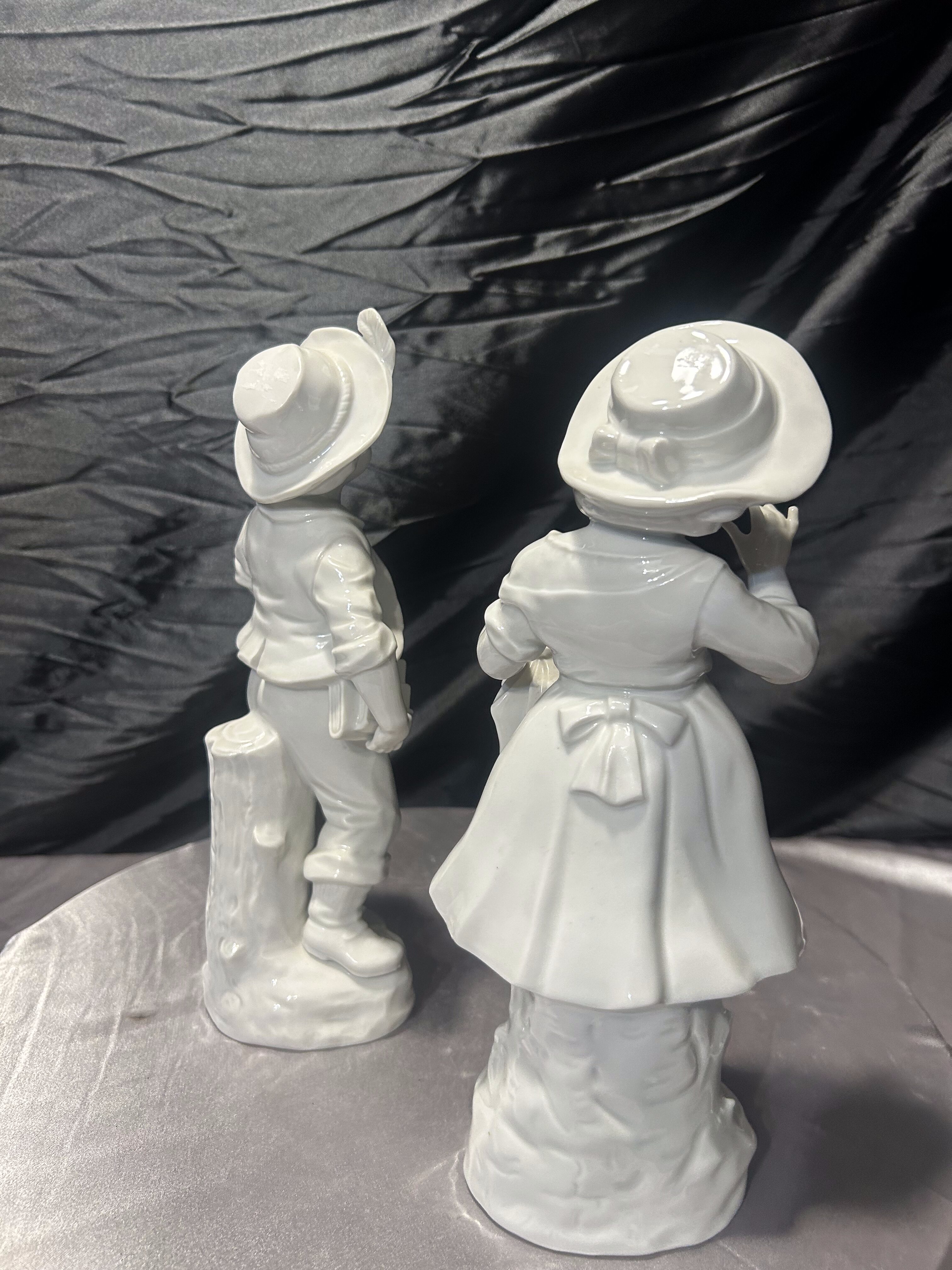 Figurki w białej porcelanie wyglądają elegancko i subtelnie, świetnie komponują się z wnętrzami klasycznymi, vintage oraz romantycznymi. To komplet, który może stać się ozdobą komody, konsoli lub witryny, a jednocześnie stanowi wartościowy element kolekcji porcelanowej z dawnego NRD.